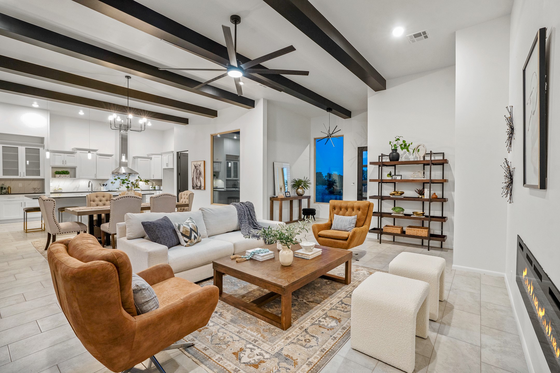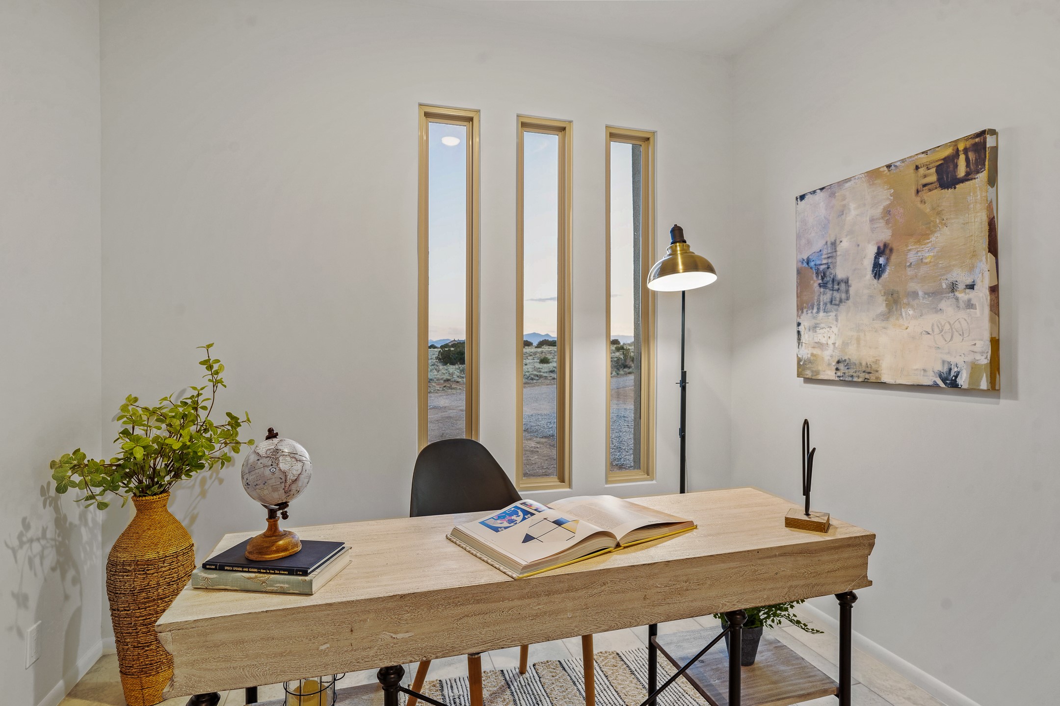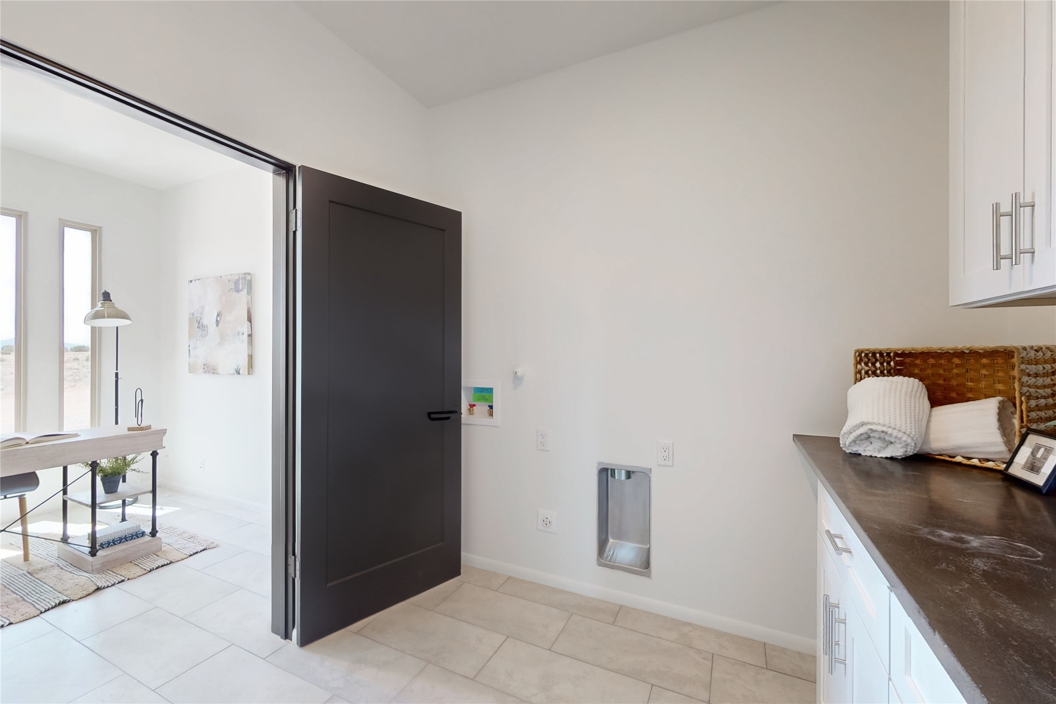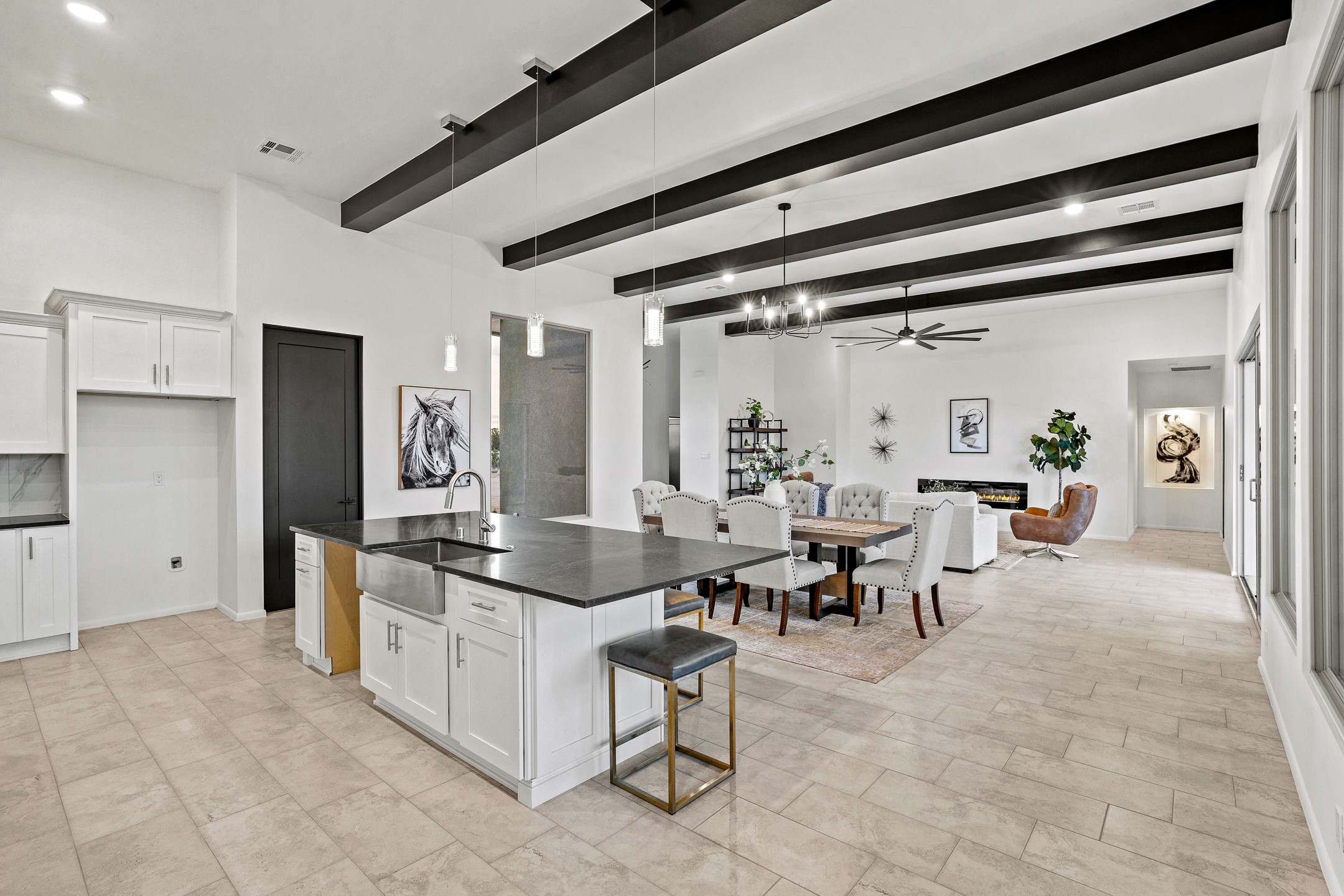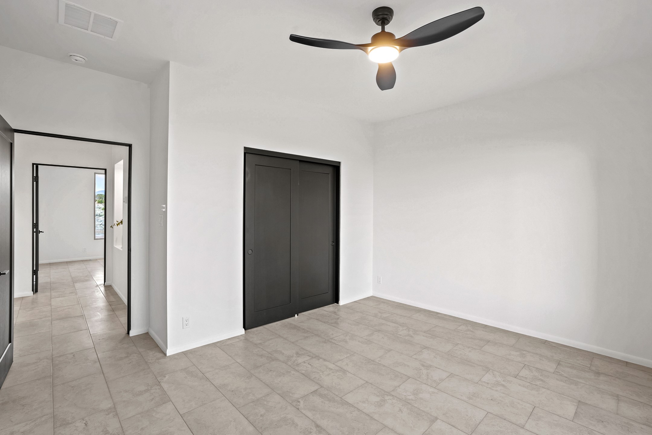 Just completed and ready for occupancy! One of the best view lots in the area. Mountain views from every window in this new custom built contemporary pueblo style home with open floor plan situated on a huge 12.50 +/- ac. private lot in Ceilo Tranquilo. Perfect for indoor and outdoor entertaining with 1000 square foot (50 x 20) back portal and over 200 square foot front portal. Open kitchen/family/dining room has floor to ceiling windows and double sliding glass doors to take in the fabulous views and access to the portal. The contemporary kitchen has a huge island bar and large walk in pantry. Home has all tile floors, high ceilings throughout and central a/c and heat. Owner's suite has large picture window with fabulous mountain views and sliding door to the portal. Owner's bath has double sinks, soaking tub and large walk in shower room with double shower heads and rain showers and a large walk in closet. Home features contemporary style vigas in living areas. Many extras including a bonus room that could be a mud room, office, studio or crafts room, oversized two car garage with extra storage space. This home has it all; new home, fabulous views, great outdoor spaces, contemporary open floor plan, large private lot that allows horses and additional structures. Easy access to all the shopping and dining and near all the outdoor activities. $4000 appliance credit for range, dishwasher and microwave.