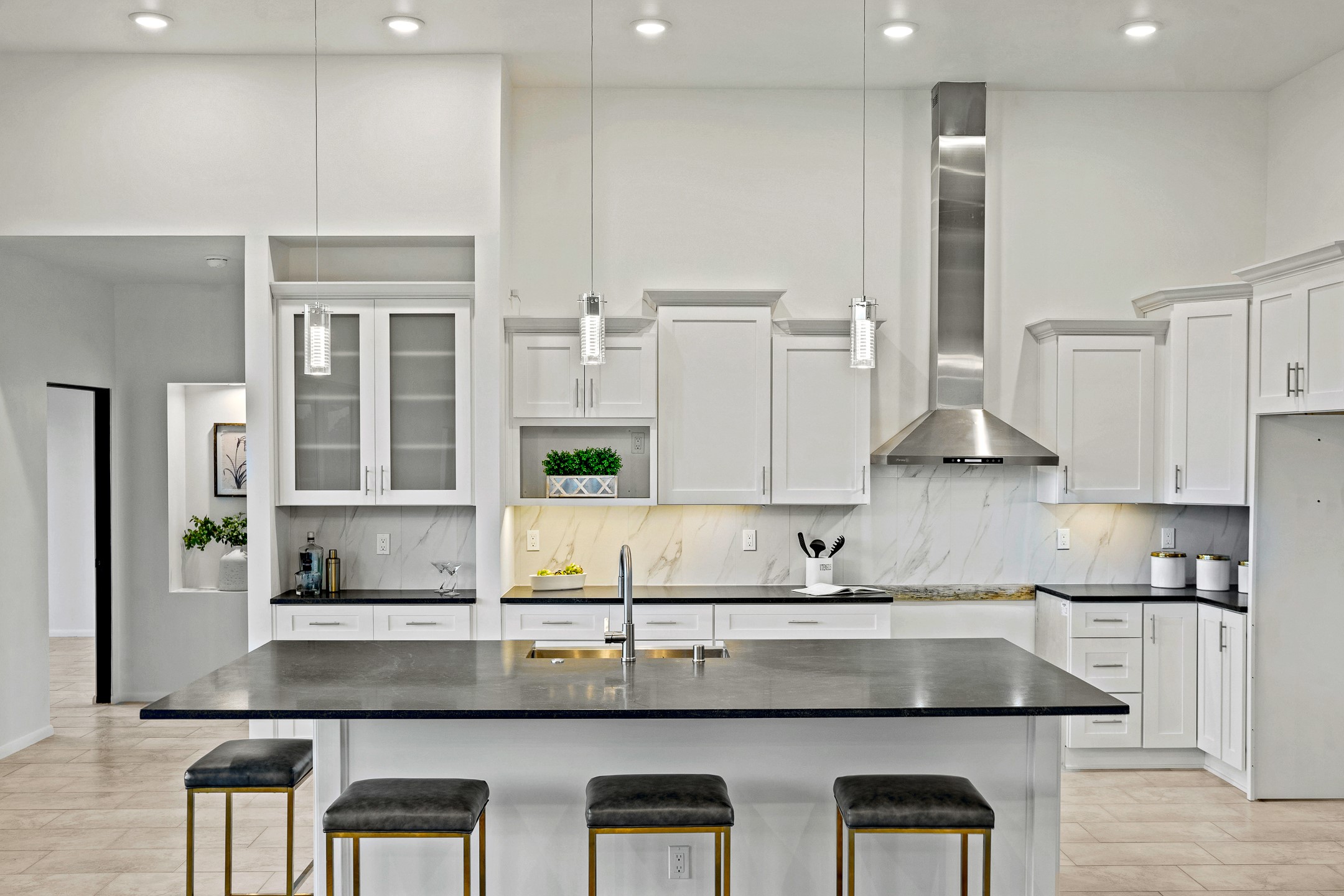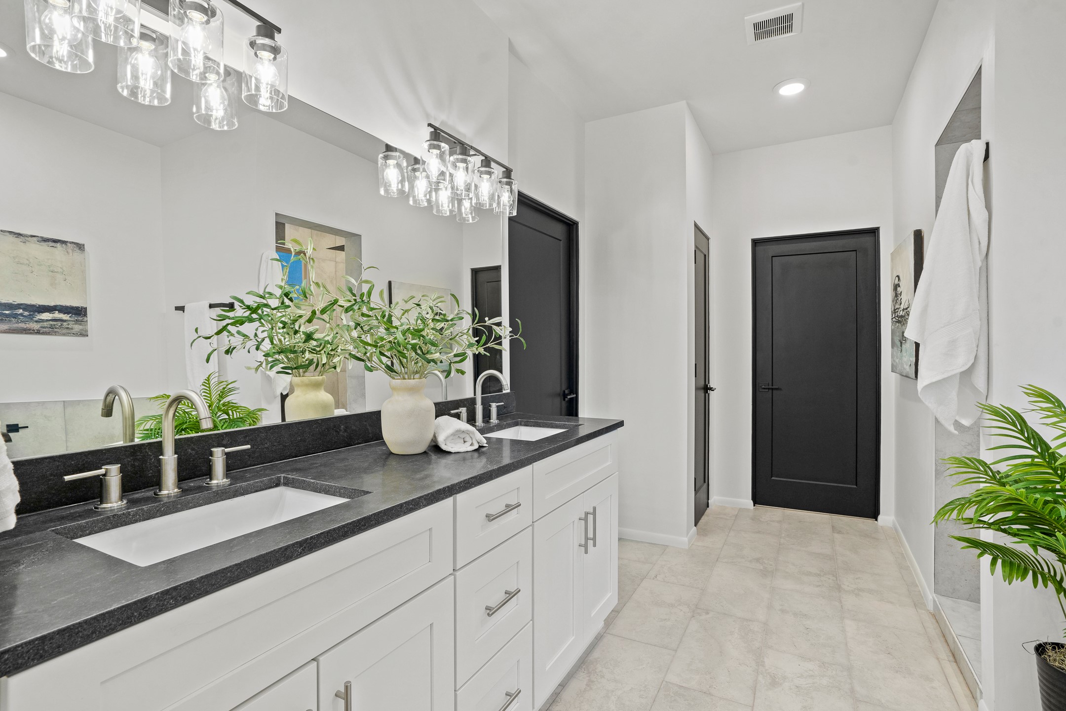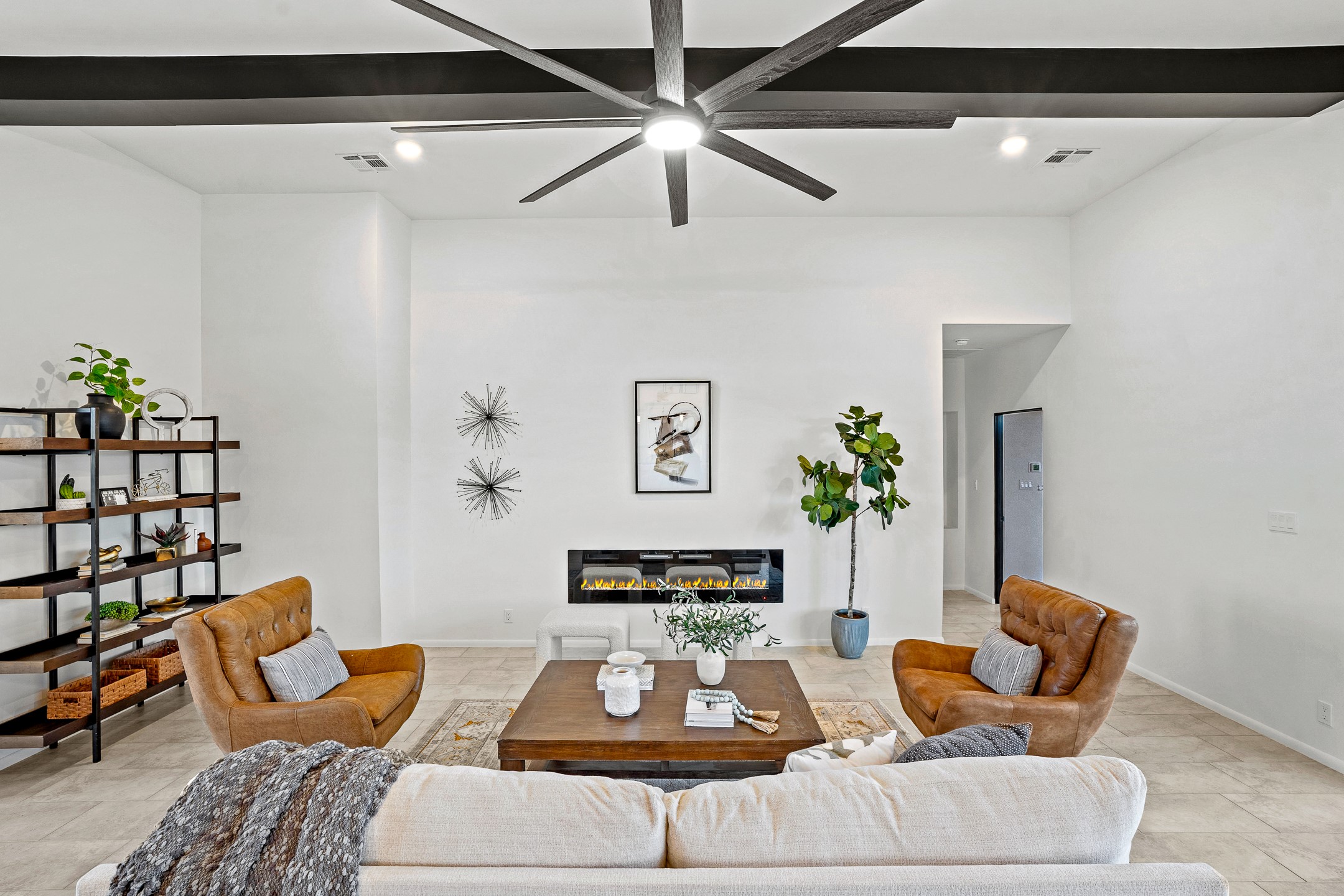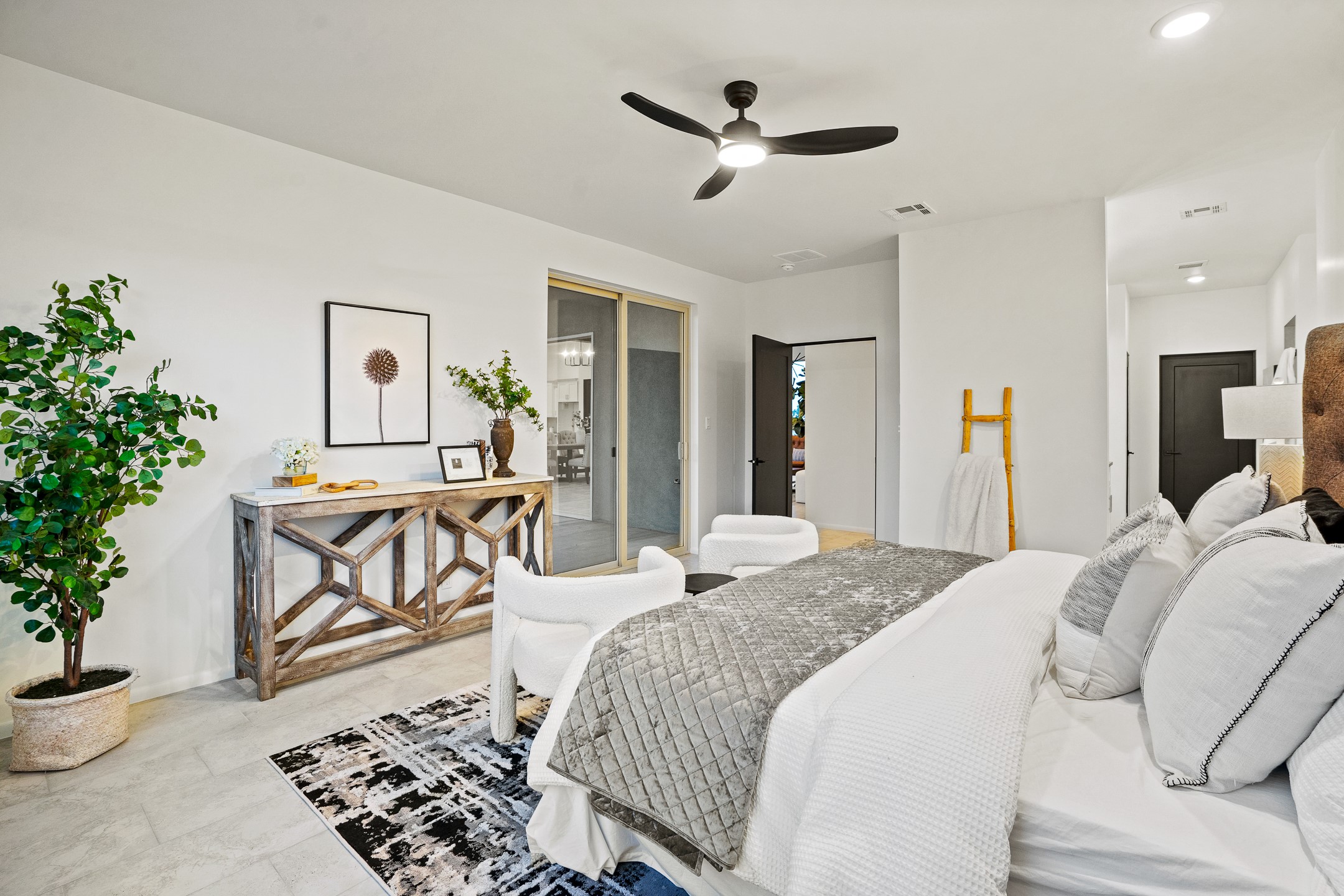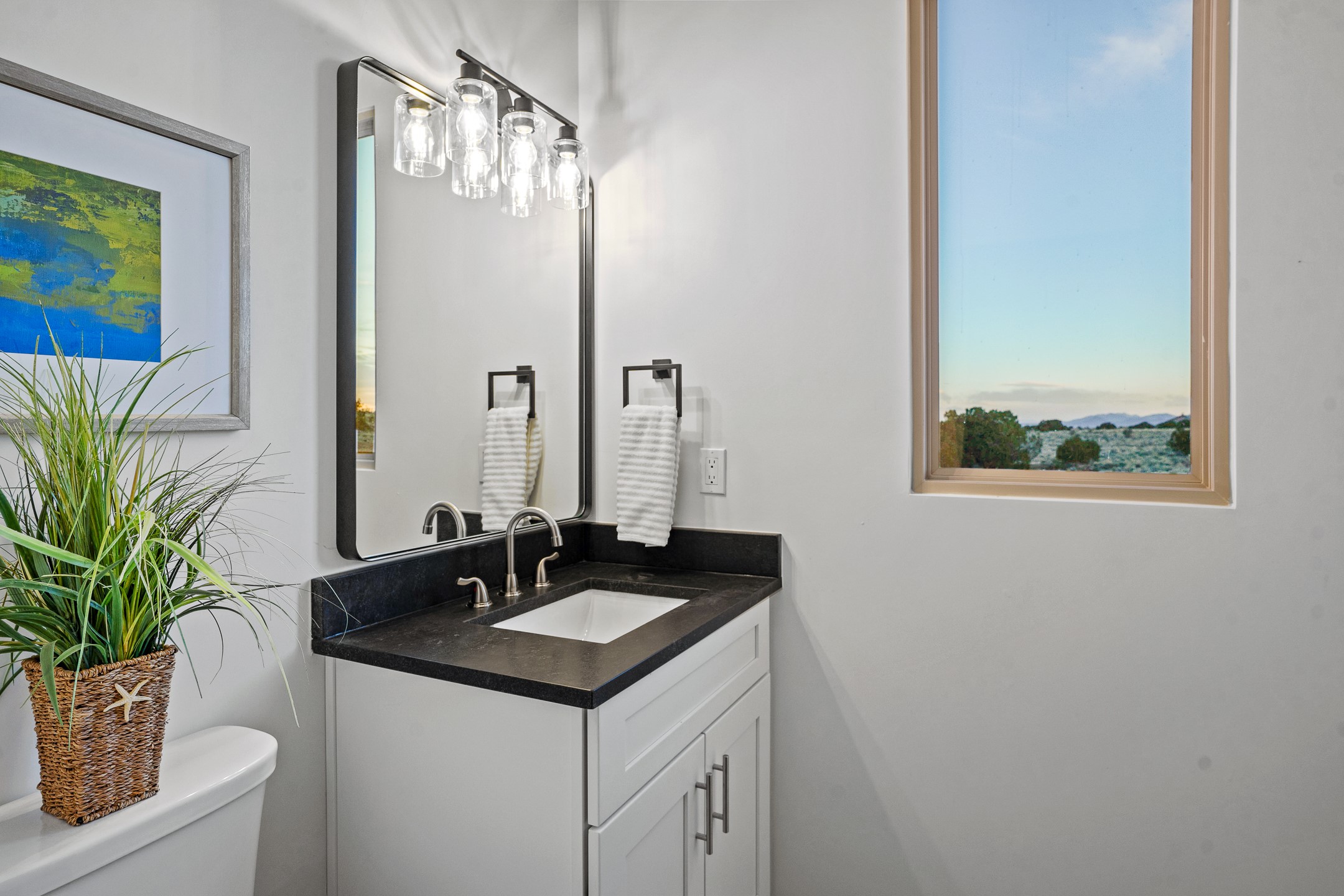 Just completed and ready for occupancy! One of the best view lots in the area. Mountain views from every window in this new custom built contemporary pueblo style home with open floor plan situated on a huge 12.50 +/- ac. private lot in Ceilo Tranquilo. Perfect for indoor and outdoor entertaining with 1000 square foot (50 x 20) back portal and over 200 square foot front portal. Open kitchen/family/dining room has floor to ceiling windows and double sliding glass doors to take in the fabulous views and access to the portal. The contemporary kitchen has a huge island bar and large walk in pantry. Home has all tile floors, high ceilings throughout and central a/c and heat. Owner's suite has large picture window with fabulous mountain views and sliding door to the portal. Owner's bath has double sinks, soaking tub and large walk in shower room with double shower heads and rain showers and a large walk in closet. Home features contemporary style vigas in living areas. Many extras including a bonus room that could be a mud room, office, studio or crafts room, oversized two car garage with extra storage space. This home has it all; new home, fabulous views, great outdoor spaces, contemporary open floor plan, large private lot that allows horses and additional structures. Easy access to all the shopping and dining and near all the outdoor activities. $4000 appliance credit for range, dishwasher and microwave.