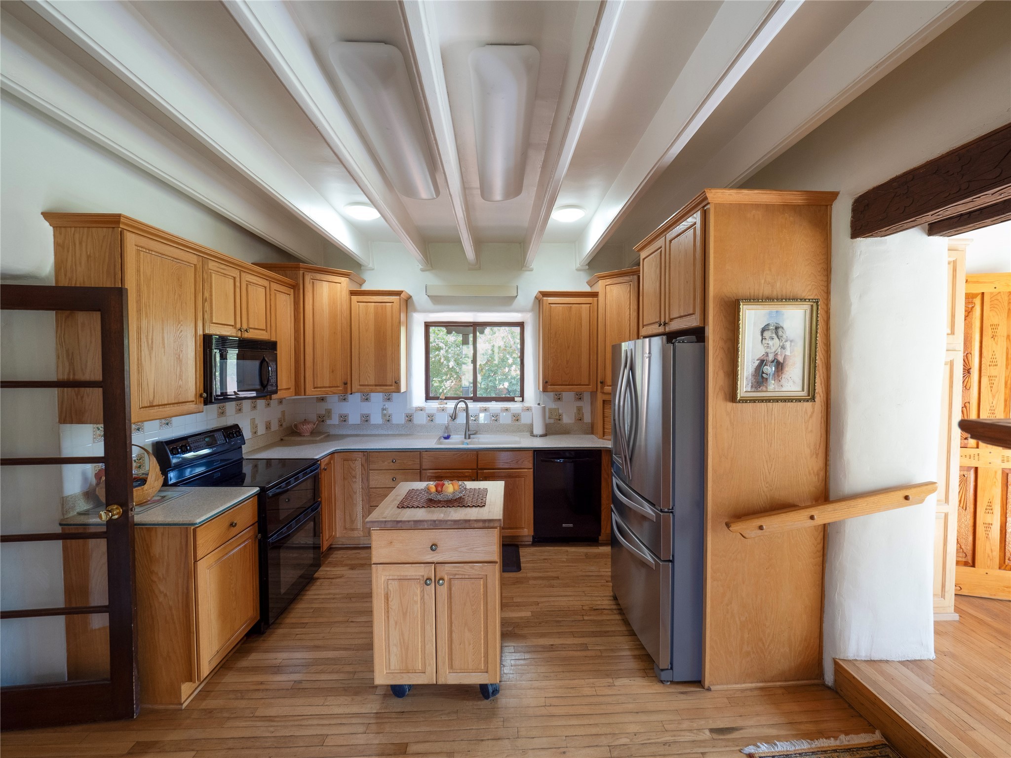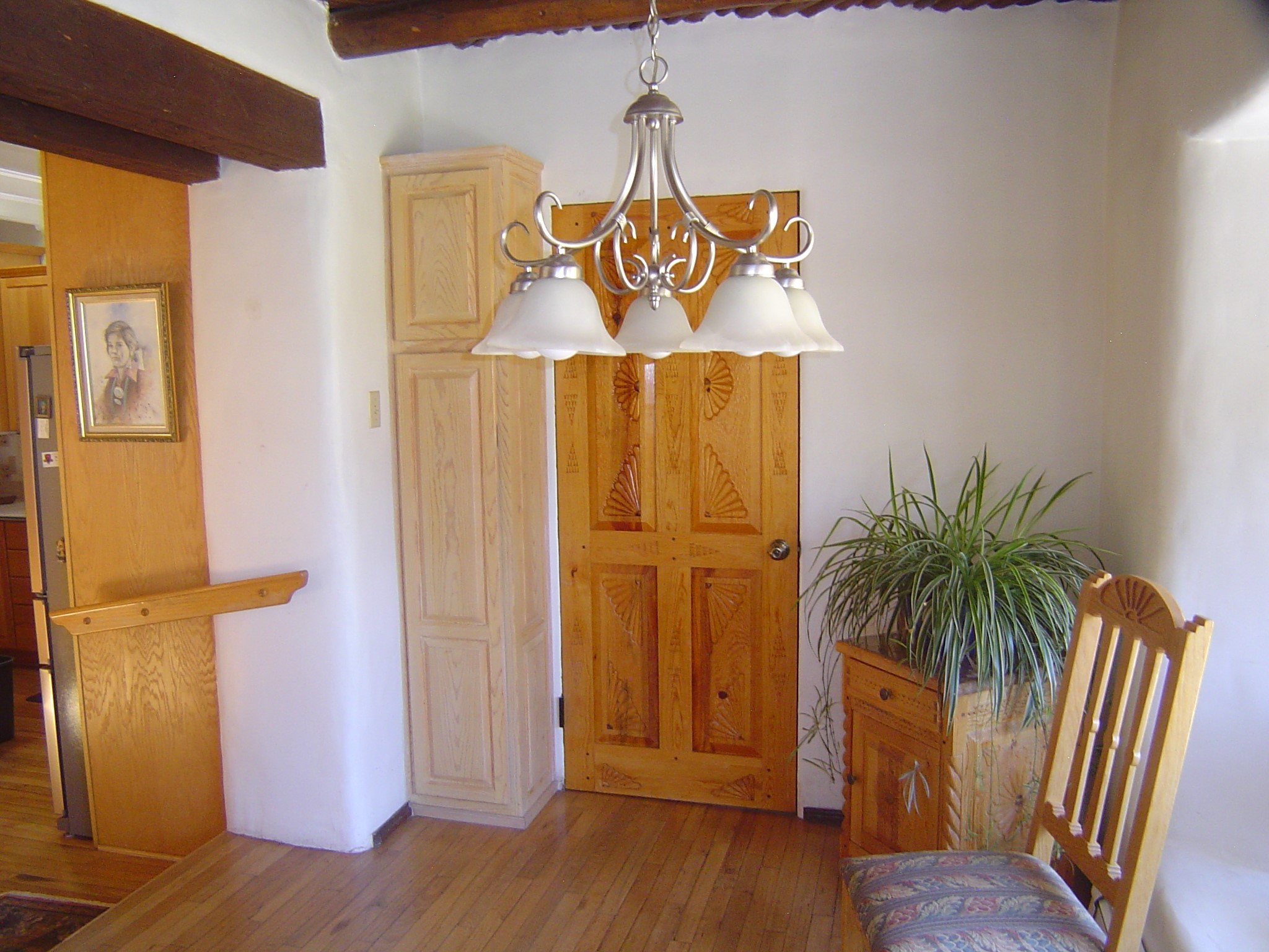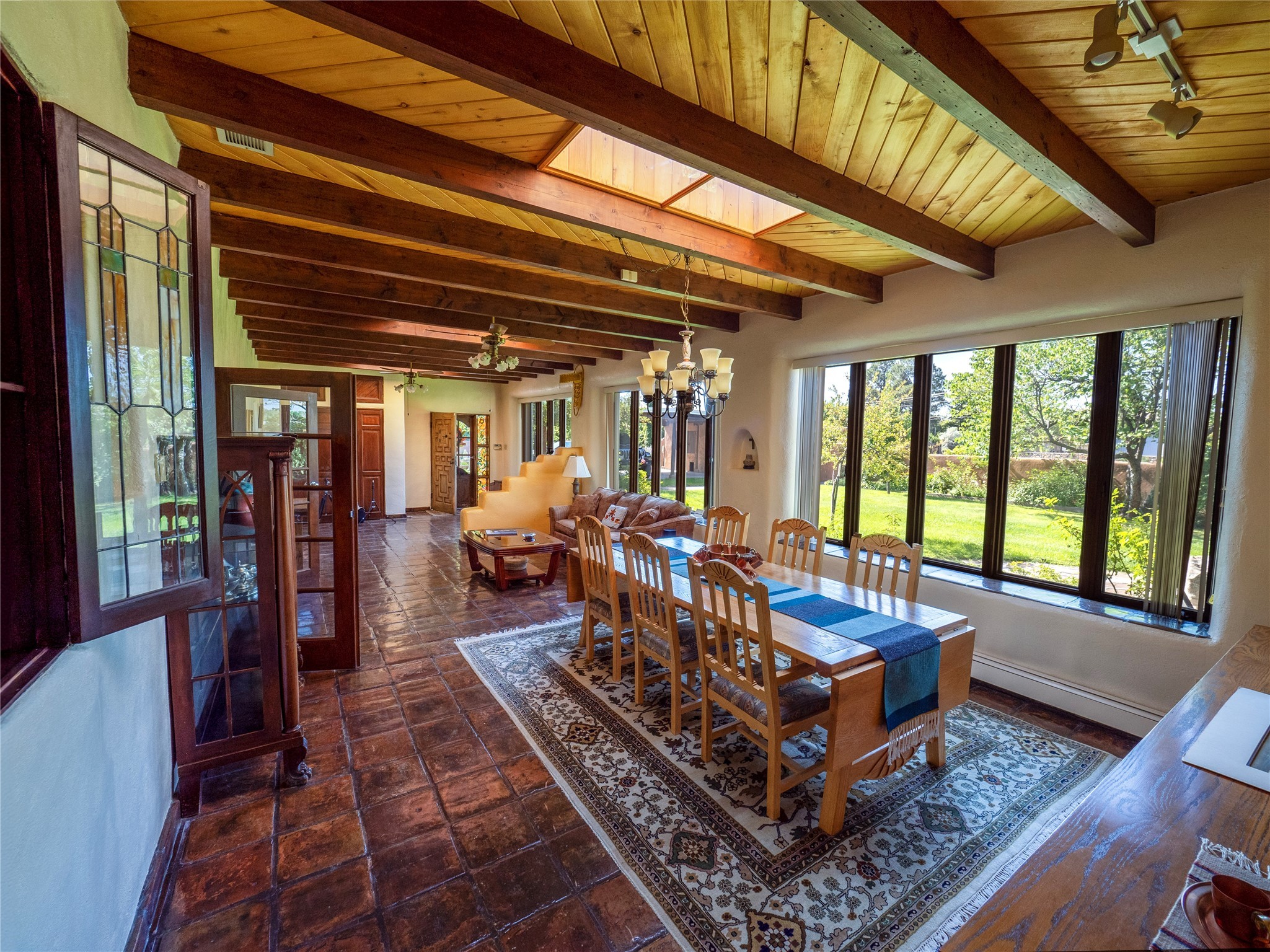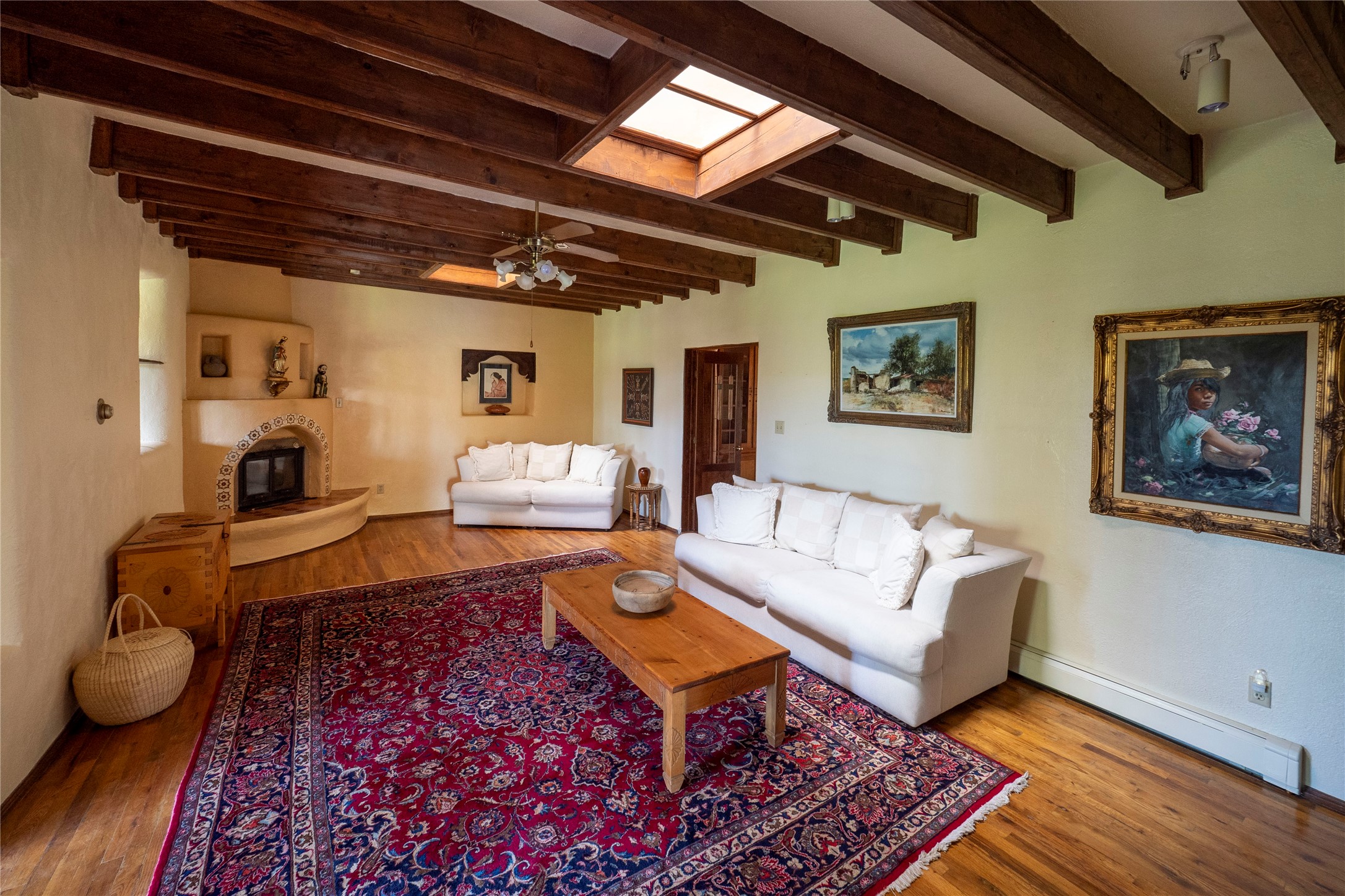 Historic Santa Cruz Double Adobe Hacienda build approximately 1886. This exquisite home has incomparable lush landscaping including several mature trees, productive grapevines, lawns, lovely flowerbeds and fruit trees creating a sanctuary of beauty, privacy and serenity. the Main House as 2 bedrooms and 2 and 1/2 baths. The Estate includes a 2 bedroom, 1 bath Casita, which is private and surrounded by beautiful landscaping and trees. A large portal, which is shady and comfortable in summer. both the House and Casita feature lovely hand crafted, carved southwestern doors made by the last owner who was a woodworker of some renown. His adobe workshop is spacious and has a woodstove and 1/2 bath. Also on the property is a two-story barn which houses an upper studio and one at ground level. The studio has power but no plumbing. A 2-bay carport has a storage area which can serve as a garden shed. This is a once in a lifetime opportunity to love care for and enjoy an exceptional Estate in Beautiful Santa Cruz. The Main house is reported by older locals to have been the residence of a French Priest who served at the Historic La Iglesia de Sant Cruz de la Canada which was built in 1773. There is an over 100-year pecan tree which is still standing. A stately St Joseph carved by noted carver, Henry Austin from an old tree watches over.