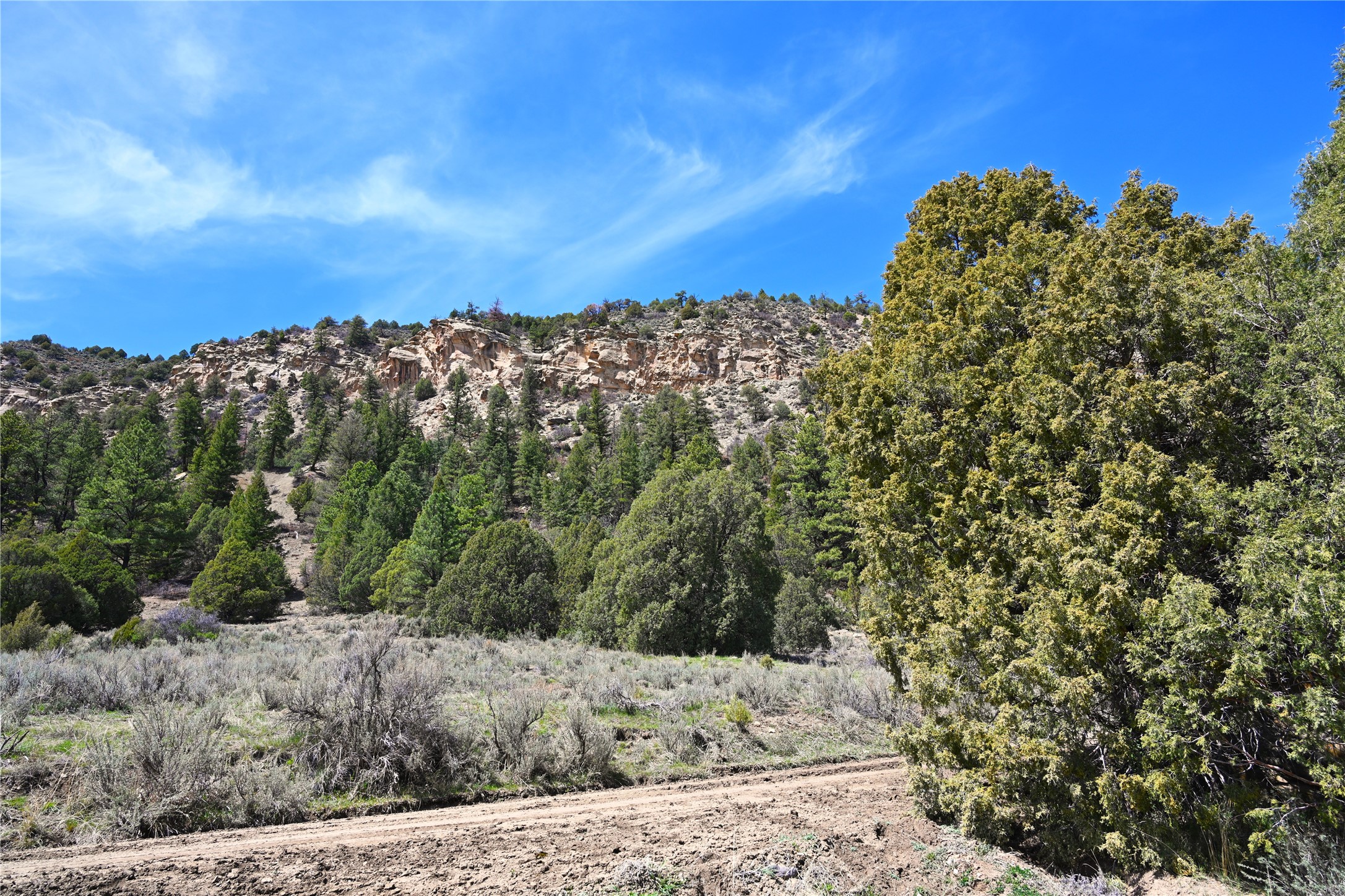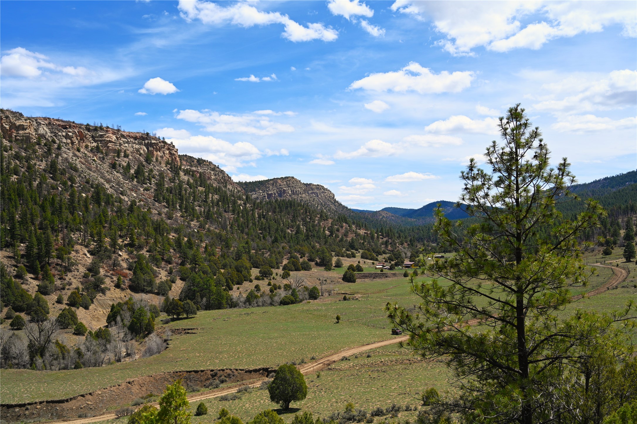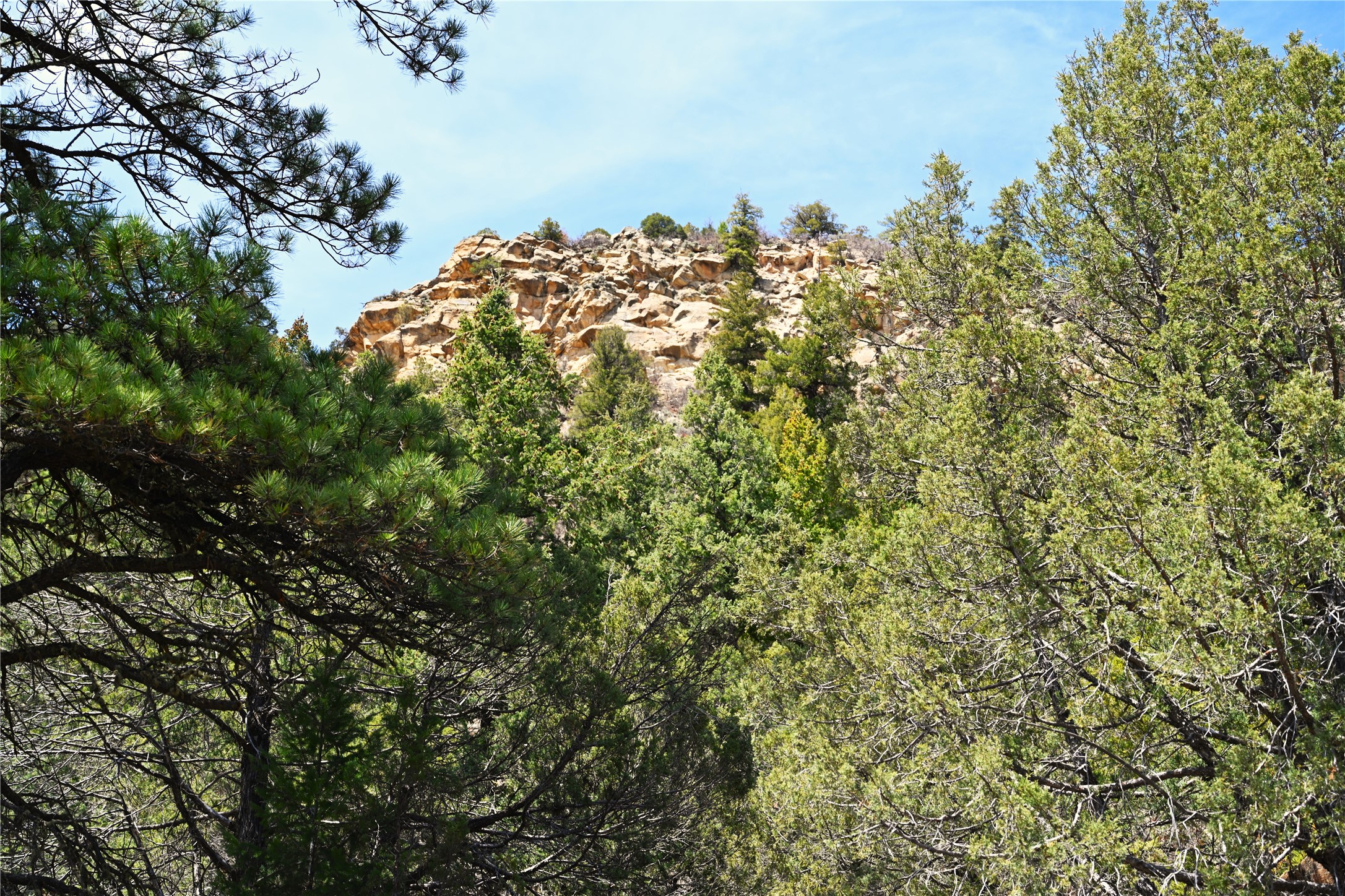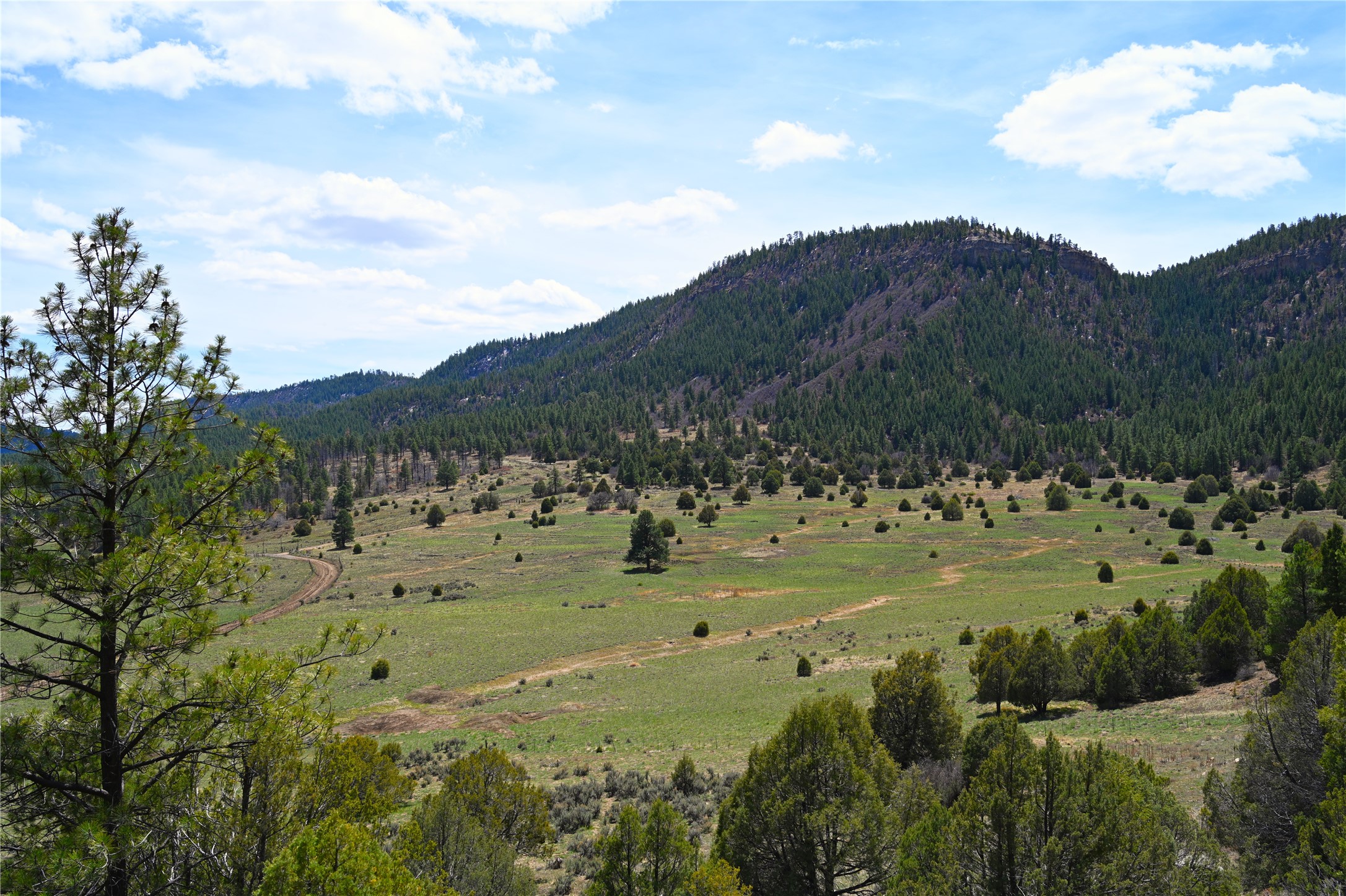 Northern New Mexico off grid property with stunning views. Tall pines Gambrel Oak, nice flat areas to set up camp or that off grid home.. Beautiful rock cliffs on the west side. Elk ,Mule Deer, Turkey and Bear roam these areas.. Property has been assigned an Elk Tag in the past, but not guaranteed every year , new owners would have to check with NMFGD.. Seasonal creek. Backs up to all private Ranches. 7250 feet in elevation. Property on both sides of Cr 352.