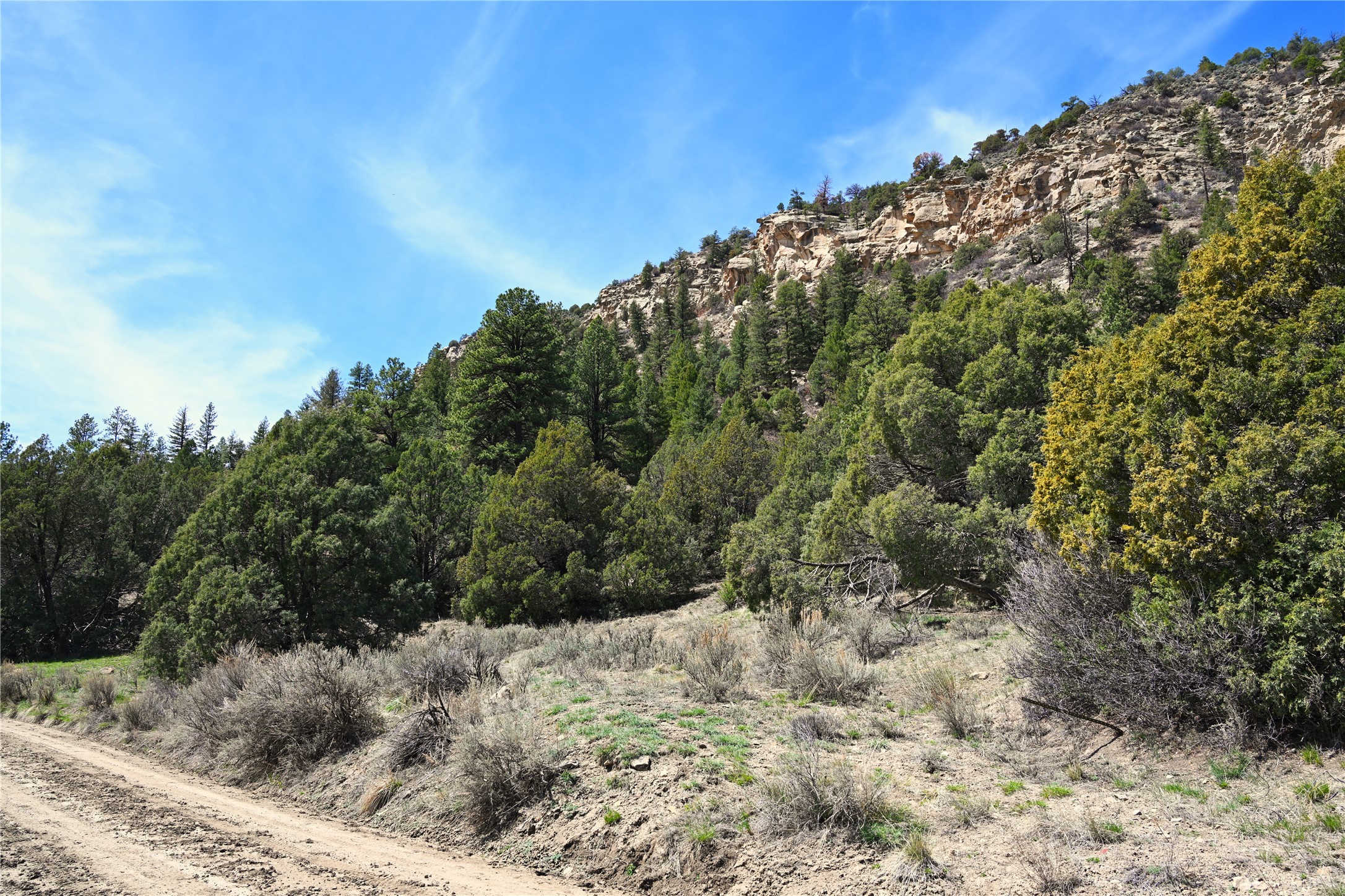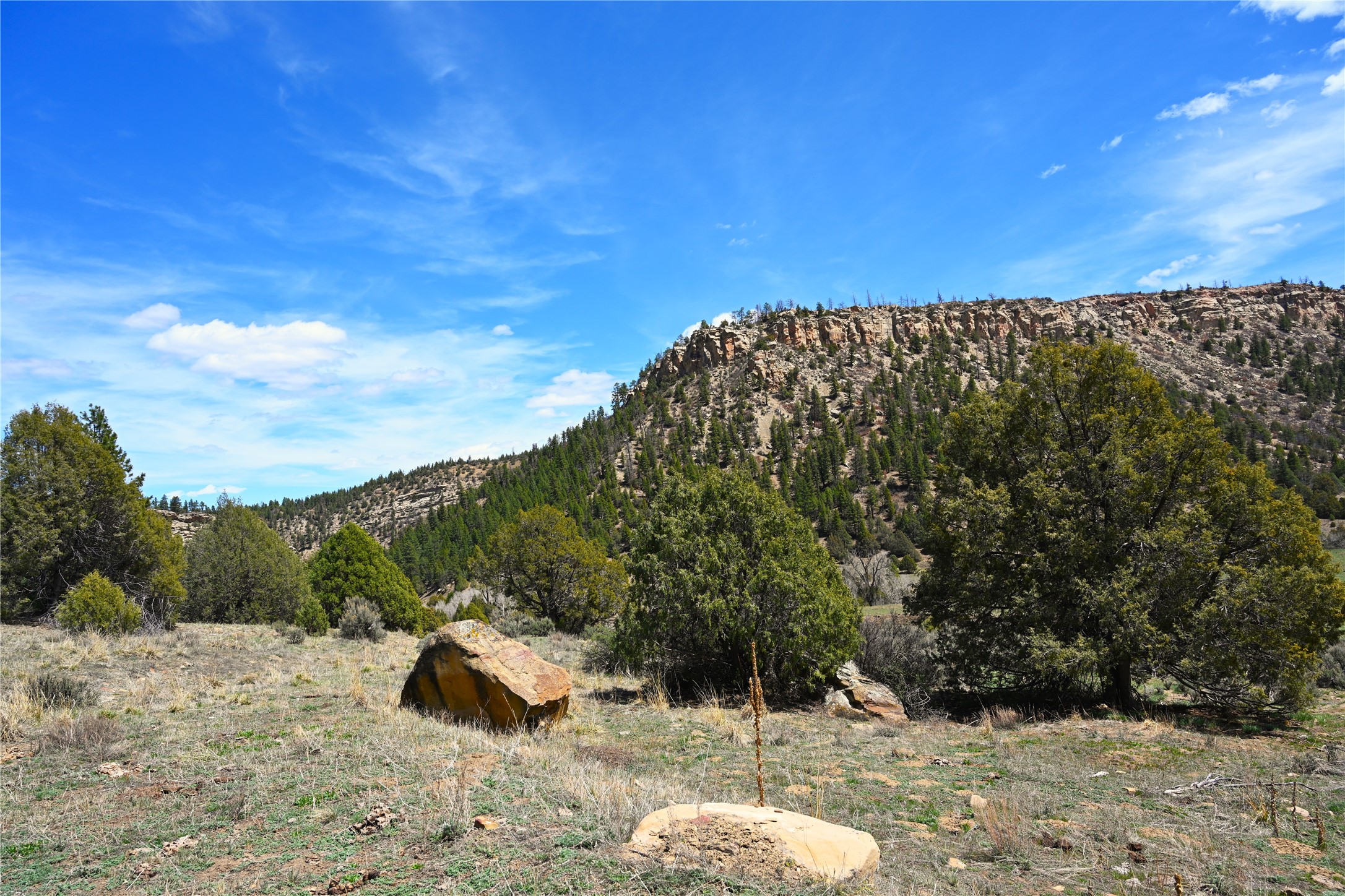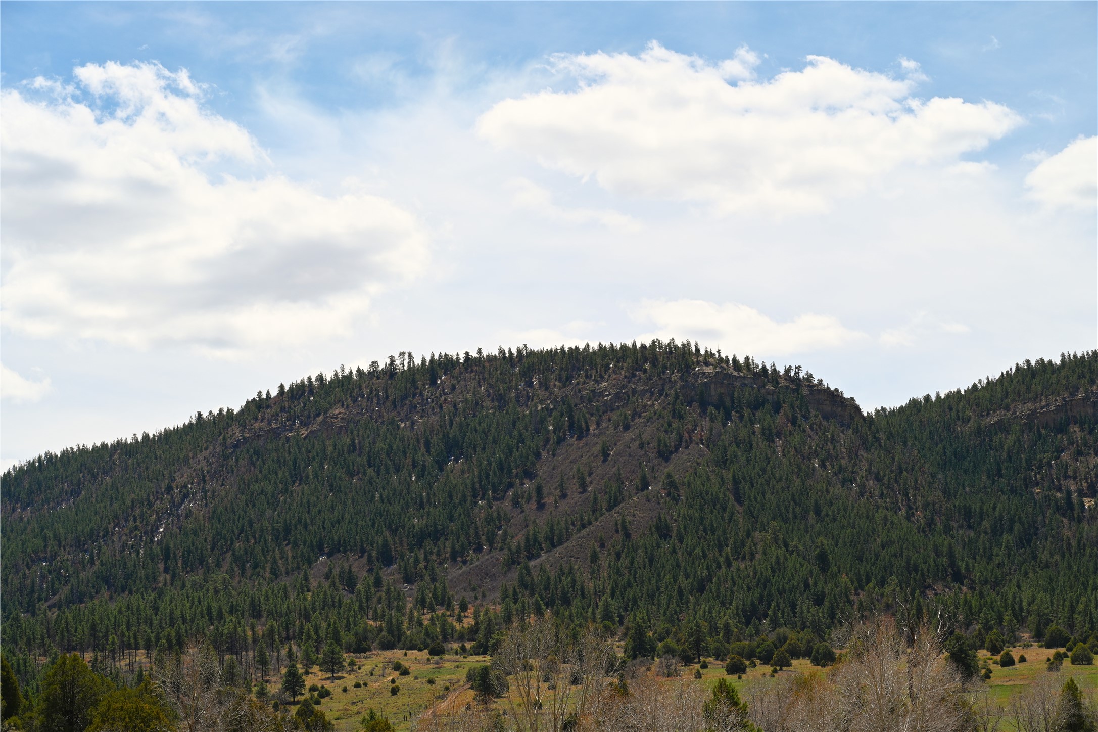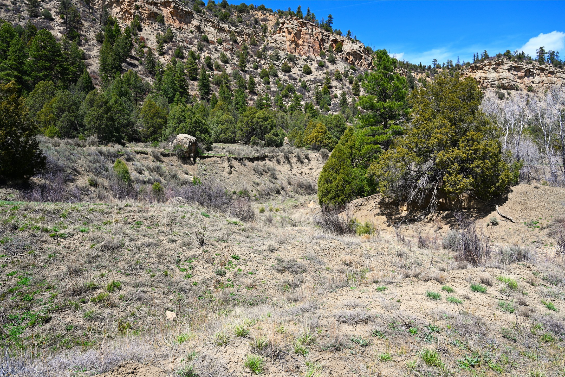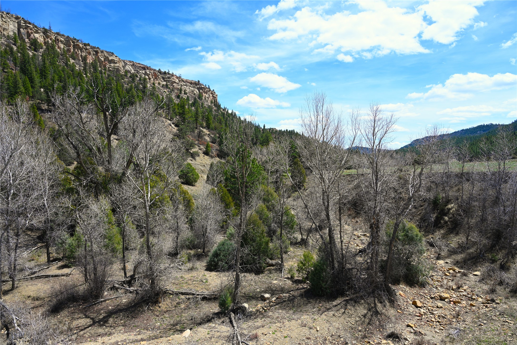 Northern New Mexico off grid property with stunning views. Tall pines Gambrel Oak, nice flat areas to set up camp or that off grid home.. Beautiful rock cliffs on the west side. Elk ,Mule Deer, Turkey and Bear roam these areas.. Property has been assigned an Elk Tag in the past, but not guaranteed every year , new owners would have to check with NMFGD.. Seasonal creek. Backs up to all private Ranches. 7250 feet in elevation. Property on both sides of Cr 352.