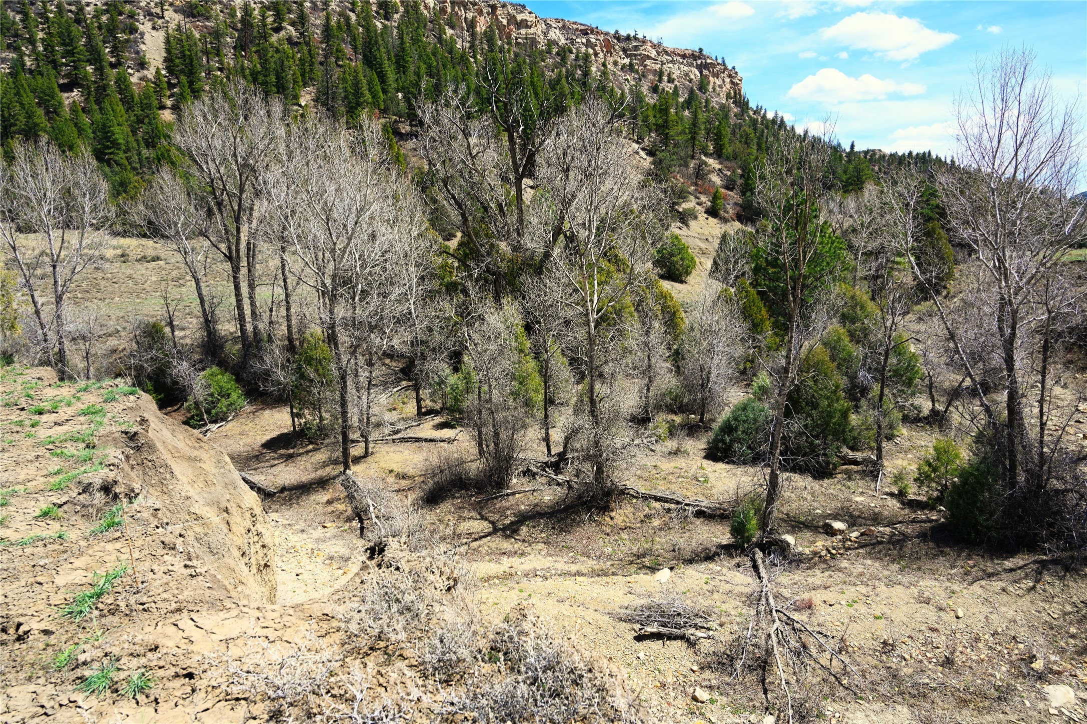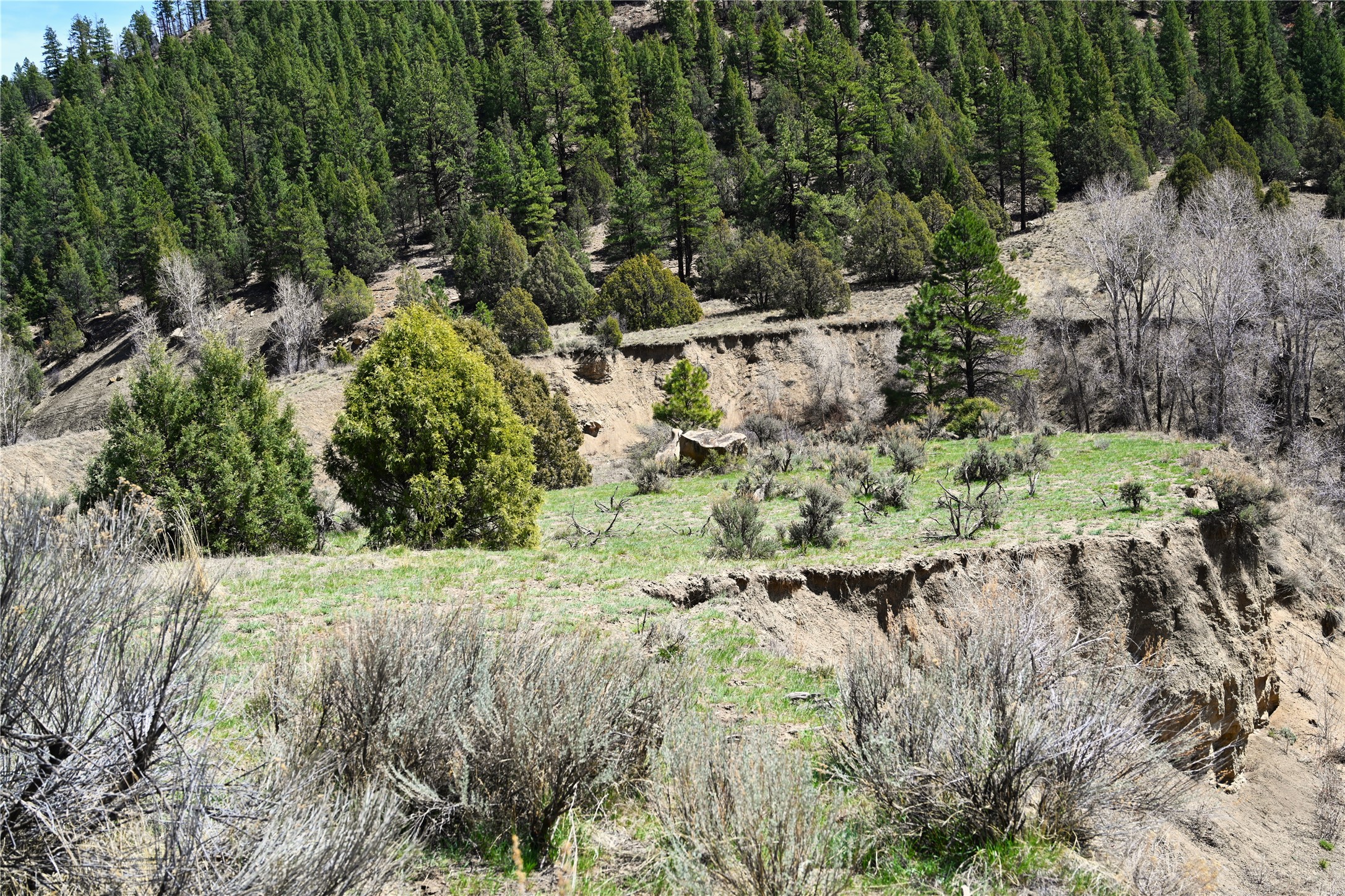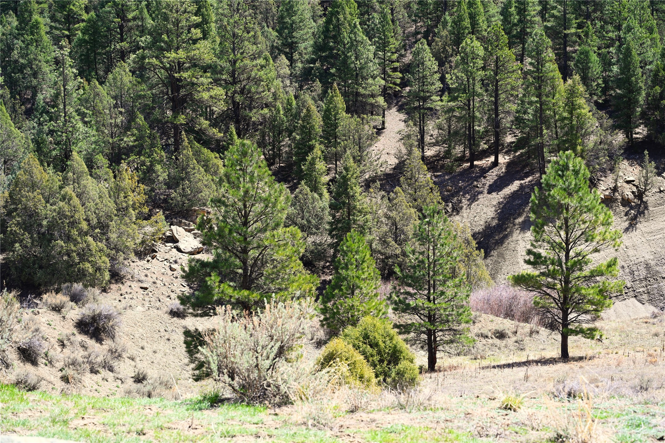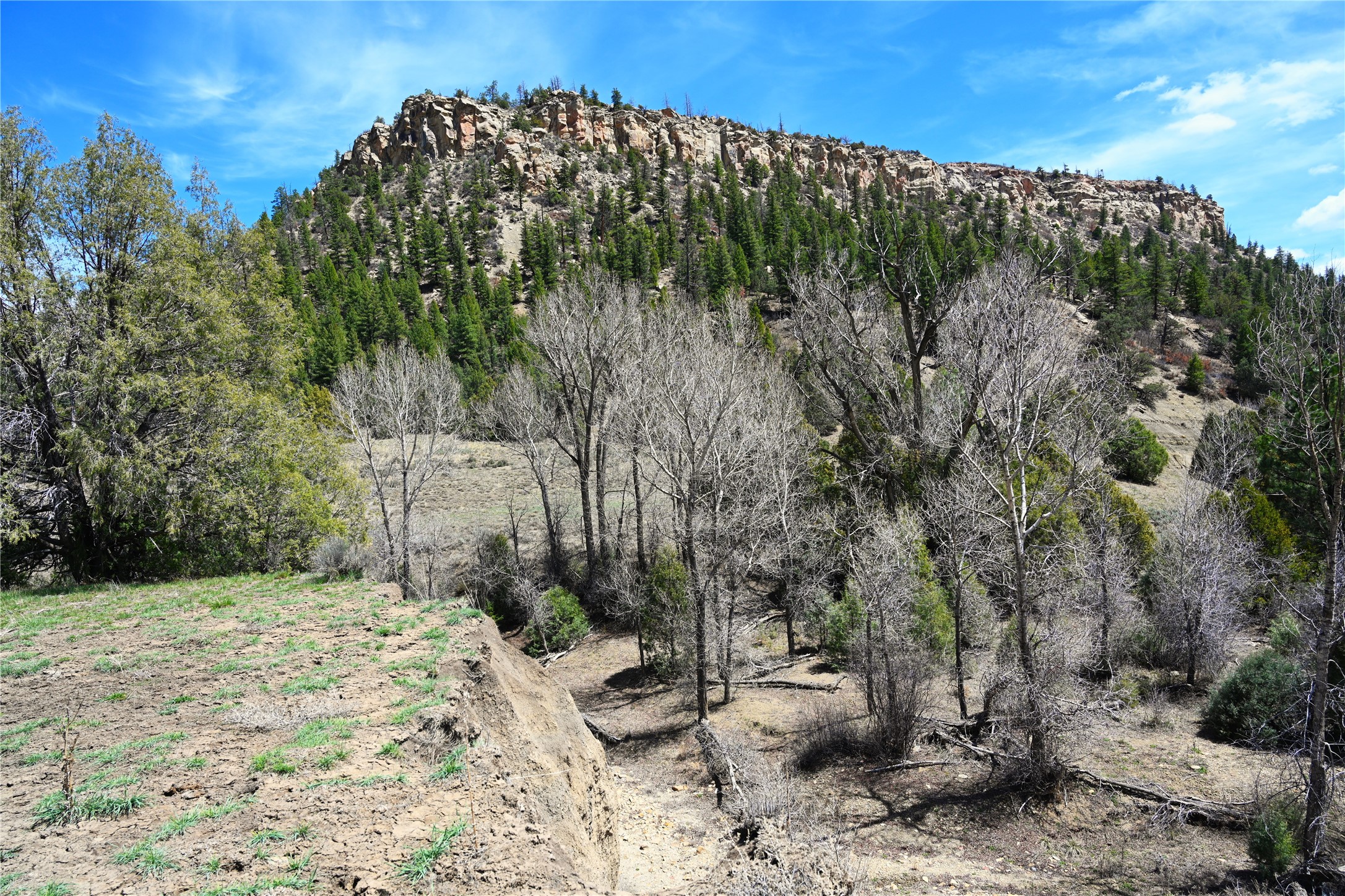 Northern New Mexico off grid property with stunning views. Tall pines Gambrel Oak, nice flat areas to set up camp or that off grid home.. Beautiful rock cliffs on the west side. Elk ,Mule Deer, Turkey and Bear roam these areas.. Property has been assigned an Elk Tag in the past, but not guaranteed every year , new owners would have to check with NMFGD.. Seasonal creek. Backs up to all private Ranches. 7250 feet in elevation. Property on both sides of Cr 352.