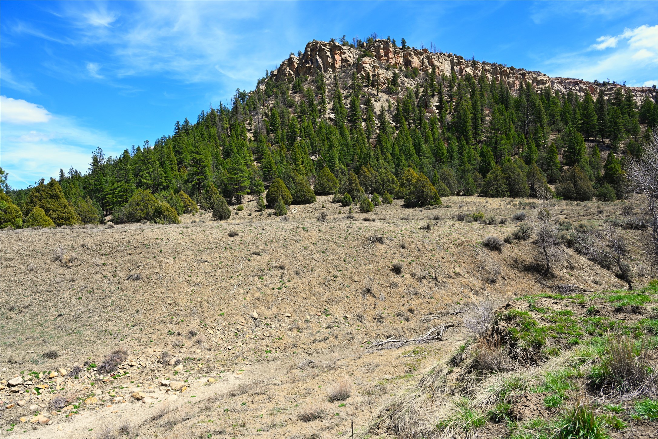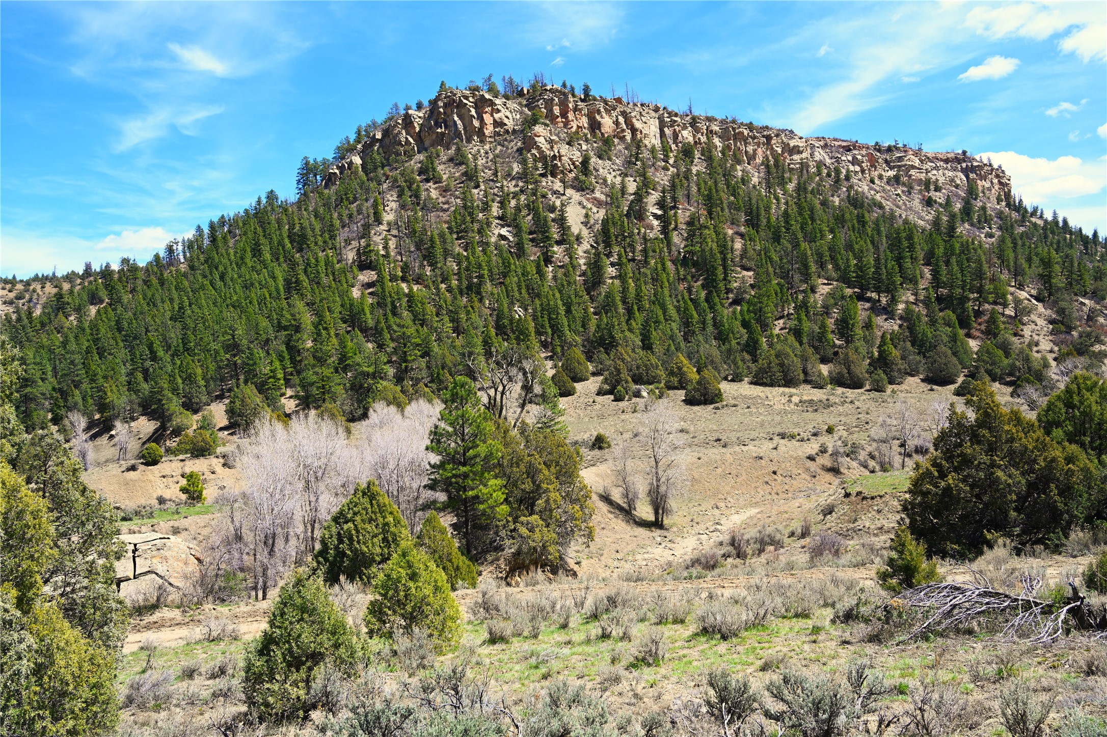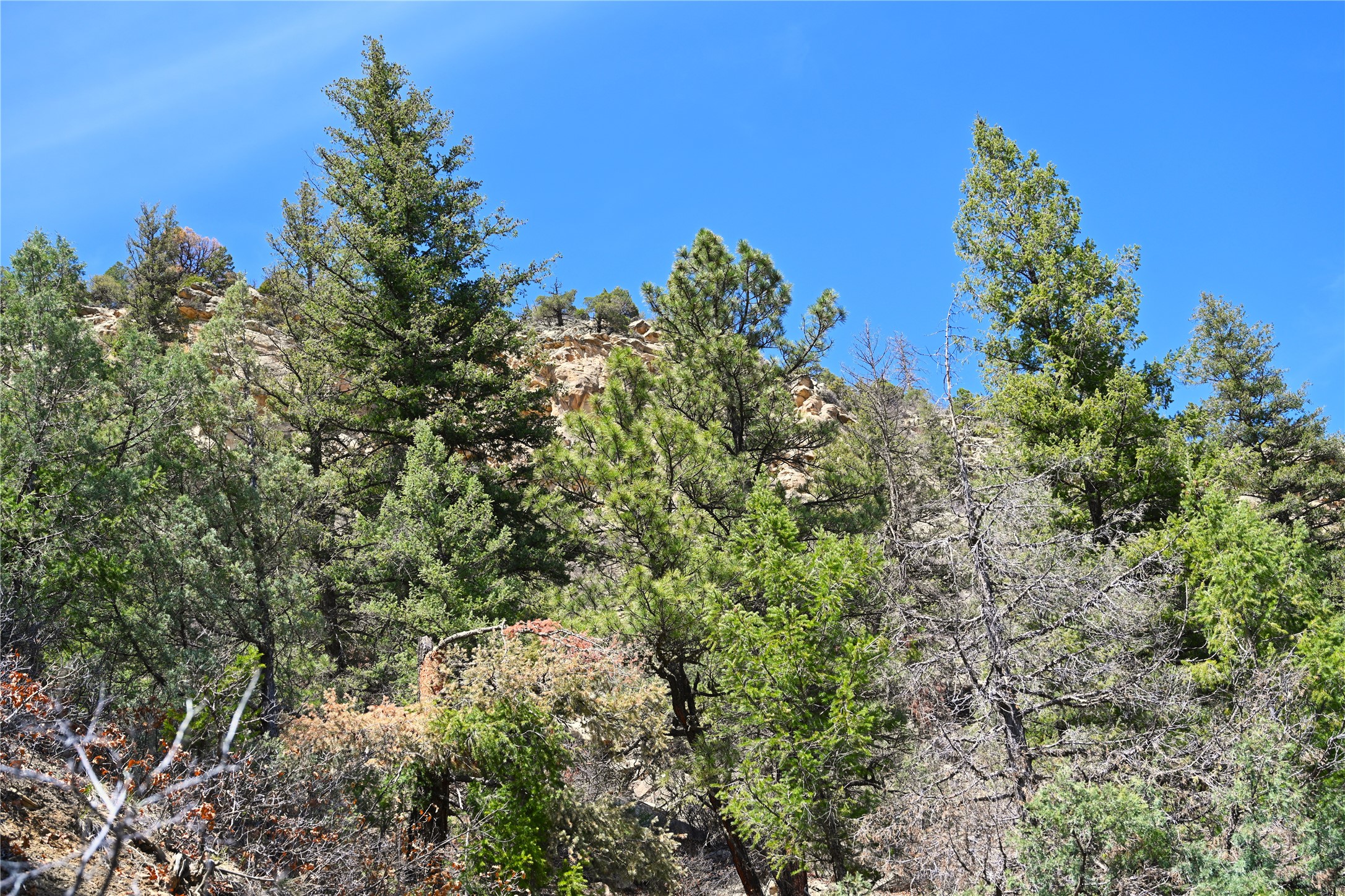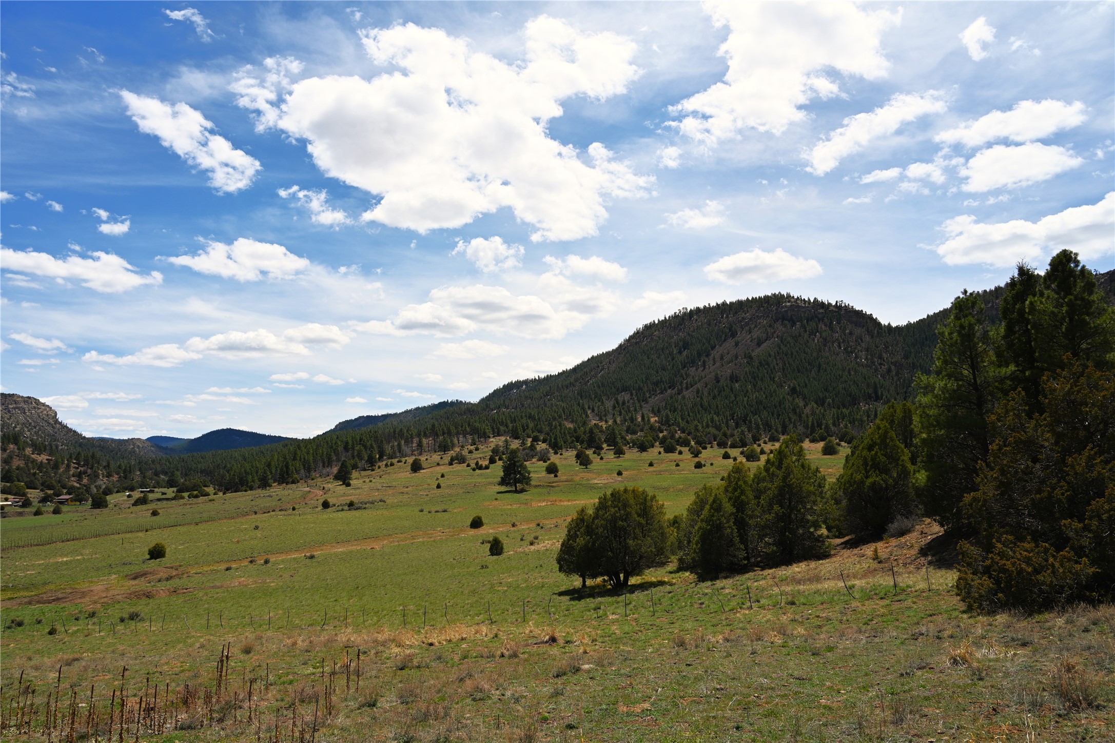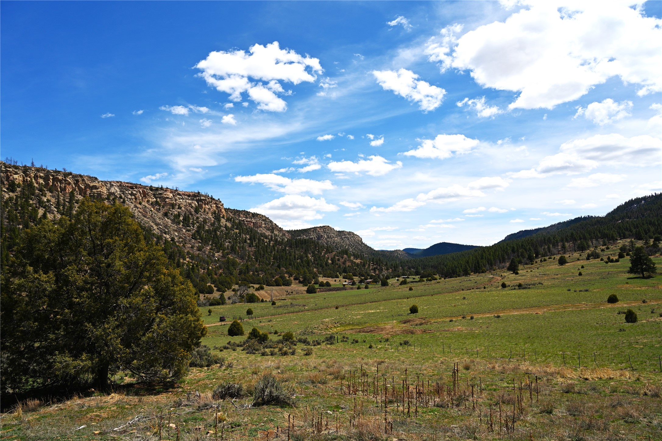 Northern New Mexico off grid property with stunning views. Tall pines Gambrel Oak, nice flat areas to set up camp or that off grid home.. Beautiful rock cliffs on the west side. Elk ,Mule Deer, Turkey and Bear roam these areas.. Property has been assigned an Elk Tag in the past, but not guaranteed every year , new owners would have to check with NMFGD.. Seasonal creek. Backs up to all private Ranches. 7250 feet in elevation. Property on both sides of Cr 352.
