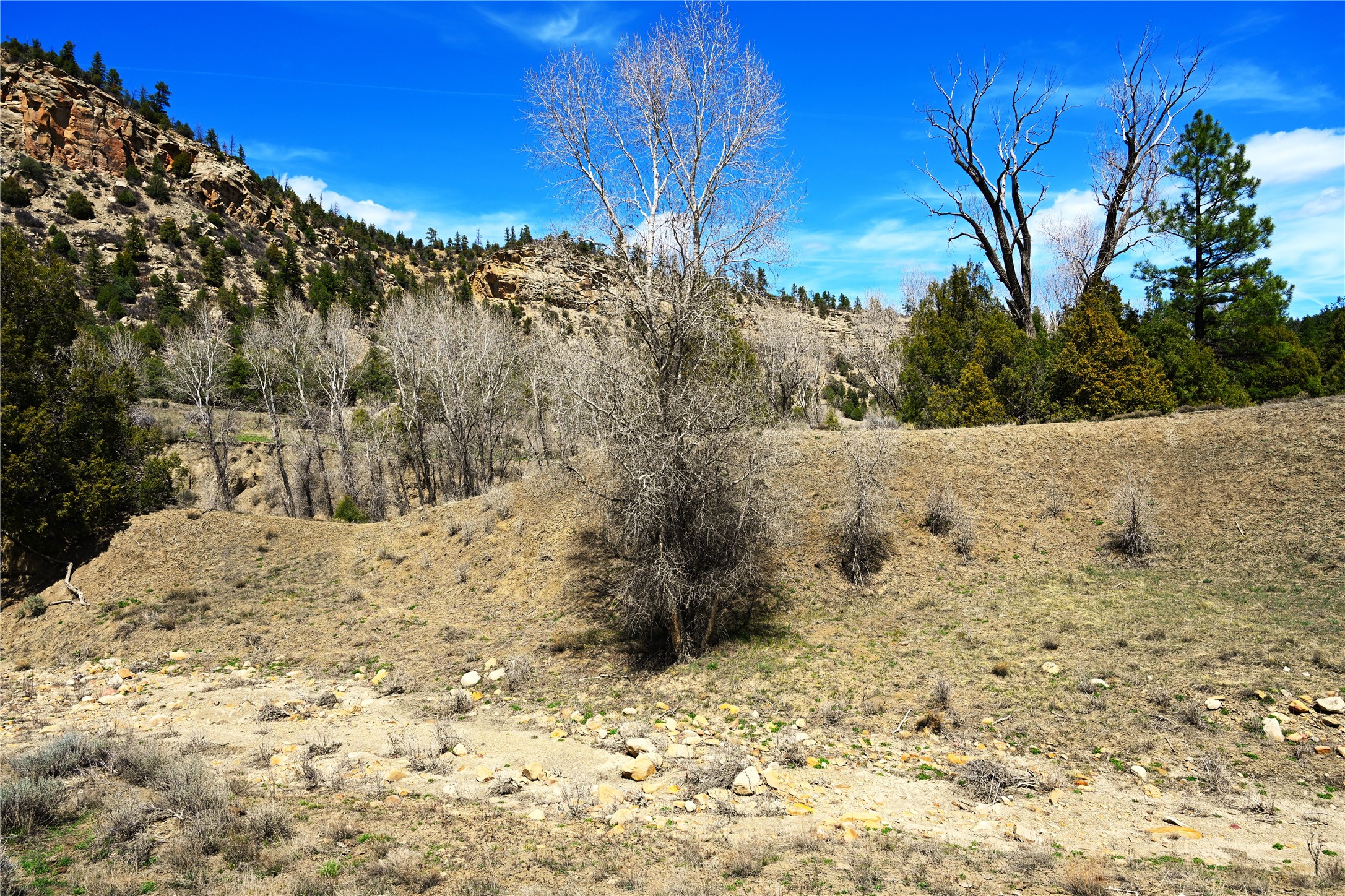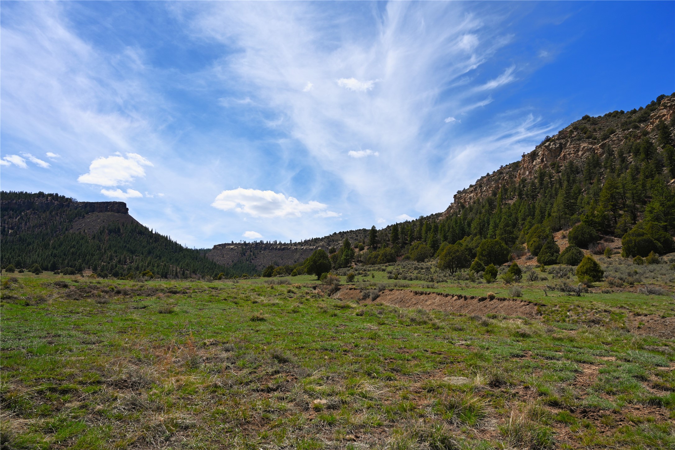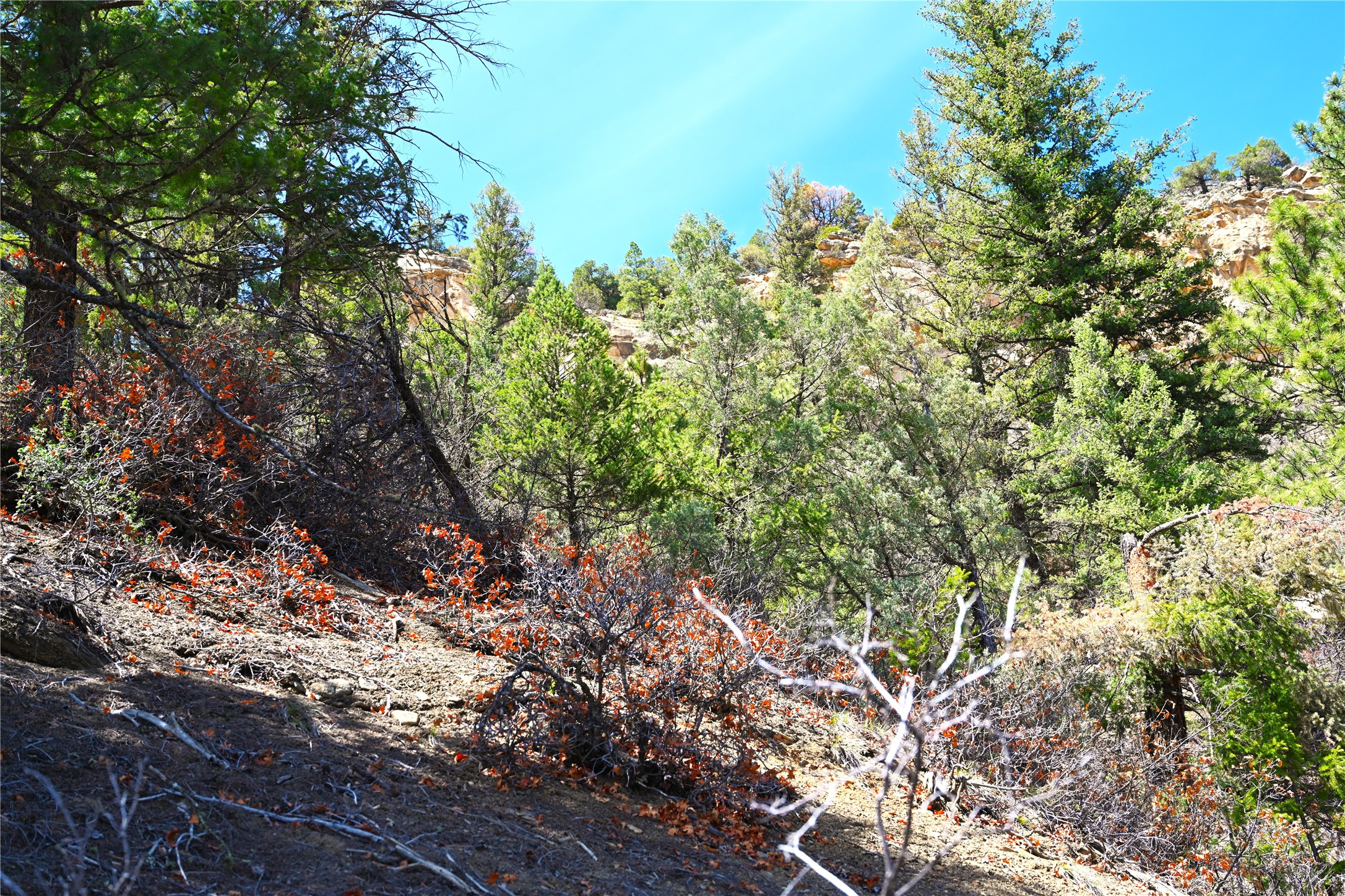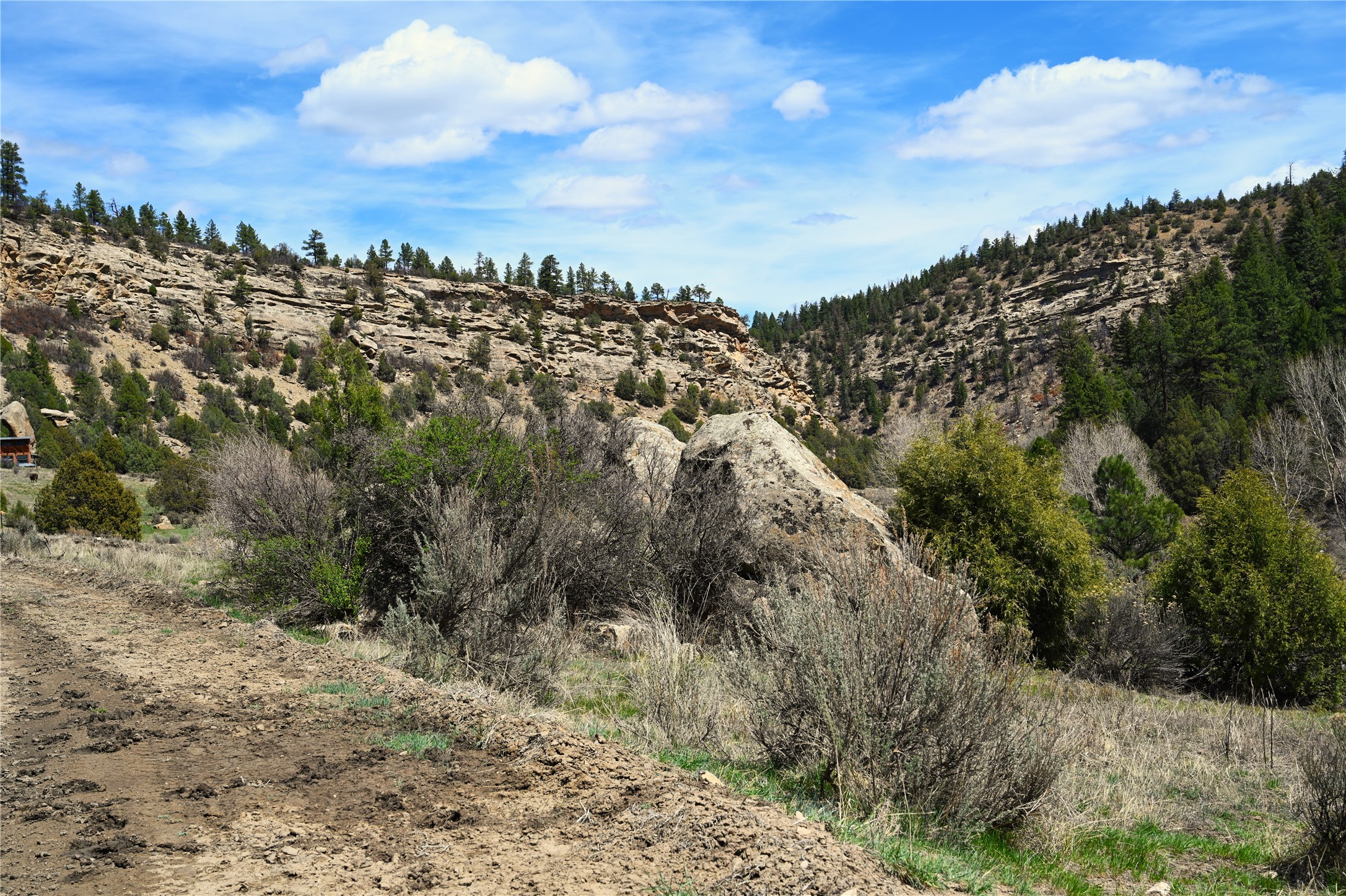 Northern New Mexico off grid property with stunning views. Tall pines Gambrel Oak, nice flat areas to set up camp or that off grid home.. Beautiful rock cliffs on the west side. Elk ,Mule Deer, Turkey and Bear roam these areas.. Property has been assigned an Elk Tag in the past, but not guaranteed every year , new owners would have to check with NMFGD.. Seasonal creek. Backs up to all private Ranches. 7250 feet in elevation. Property on both sides of Cr 352.