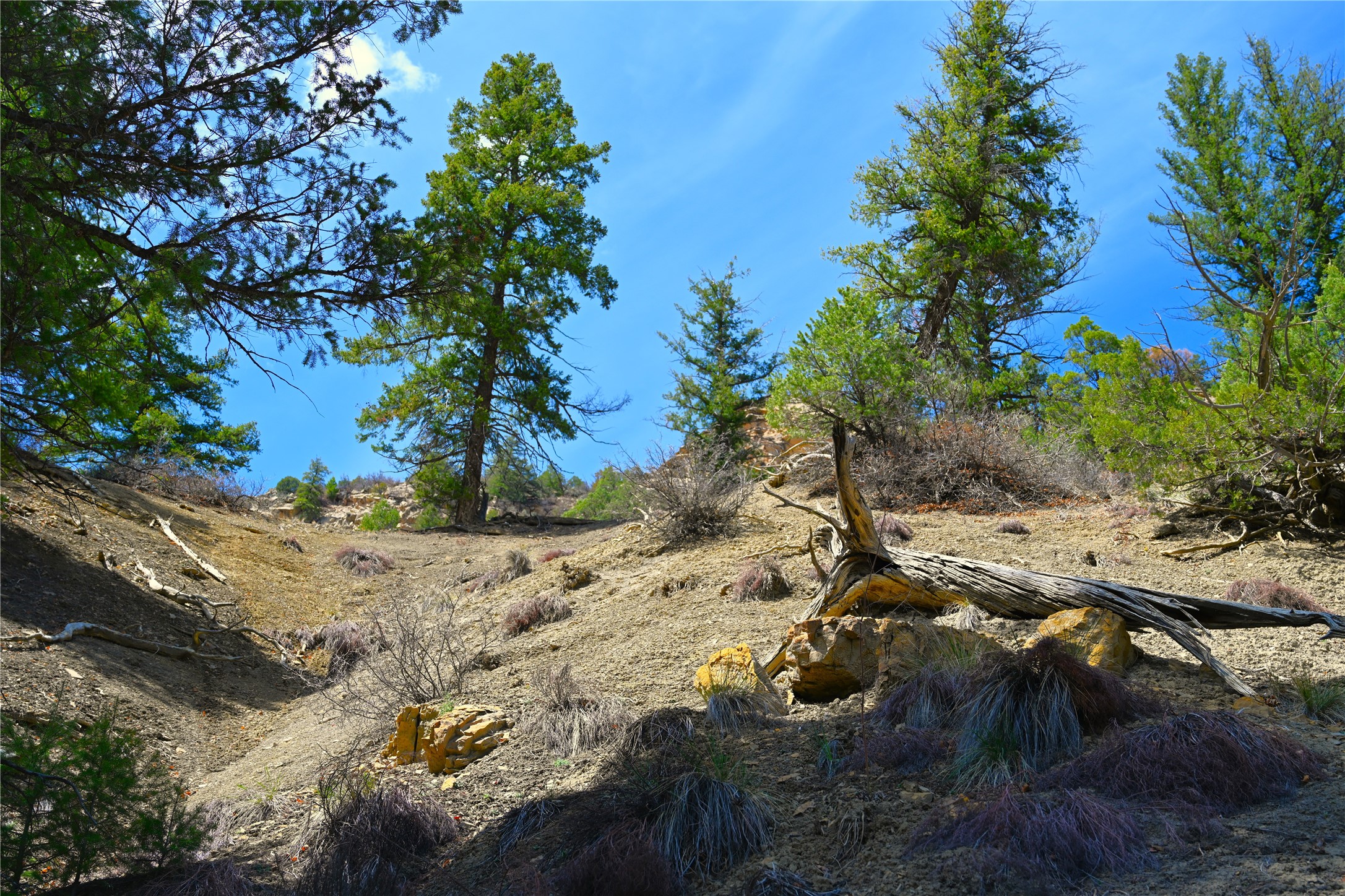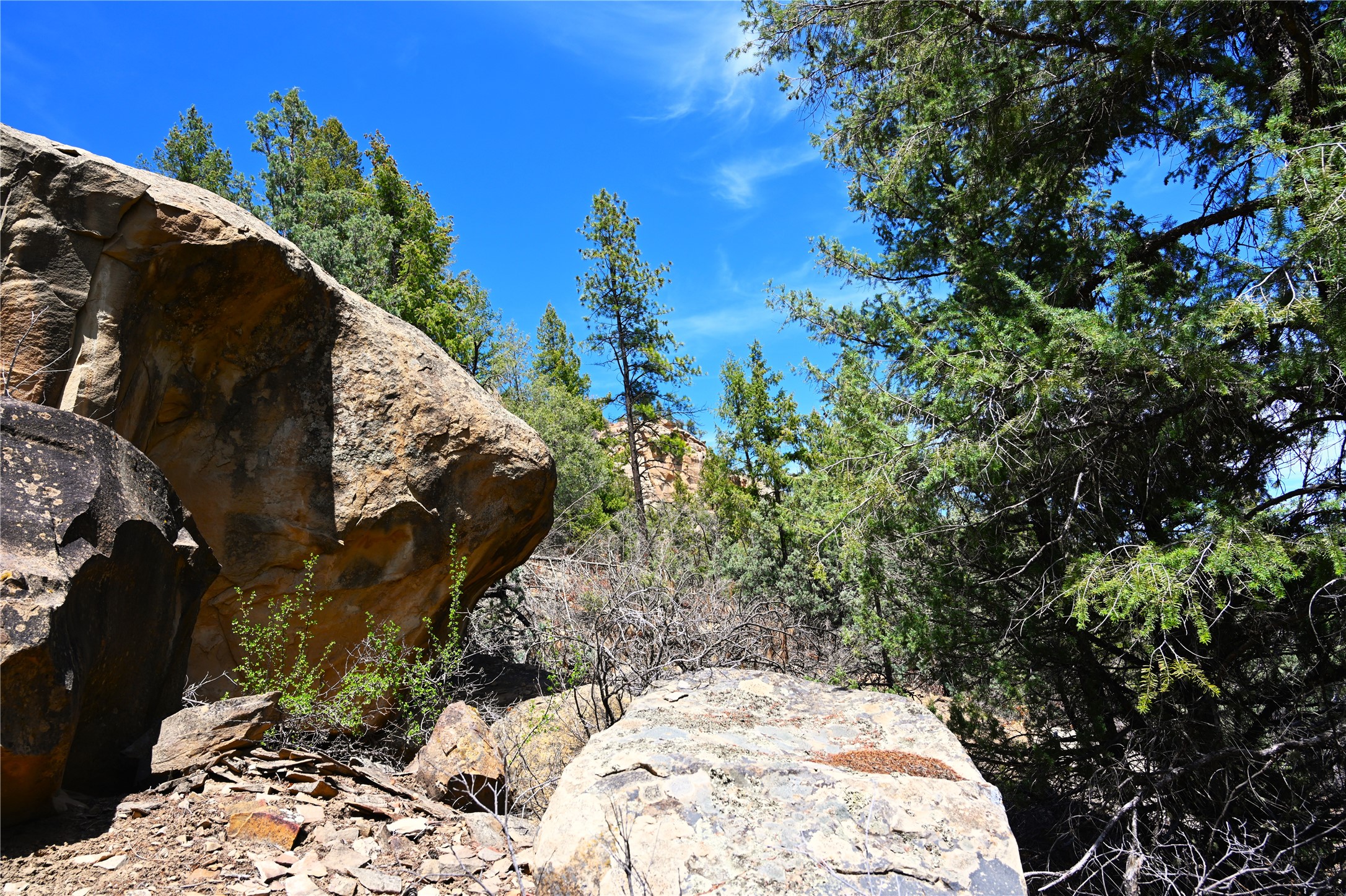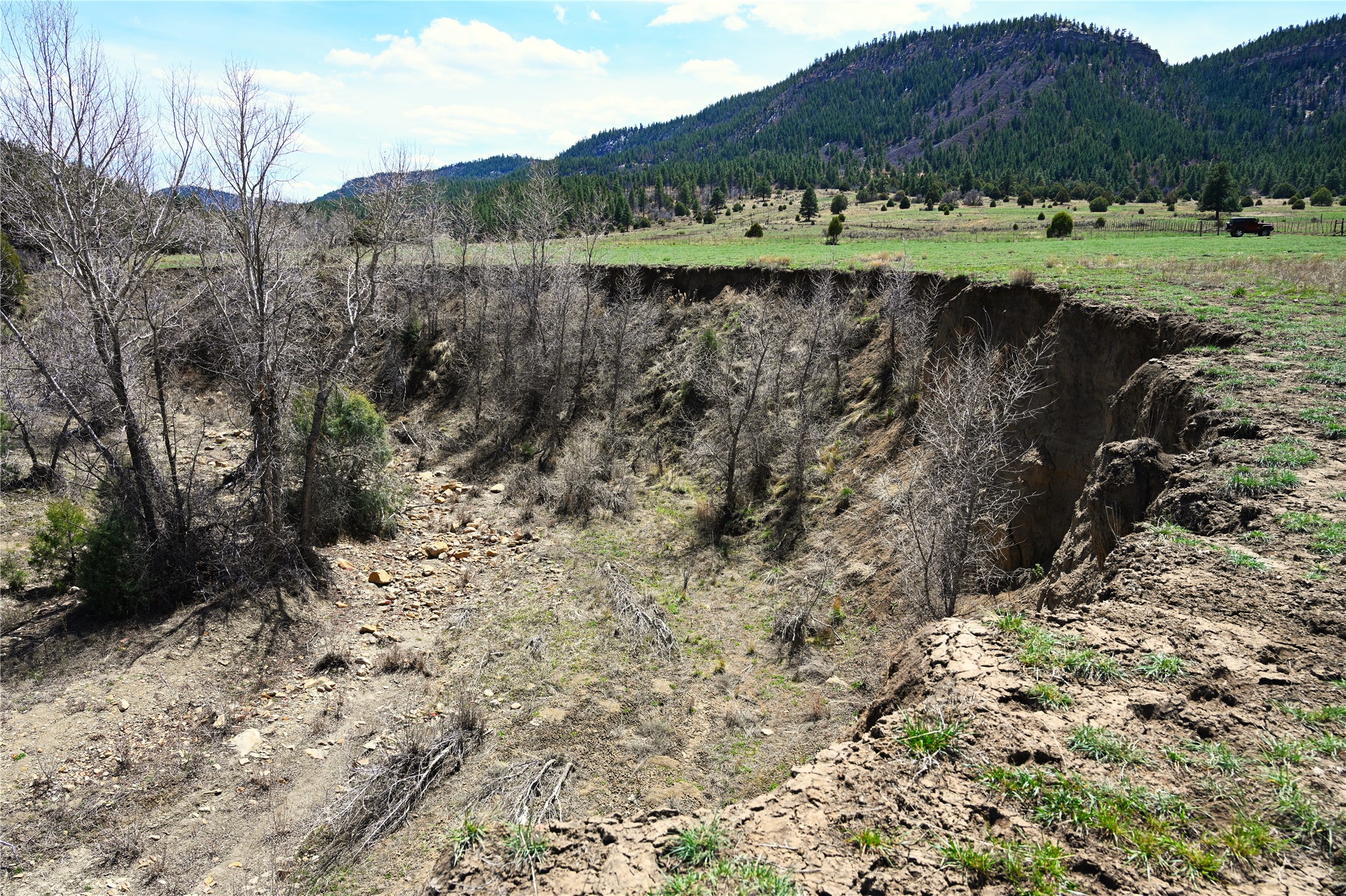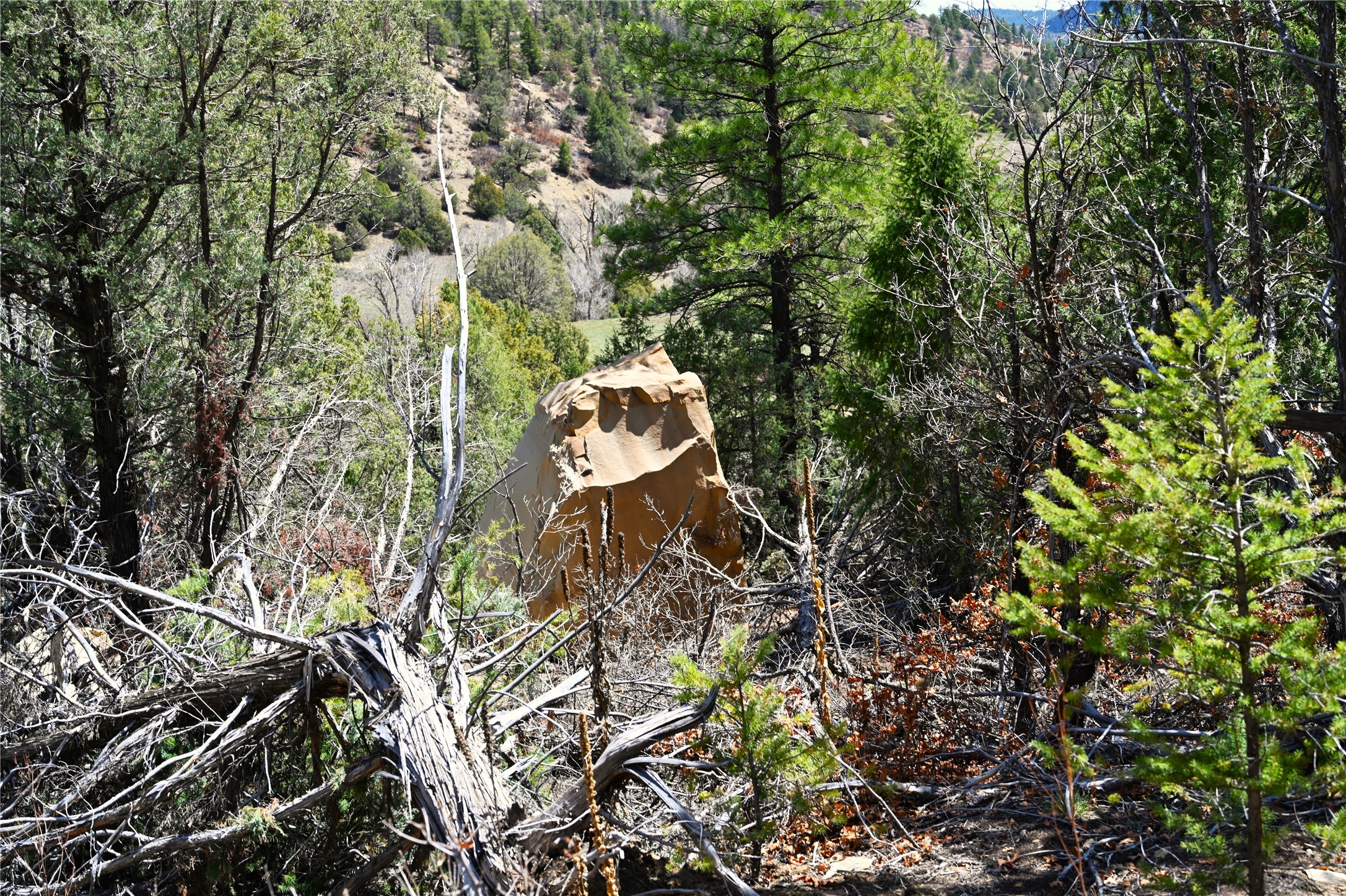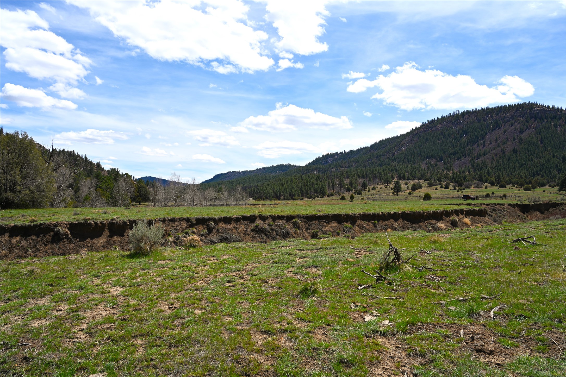 Northern New Mexico off grid property with stunning views. Tall pines Gambrel Oak, nice flat areas to set up camp or that off grid home.. Beautiful rock cliffs on the west side. Elk ,Mule Deer, Turkey and Bear roam these areas.. Property has been assigned an Elk Tag in the past, but not guaranteed every year , new owners would have to check with NMFGD.. Seasonal creek. Backs up to all private Ranches. 7250 feet in elevation. Property on both sides of Cr 352.