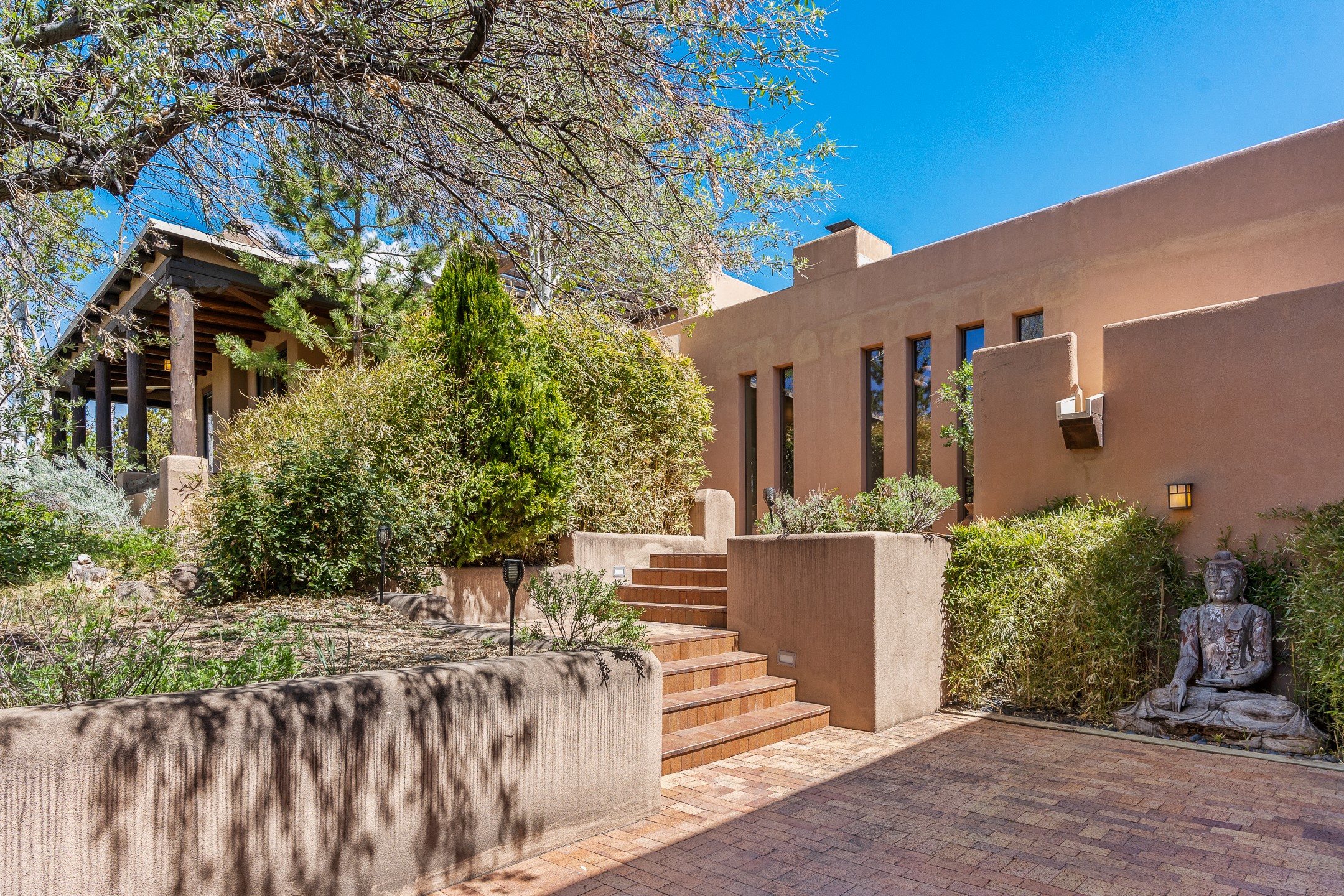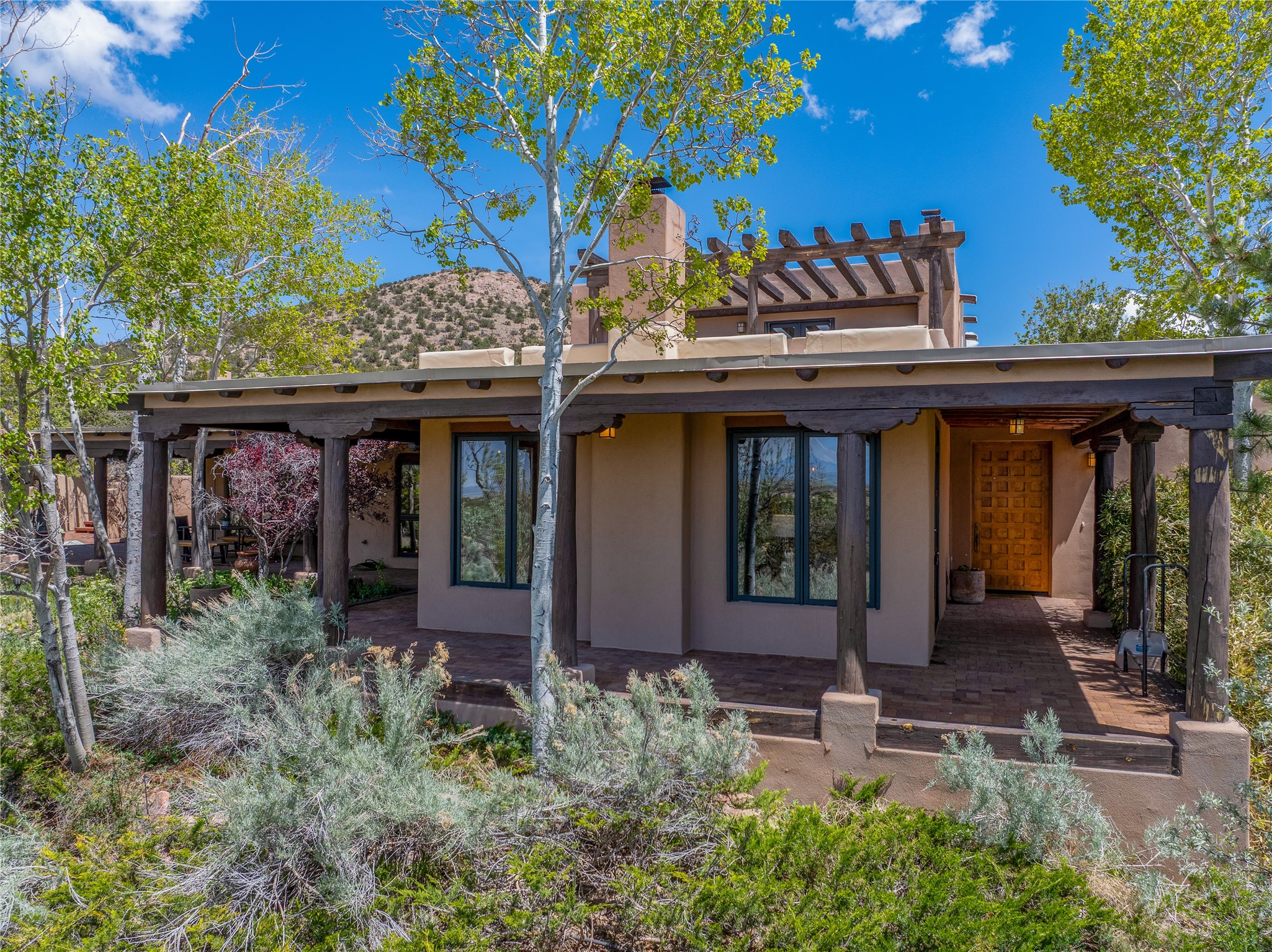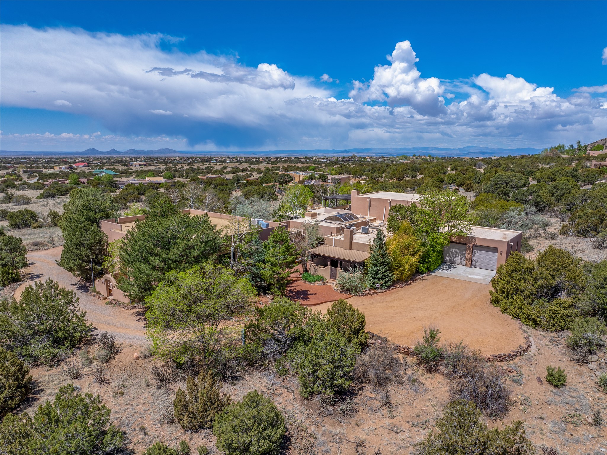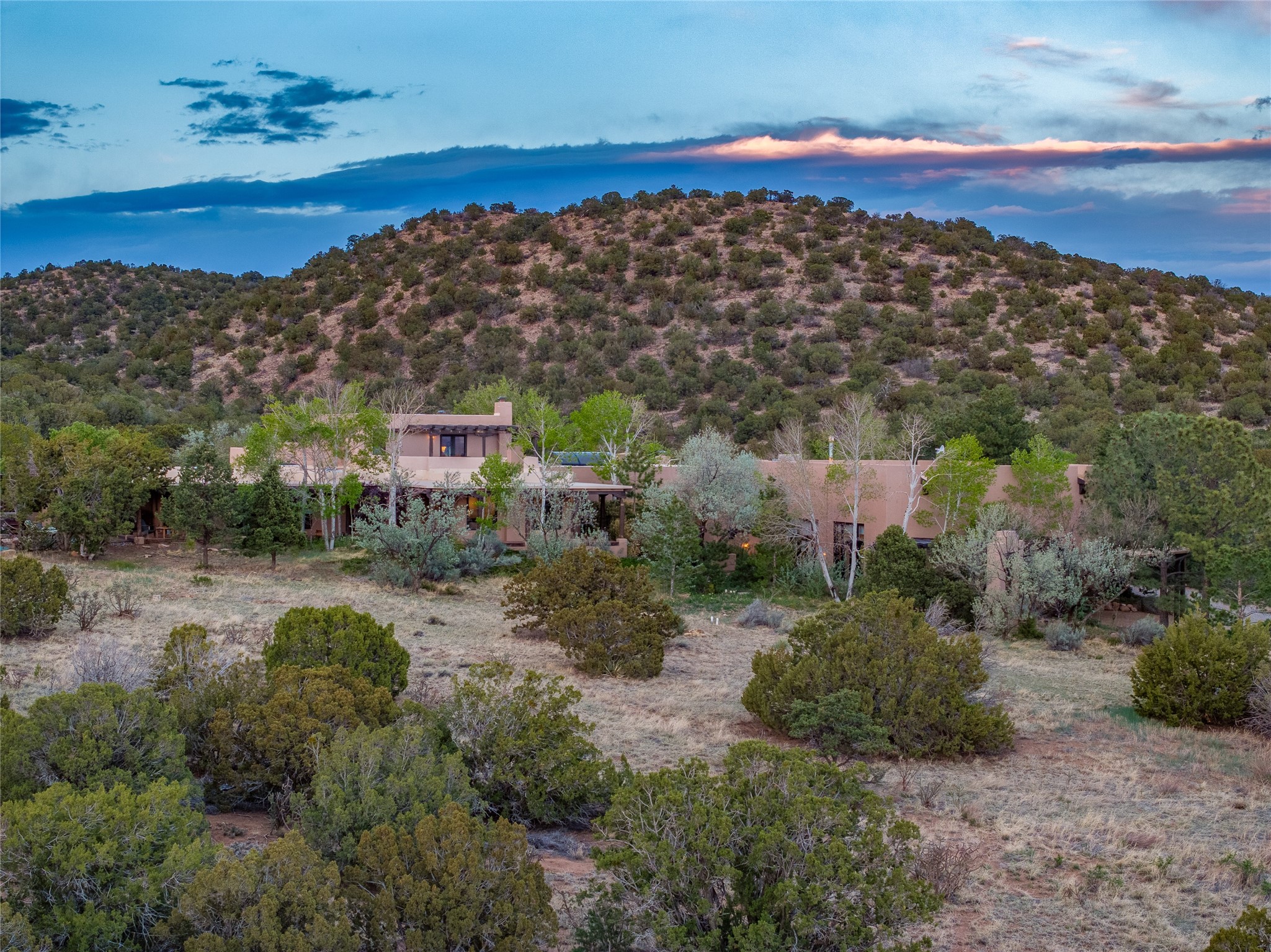 Incredible, rare, and versatile live/work opportunity off HWY 285.Situated on 11.07 acres, this unique property blends Santa Fe's old-world charm with modern style, offering a 5,481 sq. ft. main house and a 3539 sq. ft. guest house/studio. There are 4 large bedrooms, 2 full bathrooms, 3 3/4 bathrooms and 4 half-baths on the property. A large 2-car garage boosts additional space for storage and a small workshop area. Bordering the 4,000-acre Eldorado Preserve, there is also a 2,400 sq. ft. Morton barn with four oversized stalls. The remodeled main house features a European-inspired design with a gourmet kitchen, designer fixtures, and multiple Kiva fireplaces. The guest house/studio area, accessible via several entrances, includes a bright gallery space, a loft, 2 offices, and a reception space with 16-foot ceiling heights. Outdoor living areas boast covered portals, patios, and a moss rock pond, creating a serene private retreat close to shopping and amenities.