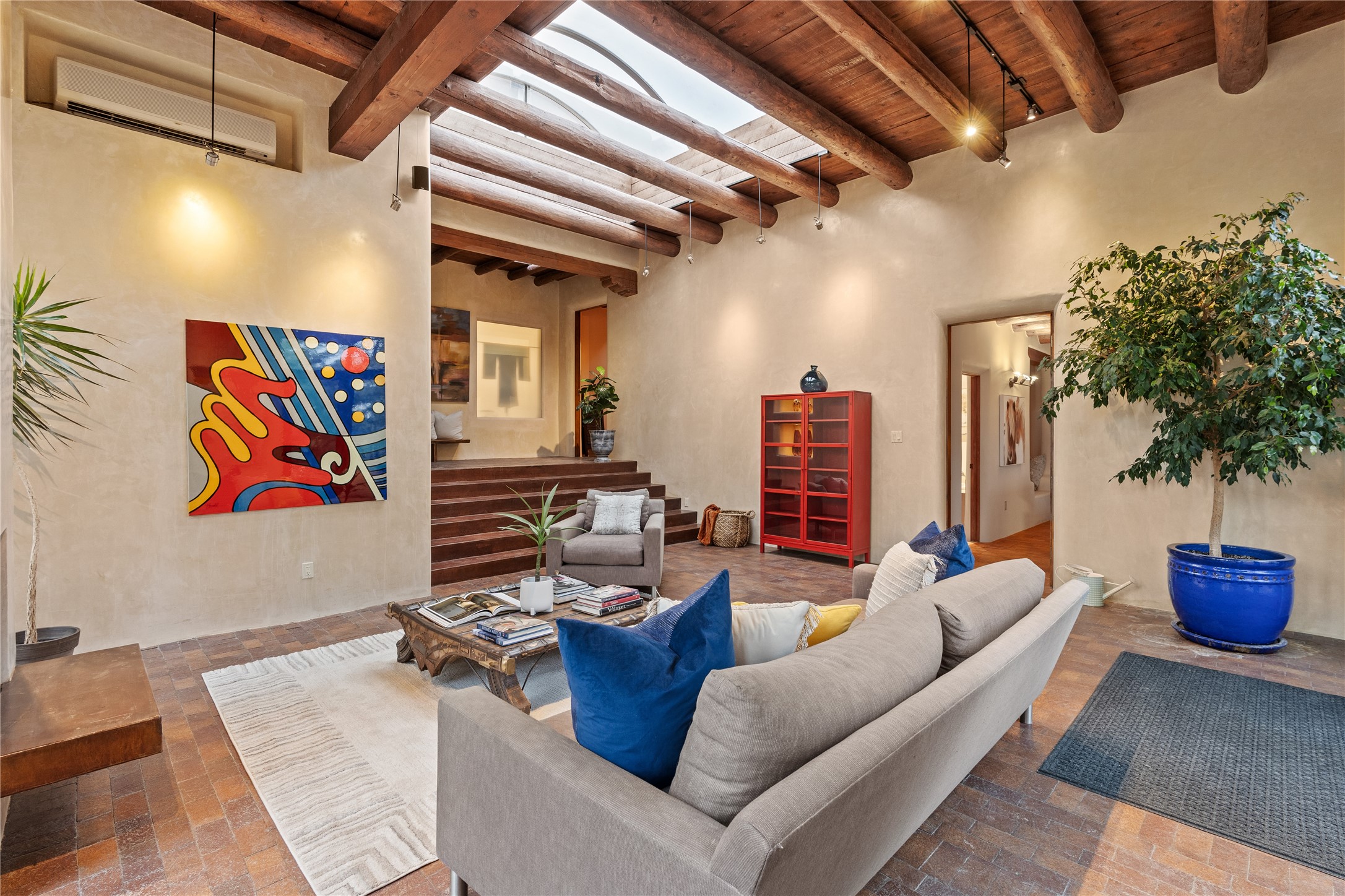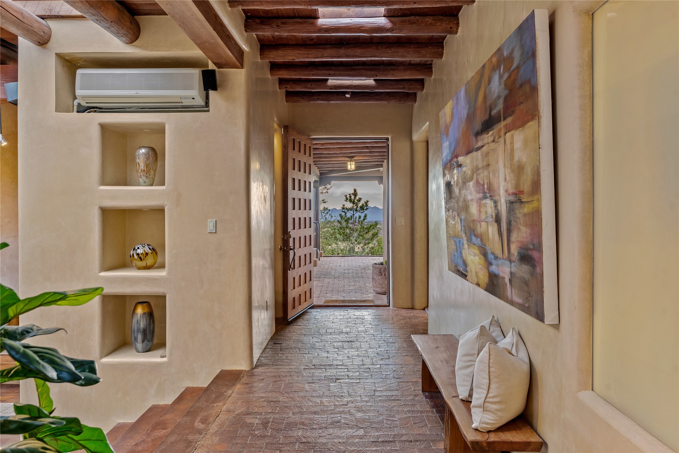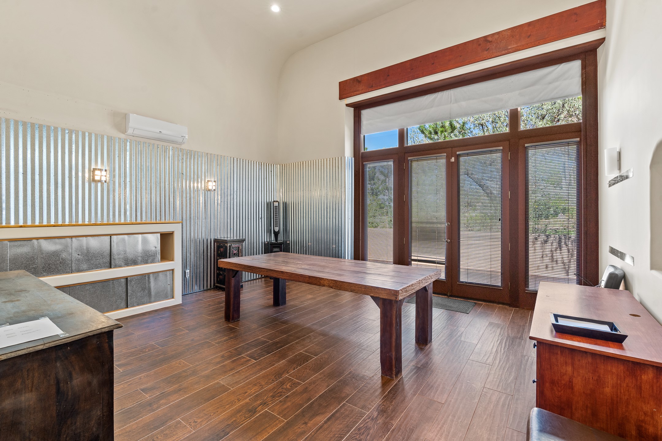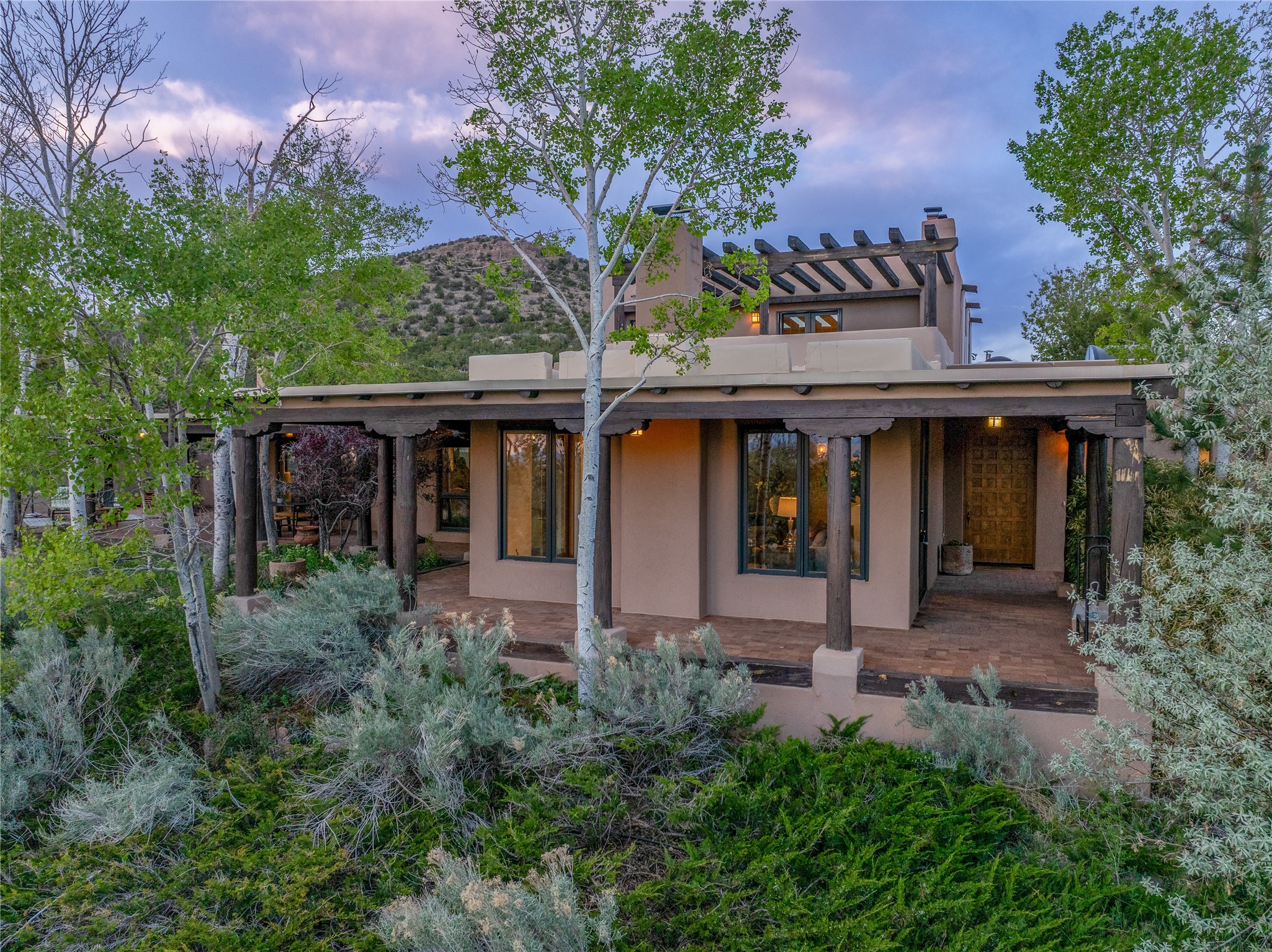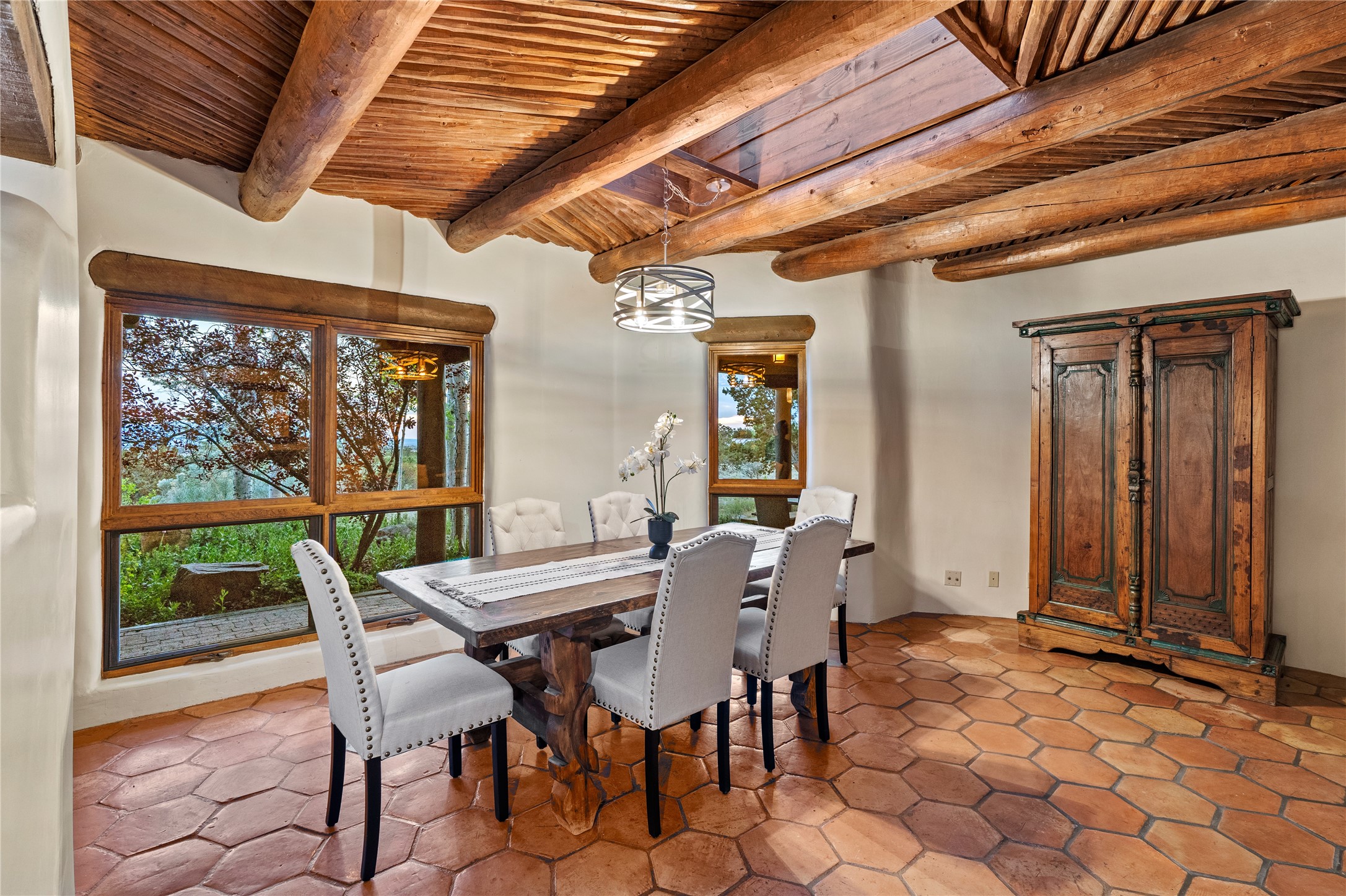 Incredible, rare, and versatile live/work opportunity off HWY 285.Situated on 11.07 acres, this unique property blends Santa Fe's old-world charm with modern style, offering a 5,481 sq. ft. main house and a 3539 sq. ft. guest house/studio. There are 4 large bedrooms, 2 full bathrooms, 3 3/4 bathrooms and 4 half-baths on the property. A large 2-car garage boosts additional space for storage and a small workshop area. Bordering the 4,000-acre Eldorado Preserve, there is also a 2,400 sq. ft. Morton barn with four oversized stalls. The remodeled main house features a European-inspired design with a gourmet kitchen, designer fixtures, and multiple Kiva fireplaces. The guest house/studio area, accessible via several entrances, includes a bright gallery space, a loft, 2 offices, and a reception space with 16-foot ceiling heights. Outdoor living areas boast covered portals, patios, and a moss rock pond, creating a serene private retreat close to shopping and amenities.