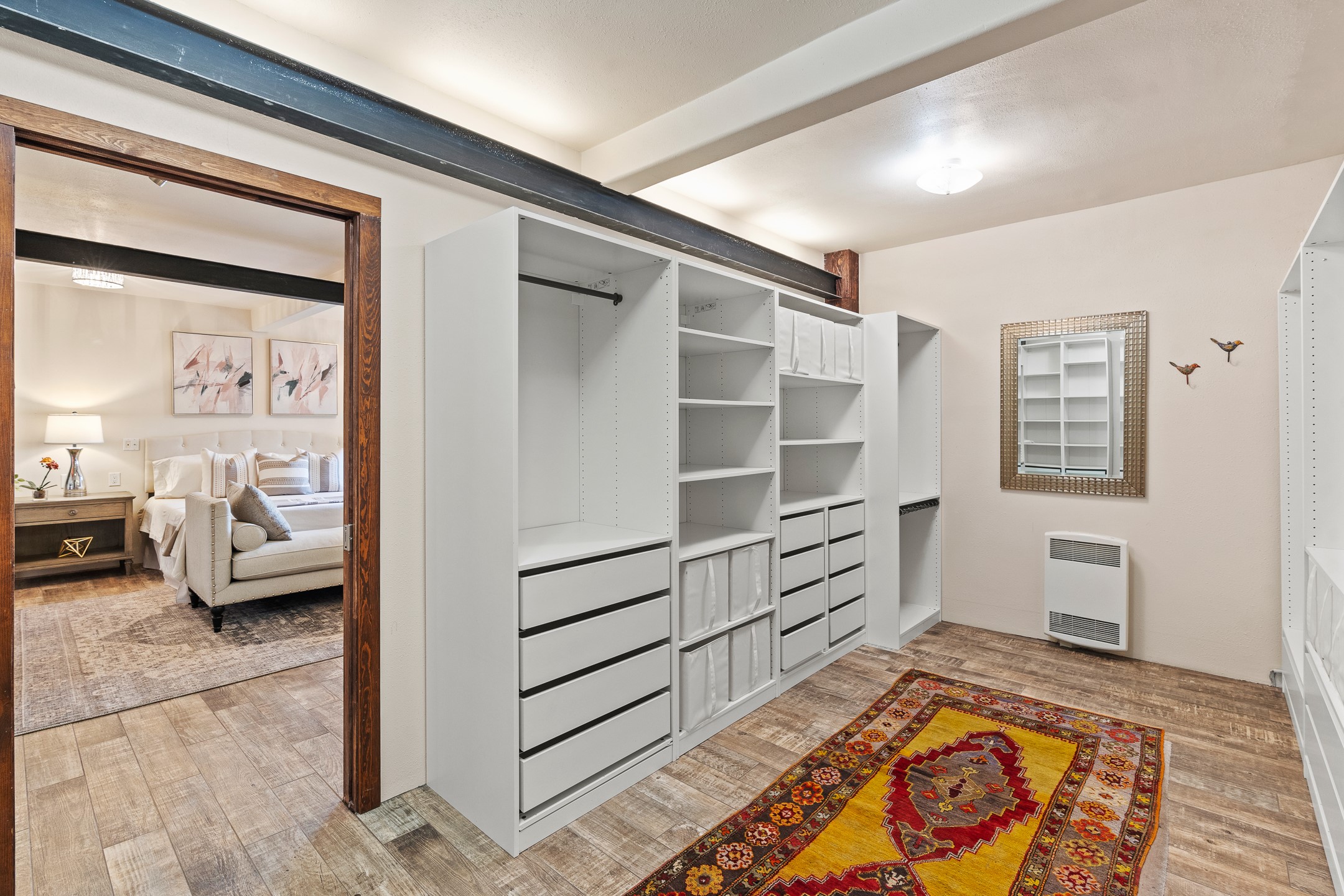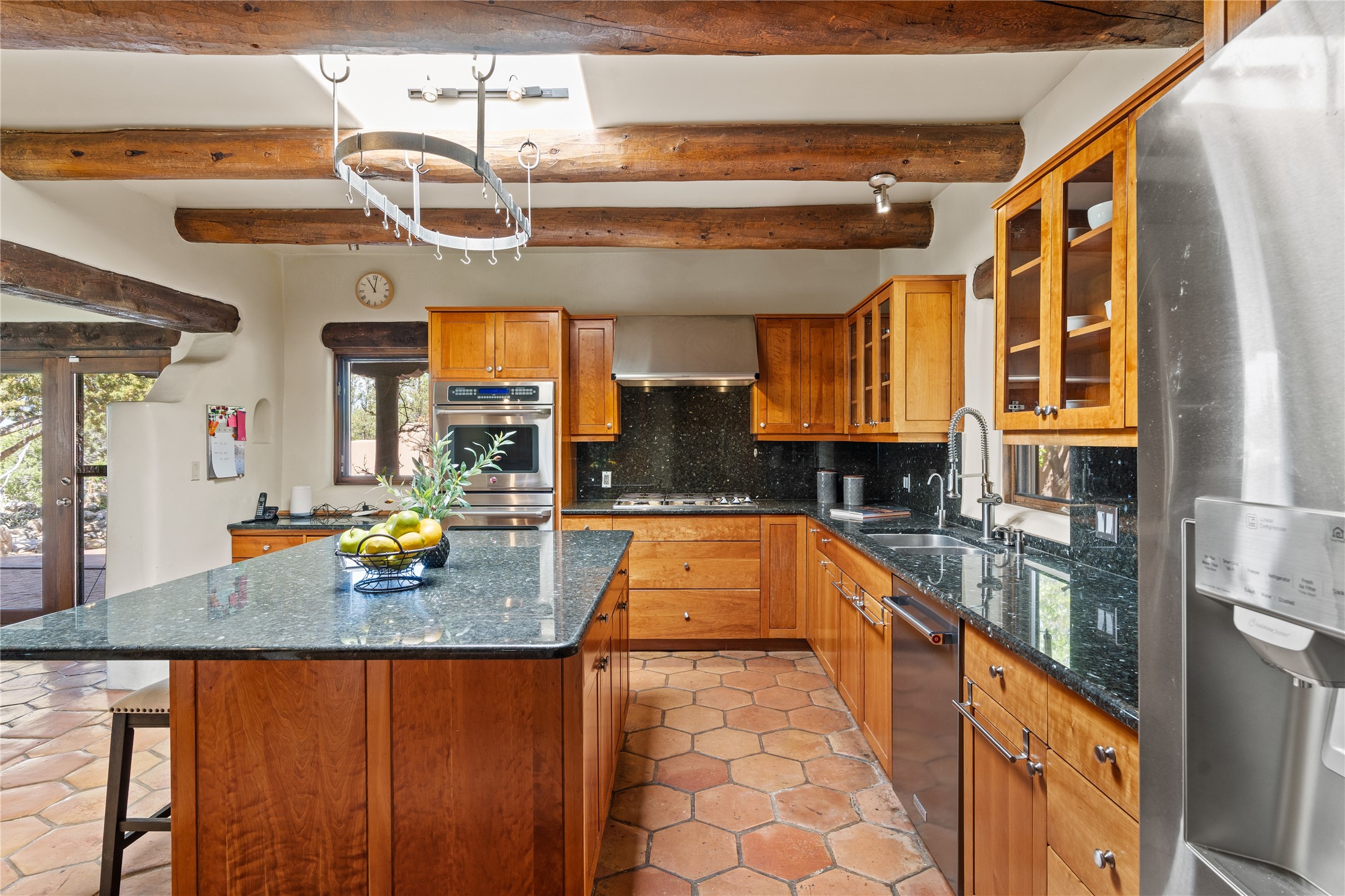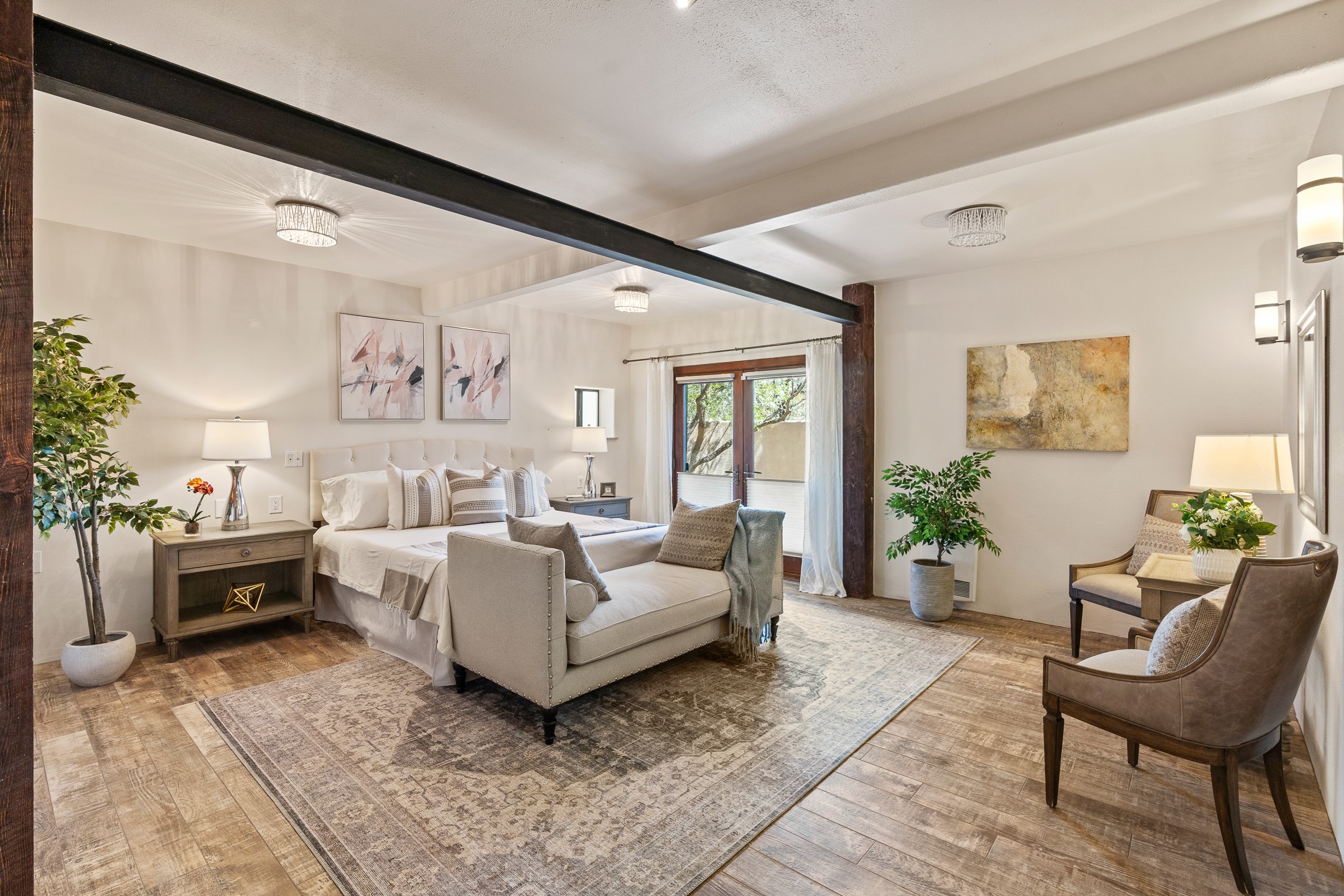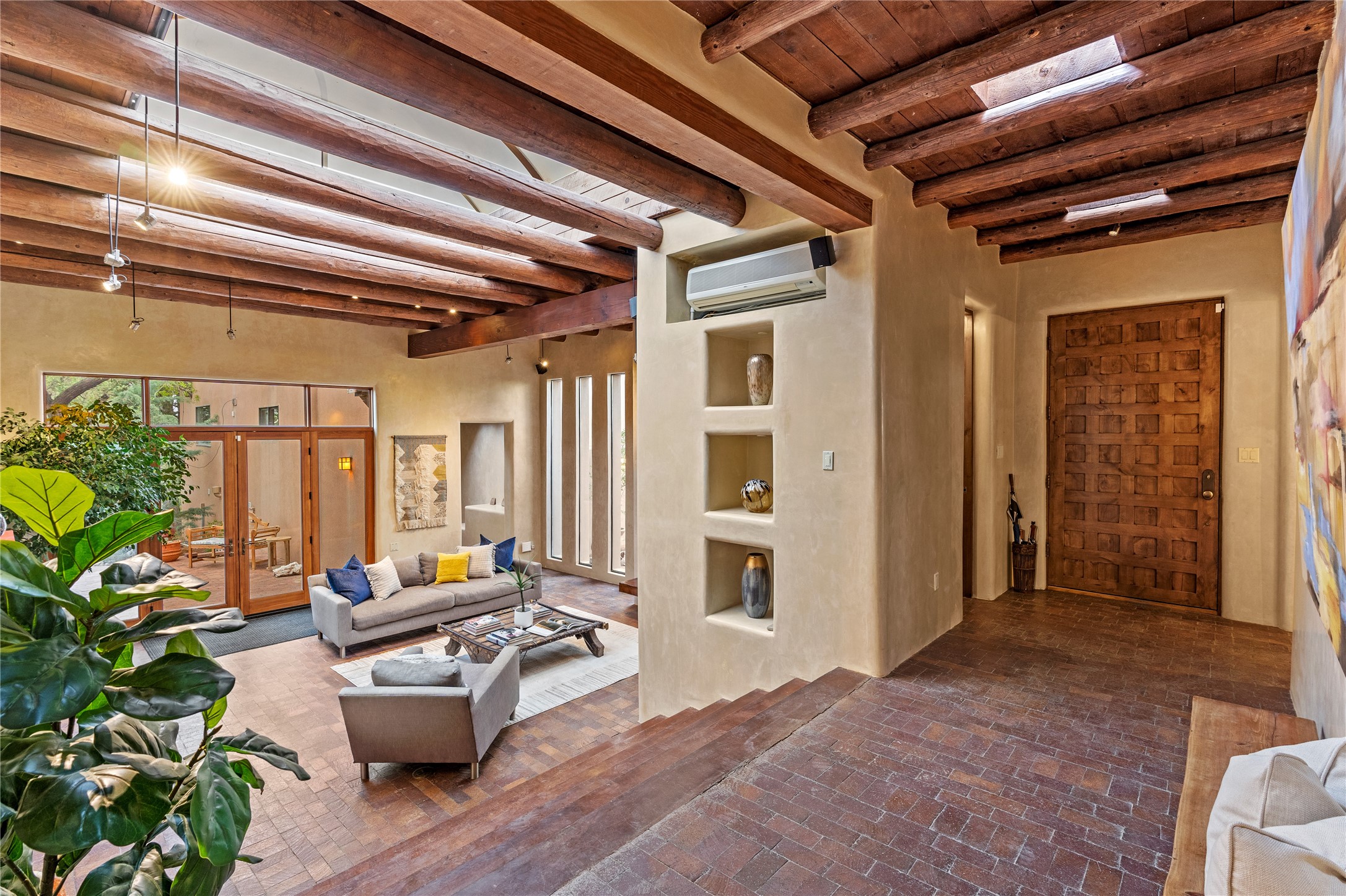 Incredible, rare, and versatile live/work opportunity off HWY 285.Situated on 11.07 acres, this unique property blends Santa Fe's old-world charm with modern style, offering a 5,481 sq. ft. main house and a 3539 sq. ft. guest house/studio. There are 4 large bedrooms, 2 full bathrooms, 3 3/4 bathrooms and 4 half-baths on the property. A large 2-car garage boosts additional space for storage and a small workshop area. Bordering the 4,000-acre Eldorado Preserve, there is also a 2,400 sq. ft. Morton barn with four oversized stalls. The remodeled main house features a European-inspired design with a gourmet kitchen, designer fixtures, and multiple Kiva fireplaces. The guest house/studio area, accessible via several entrances, includes a bright gallery space, a loft, 2 offices, and a reception space with 16-foot ceiling heights. Outdoor living areas boast covered portals, patios, and a moss rock pond, creating a serene private retreat close to shopping and amenities.