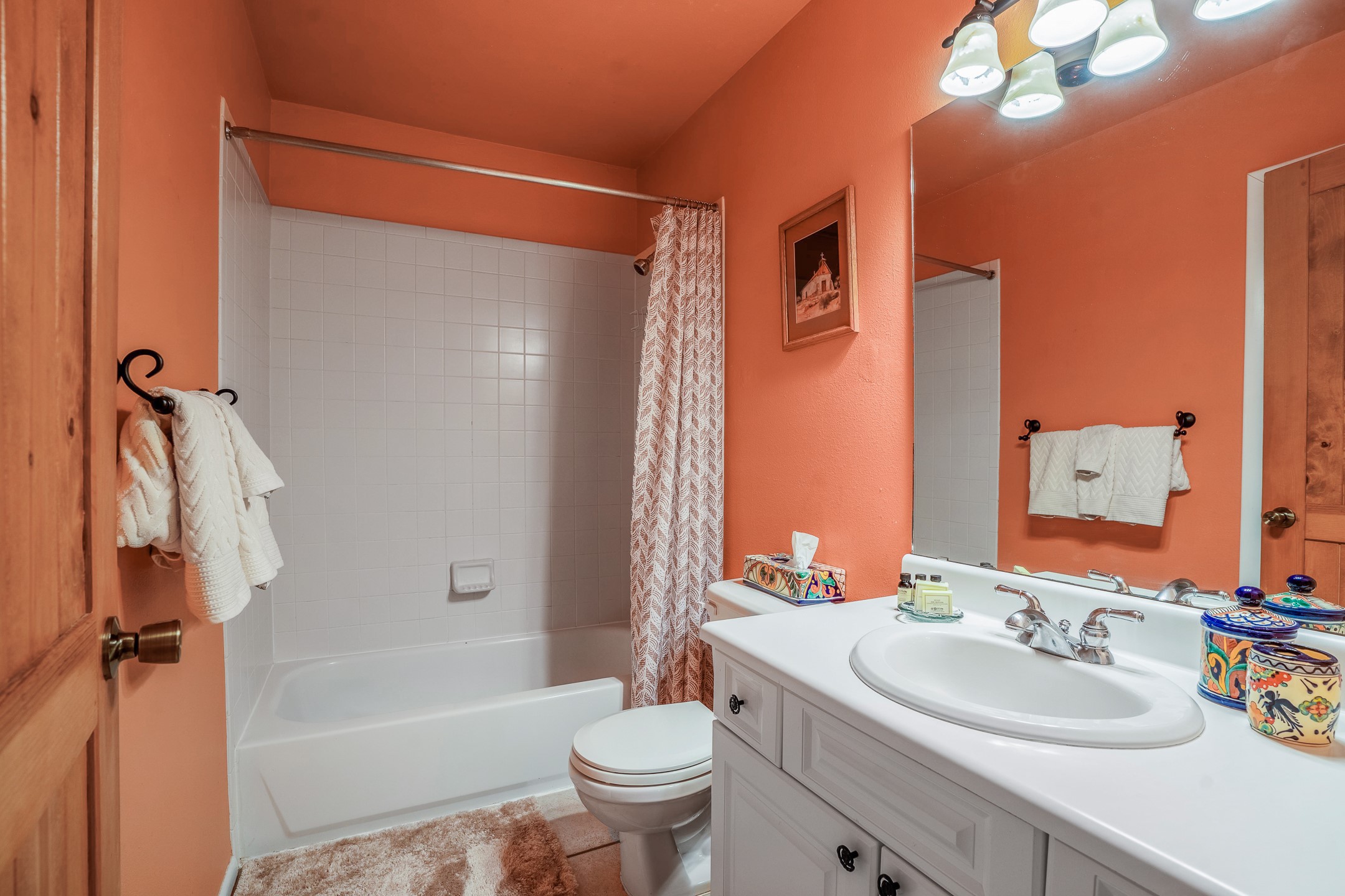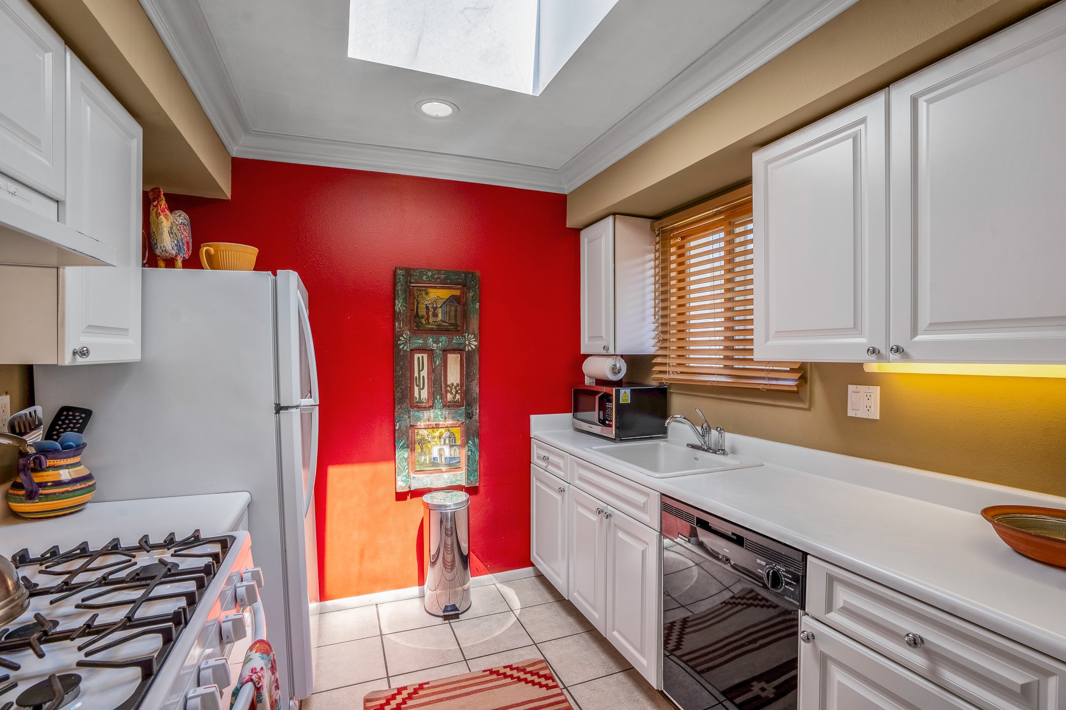 This second-floor condo has a warm and bright interior and offers a very spacious feel. The front patio is generously sized and can be accessed from the living room and the bedroom through 2 sets of French doors. This gated community is ideally located just a few blocks north of the downtown plaza, and across the street from the Fort Marcy Sports Complex, which offers a large park, pickle ball courts, a workout facility and indoor pool. The El Matador Condominiums feature a gated entrance and a beautiful and lush interior courtyard. There is one reserved space in the carport, and several guest parking spots. The condo has refrigerated central air-conditioning and forced-air heat, and a gas fireplace. Ideal for investors, and as a part-time home. Some furnishings included with sale at no additional cost. Washer/dryer in condo. Storage locker located off front patio area.