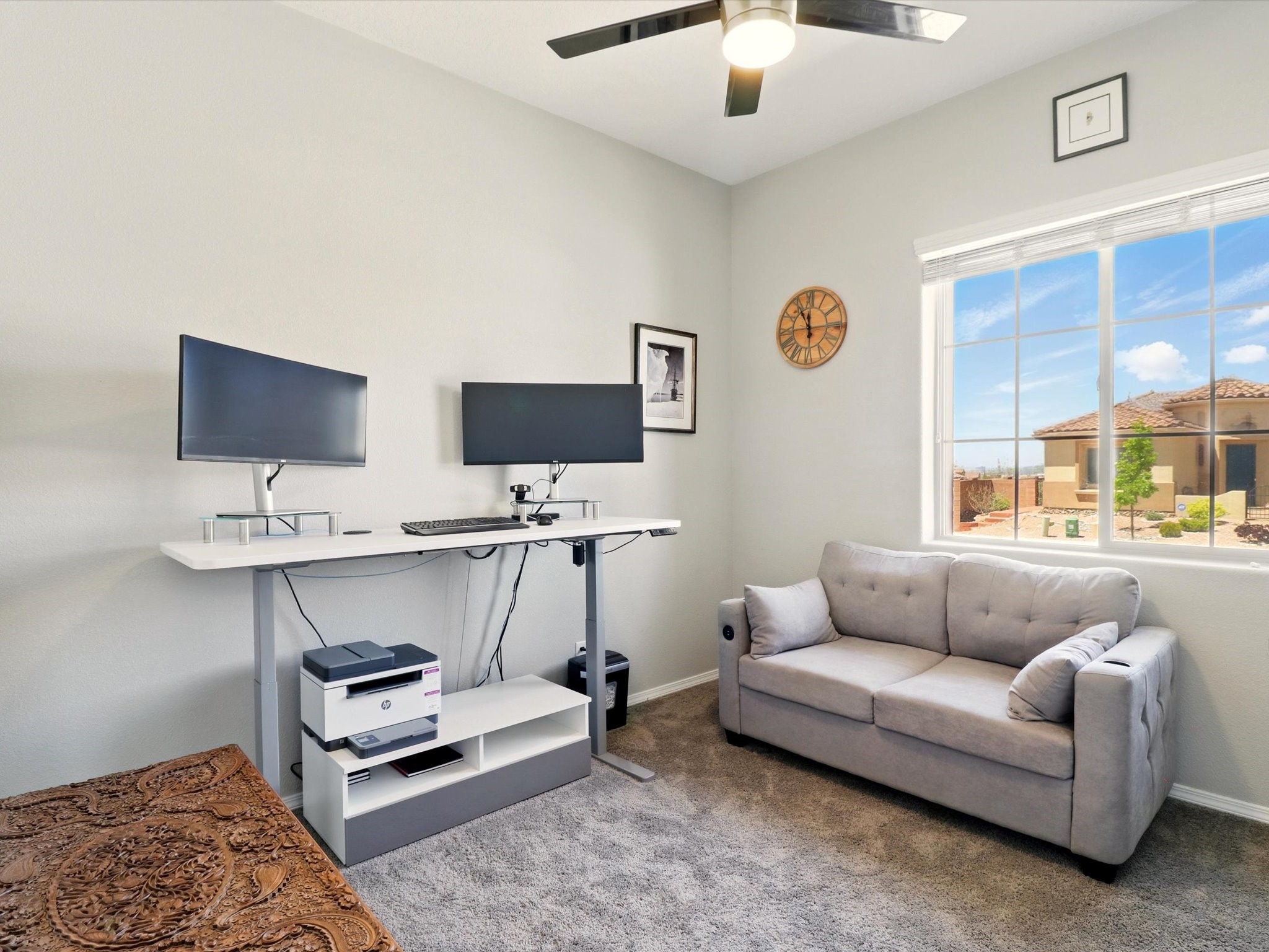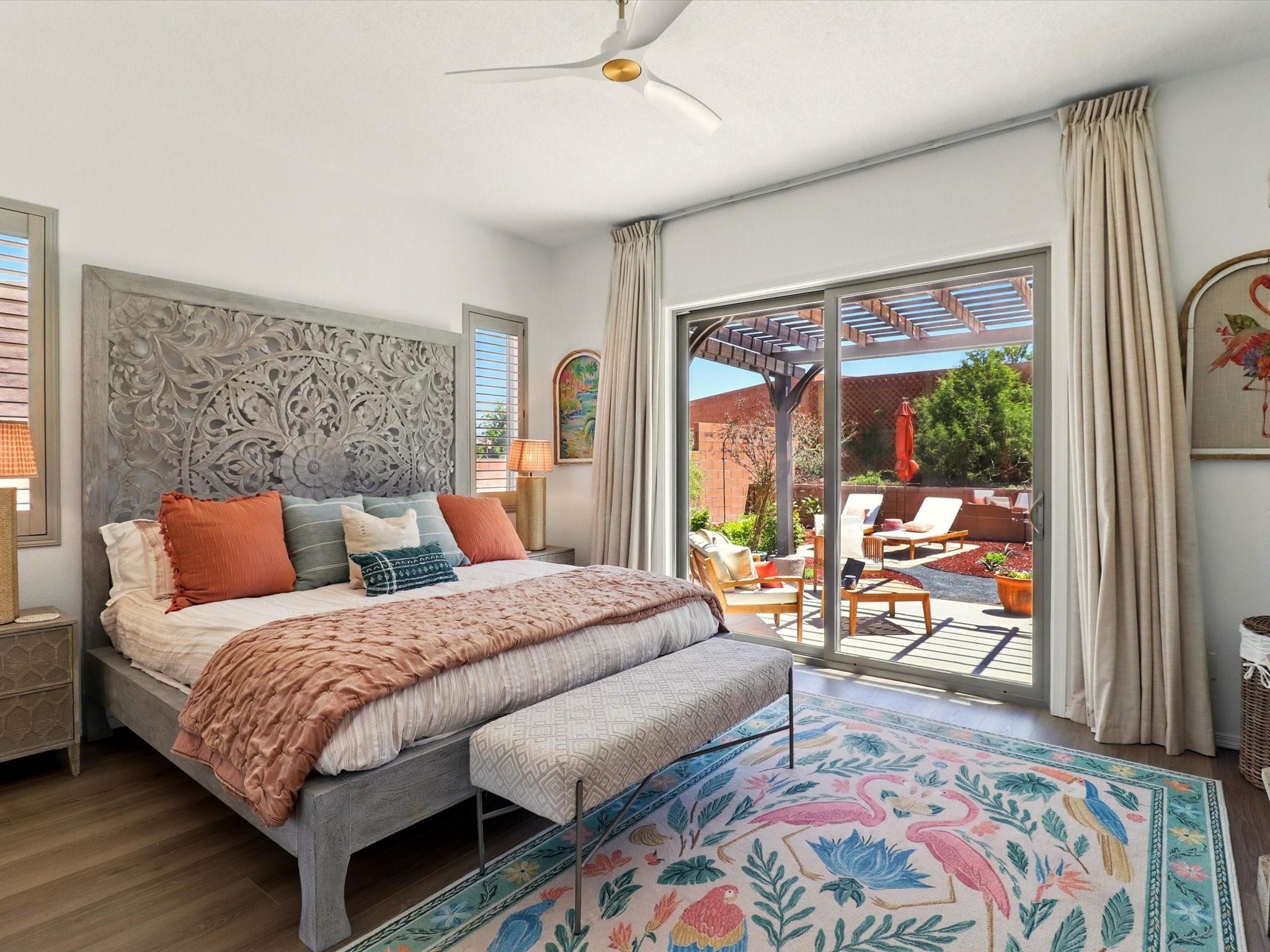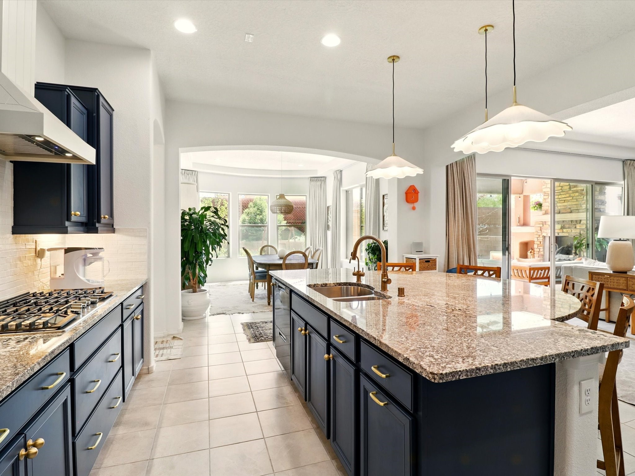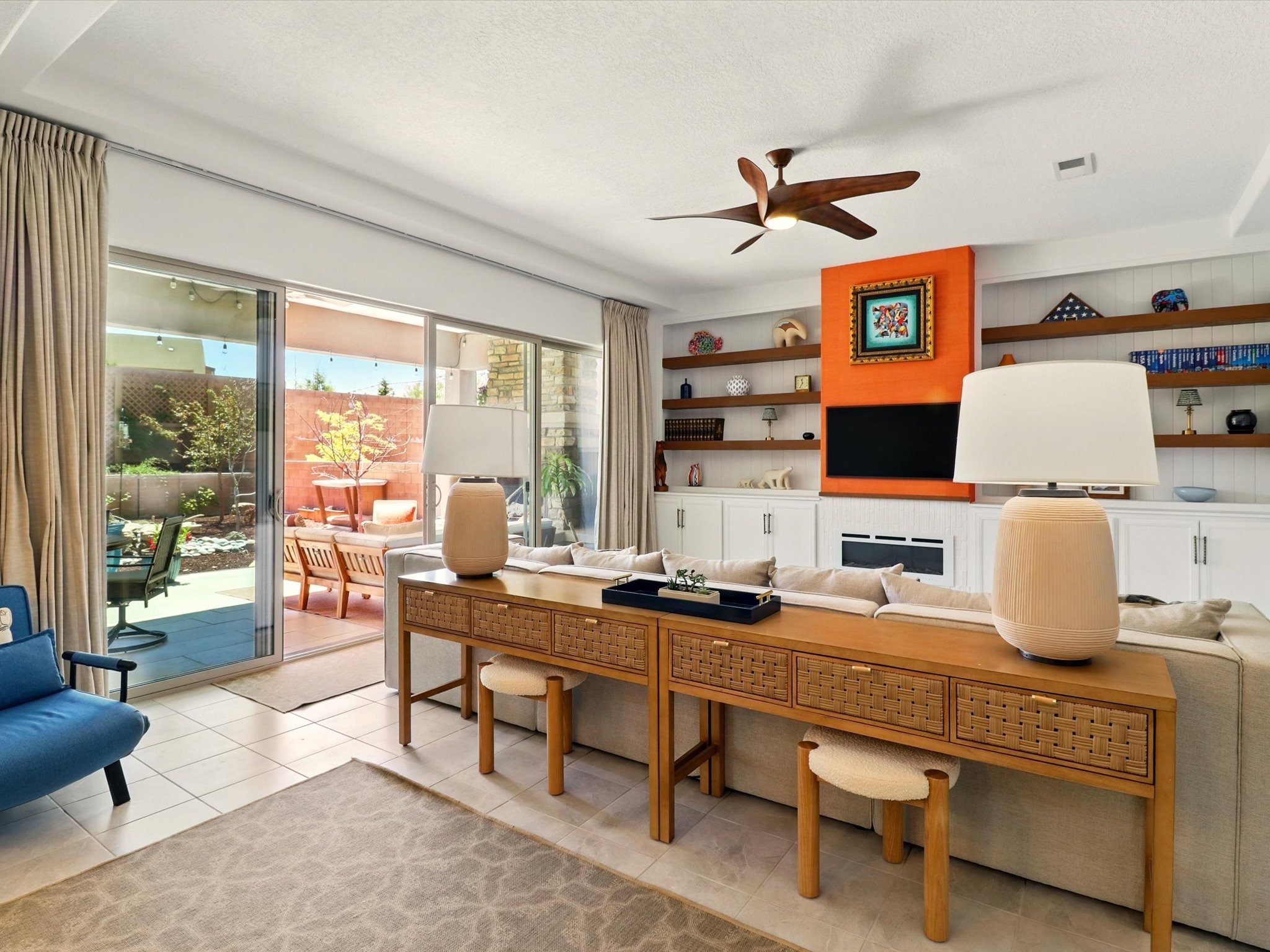 Welcome to a perfect blend of style and functionality in this beautifully appointed 3-bedroom, 2-bath home located in the highly desirable Las Soleras community. From the moment you enter, you're welcomed by a bright, versatile flex room--ideal for a home office, studio, or den--setting the tone for the open-concept living space that follows.Soaked in natural light, the spacious living and dining areas flow seamlessly into a chef-inspired kitchen featuring an in-wall Whirlpool oven and microwave combo, a sleek Samsung refrigerator, gas stovetop, and ample cabinetry for all your storage needs. A large pantry adds even more convenience for the home cook or entertainer.The generously sized primary suite offers a peaceful retreat with added Custom sliding doors that lead directly to the backyard. Step outside into your own private haven--beautifully landscaped with gravel and greenery, and extended for true outdoor living with a built-in fireplace, perfect for Santa Fe evenings under the stars.Situated on a .23-acre lot with a two-car garage, this home offers space, comfort, and thoughtful upgrades throughout.