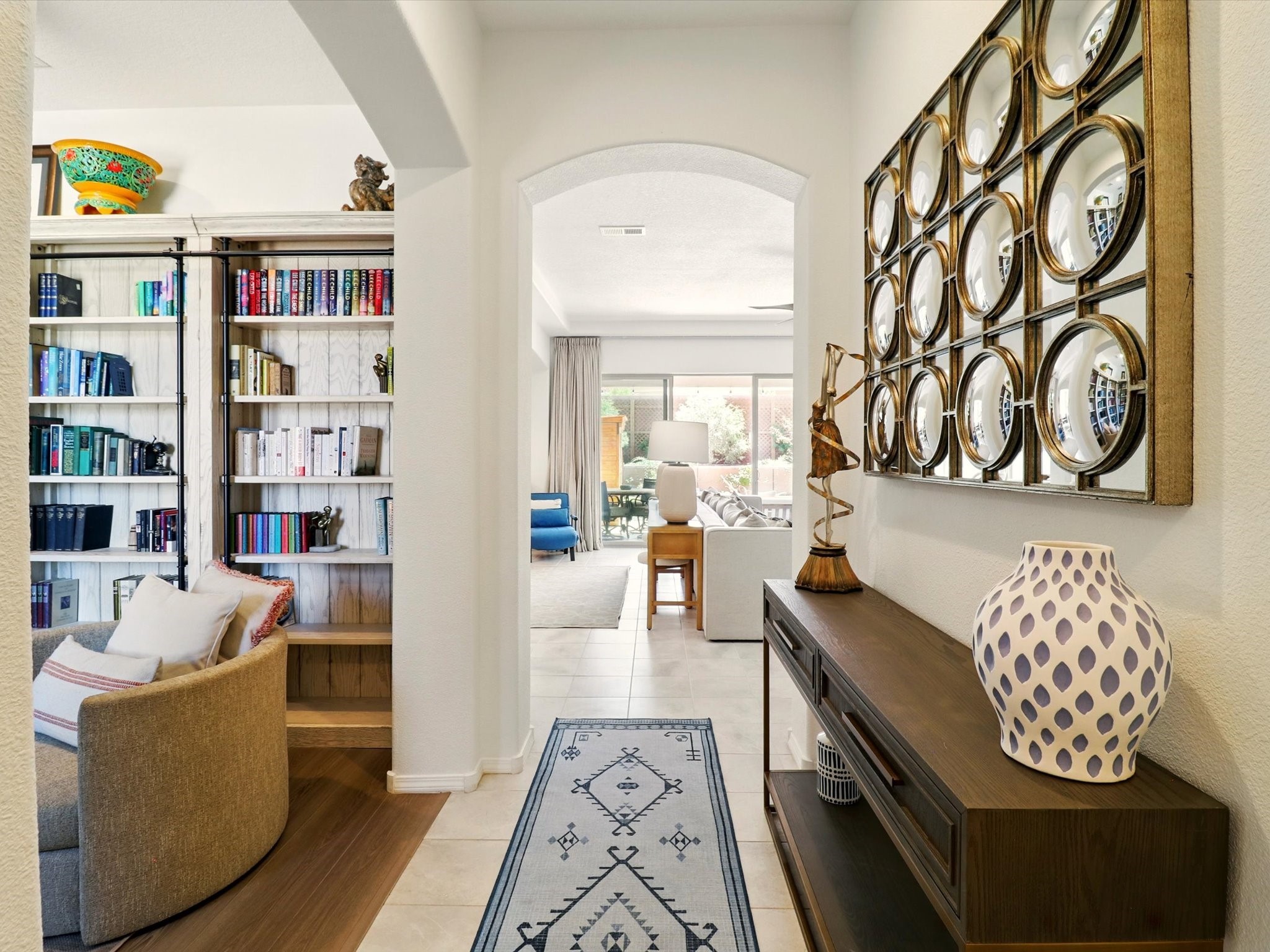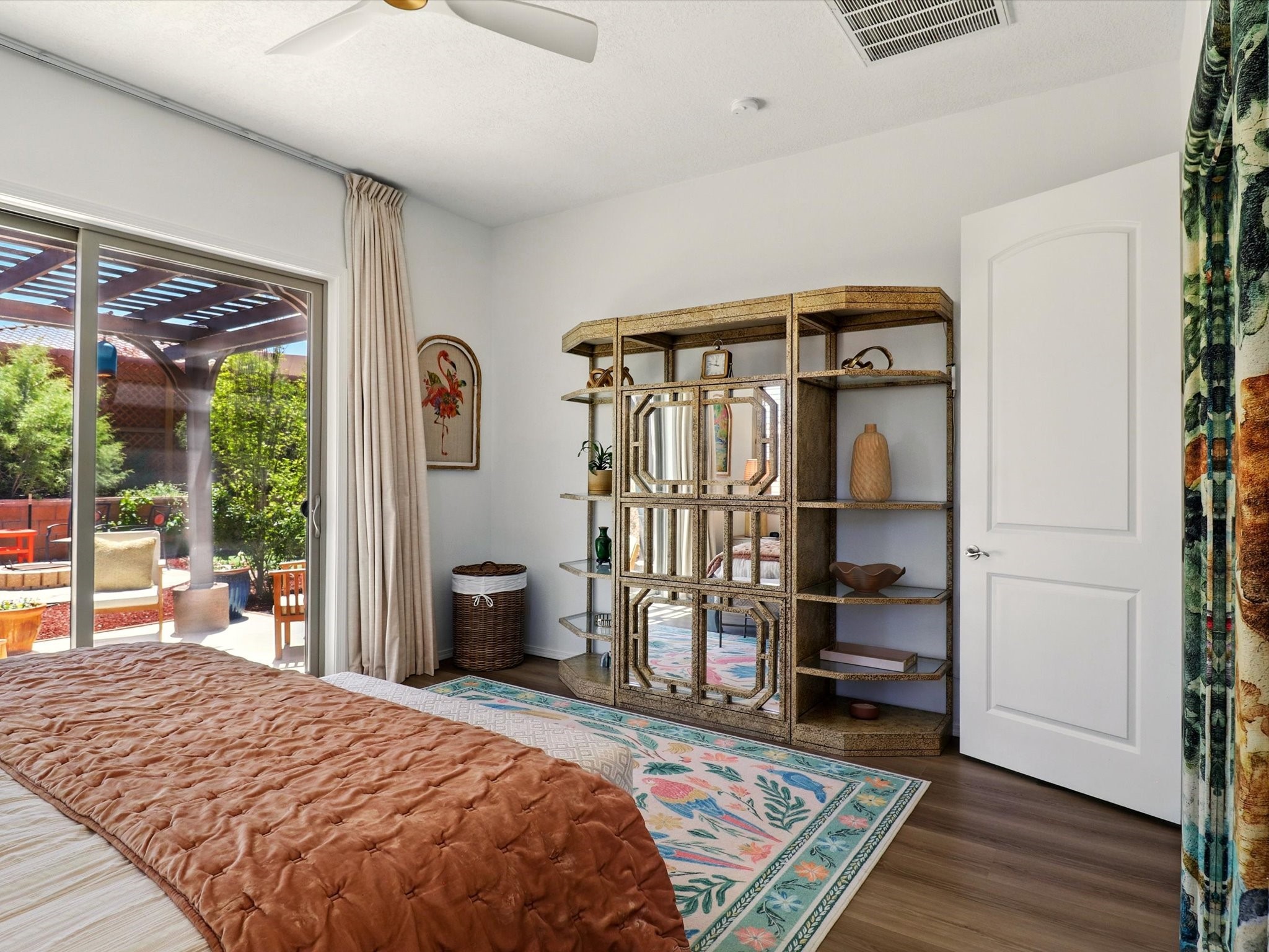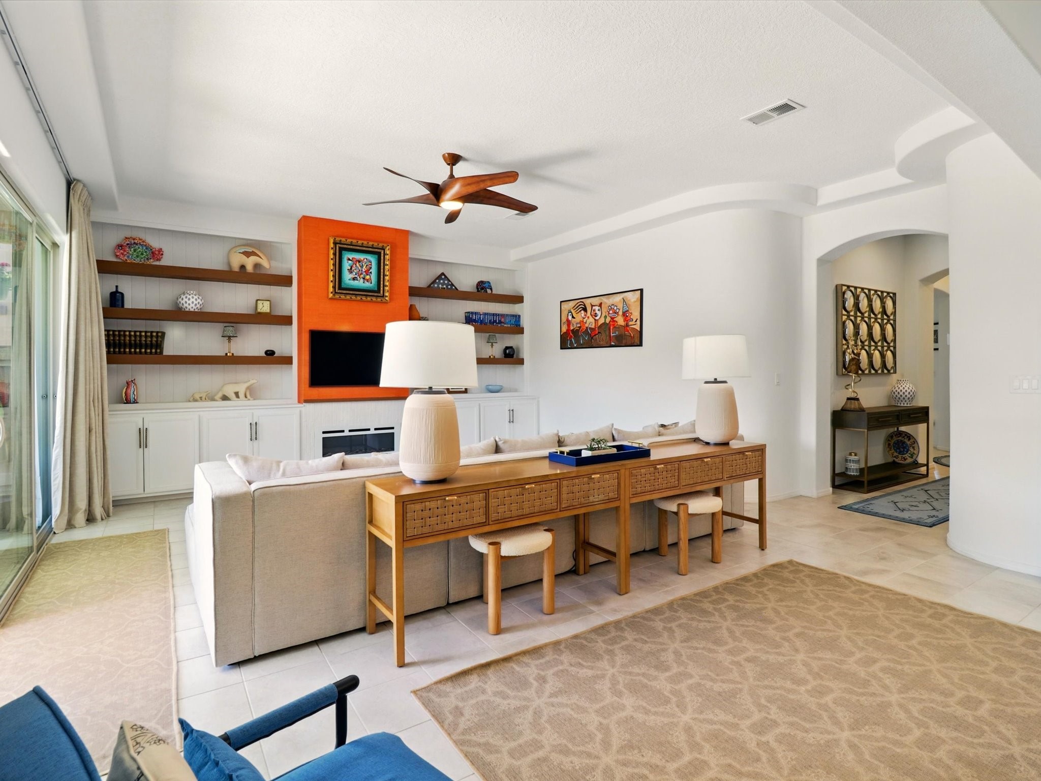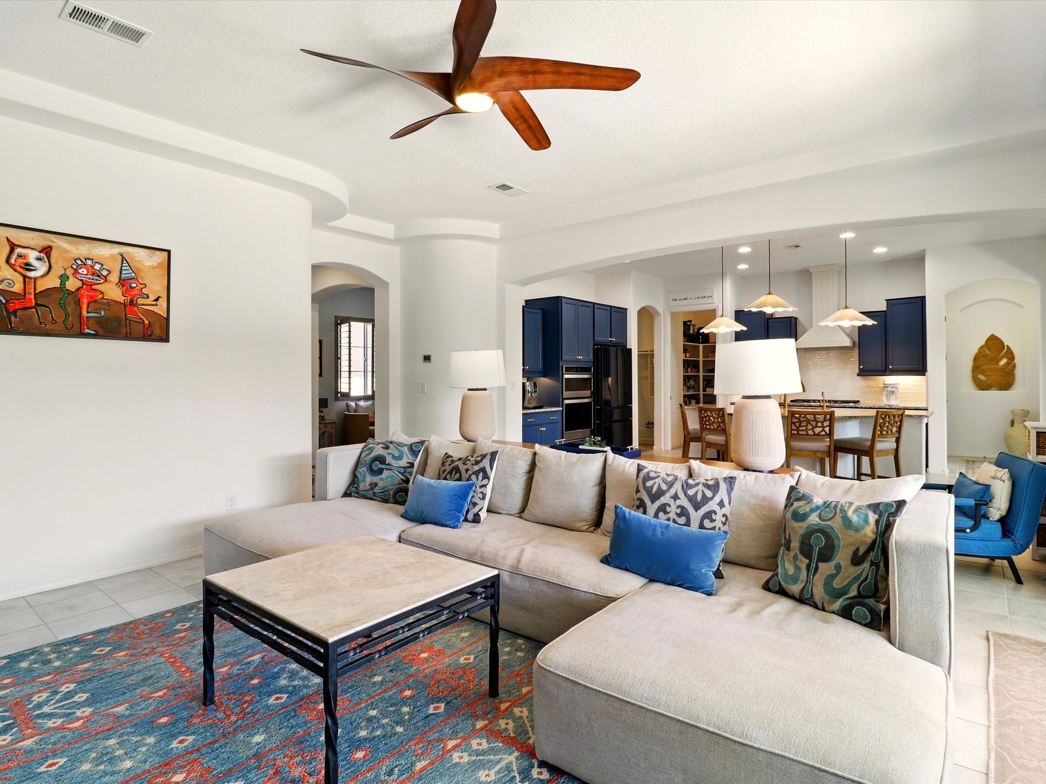 Welcome to a perfect blend of style and functionality in this beautifully appointed 3-bedroom, 2-bath home located in the highly desirable Las Soleras community. From the moment you enter, you're welcomed by a bright, versatile flex room--ideal for a home office, studio, or den--setting the tone for the open-concept living space that follows.Soaked in natural light, the spacious living and dining areas flow seamlessly into a chef-inspired kitchen featuring an in-wall Whirlpool oven and microwave combo, a sleek Samsung refrigerator, gas stovetop, and ample cabinetry for all your storage needs. A large pantry adds even more convenience for the home cook or entertainer.The generously sized primary suite offers a peaceful retreat with added Custom sliding doors that lead directly to the backyard. Step outside into your own private haven--beautifully landscaped with gravel and greenery, and extended for true outdoor living with a built-in fireplace, perfect for Santa Fe evenings under the stars.Situated on a .23-acre lot with a two-car garage, this home offers space, comfort, and thoughtful upgrades throughout.
