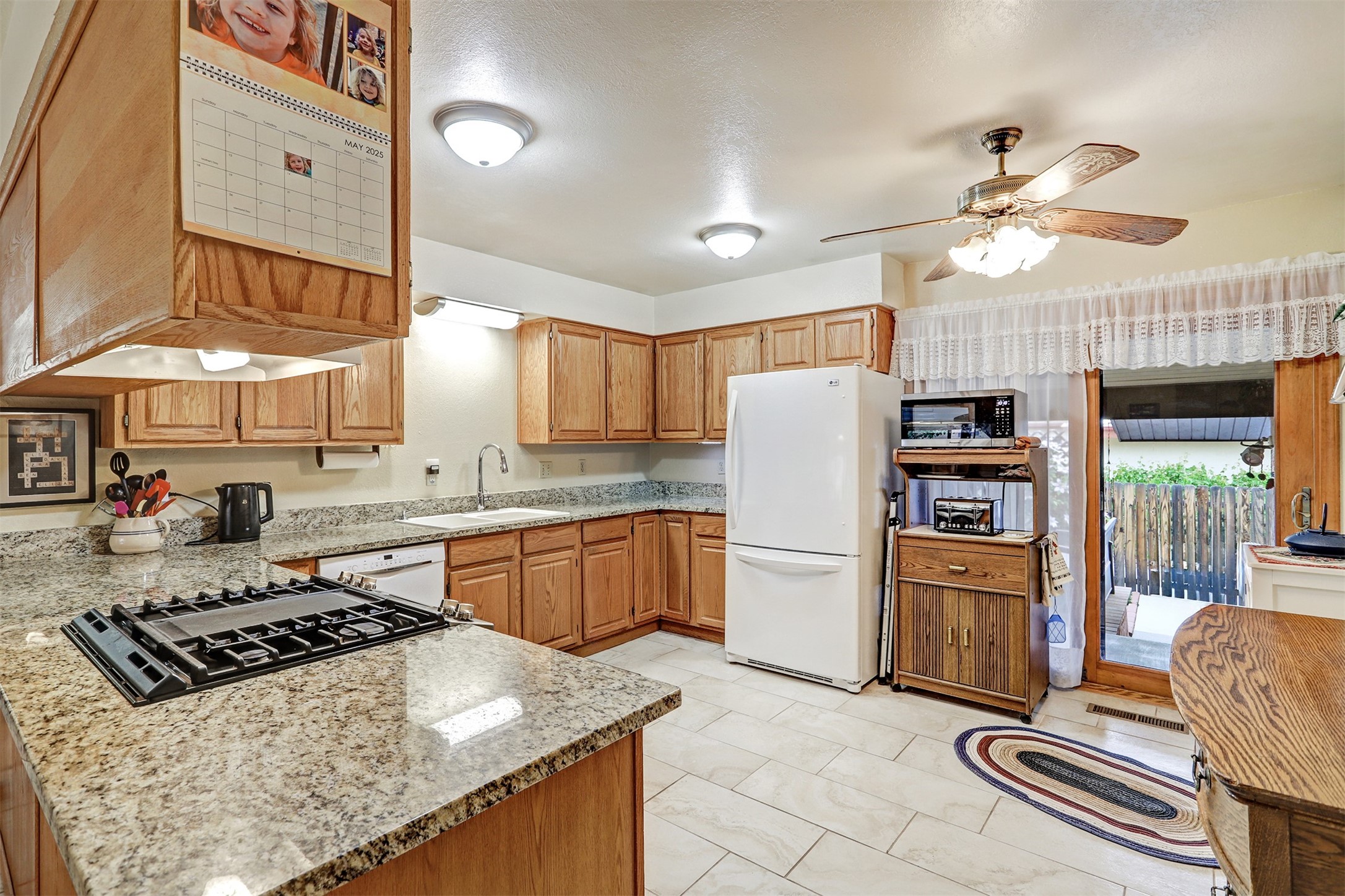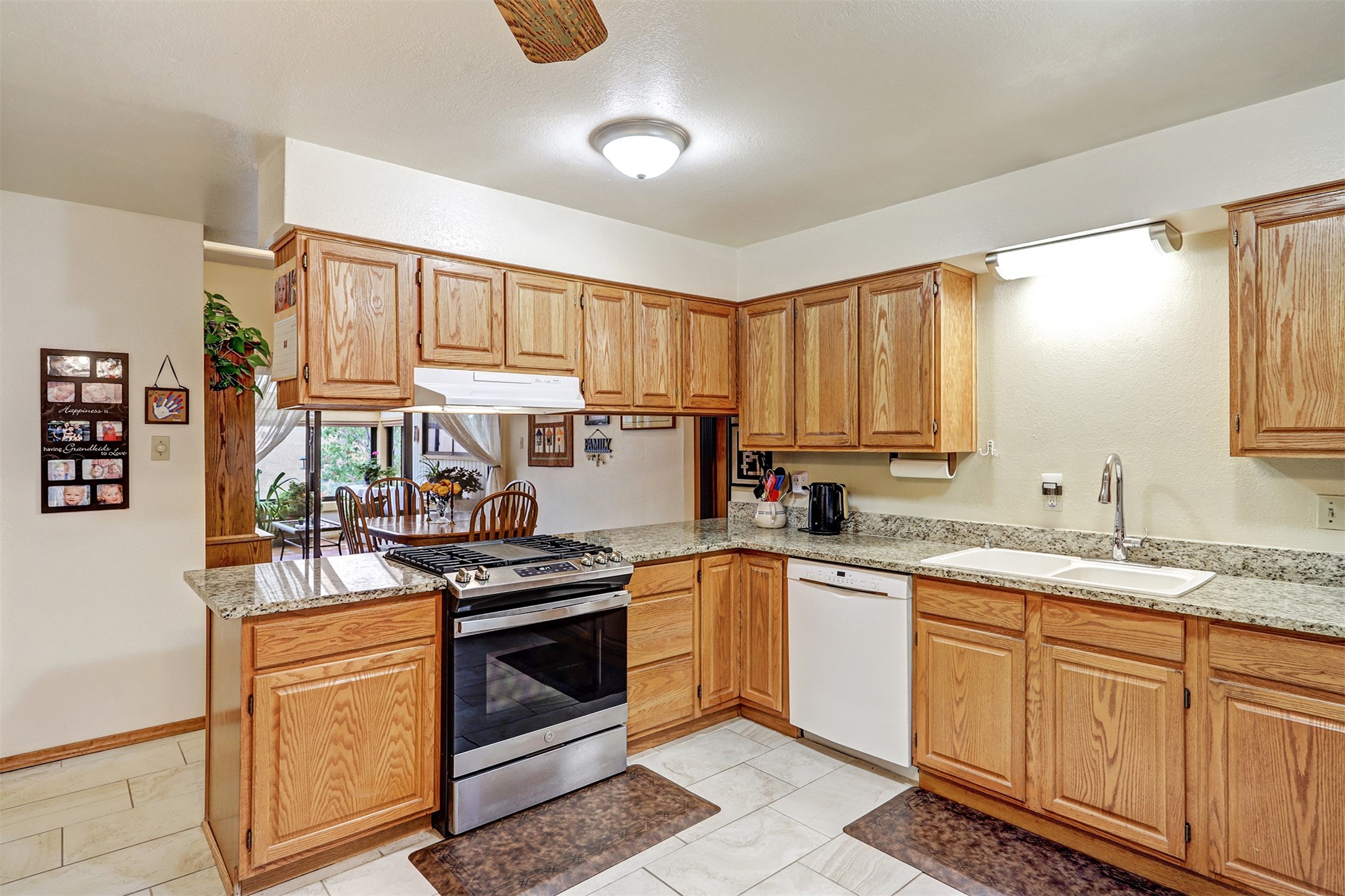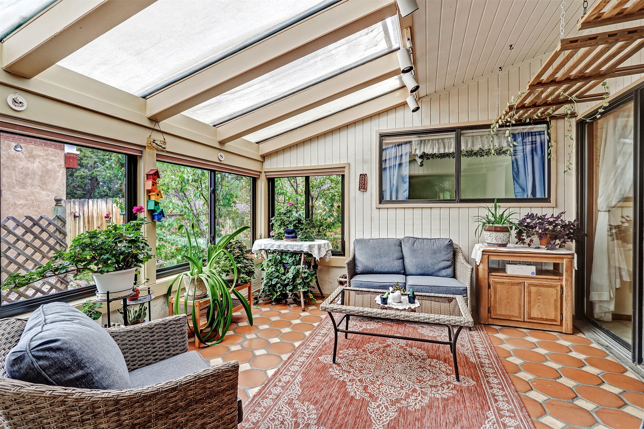 Welcome to this beautifully updated single-family home nestled on a spacious quarter-acre lot in the heart of White Rock. With four generously sized bedrooms and three well-appointed bathrooms, this home offers comfort, functionality, and charm at every turn. Step into the updated kitchen, where modern finishes, ample cabinetry, and thoughtful design make it a true heart of the home. The adjoining living and dining areas are warm and inviting, anchored by a cozy wood-burning fireplace--perfect for gathering with family and friends. A light-filled sunroom extends your living space and invites you to relax and enjoy views of the serene yard, ideal for both quiet mornings and entertaining evenings. The backyard itself is a private oasis, complete with lush landscaping, two storage sheds, and a dedicated RV pad with a 220-volt hook-up. The front yard features a convenient sprinkler system and a newly paved RV driveway leading to a spacious two-car garage, offering plenty of parking for guests and family alike. The primary suite is a true retreat, highlighted by a luxurious jetted tub, radiant heating, an on-demand water heater, and tasteful updates throughout. With newer windows in many rooms, natural light pours in to enhance the home's warm and inviting atmosphere. Combining upgrades with timeless charm, this exceptional property offers evaporative cooling for year-round comfort with the perfect blend of indoor comfort and outdoor beauty. Don't miss the opportunity to make this lovingly maintained home your own.