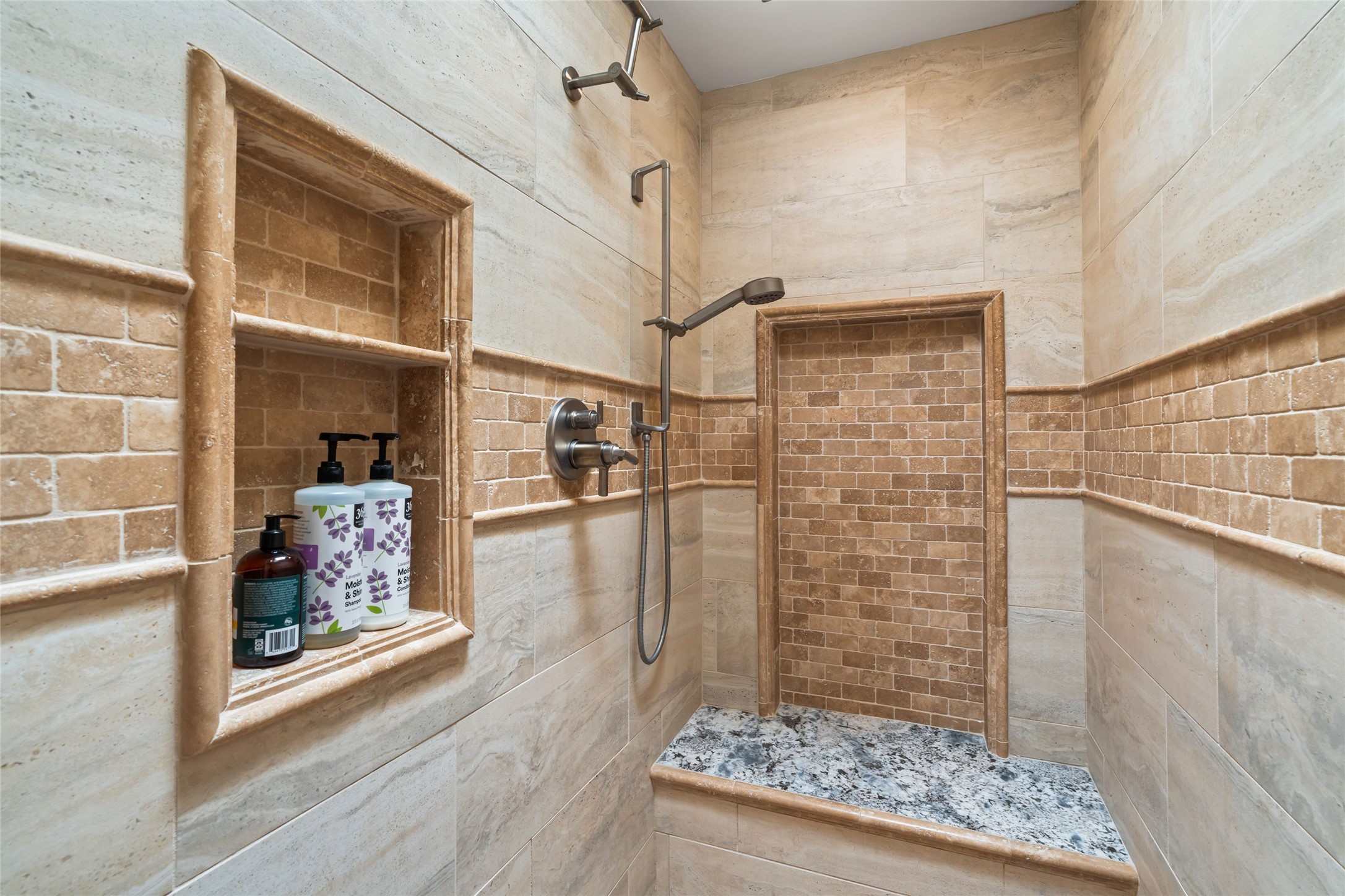 Breathtaking views and timeless Santa Fe charm converge in this enchanting light-filled Pueblo Revival home, ideally situated on 2.5 private, wooded acres just minutes from the historic Santa Fe Plaza. With panoramic vistas of the Sangre de Cristo Mountains, this single story 4-bedroom, 3.5-bath residence offers a rare combination of serenity, style, and location.At the heart of the home, the open-concept chef's kitchen--fully rebuilt in 2023--flows beautifully into the dining and living spaces, anchored by a massive picture window that captures the ever-changing mountain light. Outfitted with top-tier appliances by Wolf, Thermador, and KitchenAid, the kitchen features hand-glazed brick backsplash, premium granite countertops, abundant knotty alder cabinetry, clever under-counter storage solutions, and a oversized walk-in pantry.The four spacious bedrooms include two luxurious primary suites, each with a private full bath. These suites, along with the den, living room, and dining room, open directly onto a generously scaled patio, offering spectacular indoor/outdoor living with sweeping views of the Sangre de Cristos--a true extension of the interior space and an entertainer's dream. The patio features a covered portal, dining area, hot tub, and fire pit. Inside, classic Santa Fe design elements abound: two kiva fireplaces, exposed beams and vigas, ample skylights, brick flooring, decorative tile work and built-in bookcases lend warmth and regional authenticity to every room. The layout balances openness with privacy, including a separately located owner's suite with dual walk-in closets and stunning mountain views. Creative pursuits find a natural home in the separate workshop/art studio/yoga room, while ample storage, including a large laundry room and an oversized two-car garage, ensures functionality matches beauty. A beautiful home office space with large windows provides additional options for working from home, a home gym, or can be used as a 5th bedroom