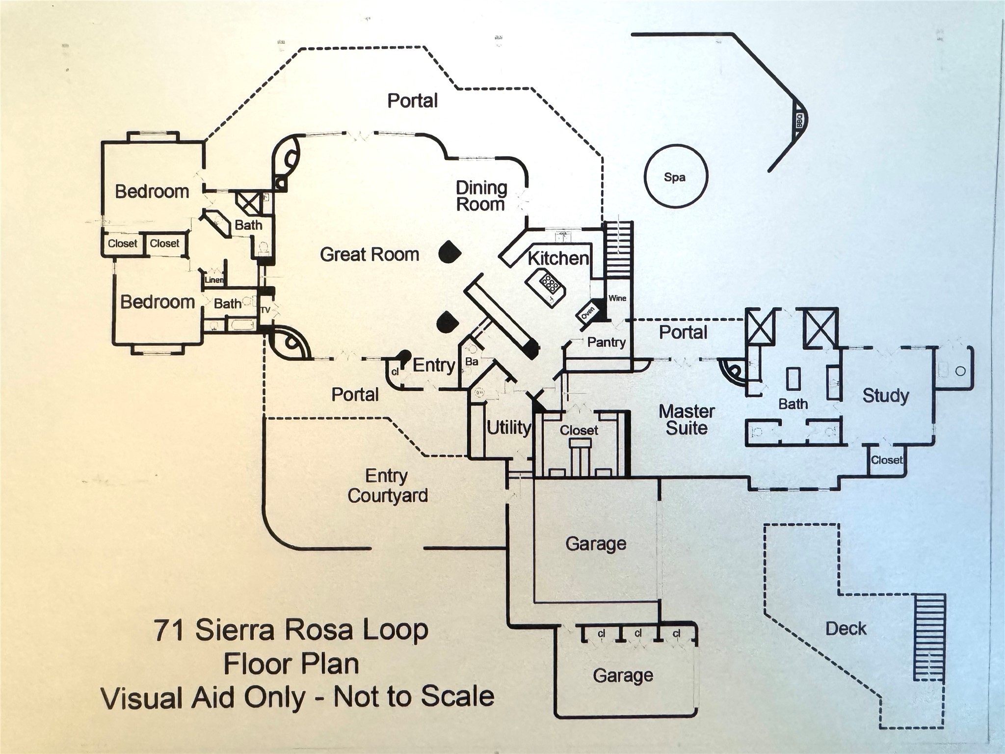 This Soft Contemporary 3-Bed + Den + Retreat / 3.5 -Bath home offers Sangre de Cristo Mountain Views in gated Las Campanas. The Great Room is truly Great, with 2 areas for socializing - One with a Kiva Fireplace, built-in TV / entertainment niche & doors to the Front Portal area. The other is a conversation area with a free-flowing kiva fireplace, wet bar, room for a Baby Grand Piano, Sangre de Cristo views plus access to the Back Portal area with wood-burning kiva fireplace. The Dining area is perfect for sharing meals & has access to the Back Portal area with Built-in BBQ & in-ground spa. The Kitchen has a Sub-Zero refrigerator, Bosch Dishwasher, Dacor Oven & Microwave plus a generous island with Dacor gas cooktop & prep sink. There is also a walk-in wine storage area plus Buffet & Butler's Pantry, both with ample storage. The Owner's Suite includes a kiva fireplace, walk-in closet & its own private portal with a Sangre de Cristo Mountain view. The Owner's Bath offers 2 separate vanities, 2 separate water closets, walk-in shower with body sprays & direct access to the In-ground Spa & outdoor shower. Also in the Owner's Suite wing, there is a private Den / Office with walk-in closet & outdoor access through double French doors as well as a south-facing Library / Retreat area. Two secondary bedrooms, each with their own bathrooms, are on the opposite side of the home, creating privacy from the Owner's Suite. The spacious outdoor area offers a multitude of desirable features - Private In-Ground Spa, Outdoor Shower, Built-in BBQ, Extensive shaded portal areas with wood-burning fireplace & a spacious roof deck with 360-degree Mountain Views. The 3-car garage includes a third, separate stall that can be used as a studio. This fabulous home checks all the boxes - 3 Bedrooms + Den + Retreat * 3 Baths * 3-Car Garage * In-ground Spa * Outdoor Shower * Spacious Roof Deck * Sangre de Cristo Mountain views - Make it yours Today!