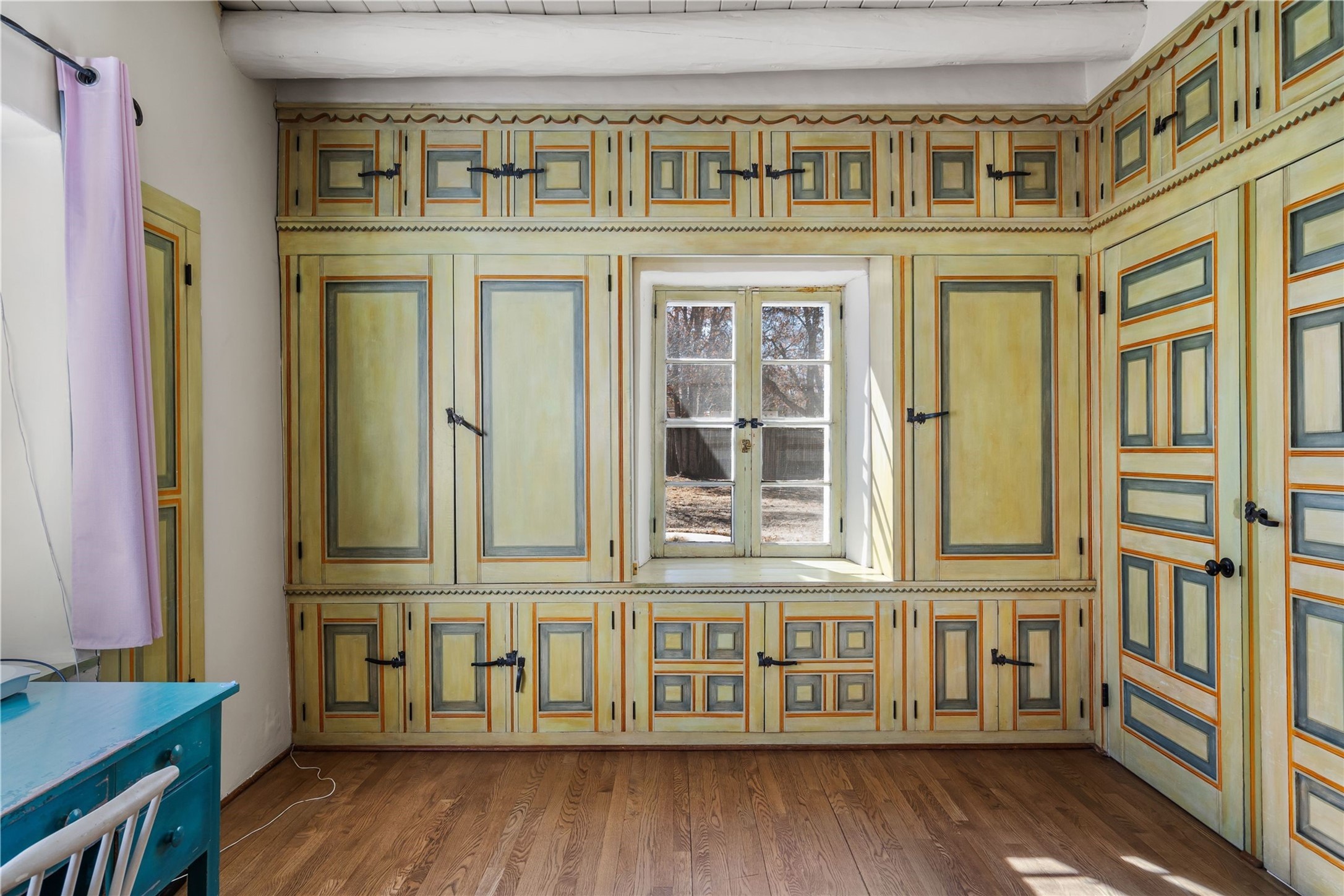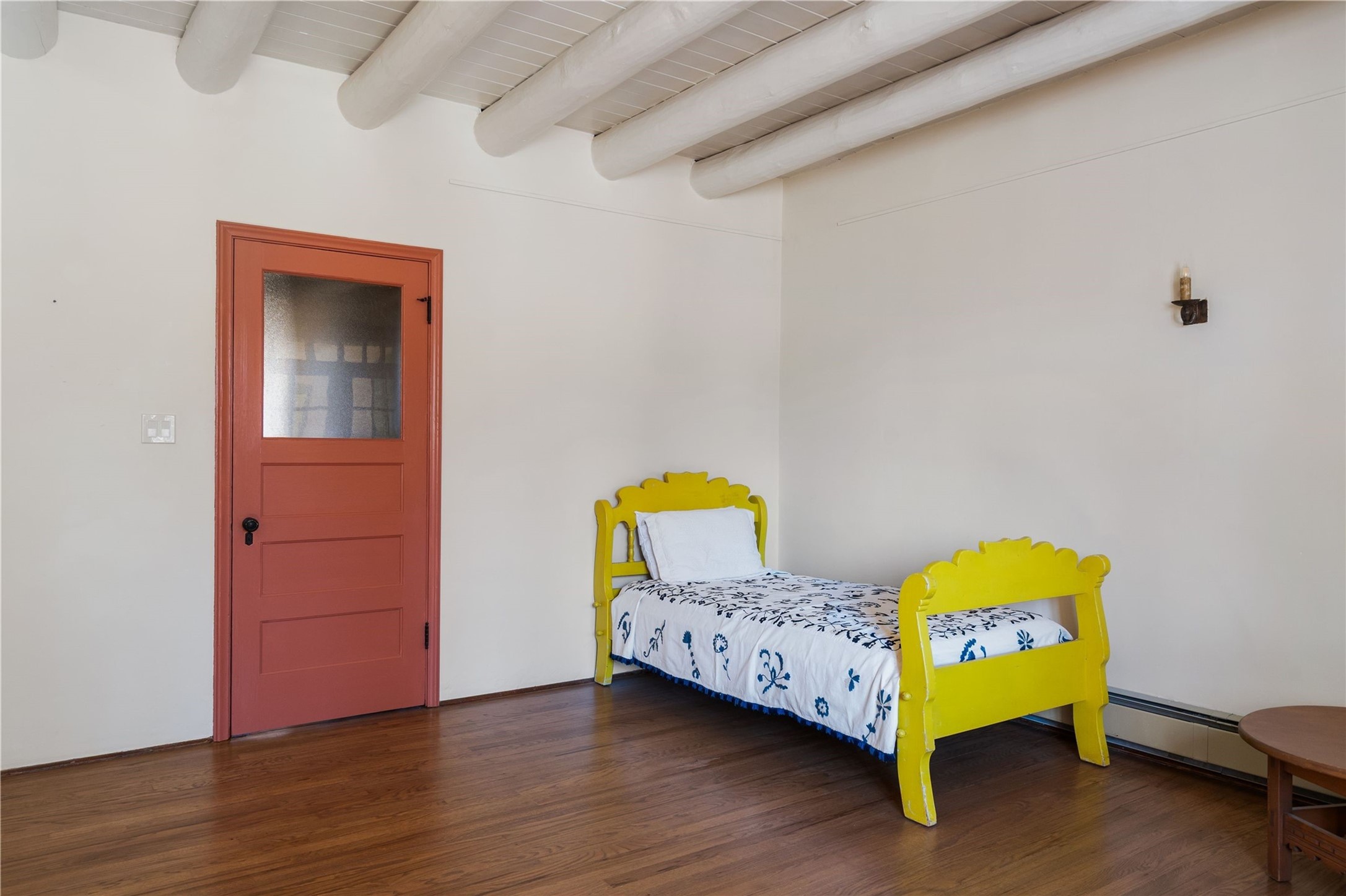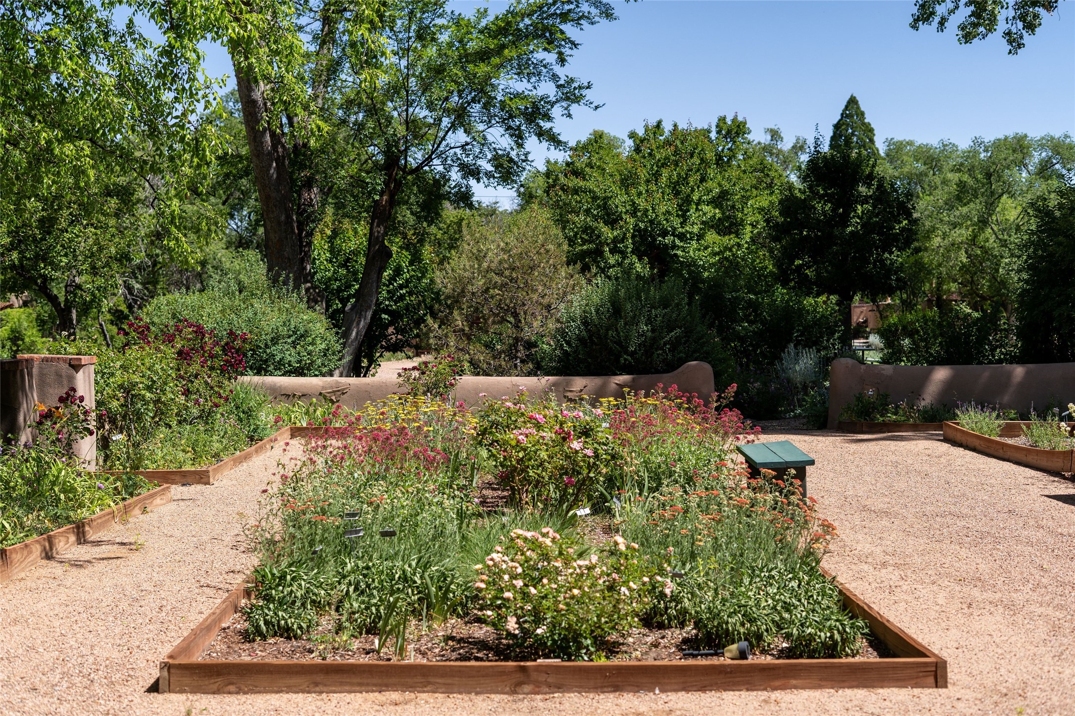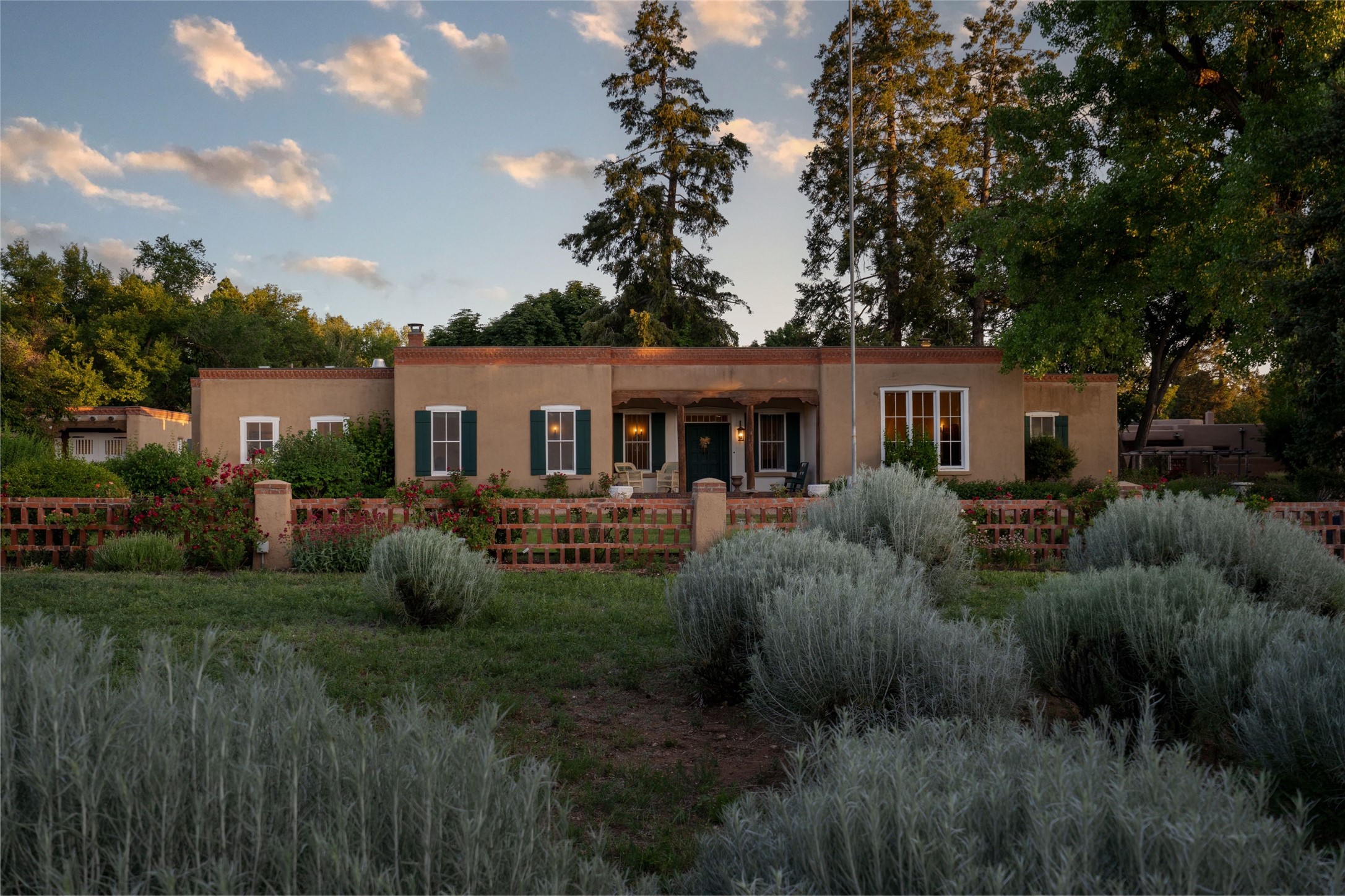 Acquire a treasured piece of Santa Fe history with The Acequia Madre House, a cornerstone and time capsule of Santa Fe's rich cultural and artistic legacy. This truly remarkable estate, built in 1926 by the influential women Eva Scott Fnyes, her daughter Leonora S. M. Curtin, and granddaughter Leonora F. Curtin, is a living museum of fine handcrafted woodwork, sculpted kiva fireplaces, and traditional artistic details. These trailblazing women played a significant role in the "cultural crafting" of Santa Fe, and their legacy is beautifully reflected in the exquisite workmanship of this extraordinary property. Set on just over 3 acres within the esteemed Camino del Monte Sol Historic District, The Acequia Madre House features a spacious 5,450 sq ft main house alongside a 2,313 sq ft carriage house. Recognized by both federal and state historic preservation authorities, the main house embodies the rich heritage of the region. Designed in classic Old Santa Fe Style, the single-story structure showcases territorial elements that capture the essence of Southwestern architecture. Inside, the main house offers an array of inviting spaces, from cozy to grand, including a spacious living room that serves as the perfect gathering place, an elegant dining room, and a study that provides a quiet retreat for work or reflection. Two luminous sunrooms create serene spots to enjoy the beautiful natural surroundings. The estate includes a one-car garage as well as parking for up to 13 vehicles. The property is adorned with mature trees and features a large lawn. Conveniently located just moments away from iconic Canyon Road and the historic downtown plaza, this architectural and historical showpiece is unequaled in its entertaining and artistic potential. Being offered below appraisal.