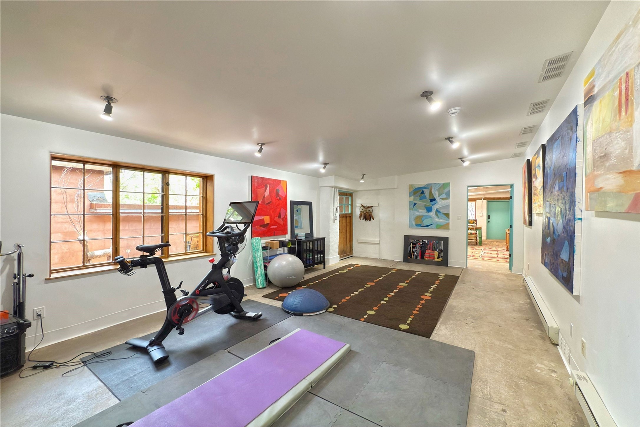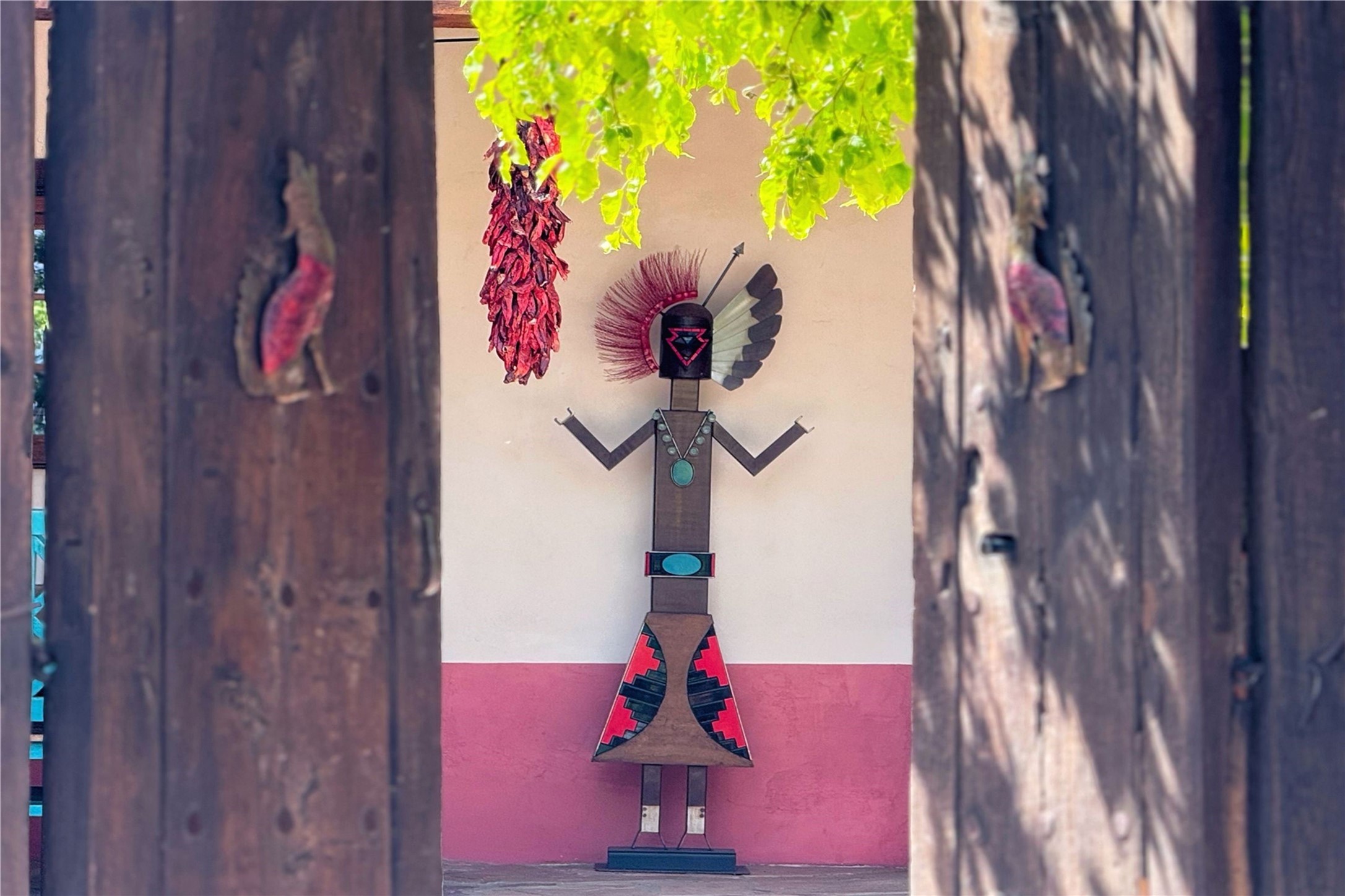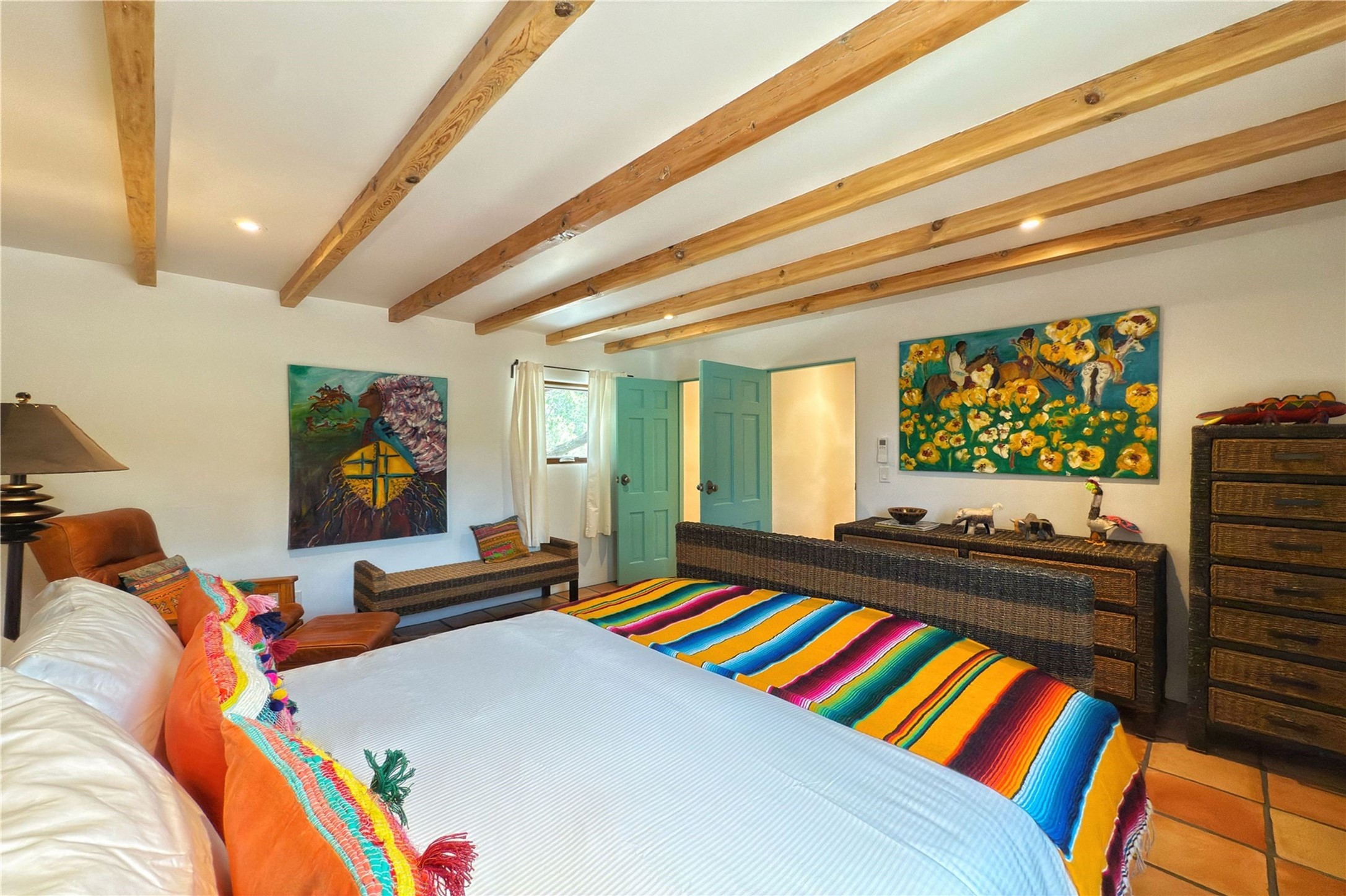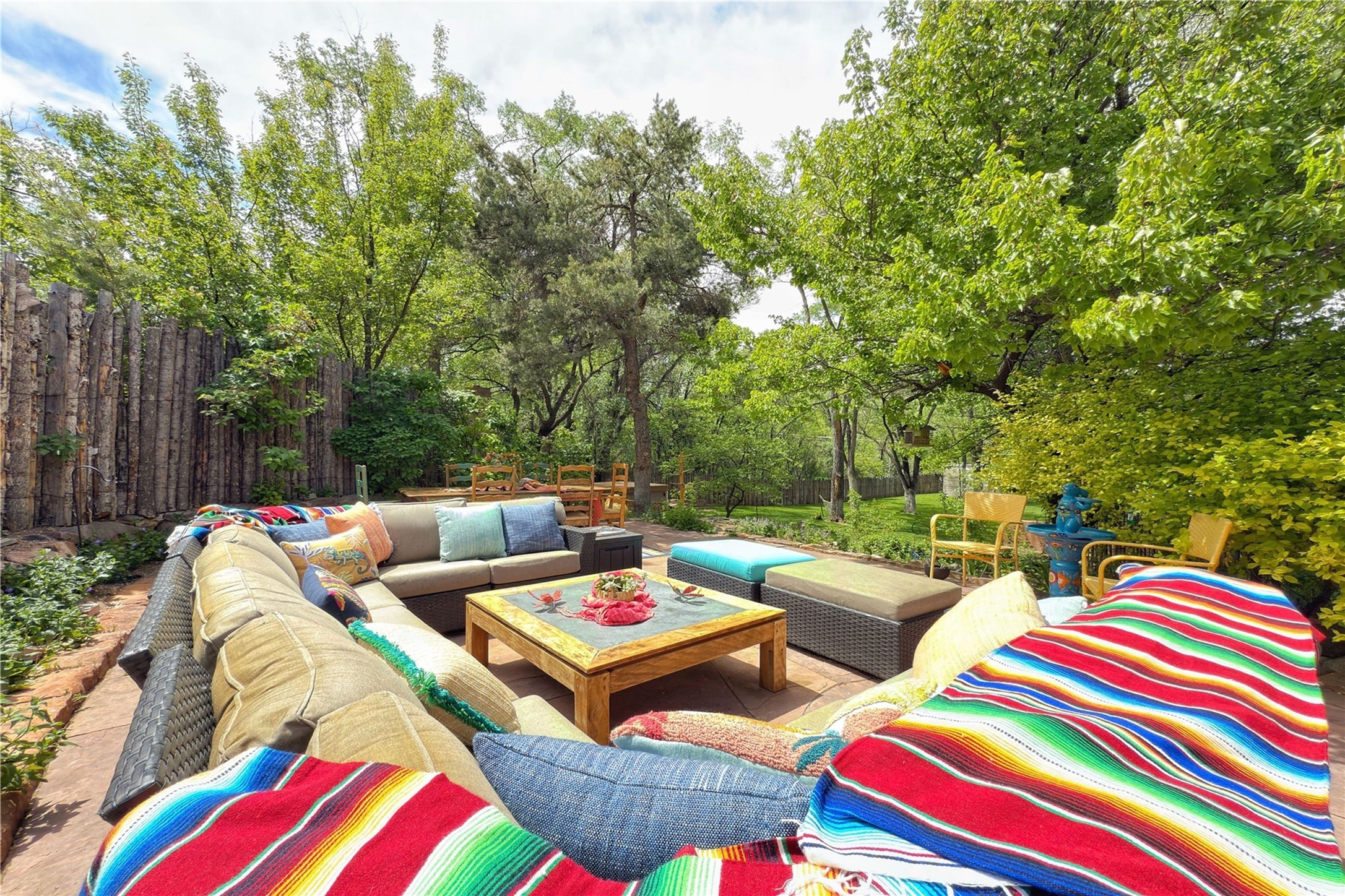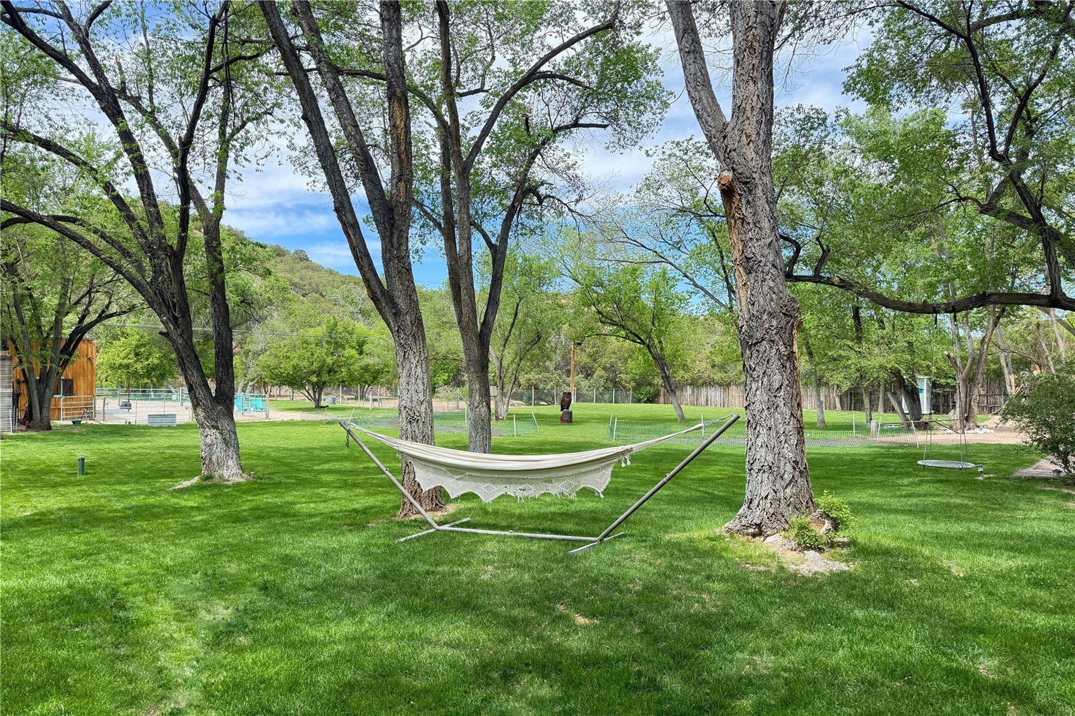 Exquisite Historic Compound with Modern Luxuries - Recent Extensive Renovation Creating a Truly Unique Lush Tesuque Oasis. Welcome to this extraordinary multi-residence estate nestled on a historic 100+ year-old property. Seamlessly blending Old Santa Fe charm with modern sophistication. From handcrafted elements to lush gardens, every detail of this property tells a story.Enter into a serene courtyard with water features, mature trees, and fruiting grapevines that leads to a warm sitting room and flows into the dining area and gourmet kitchen.Granite leather-finished countertops, a deep stone sink, open shelving, skylights, Liebherr fridge, and custom cabinetry complete a kitchen that is like no other. The main house features timeless design with 18 inch adobe walls, hardwood floors, original vigas, multiple kivas and custom cabinetry crafted on-site from 100-year-old wood.Downstairs, the primary suite is nestled below the main living area. Relax with a kiva fireplace, and a peaceful view of the back garden. Stunning Brazilian Aquamarine granite graces the primary bath. "Dancing Hare" casita offers Saltillo tile, two bedrooms, a full kitchen with Taj Mahal counters, turquoise cabinets, and a private patio and balcony. This casita has separate parking adding privacy. "Laughing Horse" casita features open-concept living with large glass doors opening to the garden with stable views, original exposed brick and wood stove, and a full kitchen. Additional Structures include large art studio with private entrance, an expansive gym, and two-stalled stables. This property boats multiple stunning outdoor spaces for dining, gardening and entertaining parties intimate or grand. Terraced levels, hot tub, fire-pit, a creek running at the back of the property and apricot trees complete this oasis. A rare opportunity to own a piece of history enhanced with artisanal craftsmanship and high-end modern finishes. A perfect personal sanctuary or family compound.