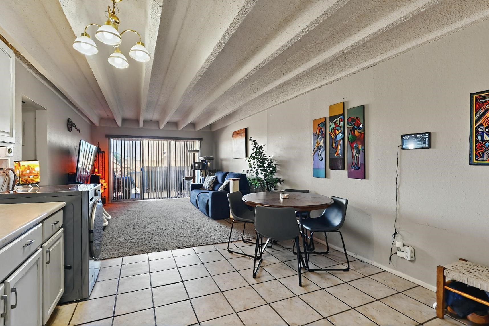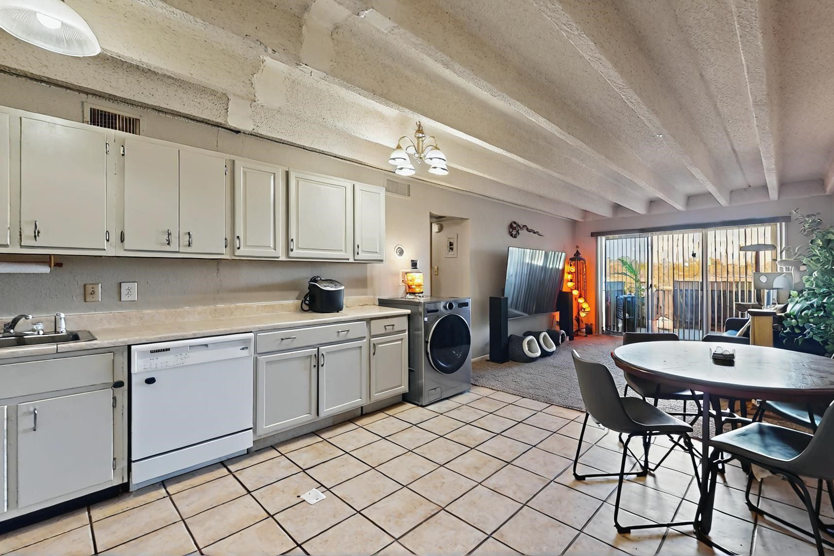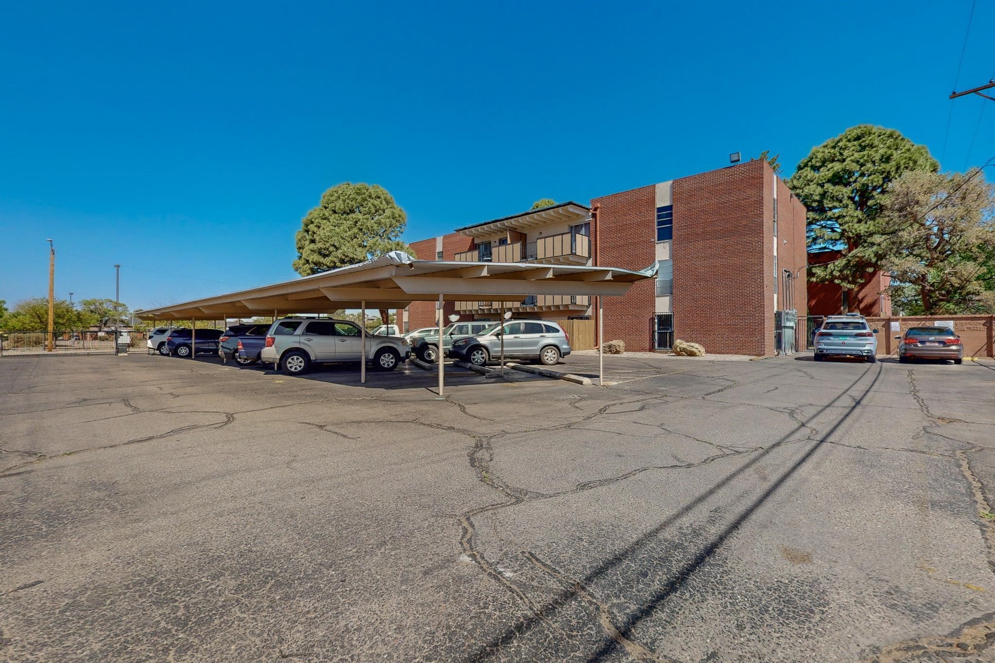 All utilities (except electric) covered by HOA! Explore the comfort and convenience of condo living at Moana Condominiums! This well-kept unit features two spacious bedrooms and an updated full bathroom with modern tile flooring and a stylish vanity. The large eat-in kitchen opens to the living room, making it great for everyday living or hosting guests. Step outside onto the private balcony to enjoy some fresh air. A washer and dryer are included for added ease. The gated community offers resident-only parking, and a central courtyard. Located just minutes from Kirtland Air Force Base, the airport, and downtown Albuquerque, this condo is perfectly positioned for work or play.