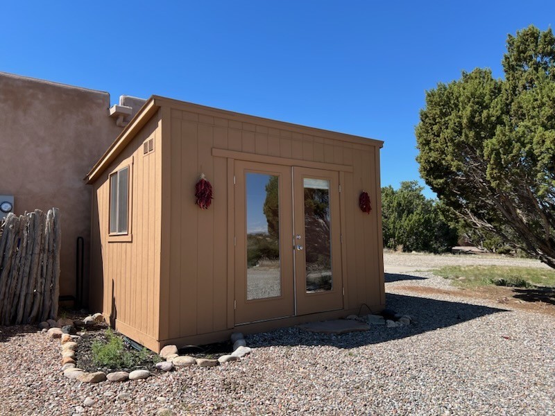 Eldorado awaits! Enjoy this classic, passive solar home's views, natural light, flexible spaces and great outdoor spaces for relaxing or entertaining your guests. New, warrantied TPO roof! New well pump! New furnace! Newly painted Living Room, Dining Room and Kitchen! New stucco on garden's trombe wall! New Bosch Kitchen Appliances, Newly painted exterior trim and corbels, New Tuff Shed flex space with electric and internet! 4 New windows with remote operated blinds! 2 Mini Splits! Refreshed landscaping! Over $120,000 spent through our Refresh and Refurbish program and the owner. 4th bedroom functioned as an artist's studio for last 2 owners; garage contains racks for paintings. Make this home your own!! Seller is motivated!