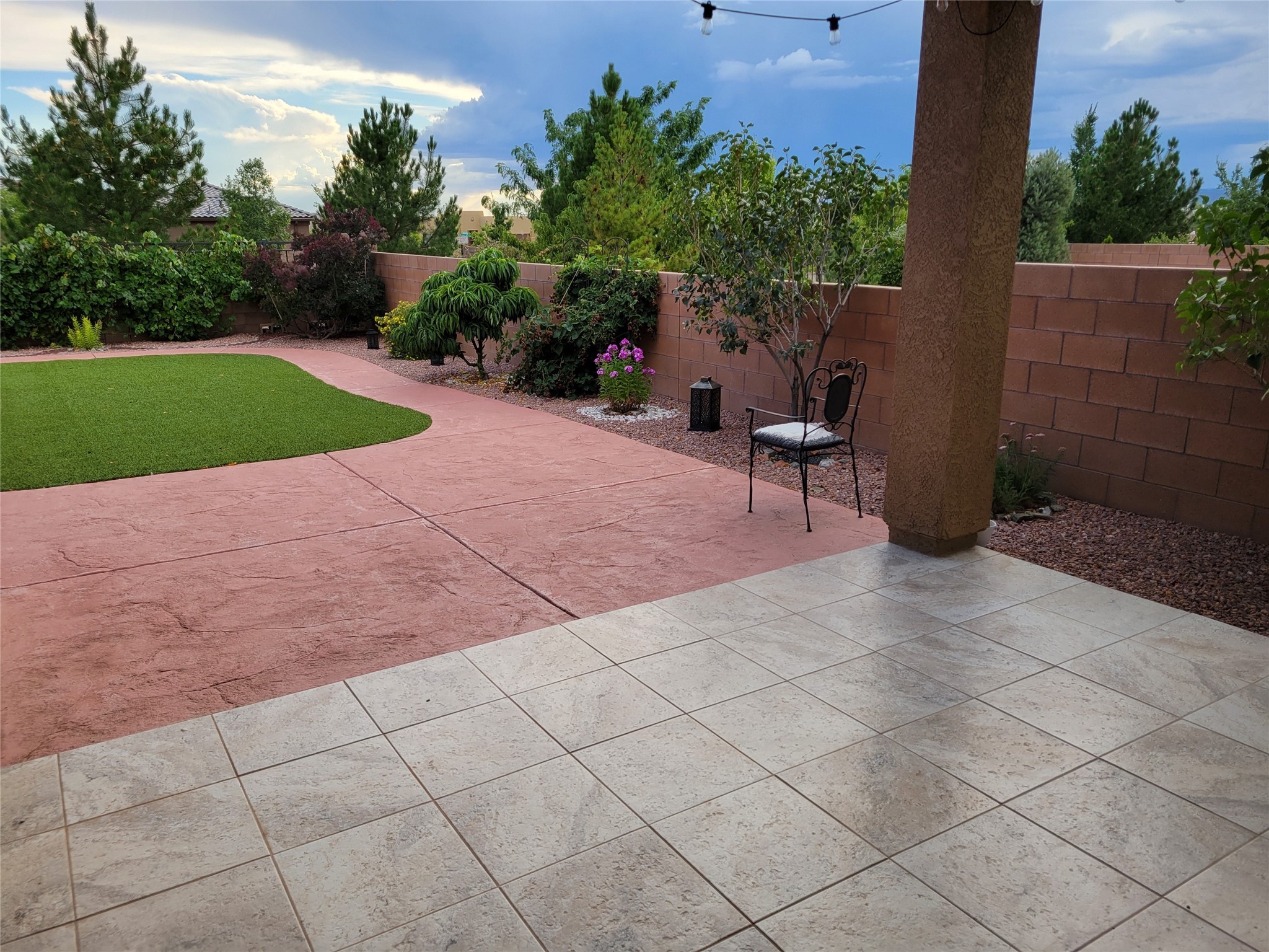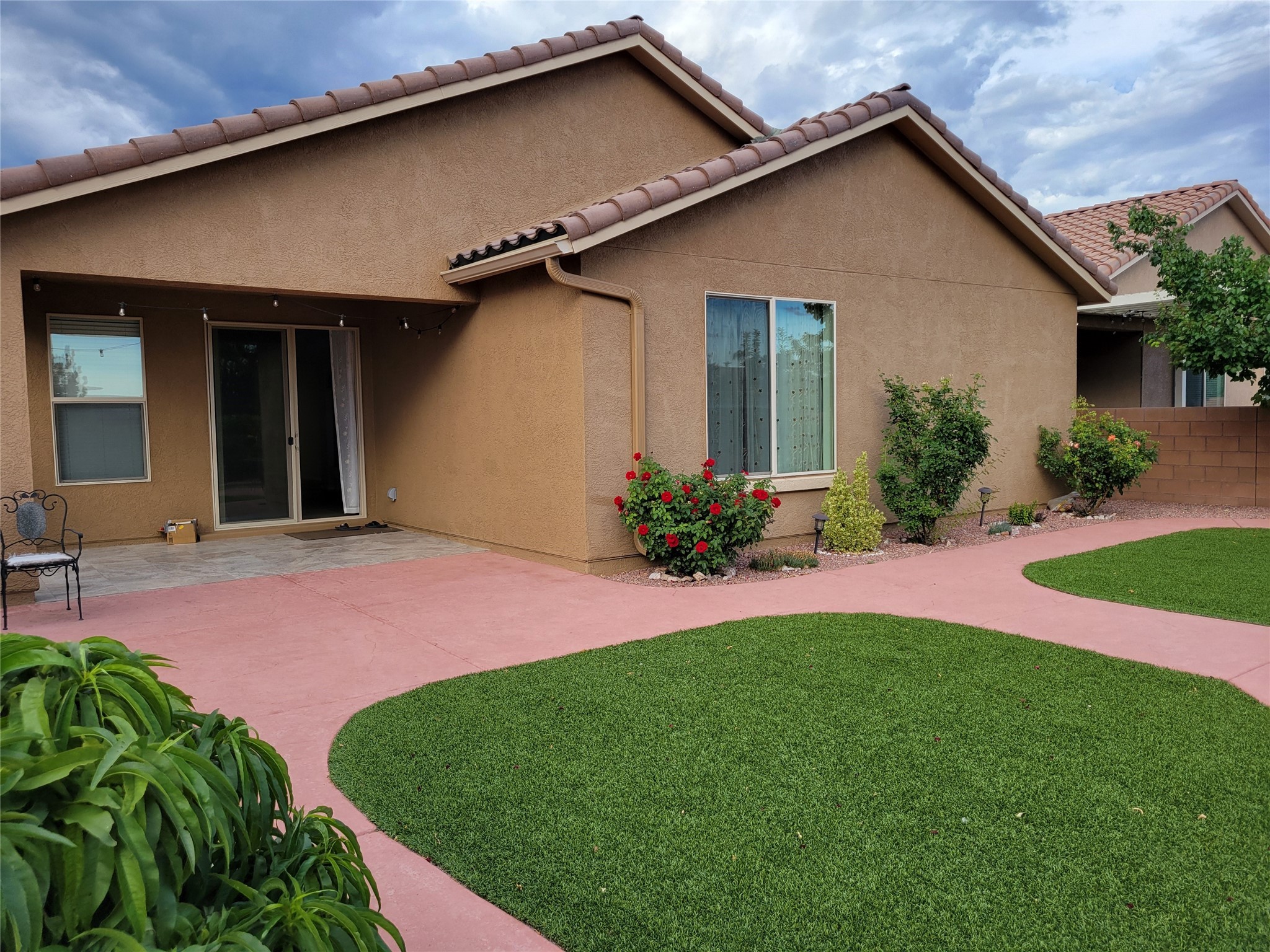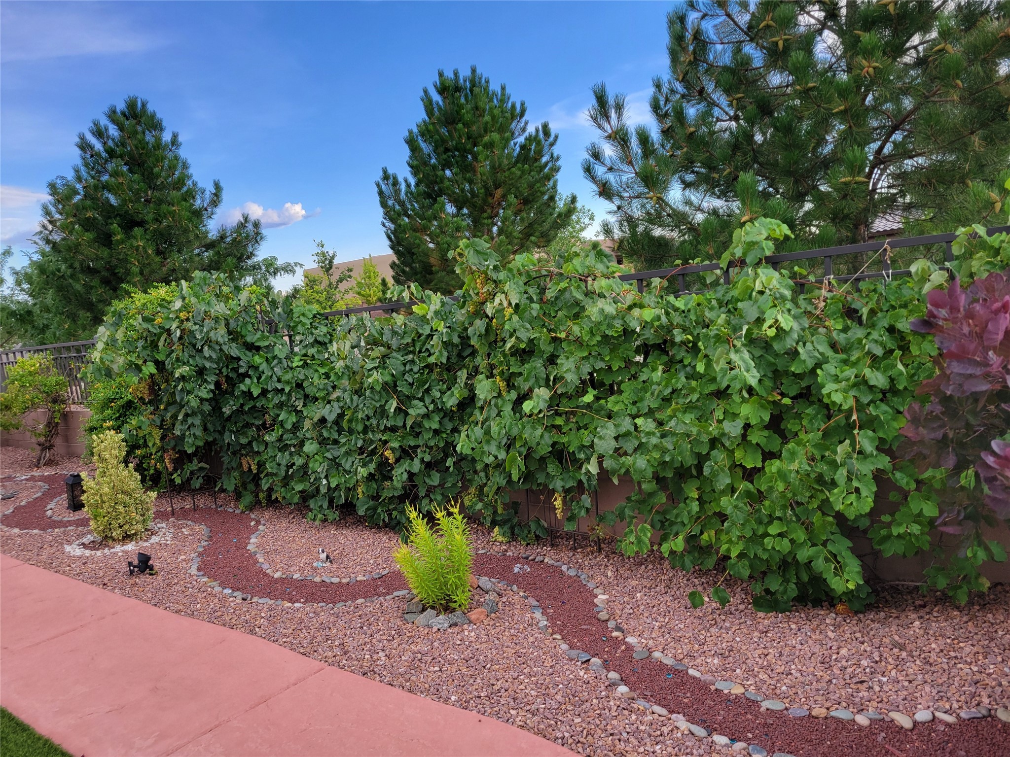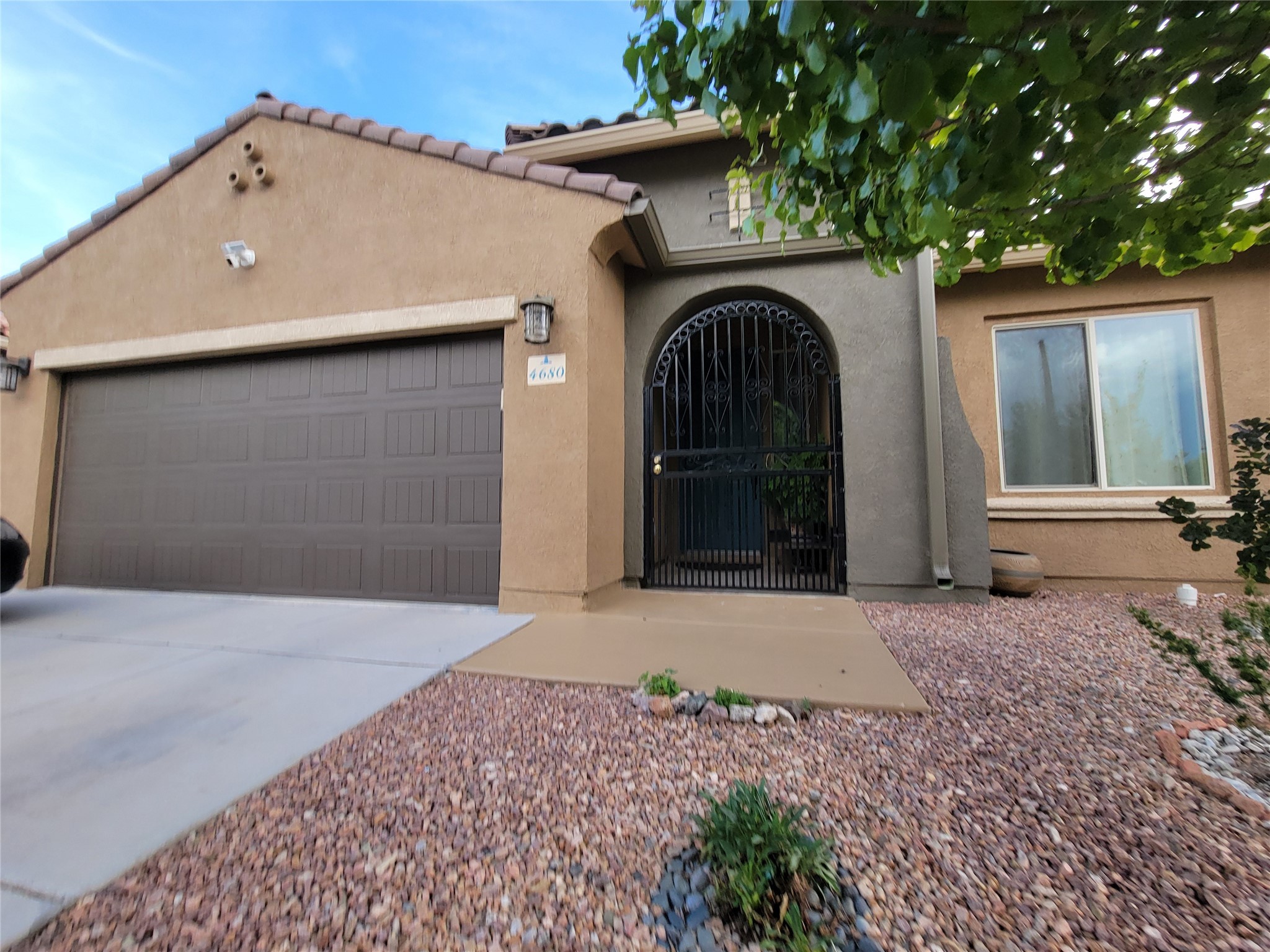 Do Not Miss this Newly Repriced Vistas De Las Soleras Gem located on a Gorgeous Tree-Lined Quiet and Serene Street. This Absolutely Beautiful and Immaculately maintained 2150 Square Foot Home features the Popular Single-Level Manzanita Floorplan and includes the Optional the Fourth Bedroom for increased Space and Flexibility. Your Exceptional Living Experience starts with The Custom Gated and Tiled Entry and Continues with Numerous Upgrades both Inside and Out that are Showcased "Everywhere You Look". The Gourmet Kitchen is Accented by the Tasteful and Dramatic Granite Countertops, a Newly Upgraded "Country Kitchen" Sink and Modern Faucet, Nice Stainless Steel Appliances and features a Huge Breakfast Bar offering Very Ample Space and Seating. There is True Open Concept Living as this Flows Seamlessly into The Generous Dining Area and Great Room offering a Fantastic Place for Relaxation and Entertaining with a Charming Gas Fireplace for Warmth and Atmosphere. As Many Buyers prefer, there is only Tile and Wood Flooring throughout the Home for Beauty, Ease of Care and Cleanliness. The Nice-Sized Master Suite looks out to the exquisitely Landscaped Backyard and the three Guest Rooms, Guest Bath, Front Office/Study and Laundry Room plus a fully Finished Two-Car Garage complete this Spacious and Turn Key Property Ready for Easy-Living! The Eye Pleasing Plantings throughout the Grounds were Each Chosen Specially for their Beauty and Uniqueness and there is an Irrigation System with Timer for Easy Maintenance. The Tranquil Backyard is an Oasis for Entertaining and Relaxation and is the Perfect Spot to Take In the Amazing Santa Fe Sunsets. If You are Looking for that Very Special Home Expressing Pride of Ownership and Created with Loving and Impeccable Care, This is Your Choice!!