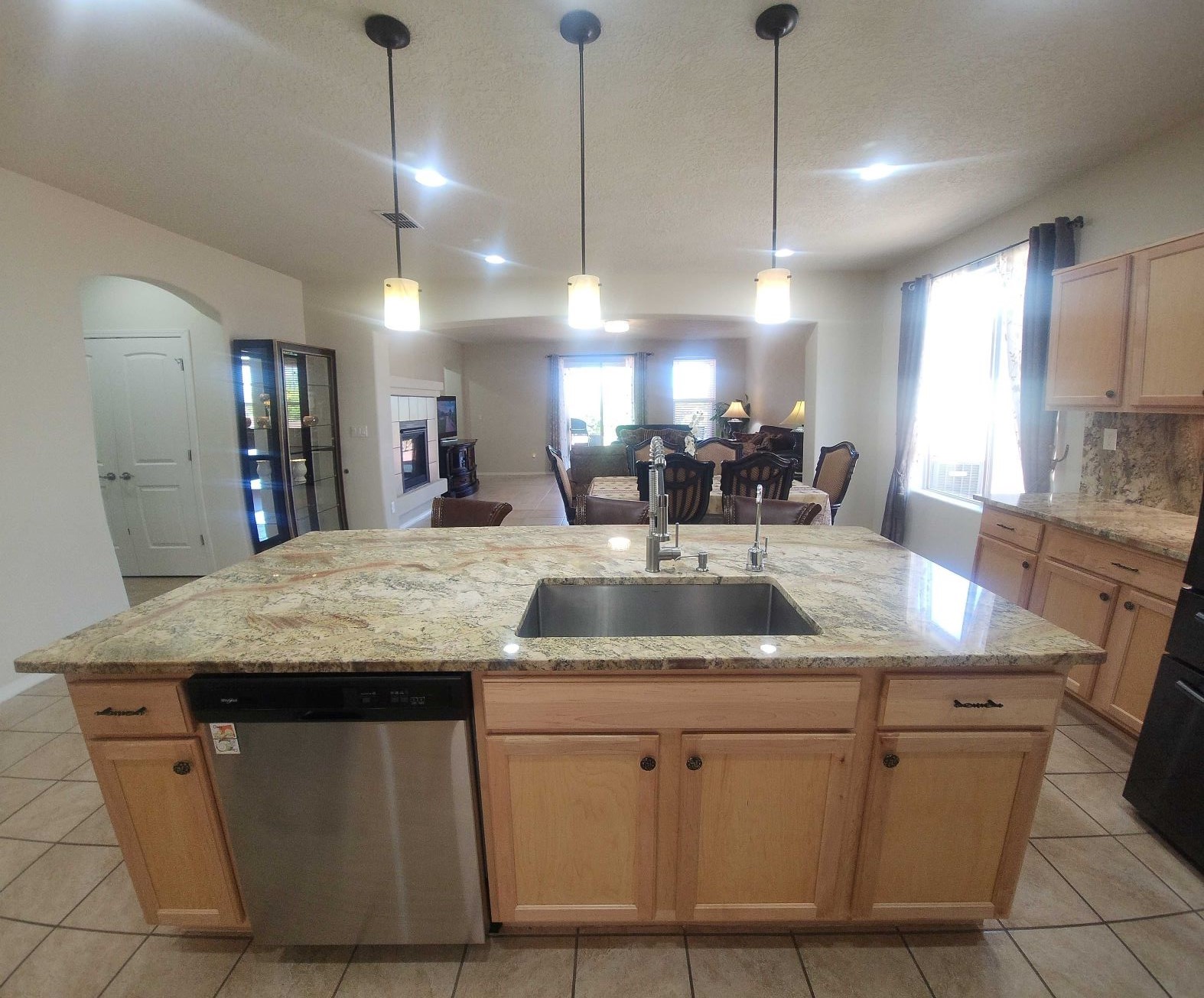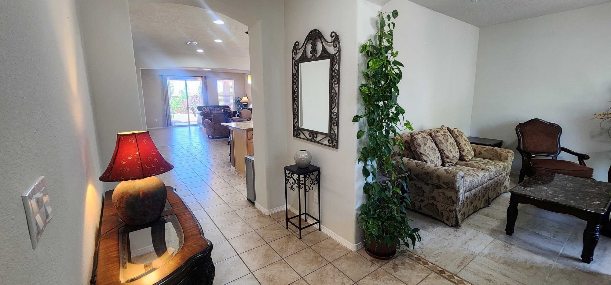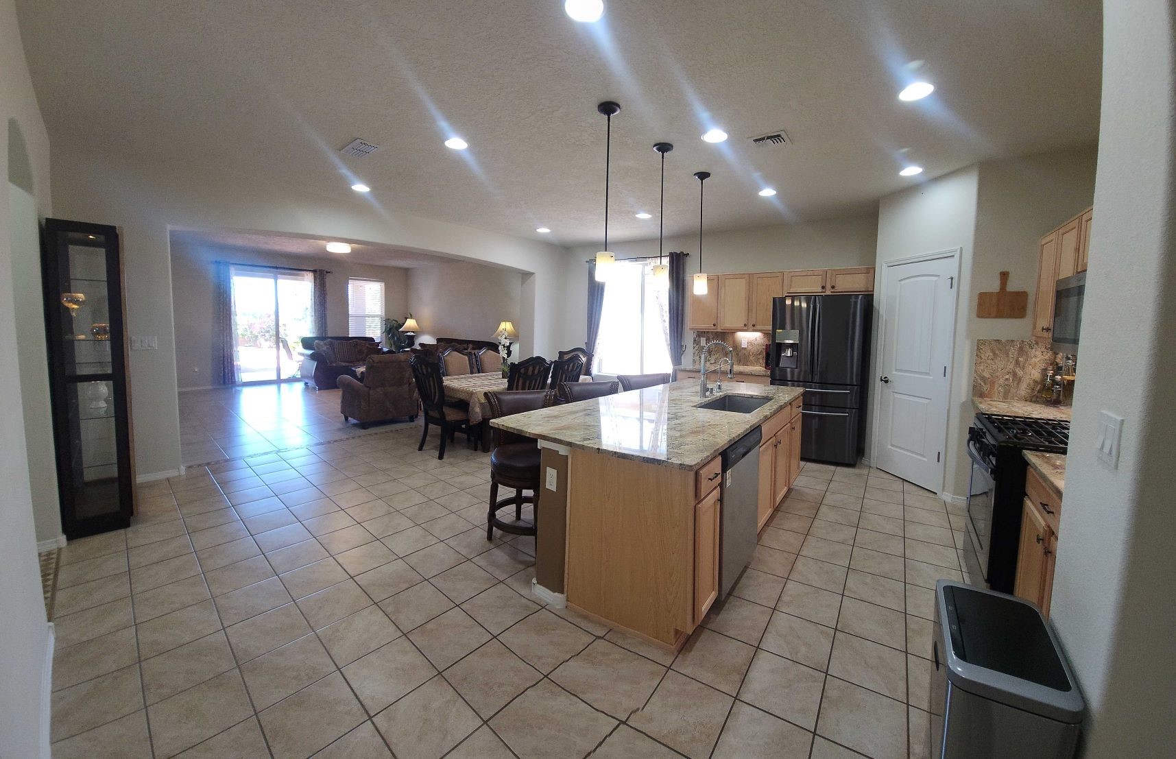 Do Not Miss this Newly Repriced Vistas De Las Soleras Gem located on a Gorgeous Tree-Lined Quiet and Serene Street. This Absolutely Beautiful and Immaculately maintained 2150 Square Foot Home features the Popular Single-Level Manzanita Floorplan and includes the Optional the Fourth Bedroom for increased Space and Flexibility. Your Exceptional Living Experience starts with The Custom Gated and Tiled Entry and Continues with Numerous Upgrades both Inside and Out that are Showcased "Everywhere You Look". The Gourmet Kitchen is Accented by the Tasteful and Dramatic Granite Countertops, a Newly Upgraded "Country Kitchen" Sink and Modern Faucet, Nice Stainless Steel Appliances and features a Huge Breakfast Bar offering Very Ample Space and Seating. There is True Open Concept Living as this Flows Seamlessly into The Generous Dining Area and Great Room offering a Fantastic Place for Relaxation and Entertaining with a Charming Gas Fireplace for Warmth and Atmosphere. As Many Buyers prefer, there is only Tile and Wood Flooring throughout the Home for Beauty, Ease of Care and Cleanliness. The Nice-Sized Master Suite looks out to the exquisitely Landscaped Backyard and the three Guest Rooms, Guest Bath, Front Office/Study and Laundry Room plus a fully Finished Two-Car Garage complete this Spacious and Turn Key Property Ready for Easy-Living! The Eye Pleasing Plantings throughout the Grounds were Each Chosen Specially for their Beauty and Uniqueness and there is an Irrigation System with Timer for Easy Maintenance. The Tranquil Backyard is an Oasis for Entertaining and Relaxation and is the Perfect Spot to Take In the Amazing Santa Fe Sunsets. If You are Looking for that Very Special Home Expressing Pride of Ownership and Created with Loving and Impeccable Care, This is Your Choice!!