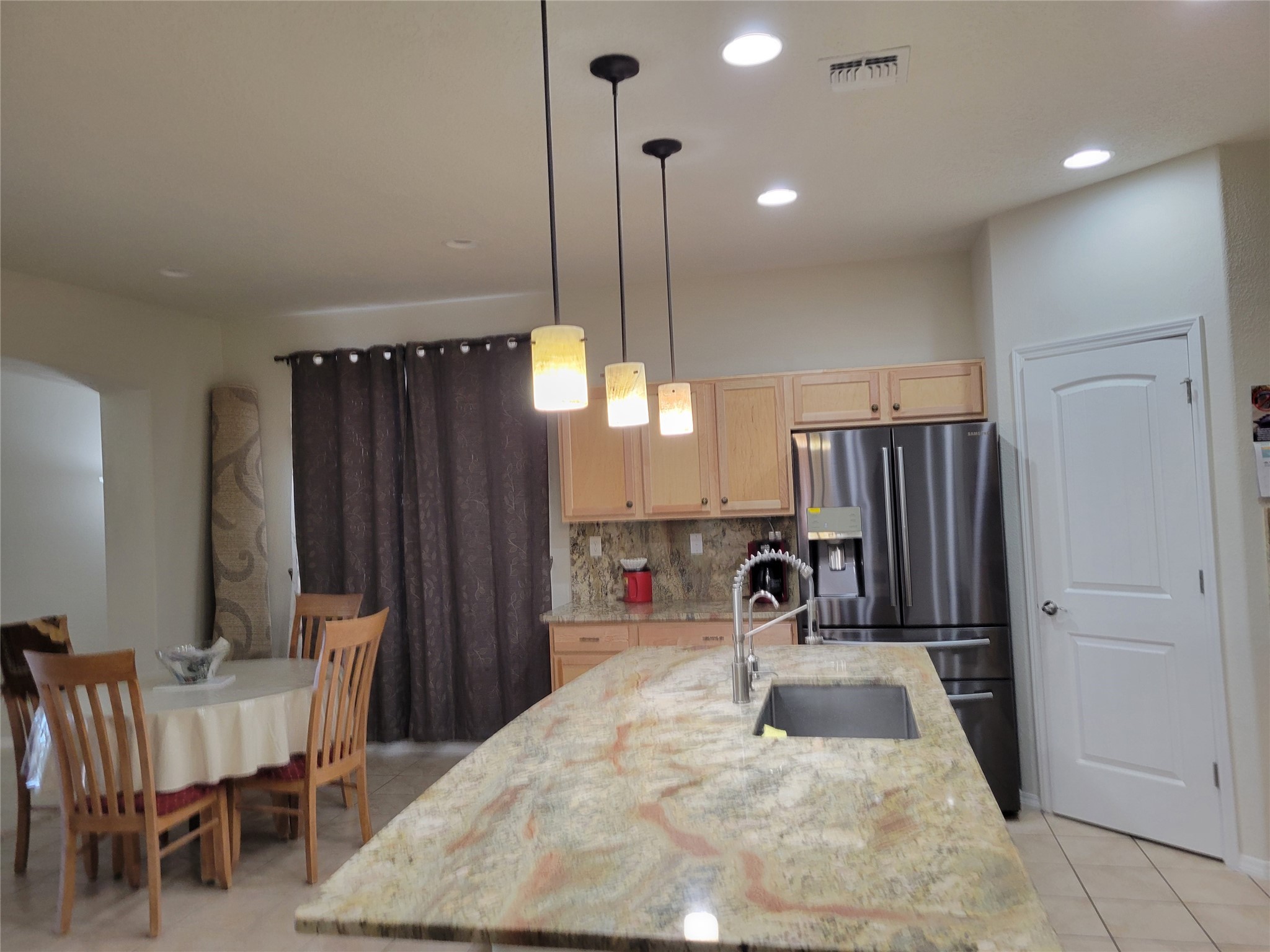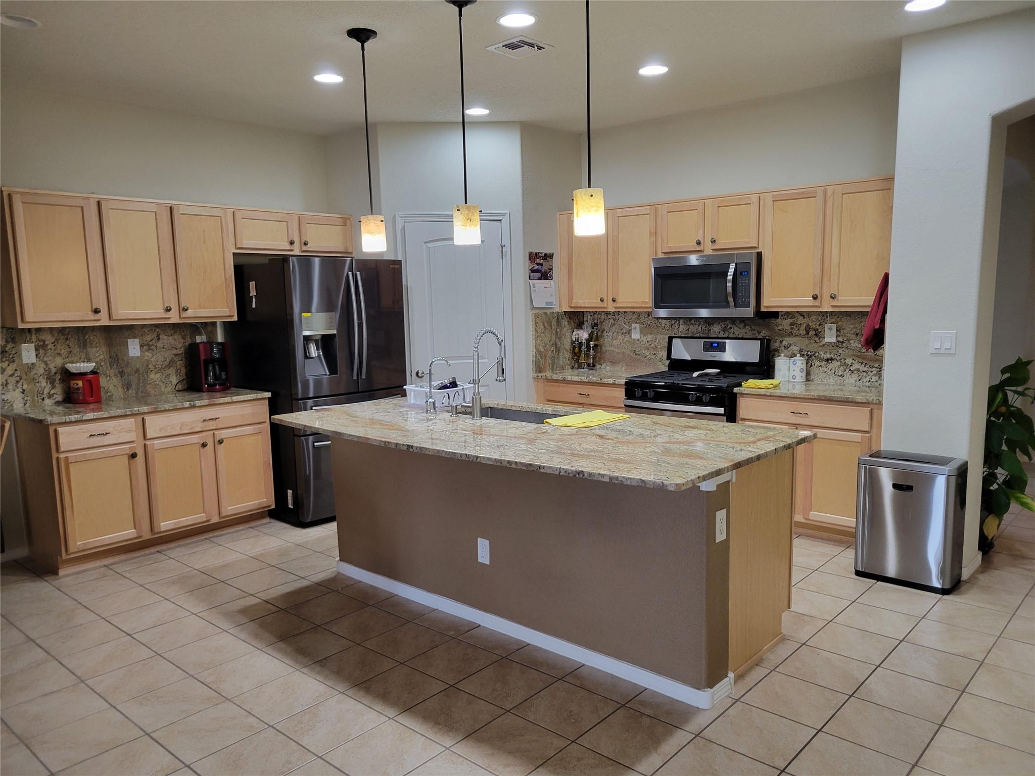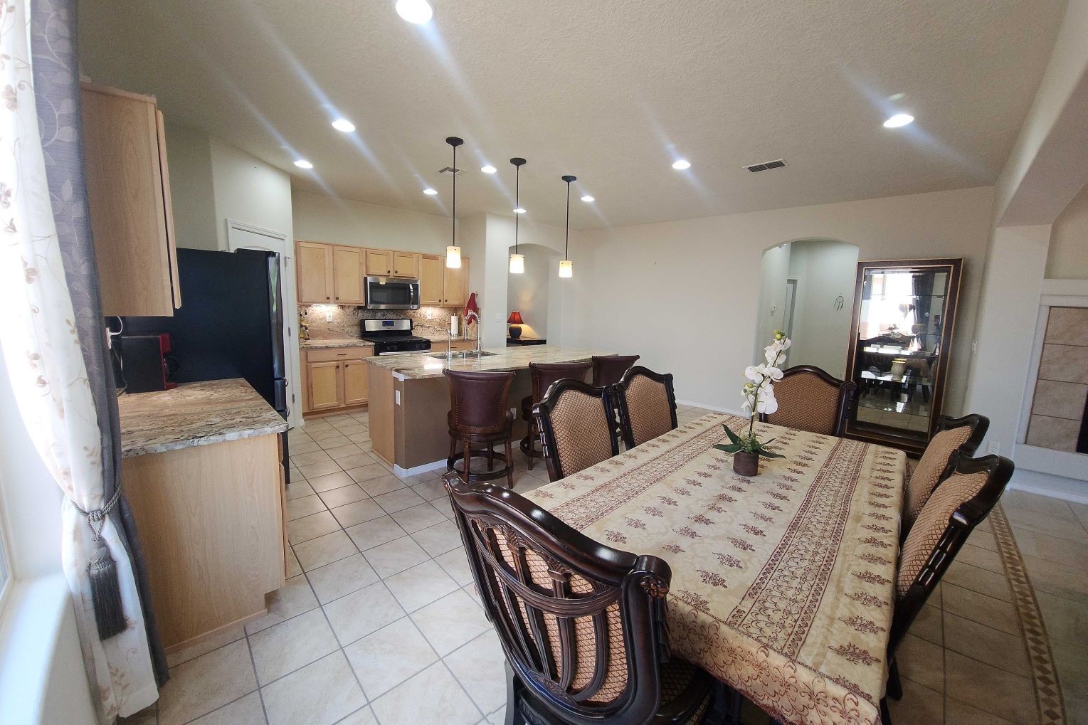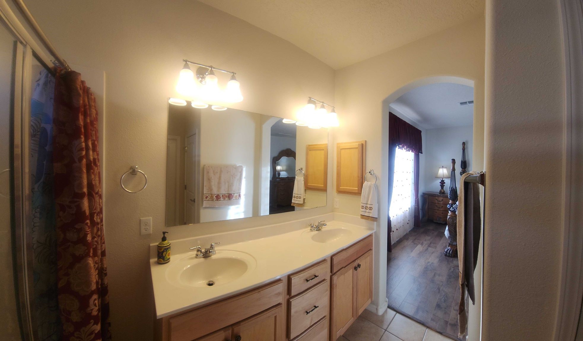 Do Not Miss this Newly Repriced Vistas De Las Soleras Gem located on a Gorgeous Tree-Lined Quiet and Serene Street. This Absolutely Beautiful and Immaculately maintained 2150 Square Foot Home features the Popular Single-Level Manzanita Floorplan and includes the Optional the Fourth Bedroom for increased Space and Flexibility. Your Exceptional Living Experience starts with The Custom Gated and Tiled Entry and Continues with Numerous Upgrades both Inside and Out that are Showcased "Everywhere You Look". The Gourmet Kitchen is Accented by the Tasteful and Dramatic Granite Countertops, a Newly Upgraded "Country Kitchen" Sink and Modern Faucet, Nice Stainless Steel Appliances and features a Huge Breakfast Bar offering Very Ample Space and Seating. There is True Open Concept Living as this Flows Seamlessly into The Generous Dining Area and Great Room offering a Fantastic Place for Relaxation and Entertaining with a Charming Gas Fireplace for Warmth and Atmosphere. As Many Buyers prefer, there is only Tile and Wood Flooring throughout the Home for Beauty, Ease of Care and Cleanliness. The Nice-Sized Master Suite looks out to the exquisitely Landscaped Backyard and the three Guest Rooms, Guest Bath, Front Office/Study and Laundry Room plus a fully Finished Two-Car Garage complete this Spacious and Turn Key Property Ready for Easy-Living! The Eye Pleasing Plantings throughout the Grounds were Each Chosen Specially for their Beauty and Uniqueness and there is an Irrigation System with Timer for Easy Maintenance. The Tranquil Backyard is an Oasis for Entertaining and Relaxation and is the Perfect Spot to Take In the Amazing Santa Fe Sunsets. If You are Looking for that Very Special Home Expressing Pride of Ownership and Created with Loving and Impeccable Care, This is Your Choice!!