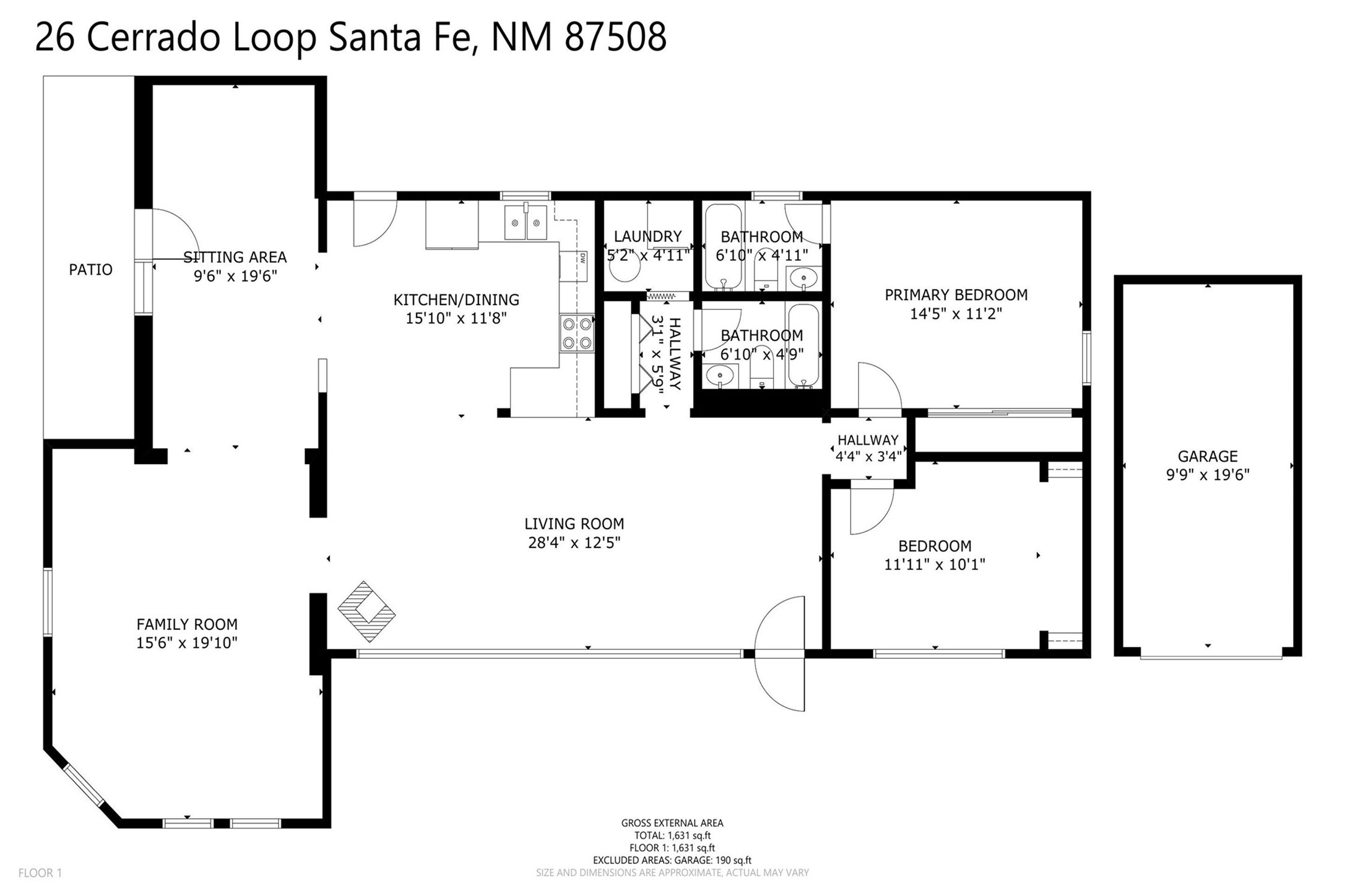 Set on 1.66 acres with peaceful rural surroundings, this classic Santa Fe home blends Southwestern charm with versatile living space just 17 minutes from the historic Plaza. Featuring 2 bedrooms and 2 bathrooms across 1,626 square feet, the home showcases signature regional details including brick floors, wood-beamed ceilings, and an open-concept layout that invites natural light and easy flow between living, dining, and kitchen areas. The kitchen offers warm wood cabinetry, granite countertops, and a breakfast bar that opens to the main living space -- ideal for everyday living or entertaining. French doors from a flexible bonus room lead outside, creating a perfect spot for a home office, art studio, or reading nook. Outdoor living is equally inviting with natural landscaping, mature trees, and room to expand gardens or create patios to suit your lifestyle. A detached one-car garage provides additional storage or workshop potential. Residents enjoy a shared well, a new septic tank installed in 2023, and high-speed internet access. Located just 3.8 miles from Eldorado's shopping and dining conveniences, this property combines the quiet of a country setting with proximity to Santa Fe amenities. Annual HOA dues of $610 cover road maintenance and community upkeep. This property offers a rare opportunity to enjoy Santa Fe's distinctive character and natural beauty in a serene, spacious setting -- ready to make your own.