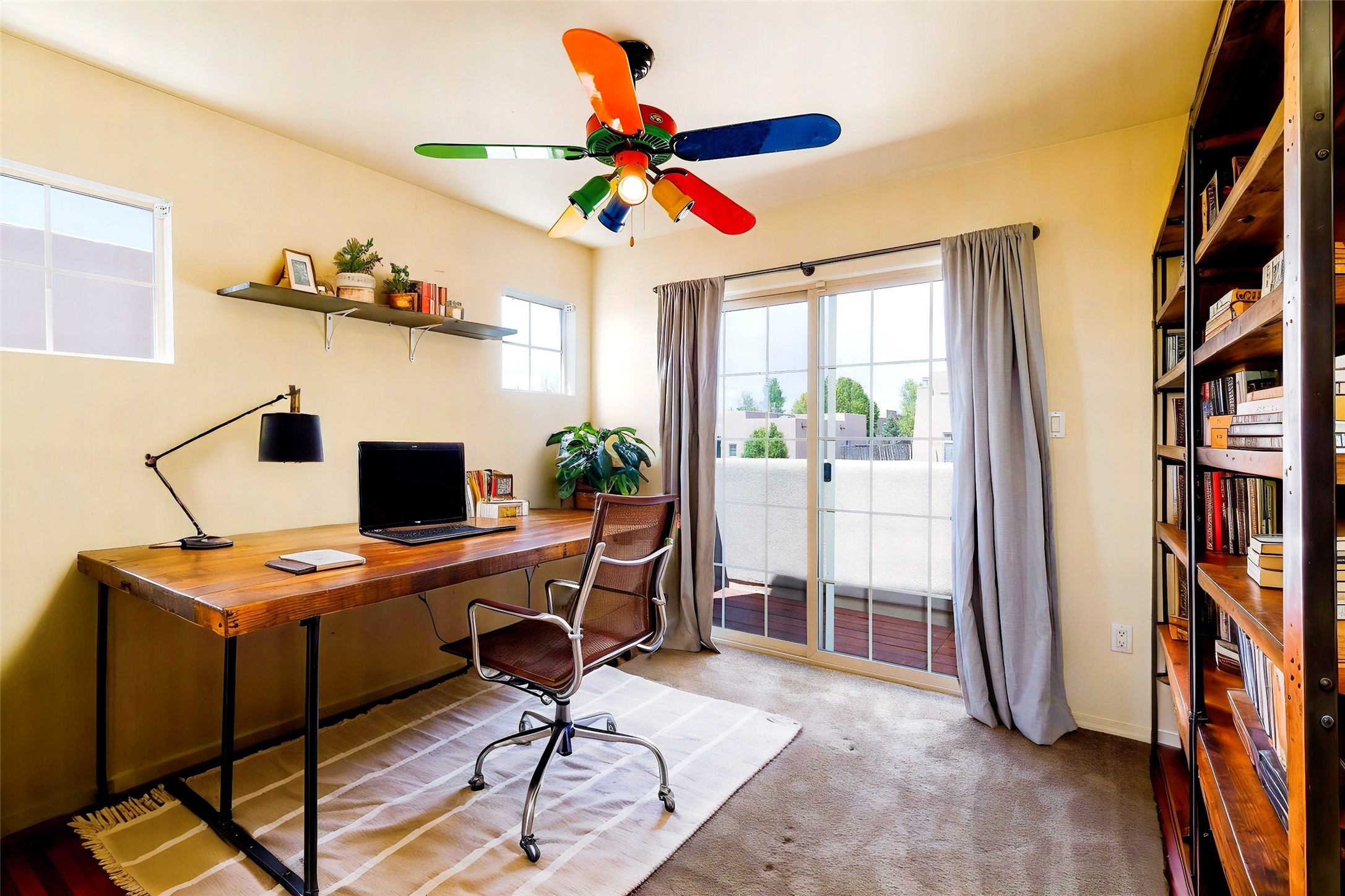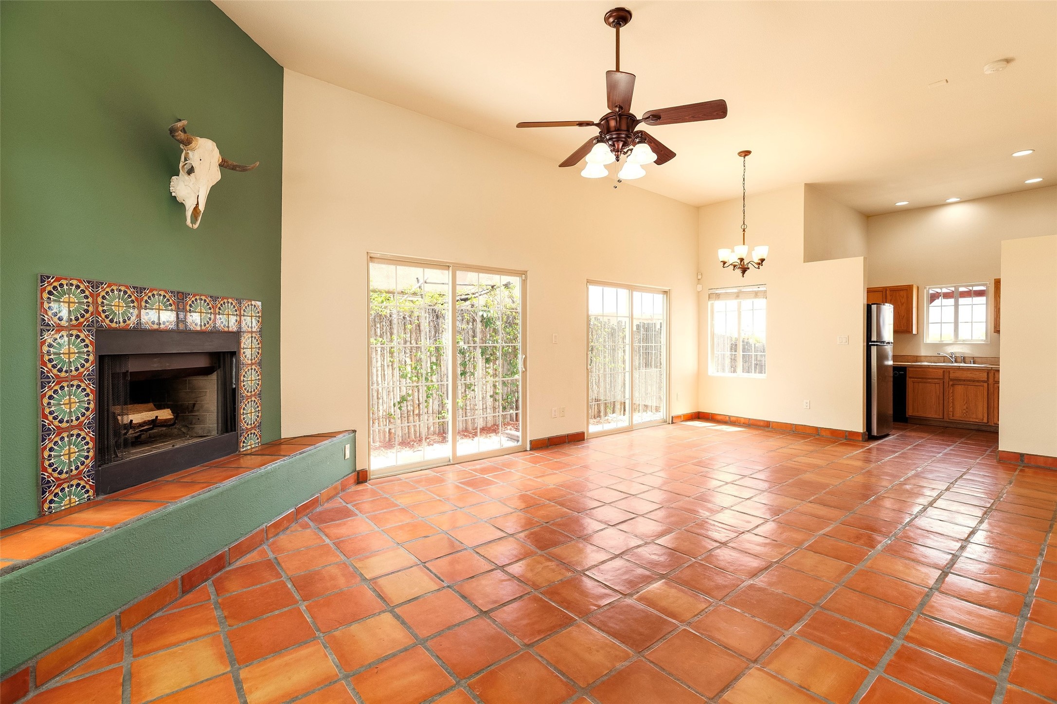 Imagine a Five (5%) mortgage interest rate! This seller incentive of a 2/1 buydown of your mortgage rate makes this possible. Now, welcome to a home that lives larger than its price, nestled in the heart of Nava Ade -- one of Santa Fe's most beloved popular, planned neighborhoods, where tree-lined sidewalks, gentle trails, community POOL and clubhouse and open skies invite you to slow down and breathe in the good life.This is not just a house -- it's a space designed for your lst home or retired lifestyle. Tucked away on a peaceful CUL-De-SAC, this light-filled home offers an affordable opportunity to own in a vibrant community without compromising style, space, or soul. Looking for a Santa Fe home with value at a smart price? Priced at $488,000, this 3-bedroom, 2-bath home offers a spacious primary suite on the MAIN level, open-concept great room living and dining, a light-filled interior with SATILLO tile floors, high ceilings, and a dramatic floor-to-ceiling wood-burning fireplace. While two second level guest bedrooms and full bath with a new BALCONY view deck offer privacy, creative space, and guest flexibility. Outside, enjoy a xeriscaped backyard with COYOTE fencing, PERGOLA for morning coffee, and outdoor room to entertain under the stars. Recent upgrades include a ROOF with transferable maintenance warranty, new stucco, updated CANALES, new dishwasher, fresh interior paint, new landscaping and more. BONUS: Seller will provide a HOME WARRANTY from Home Warranty to America at no cost to buyer! Nava Ade homeowners enjoy LOW HOA fees ($185/qtr) and access to a clubhouse, pool, fitness room, trails, and parks. This established community is minutes from schools, shopping, restaurants, hospitals, and the Santa Fe Community College.This home is your opportunity to live affordably in a well-maintained, move-in ready home with only Santa Fe blue skies and community connection. Trust your judgement! Call to see todayl Swim this summer and live in Santa Fe!