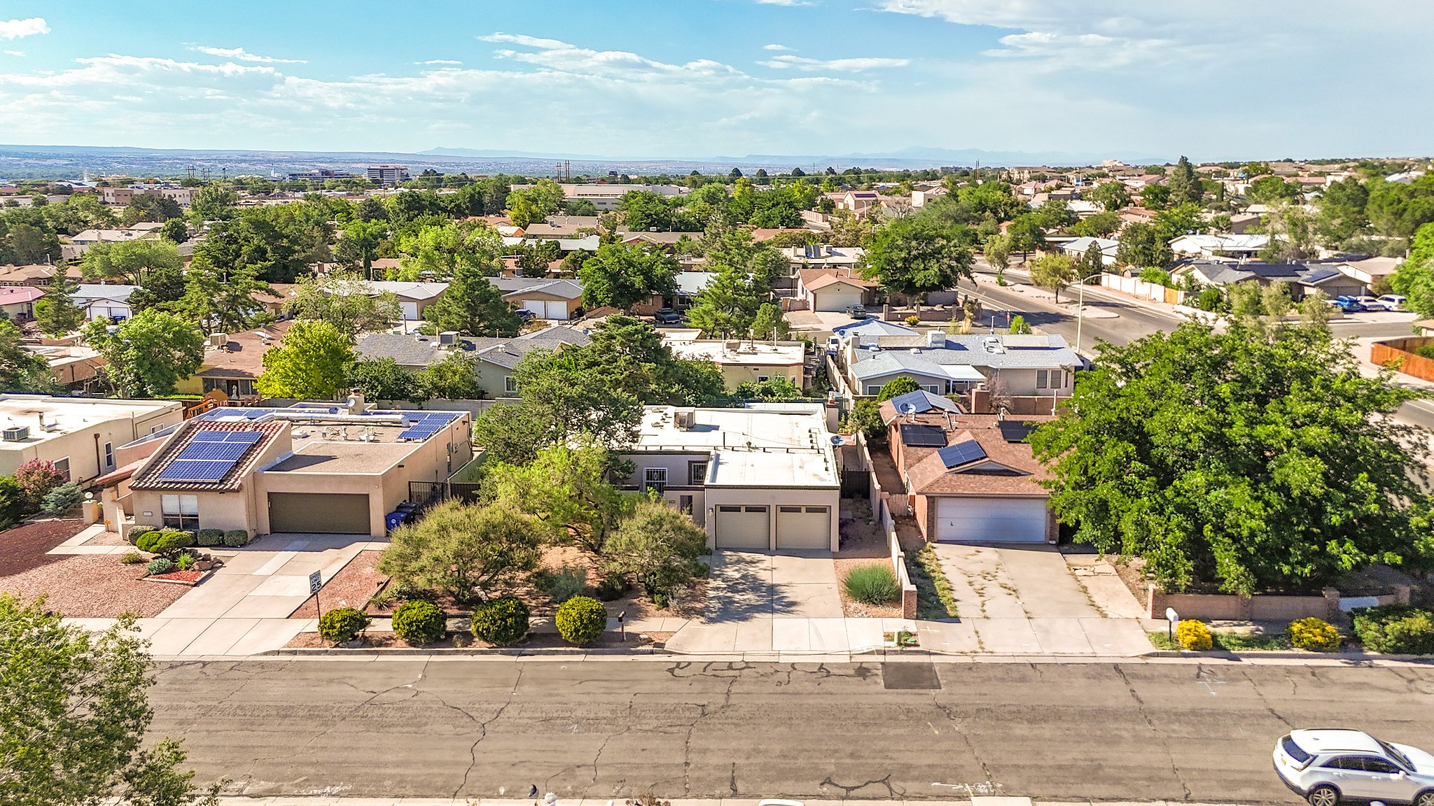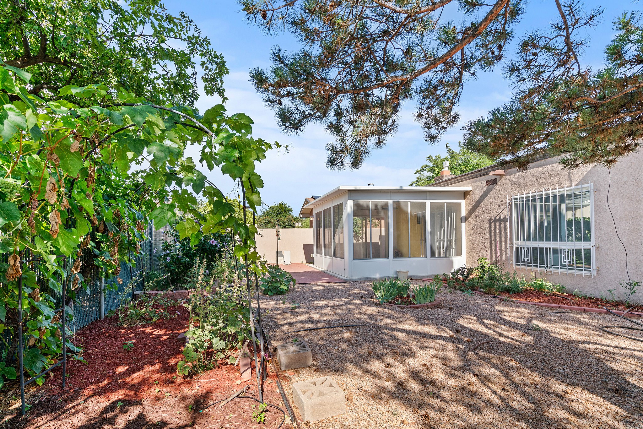 Welcome to this charming NE Heights Home. The location cannot be beat and is close to the freeway, shopping, restaurants and grocery stores!! This 3-bed, 2-bath gem features an open living room with a natural gas fireplace. This beautifully remodeled kitchen is the perfect place to entertain. This home includes a breakfast nook, and a separate dining room that could double as an office or playroom. The living room opens to a beautiful sunroom equipped with electricity, and lots of natural light! Step outside the sunroom to a beautifully landscaped well-maintained backyard with a Sandia Mountain view or step out front into the walled courtyard with raised flower beds, a custom gate and privacy. Enjoy a 2-car garage and extra storage throughout the entire home.