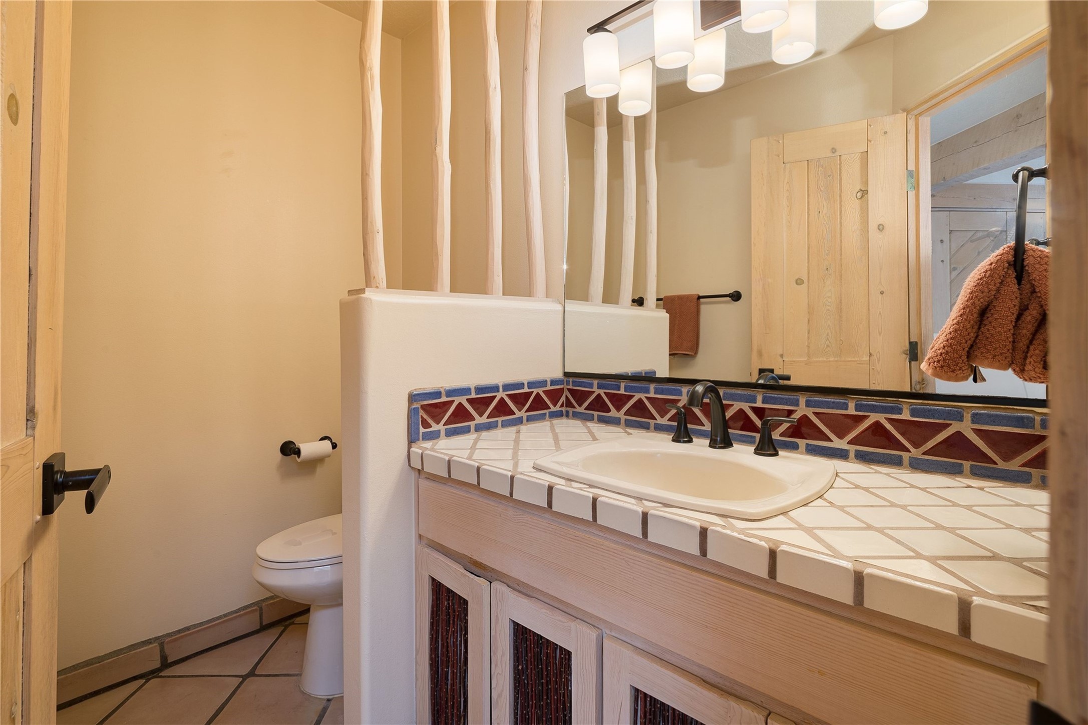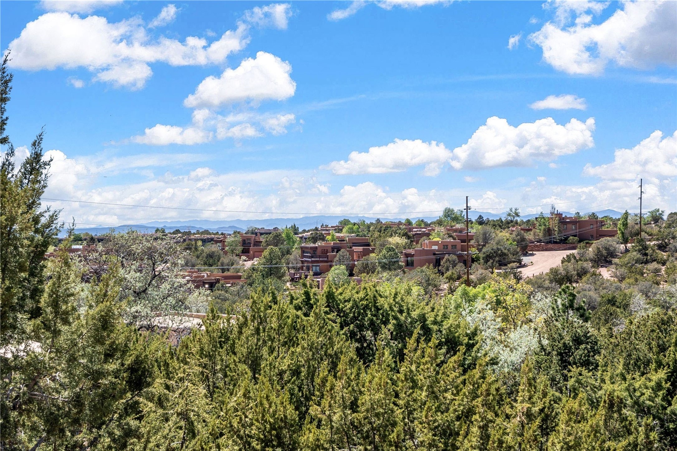 Set in the North Hills above Historic downtown Santa Fe, this serene, sophisticated home is an expressive mix of Soft Contemporary and Traditional styles. Gorgeous hardwood floors sweep from the foyer through the living/dining area with its double-sided kiva fireplace and adjacent deck. The kitchen continues the home's handsome palette with chocolate-colored countertops, maple cabinets and a sun-bathed alcove for casual meals. A few steps down from the kitchen is a den, with adjacent Laundry/Mudroom and double-door access to the sheltered back patio. A sleek, custom staircase leads to the home's four bedrooms. A soothing sanctuary, the Primary bedroom has a coved ceiling, fireplace, private view deck and ensuite, remodeled bath with walk-in, glass-walled shower. In the back garden, a moss rock wall borders an expansive, paver patio, with water feature. The atmosphere turns magical as the path glides toward the lower garden with its outdoor shower and hot tub. A new, high-efficiency boiler, solar and on-demand hot water heater add to the appeal of this refined offering. Residents of the Estancia Primera community enjoy an outdoor pool, tennis courts, and clubhouse. Walking trails enable quick access to downtown. Hiking trails and the Ski Basin are a short drive away.
