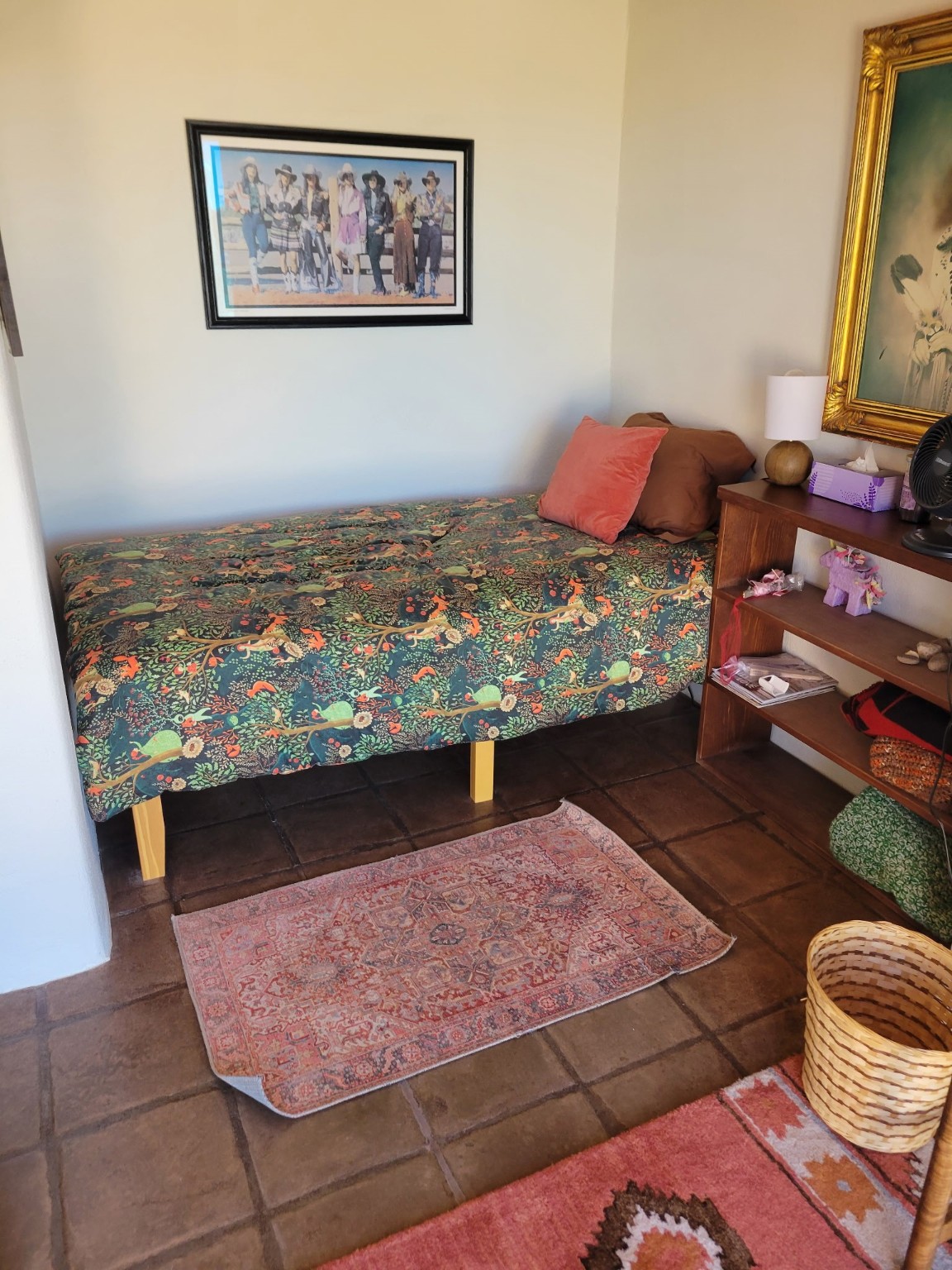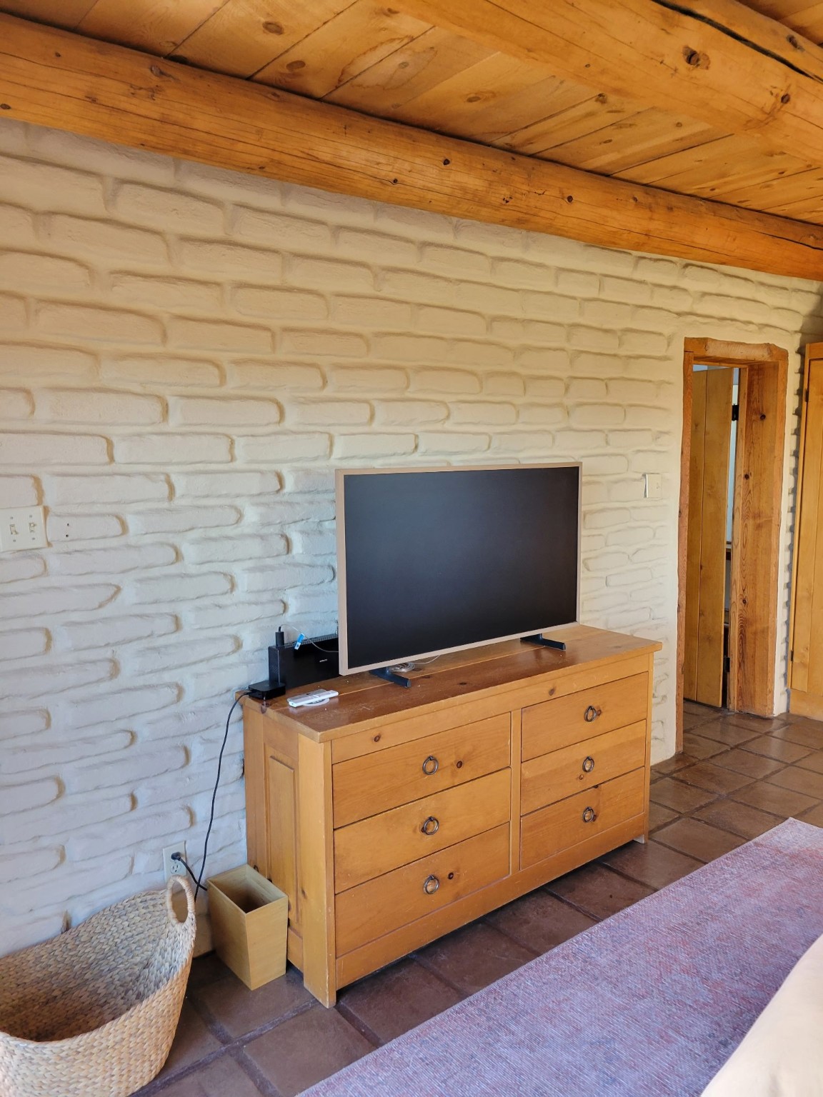 Updated charming ADOBE Passive solar home with a rustic contemporary vibe. It has two bedrooms and an office/bedroom, plus two full bathrooms on a large lot with STUNNING mountain views. The kitchen and both bathrooms were meticulously remodeled in late 2021, featuring sleek, quartz countertops, Fisher/ Paykel refrigerator, JennAir range, and a Bosch dishwasher. In addition, a new TPO roof, hot water tank, and a highly efficient Kuma wood-burning fireplace insert were also added. In 2023, two HVAC mini-split systems were installed, along with six inverters and a new washer/dryer. In 2024, a new hot tub/spa for relaxing and viewing the stellar sunsets, night sky, and bright stars. The primary bedroom features a kiva fireplace, a Trombe wall, and an en-suite bathroom. The bedrooms are on opposite sides of the home with private courtyards. The heated two-car garage has storage shelves and a workbench. The side yard is fully fenced and great for pets. Enjoy miles of walking and biking trails, a community center with a pool, tennis, pickleball courts, and dog parks. El Dorado has its own grocery store, convenience store, post office, gym, clinic, hardware store, senior center, restaurants, etc.. The home is also within blocks of one of the more highly regarded elementary schools in Santa Fe. All within a 15-20 minute drive to Santa Fe.