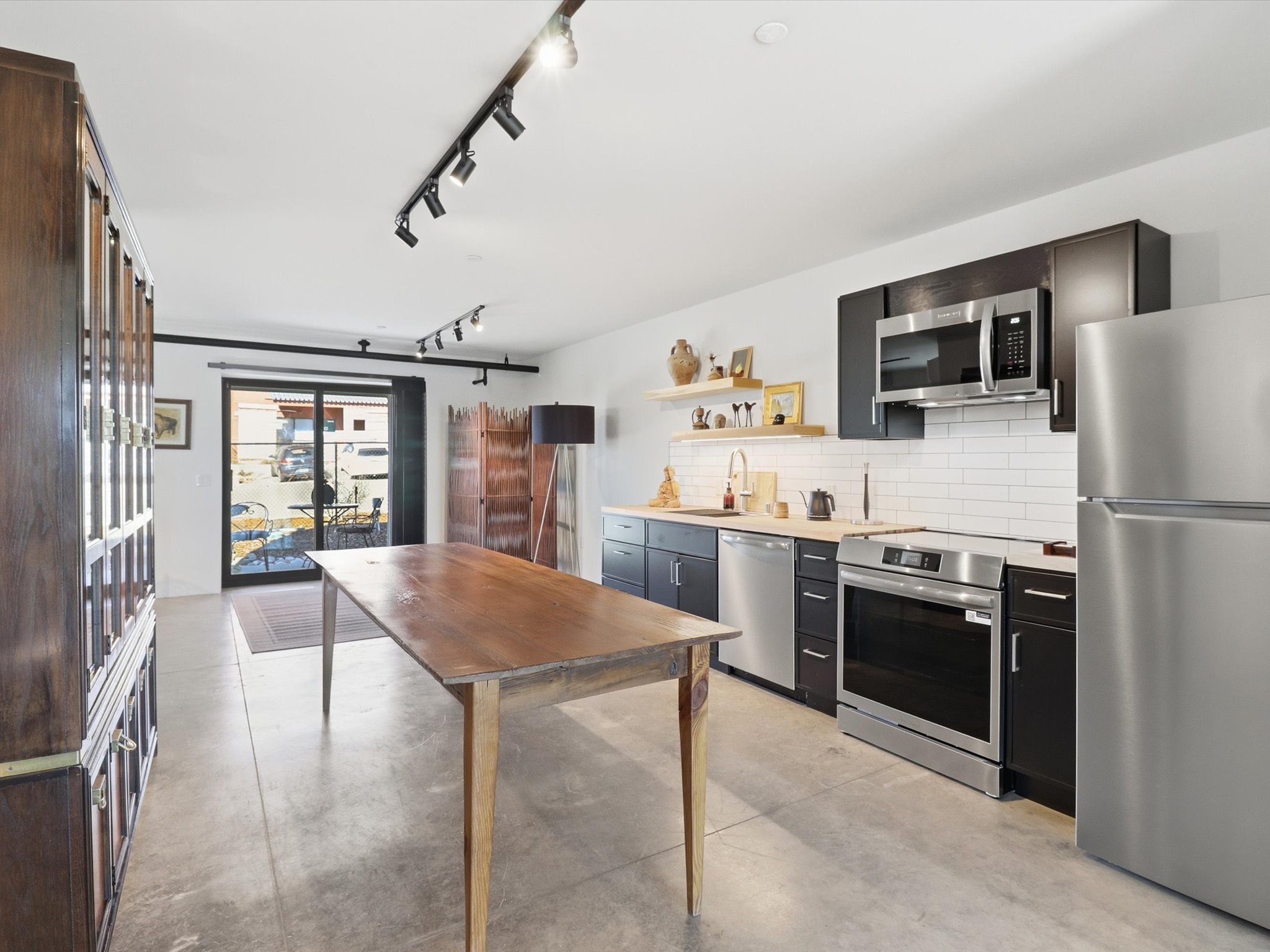 Brand-new industrial modern construction in Santa Fe's evolving Siler Rufina District, a dynamic creative and light-industrial corridor just off Cerrillos Road. Designed for professionals, artists, designers, architects, and creative retailers.Whether launching a new studio, opening a gallery, or growing a design-forward business, this space is crafted to elevate your work. Features include: Gallery-style interiors with high ceilings and abundant natural light. Flexible live/work layouts ideal for studios, showrooms, offices, or creative workspaces. Retail-ready storefronts adjacent to The Consignment Warehouse, a 5,000-square-foot art and furniture consignment gallery with a loyal following, Full kitchen and two full bathrooms plus washer/dryer. Ample parking with EV charging available. Easy access for clients, visitors, and deliveries.C-2 zoning supports a wide range of uses including retail, gallery, office, and live/work. The property is gated and fully secured.Lease terms: $3,400/month plus utilities. Internet included. No CAM fees.