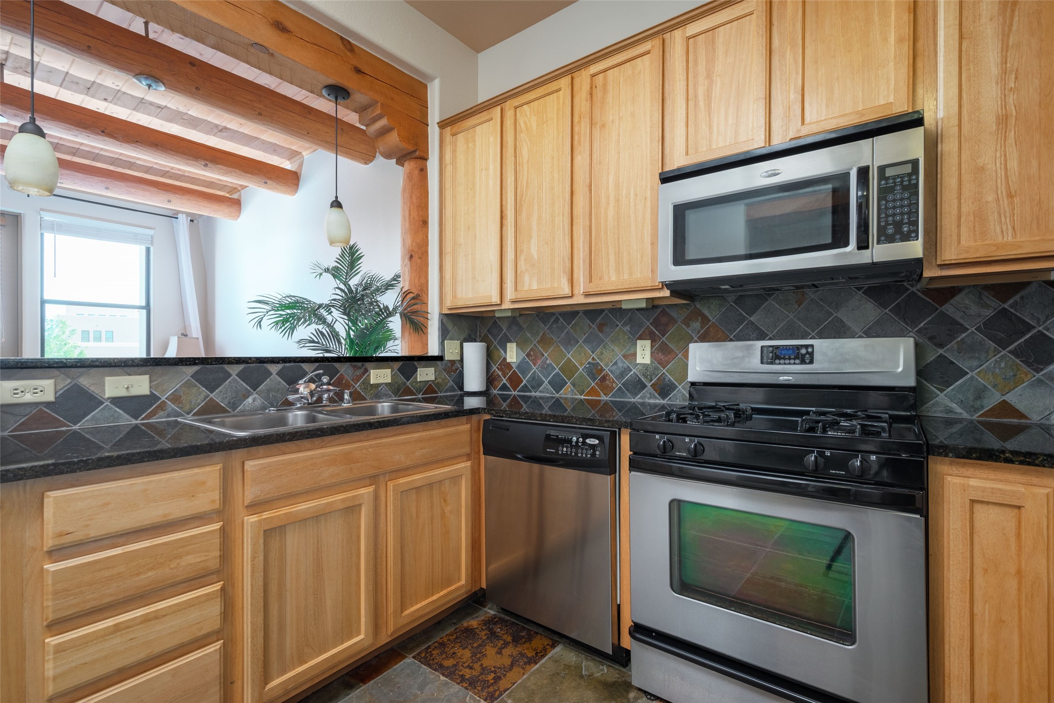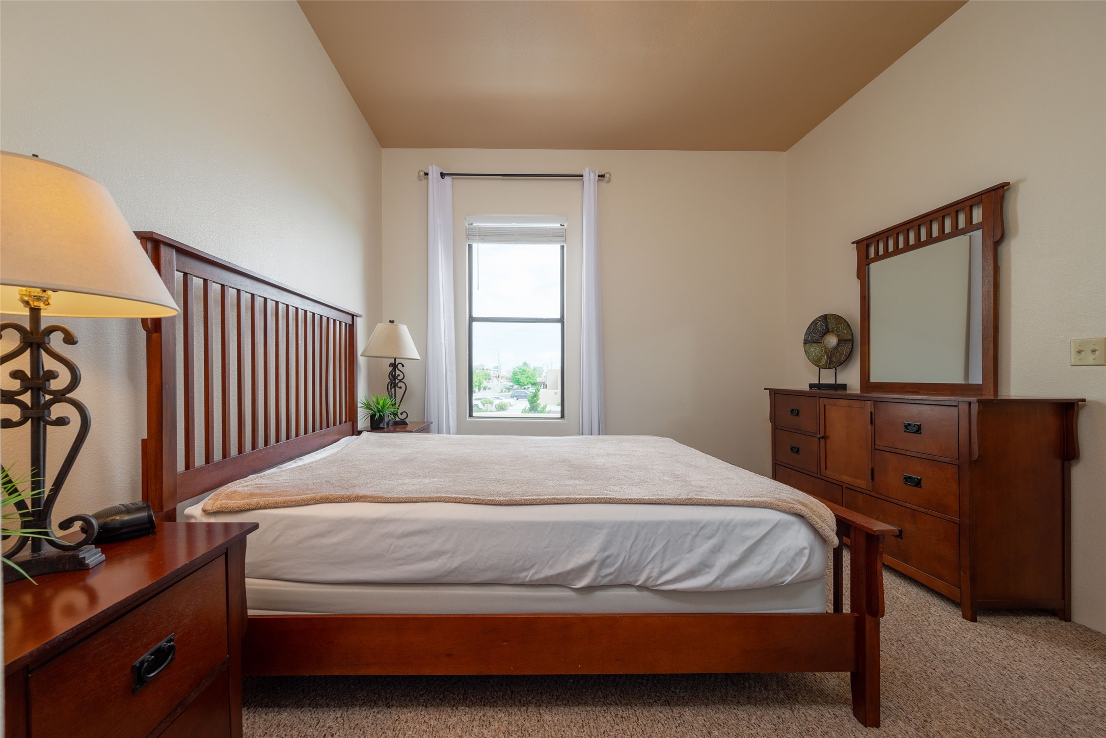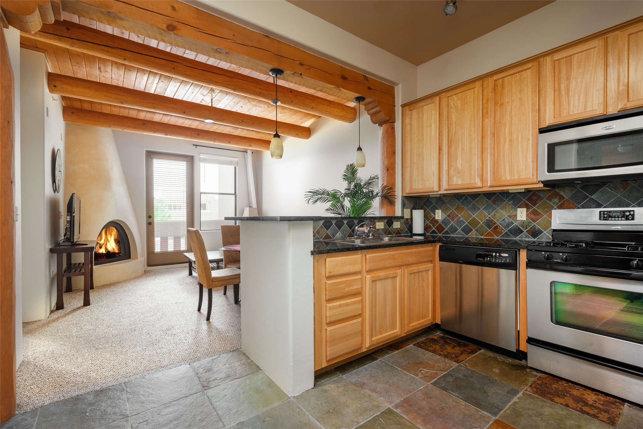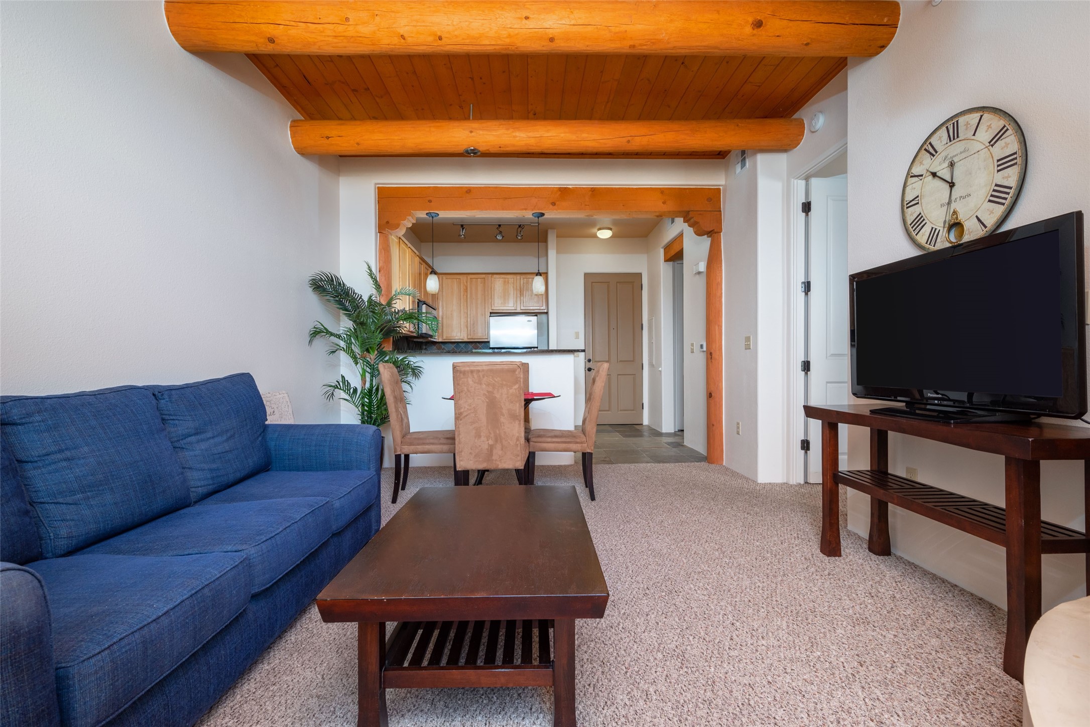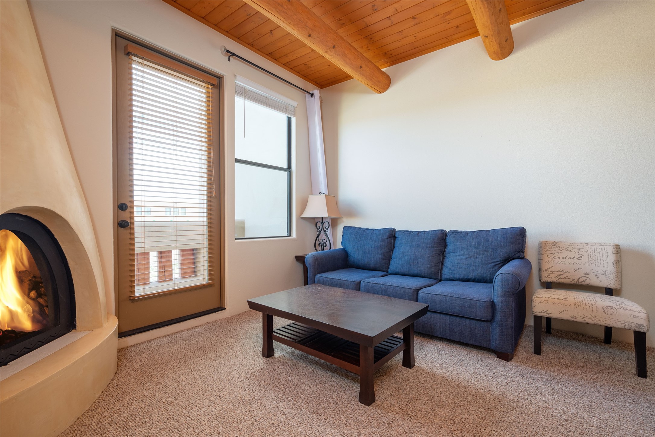 Move-in ready and perfectly located, this fully furnished top-floor condo offers comfort, convenience, and community features that are hard to match. Enjoy secured building access, gated parking, multiple elevators, a fitness center, spacious community areas for gatherings, an outdoor pool, and a BBQ area. Inside, the unit features a charming Kiva fireplace, slate flooring in the living room and bathroom, an oversized bath area, and architectural details like vigas and skylights that bring in abundant natural light. Ideal for a primary residence, vacation home, or investment property, this unit is ready for immediate occupancy.