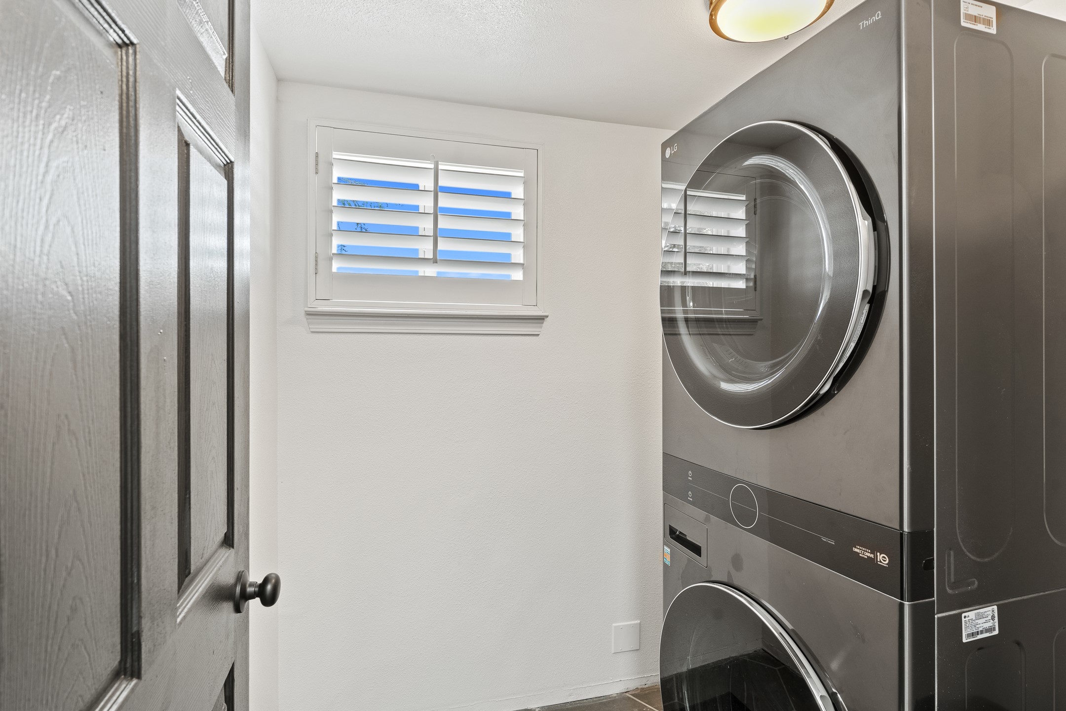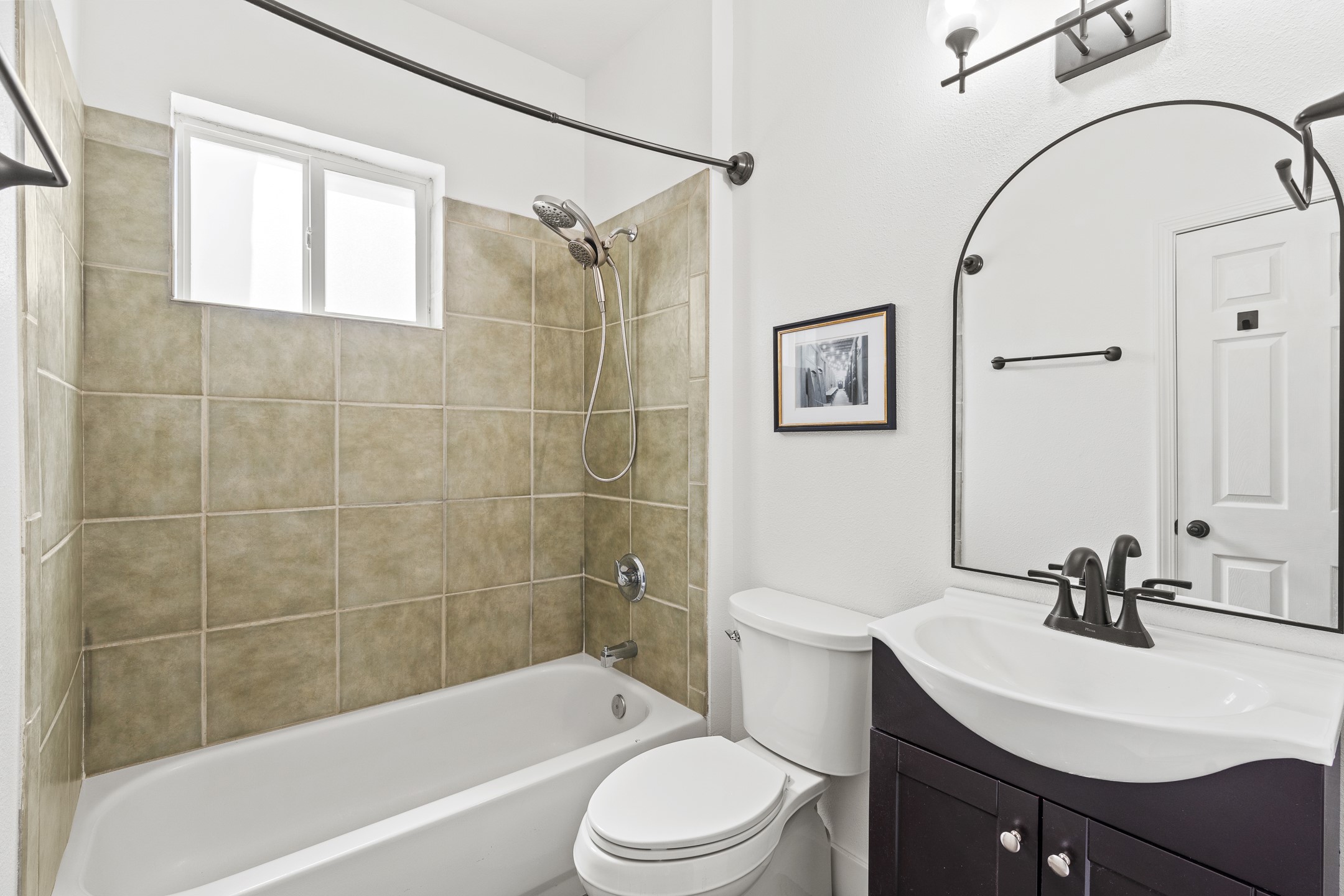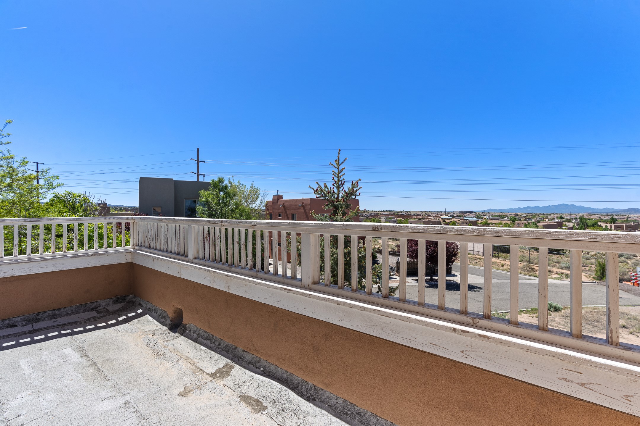 Welcome to 4124 Big Sky Road, a beautifully updated home in the highly desirable Nava Ade Subdivision. With 1,632 square feet of stylish and comfortable living space, this light-filled residence offers thoughtful design and exceptional outdoor living. The spacious primary suite is located upstairs, featuring a walk-in closet and a luxurious ensuite bath complete with double sinks, a freestanding soaking tub, and a separate shower. Downstairs, two guest bedrooms provide privacy for family or visitors and are conveniently located near a full guest bath and laundry room. Generous closet space throughout ensures plenty of storage. The living room impresses with soaring ceilings, large picture windows that flood the space with natural light, and a cozy fireplace--complete with stacked wood ready for crisp fall and winter nights. Two sliding glass doors--one off the dining area and another off the breakfast nook--open to a generous backyard enclosed with coyote fencing. Enjoy summer evenings on the spacious patio, gravel-lined walkways, and a perfect view of Santa Fe Place Mall's Fourth of July fireworks, giving you a front-row seat to your own private show. The updated kitchen showcases modern flair with quartz countertops, floating shelves, a designer backsplash, high-end appliances, a custom hood, and a freestanding island from Raven that stays with the home. Tiled flooring throughout adds a cohesive and elegant touch. A long private driveway leads to a detached two-car garage, and residents enjoy access to Nava Ade's clubhouse, pool, and parks. Don't miss this opportunity to own a stunning home in one of Santa Fe's most beloved communities. The sellers were drawn to this home for its stunning evening skies--and they know the new owners will fall in love with them too.