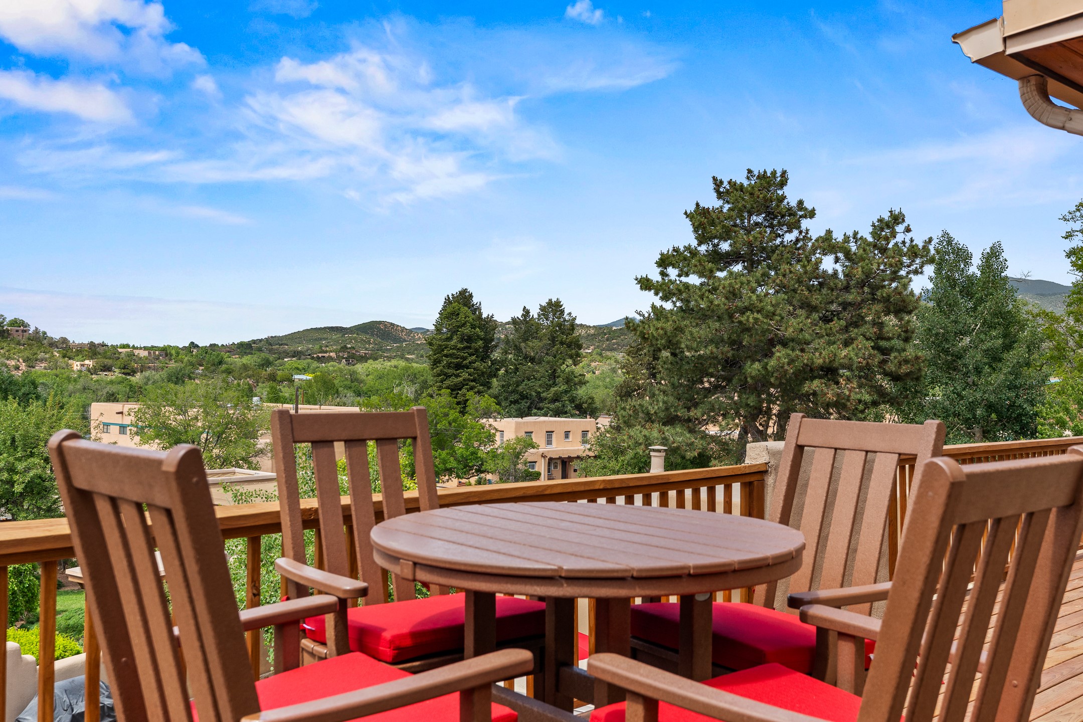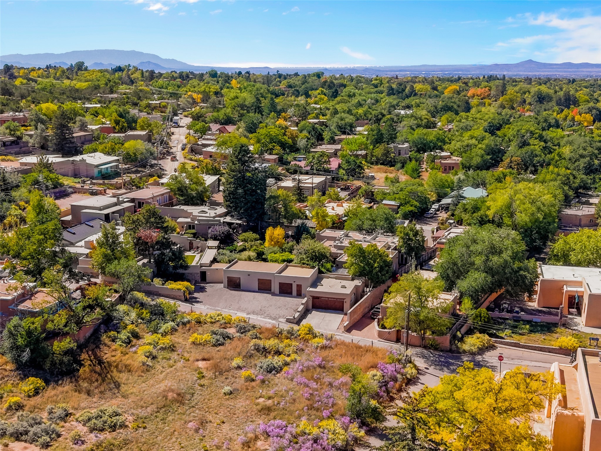 This Historic Eastside home is in the gated Girard Gardens Compound located a block from the Canyon Road arts district. It consists of a beautifully appointed main home and a guest casita. The casita has the possibility of being used as a wonderful studio, home office space or as an income generating rental. The location of this property has close proximity to all Santa Fe has to offer. Hiking, skiing, mountain biking, along with the fabulous restaurants and cultural activities for which it is famous. Mountain views from the expansive upstairs deck, a large private outdoor garden space. 3 large bedrooms, 3.5 bathrooms with ample closet space. The fully equipped kitchen has stainless appliances and is a bright welcoming space for the cook in the family. A detached garage is included with the main home. The guest casita has its own parking space. This is a turn-key sale which includes all designer selected furnishings.