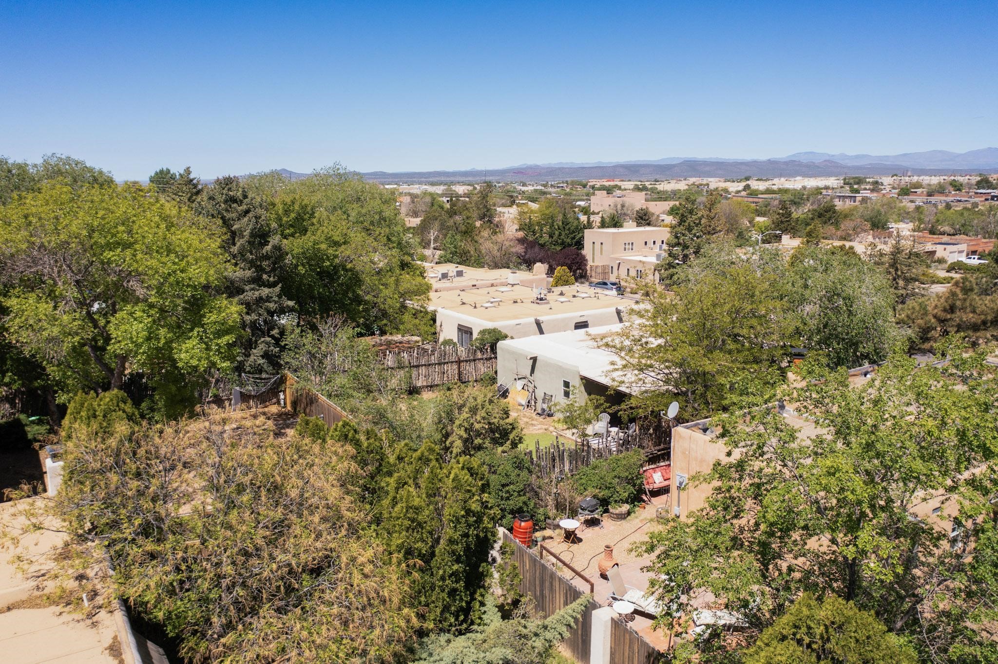 Charming 2-bedroom home in beautiful Santa Fe! This cozy retreat features classic Southwestern details including viga ceilings, tile floors, three skylights that fill the space with natural light and a stunning kiva fireplace. The kitchen opens to the dining area, creating a warm and functional layout. The second bedroom offers cozy carpeting, while the primary bath boasts a custom steam shower with three luxury shower heads! A large walk-in closet completes the master retreat. Step outside to an open patio and oversized backyard, ideal for entertaining or relaxing under the Santa Fe sky. A true blend of comfort and New Mexico charm!