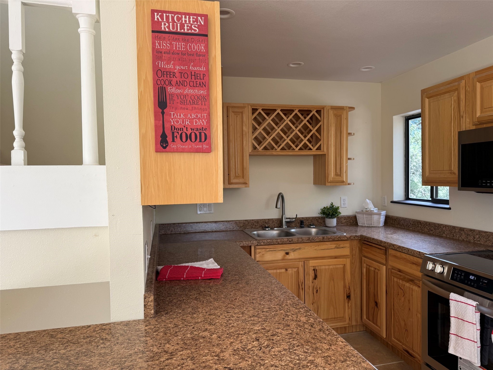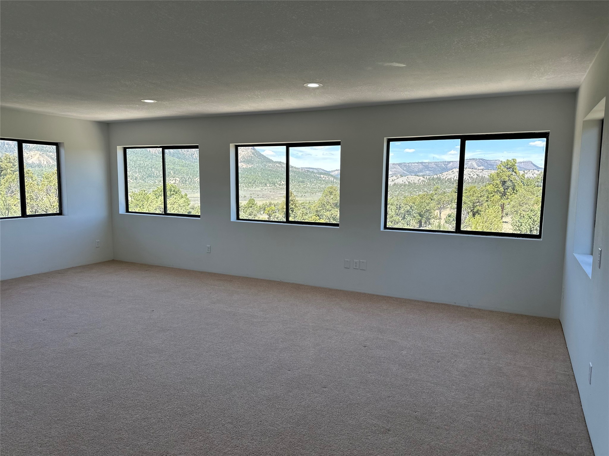 Country meets modern in this BEAUTIFULLY remodeled home in Pinon Ridge! Commanding views of El Vado Lake (dam is under restoration) Apache Mesa, Horse Lake Mesa and Sawmill Mesa will delight your guests. This 2000 plus sq/ft home sits on almost an acre of land with mature trees and rock landscaping that perfectly compliments the property. Sunlight spills through large windows and high ceilings in the living room and dining room with an open Kitchen and a new stainless steel appliance.The large primary suite boasts tons of natural light. Enjoy your coffee or tea while basking in the morning sun from the upstairs balcony. The guest bedroom is on the lower level with a full bath and has an extra bonus room! This additional space could be another sleeping area, work out area or hobby/craft room. The lower level also includes the laundry room off of the bath. Fishing enthusiasts, this property is just about 1/2 mile from El Vado Lake, close proximity to the Chama River and Heron Lake. There is lodge and Cafe about 1/2 mile. Pinon Ridge has Year-round access and home is on the Pinon Ridge community water system. Borders the vast Jicarilla Apache land! Get away from the hustle and bustle of city life and enjoy the fresh mountain air of Northern New Mexico. Whether you're searching for a full-time sanctuary or a weekend escape this is a must see!