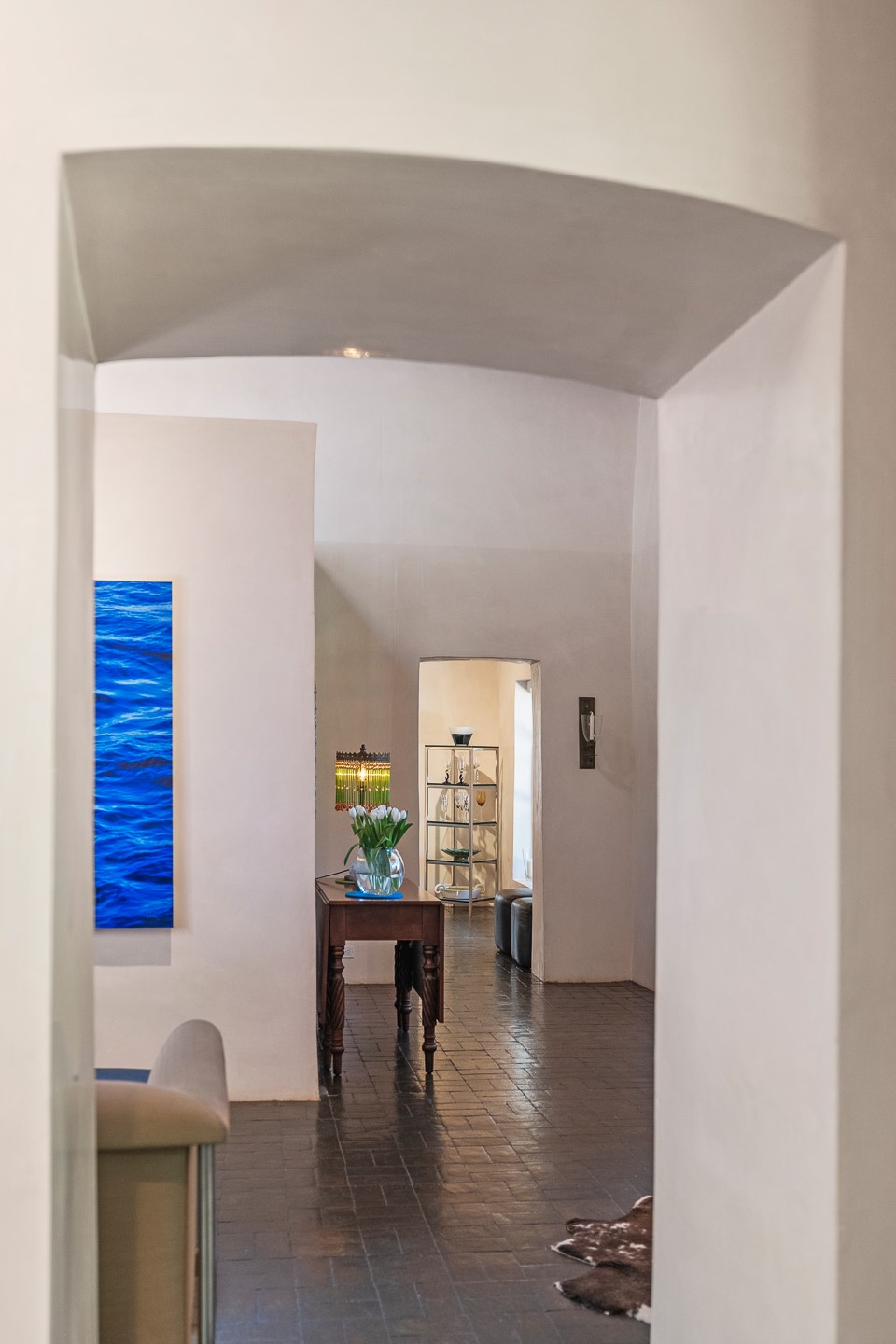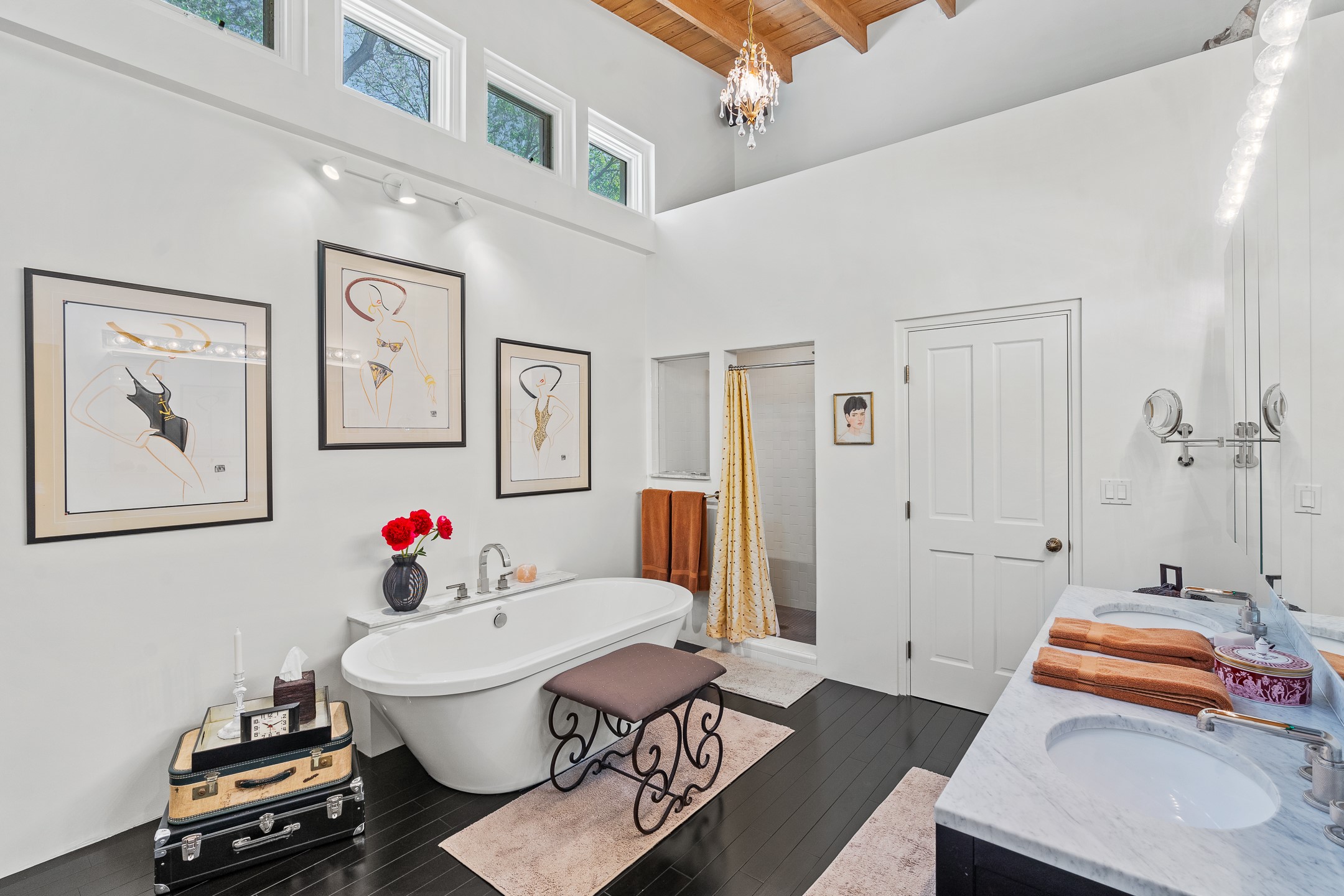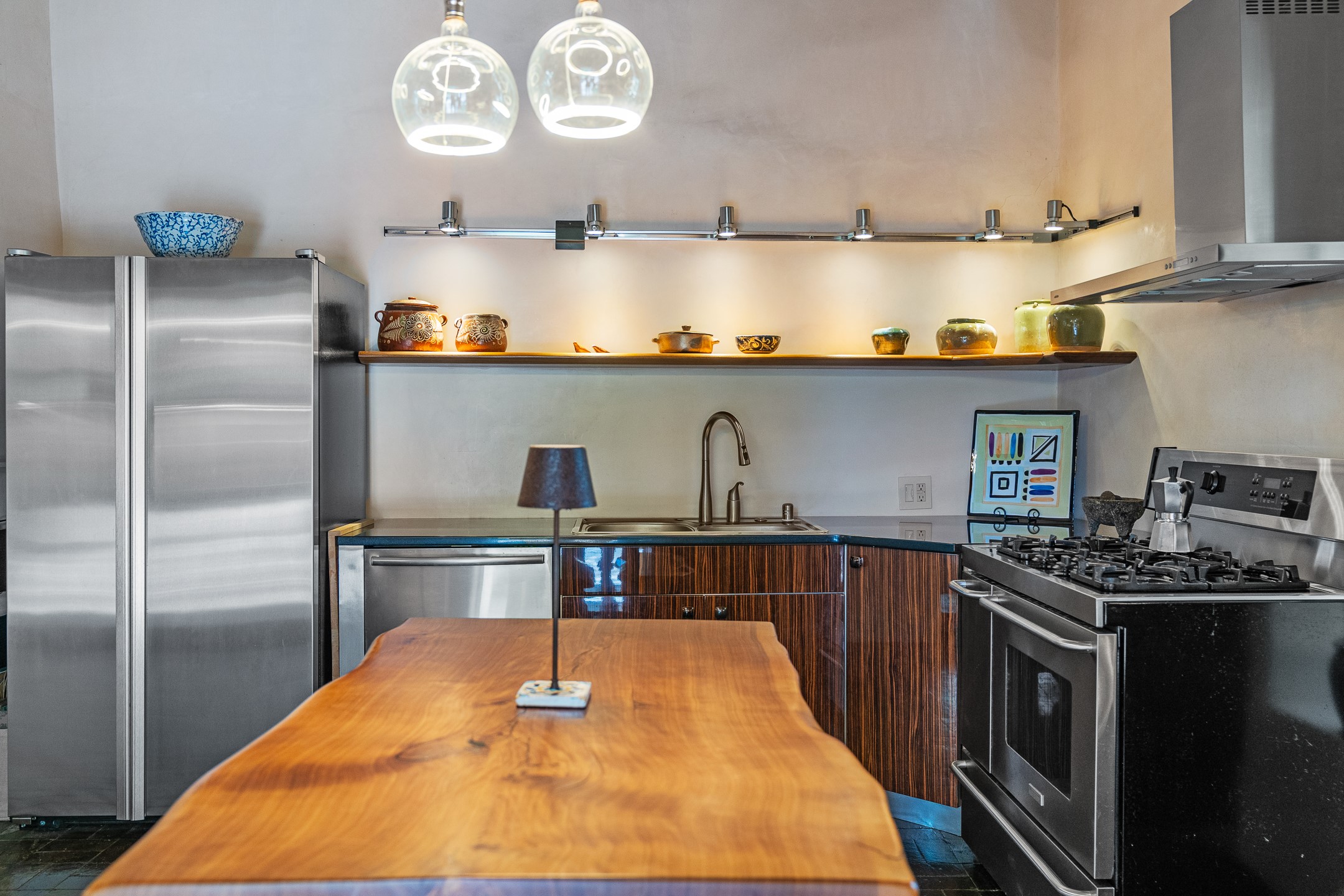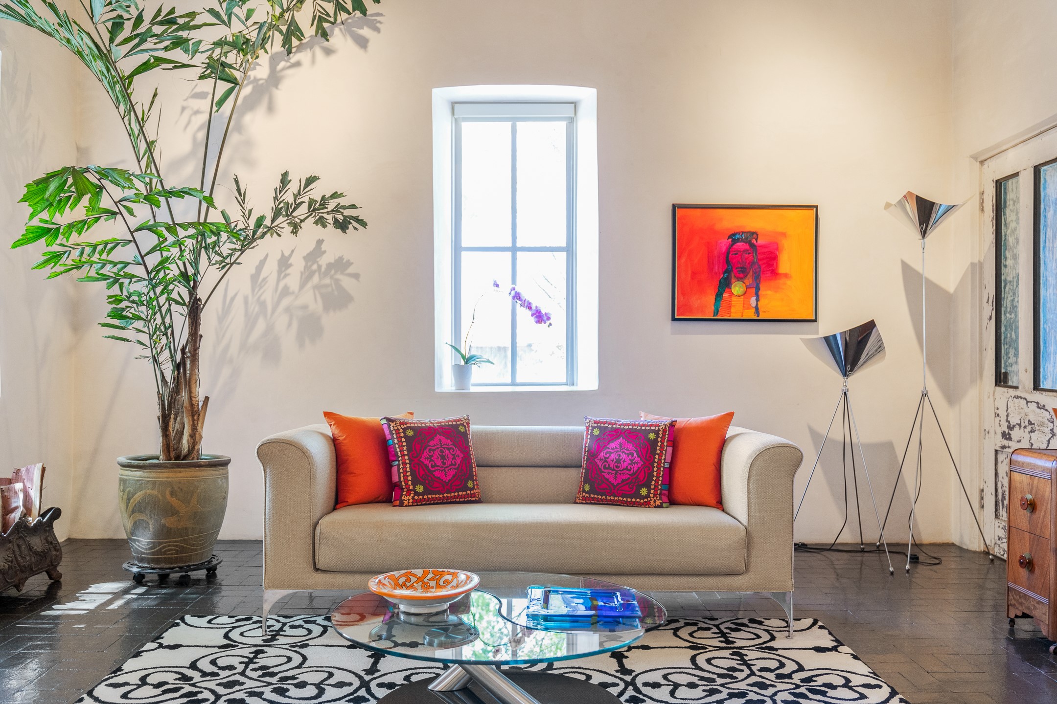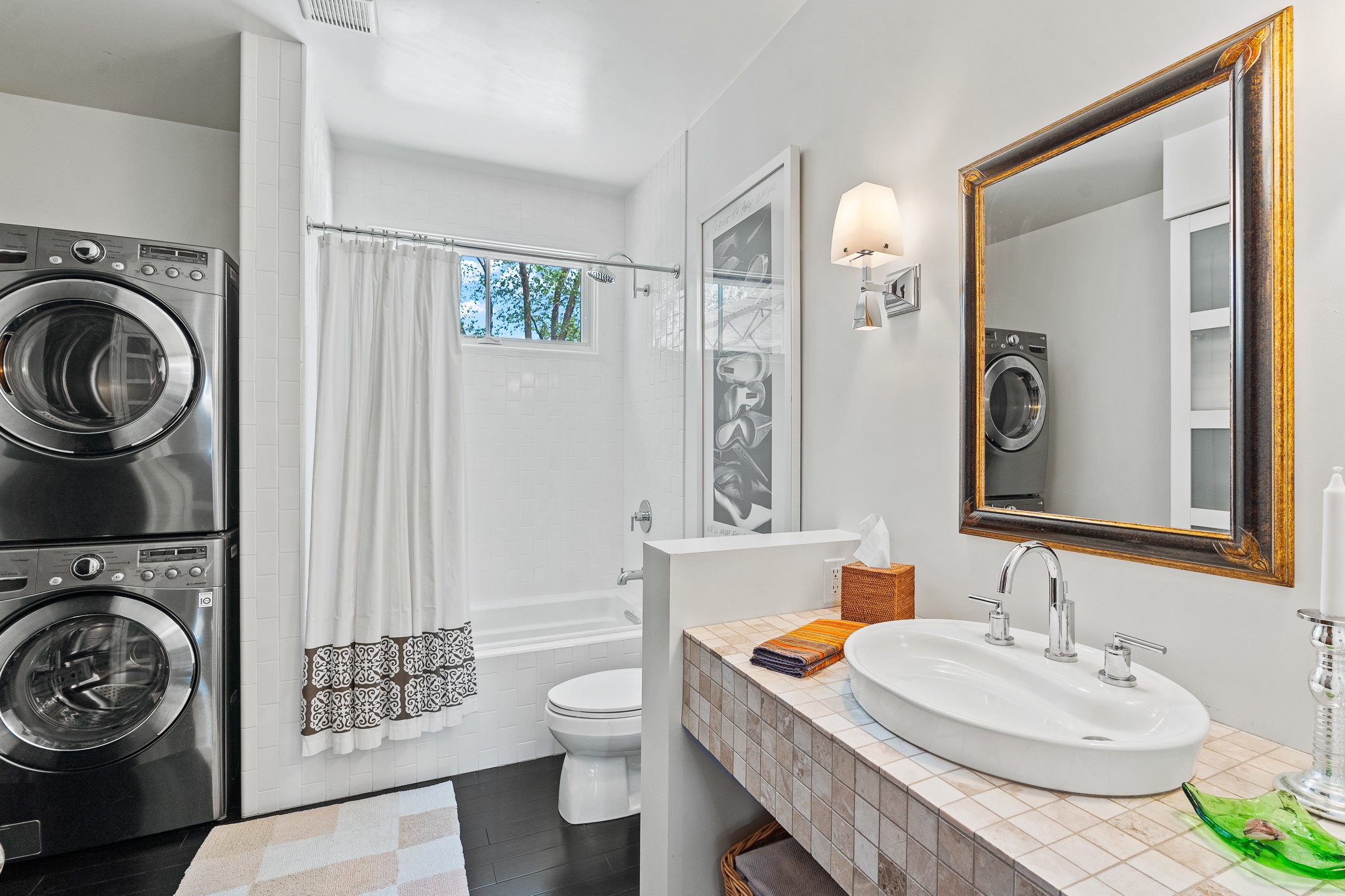 An Icon on East Palace Avenue - 519 East Palace. This historic estate blends the romance of Spanish Revival architecture with modern sophistication. Set on a beautifully landscaped third of an acre--with a lilac grove and mature trees--the property is recorded on the King's Official Map of Santa Fe and located just a short stroll to the Plaza, Canyon Road, galleries, and restaurants. A rare amenity in this location, the adobe estate offers parking for 8+ vehicles, ideal for hosting. The 2,500 sq. ft. main residence and 526 sq. ft. guest house form a serene, private compound. Inside, 15-foot exposed wood ceilings, polished brick floors, and massive adobe walls with diamond plaster create sculptural doorways and dramatic room volumes. The living room, with its soaring ceilings and wood-burning fireplace, balances architectural drama with quiet elegance. The kitchen is a striking surprise--modern KraftMaid Lustra Tygris Gloss cabinets with black granite counters bring sleek contrast to the adobe aesthetic. The primary suite, a seamless 2010 addition, offers views of the front courtyard, a contemporary fireplace, and open shed ceilings that fill the space with natural light. The one-bedroom guest house--thought to be the original pony barn--has been transformed into a charming retreat with a full bath and kitchenette. The enclosed backyard features a spacious 2-car carport, storage unit, and a hand-carved antique East Indian gazebo from Seret & Sons--a dramatic setting for evening gatherings. 519 East Palace is a true New Mexico treasure, where rich history, adobe elegance, and Santa Fe's timeless magic meet in perfect harmony.