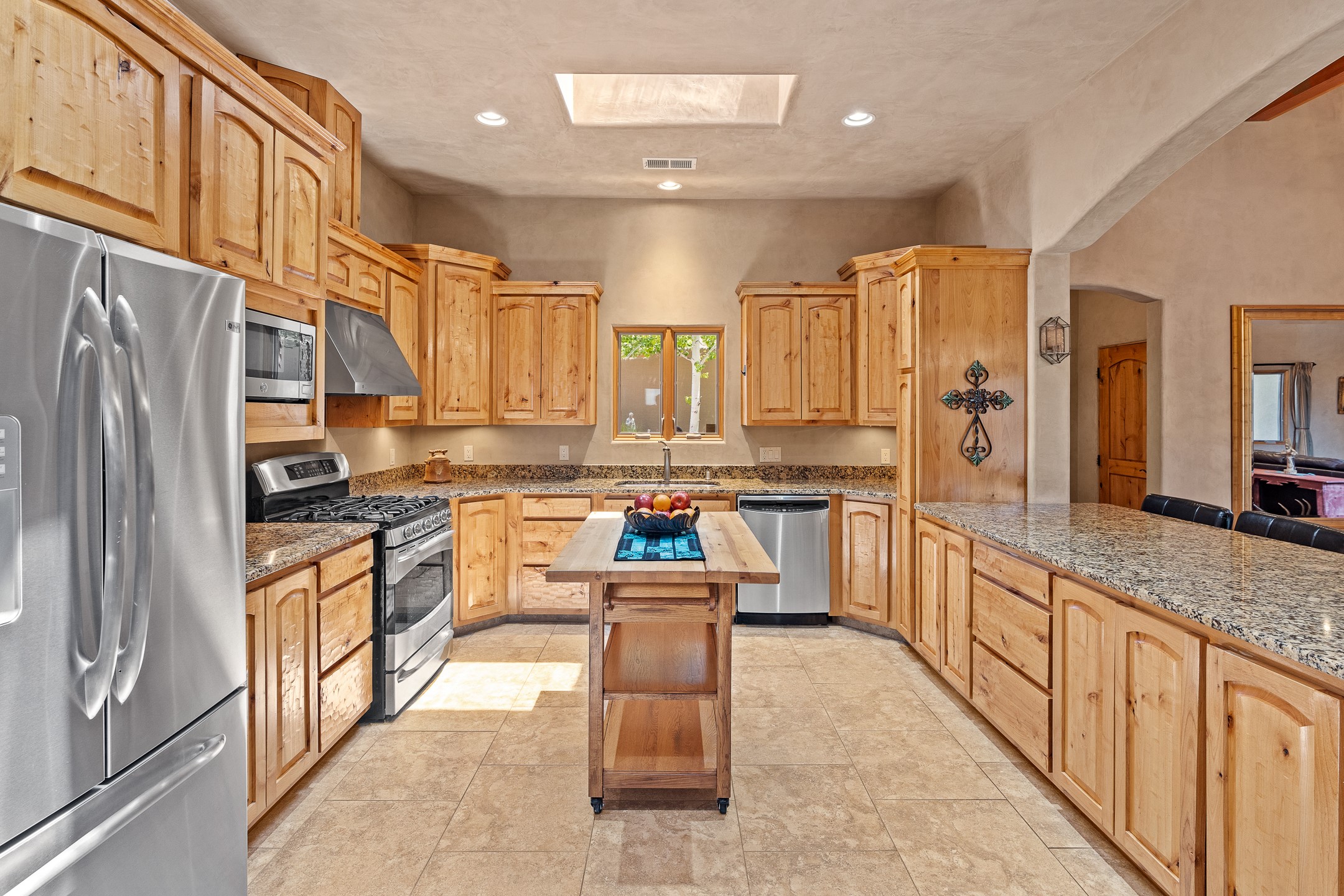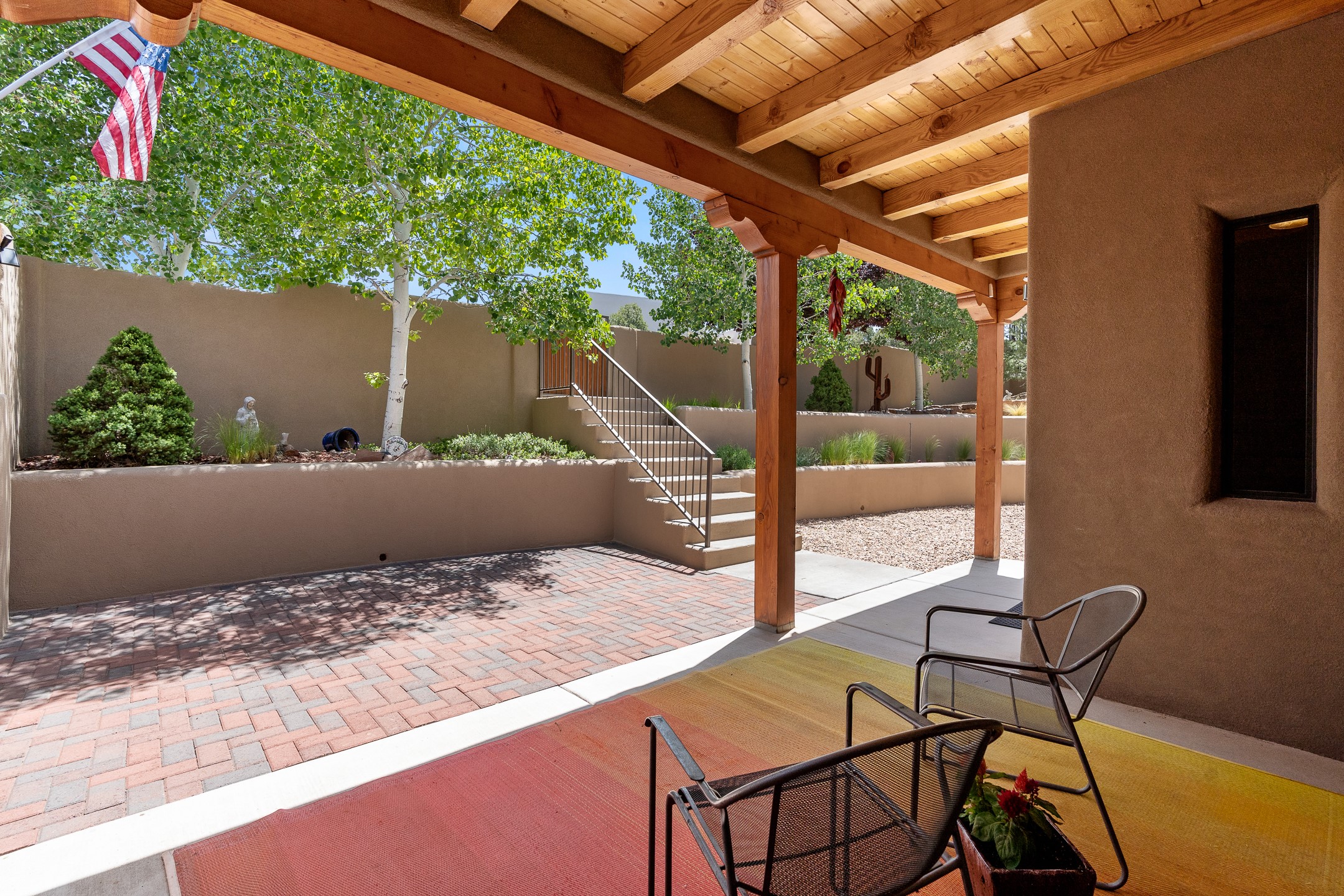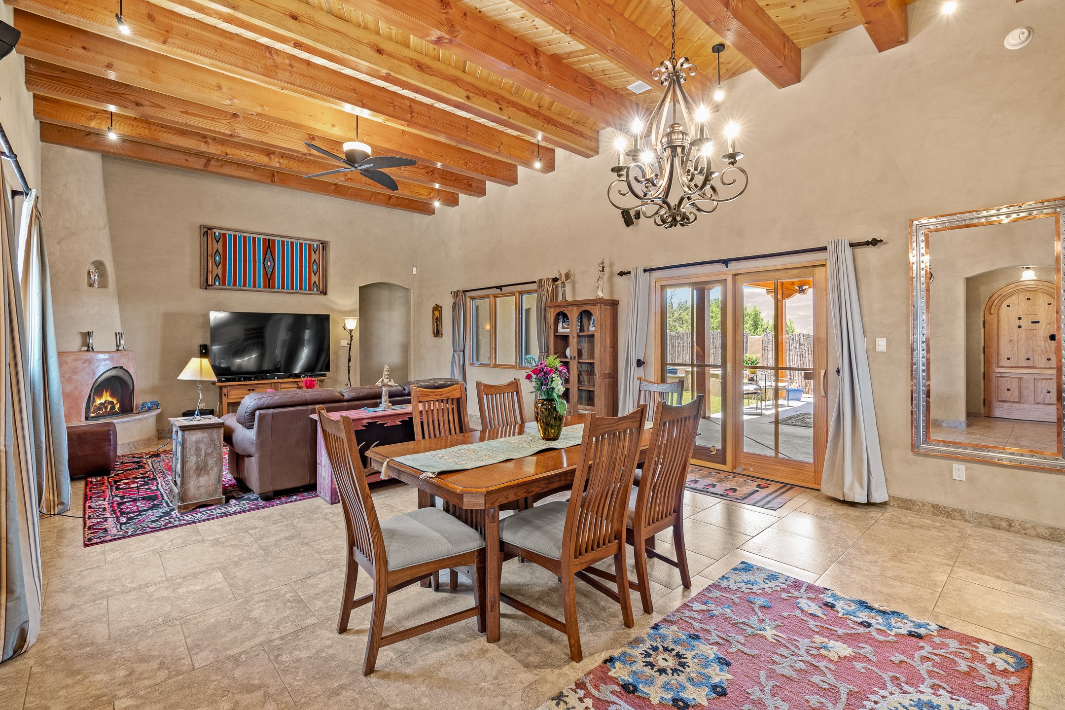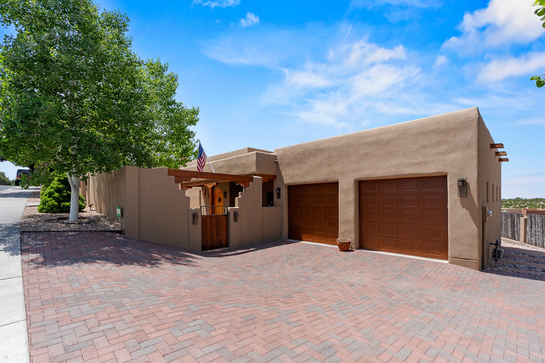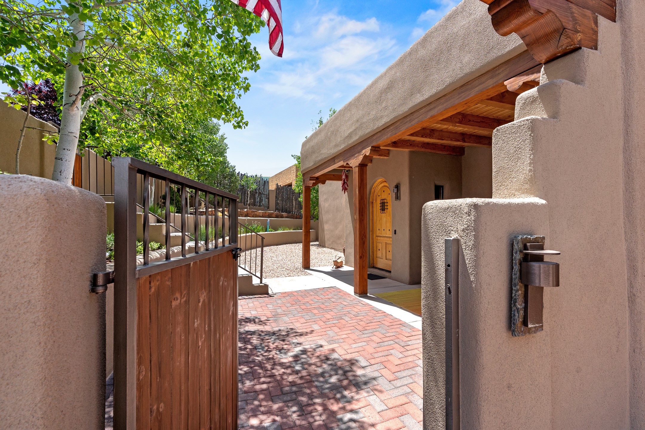 Southwest Elegance at 21 Camino BarrancaDiscover timeless Santa Fe style in this custom-built 3-bedroom, 2-bath 2 car garage, home located in the highly sought-after Aldea de Santa Fe community. Impeccably maintained and offering 2,129 square feet of thoughtfully designed living space, this home seamlessly blends authentic Southwestern charm with modern comfort.Inside, you'll find exposed wood beams, hand-troweled plaster walls, and a mix of rich wood and tile flooring, creating a warm, inviting atmosphere. A traditional kiva fireplace anchors the living room, perfect for cozy evenings, while large windows bathe the home in natural light and frame views of the lush, landscaped surroundings.The open-concept kitchen and living areas are ideal for both everyday living and entertaining. Outdoors, enjoy the tranquility of mature landscaping, raised garden beds, and peaceful patio areas--perfect for al fresco dining or quiet reflection. The yard is completely fenced or walled for your furry friends. New stucco in 2023, water heater replaced in 2018, microwave in 2021. New Gaco roof with 10-yr warranty. There is radiant in floor heat (No Kitec :)forced air and AC. the driveway is finished nicely with pavers. Set in a quiet, well-established neighborhood with access to walking trails and community amenities. Aldea is an active new-urbanist community that offers 13 miles of walking trails, Numerous parks and shared open spaces, basketball, tennis and pickleball courts and a playground and community center for special events.This home offers the best of Santa Fe living--comfort, character, and connection to nature. A truly special home, ready to welcome you.