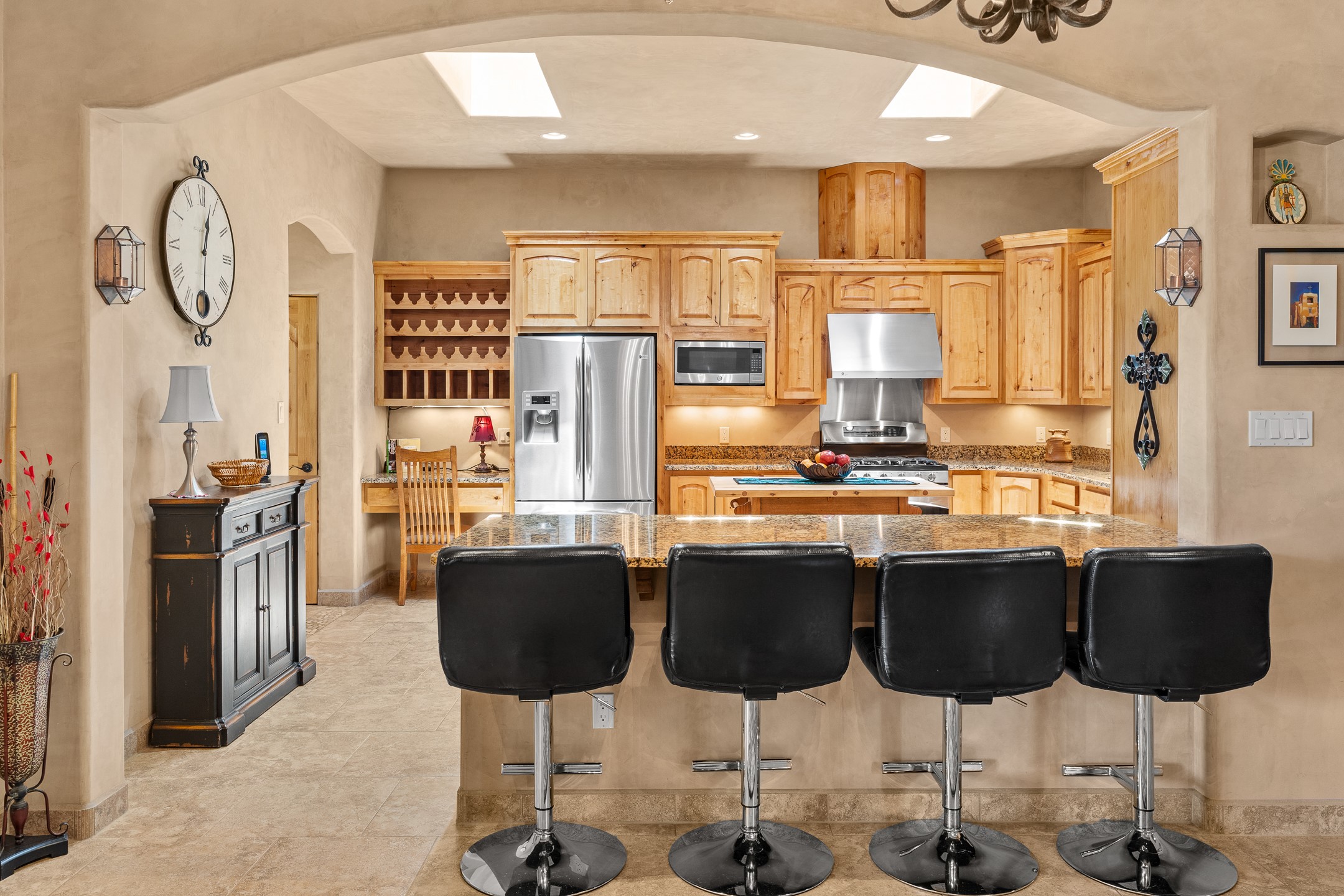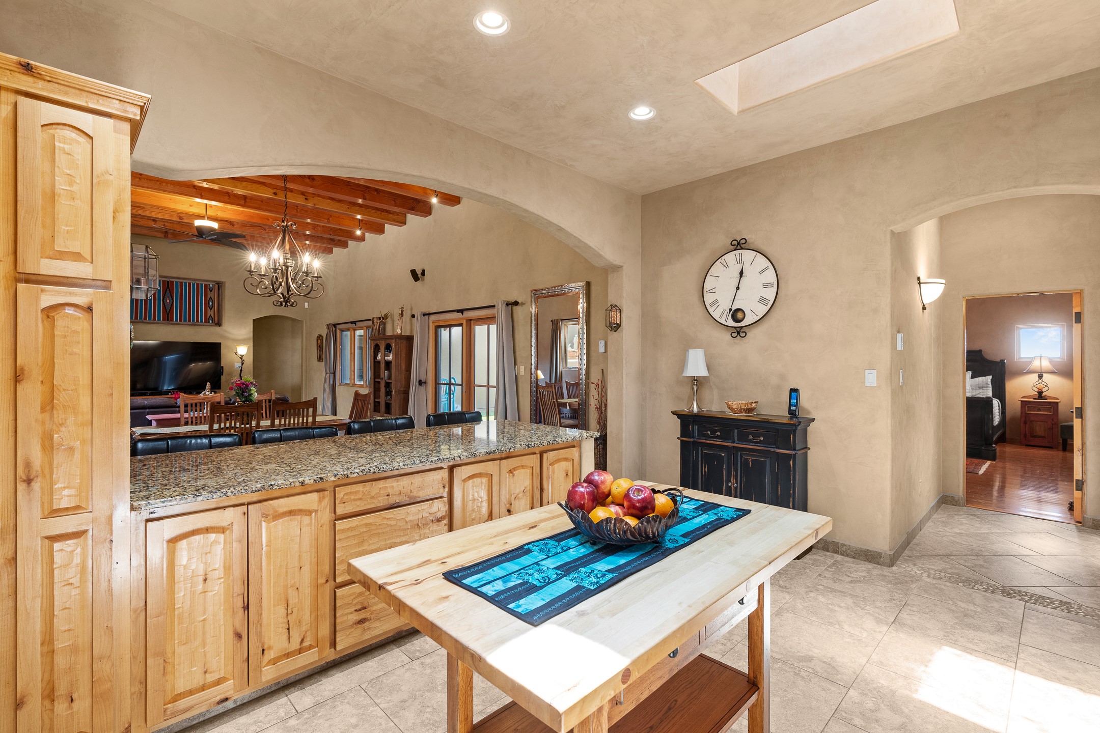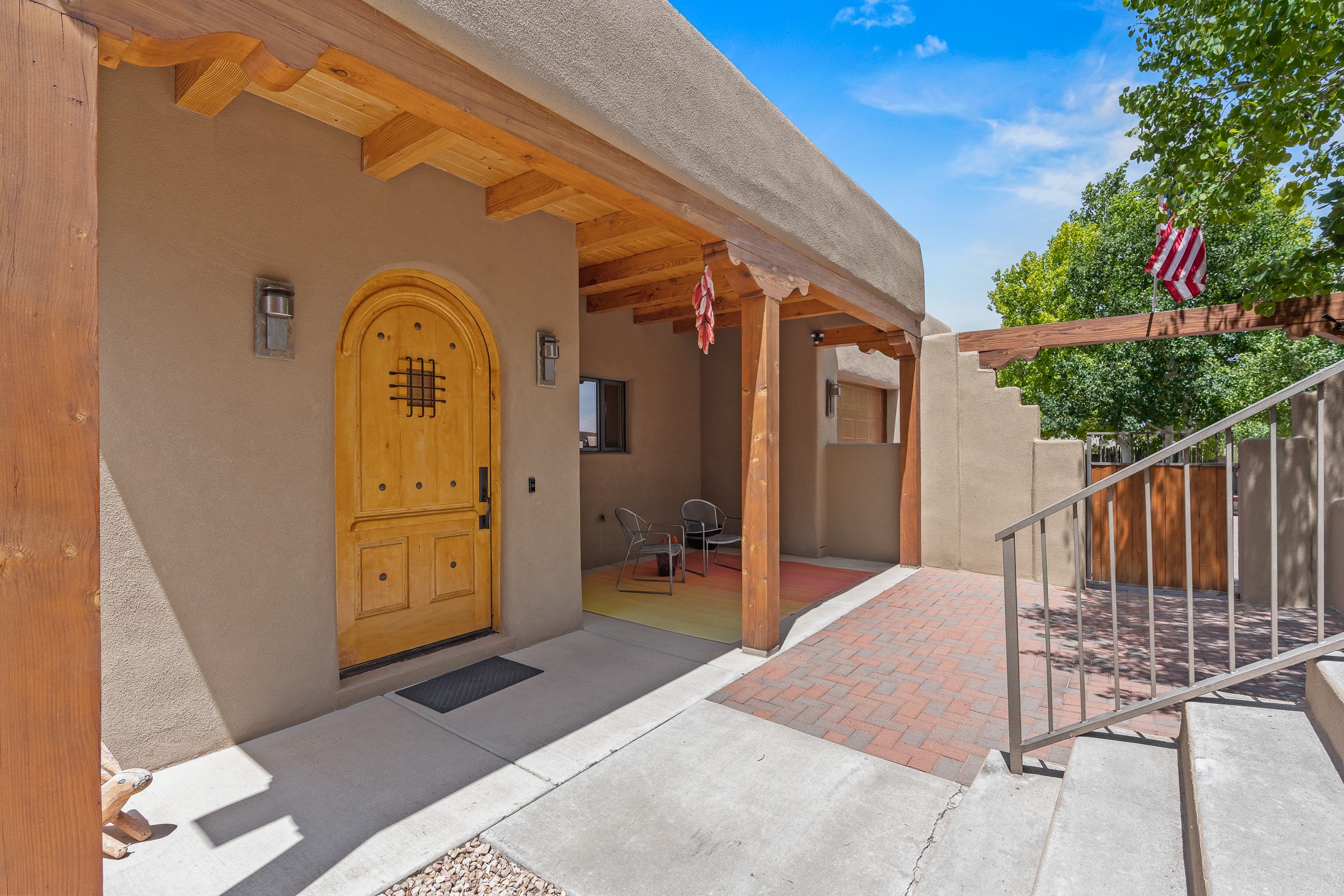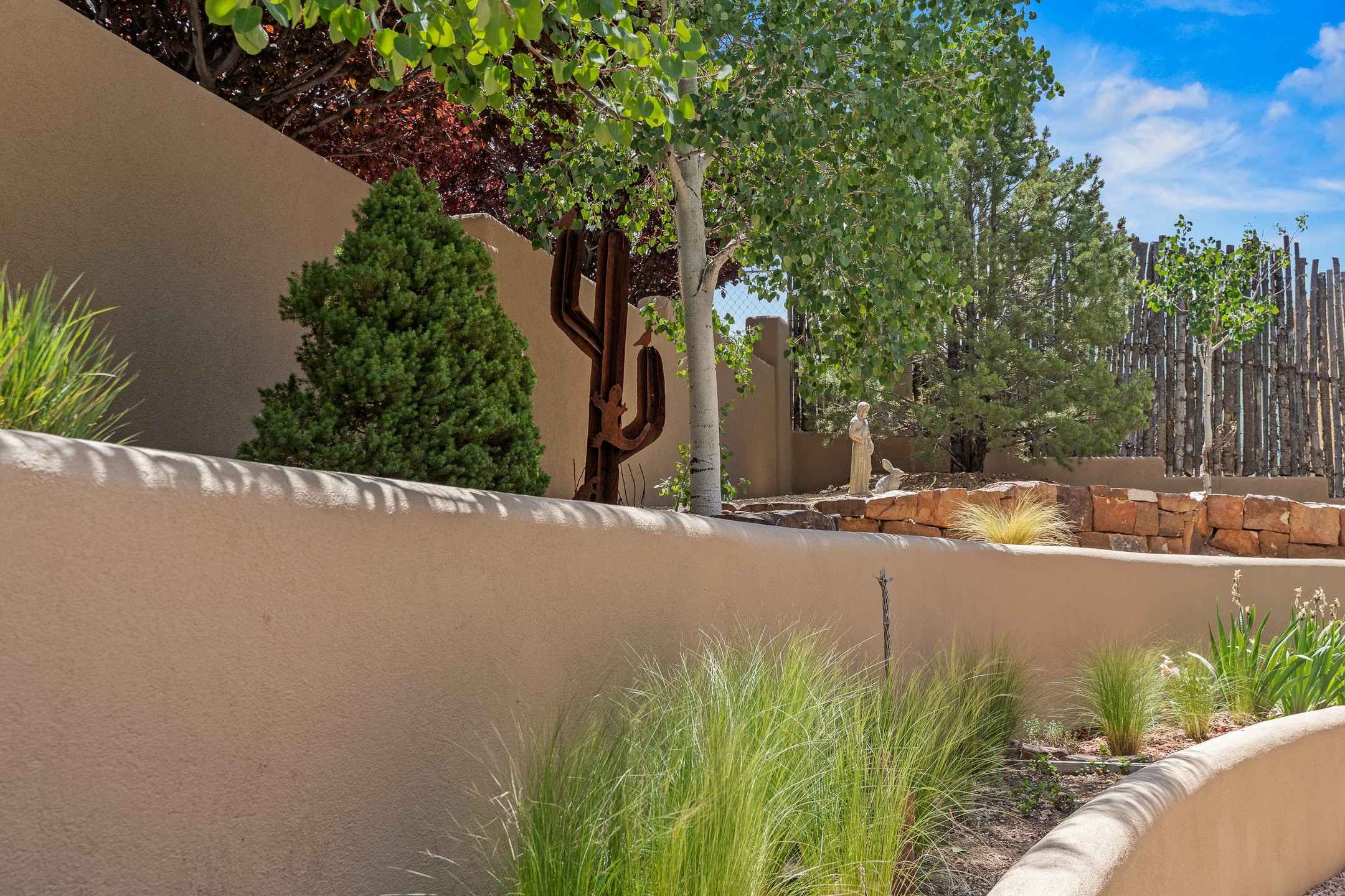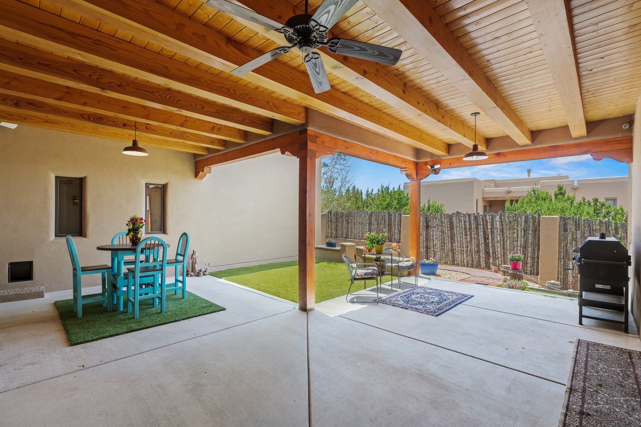 Southwest Elegance at 21 Camino BarrancaDiscover timeless Santa Fe style in this custom-built 3-bedroom, 2-bath 2 car garage, home located in the highly sought-after Aldea de Santa Fe community. Impeccably maintained and offering 2,129 square feet of thoughtfully designed living space, this home seamlessly blends authentic Southwestern charm with modern comfort.Inside, you'll find exposed wood beams, hand-troweled plaster walls, and a mix of rich wood and tile flooring, creating a warm, inviting atmosphere. A traditional kiva fireplace anchors the living room, perfect for cozy evenings, while large windows bathe the home in natural light and frame views of the lush, landscaped surroundings.The open-concept kitchen and living areas are ideal for both everyday living and entertaining. Outdoors, enjoy the tranquility of mature landscaping, raised garden beds, and peaceful patio areas--perfect for al fresco dining or quiet reflection. The yard is completely fenced or walled for your furry friends. New stucco in 2023, water heater replaced in 2018, microwave in 2021. New Gaco roof with 10-yr warranty. There is radiant in floor heat (No Kitec :)forced air and AC. the driveway is finished nicely with pavers. Set in a quiet, well-established neighborhood with access to walking trails and community amenities. Aldea is an active new-urbanist community that offers 13 miles of walking trails, Numerous parks and shared open spaces, basketball, tennis and pickleball courts and a playground and community center for special events.This home offers the best of Santa Fe living--comfort, character, and connection to nature. A truly special home, ready to welcome you.