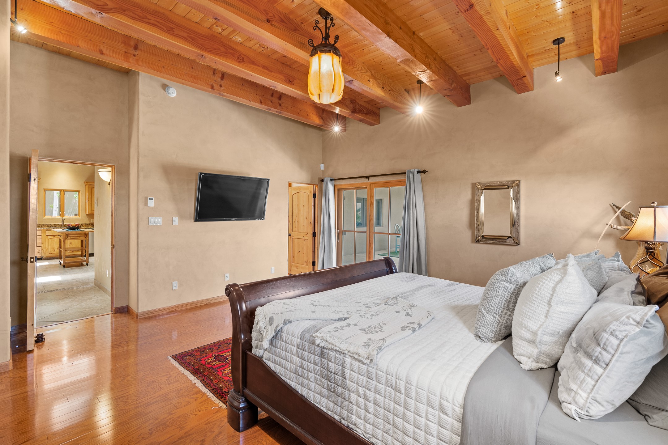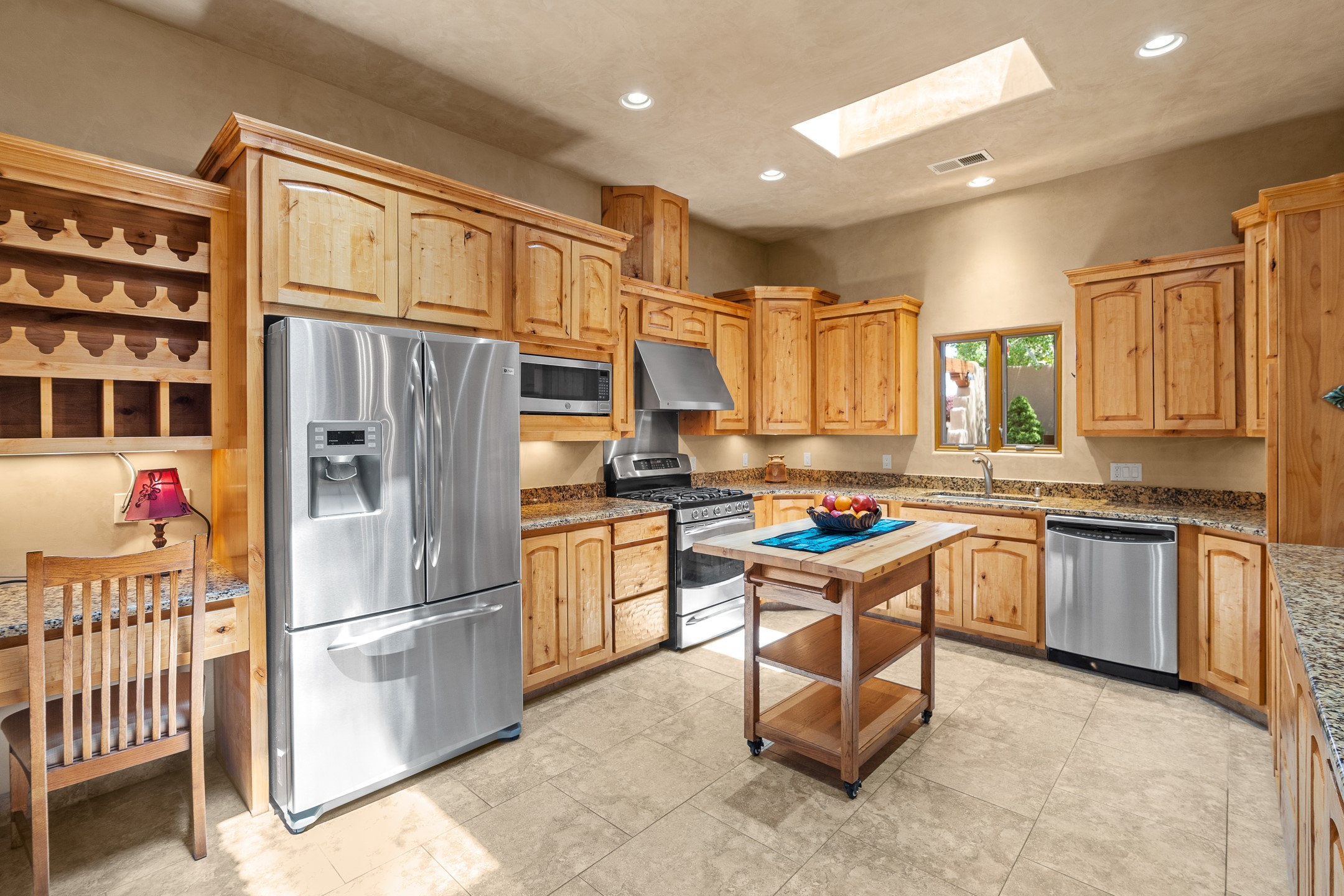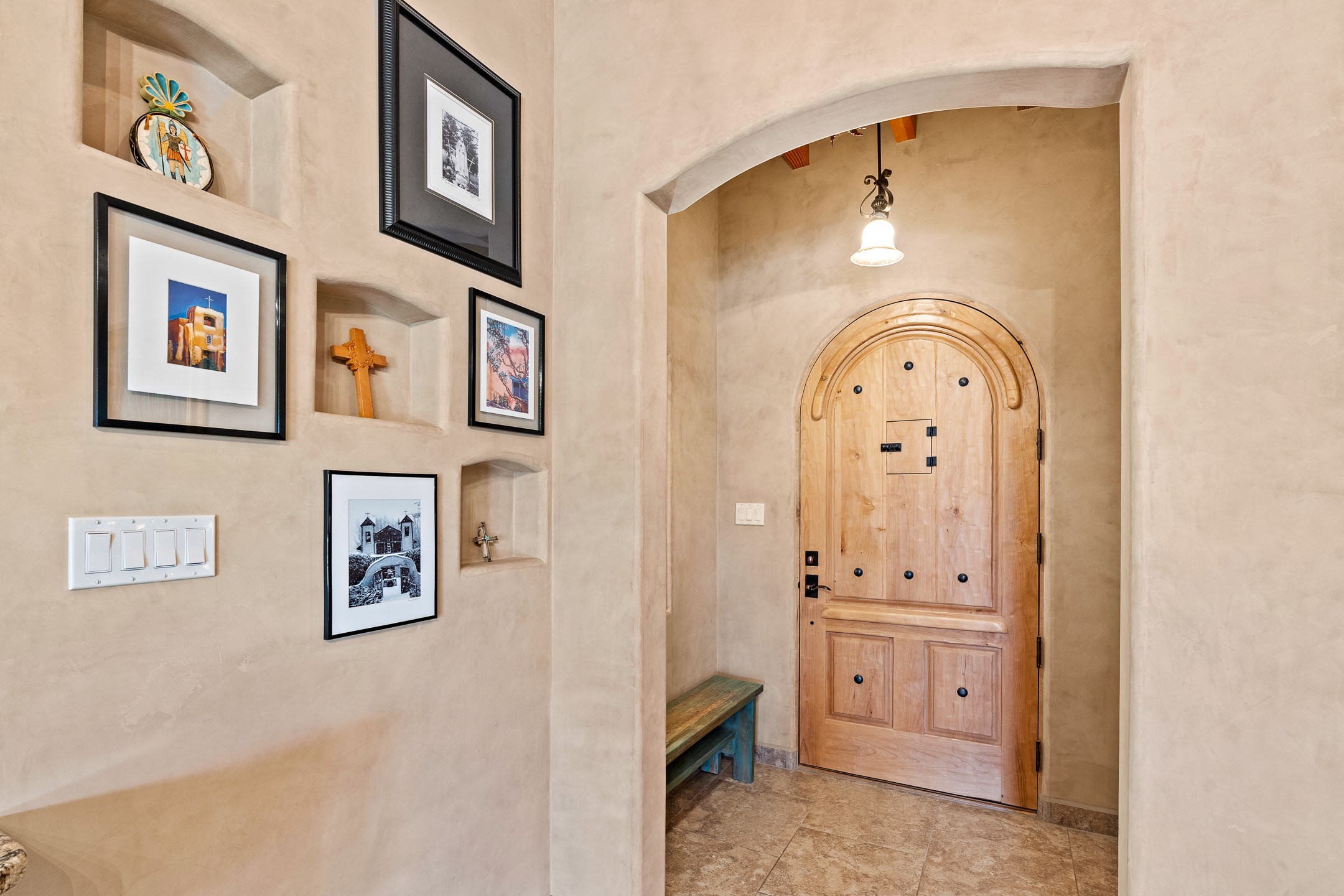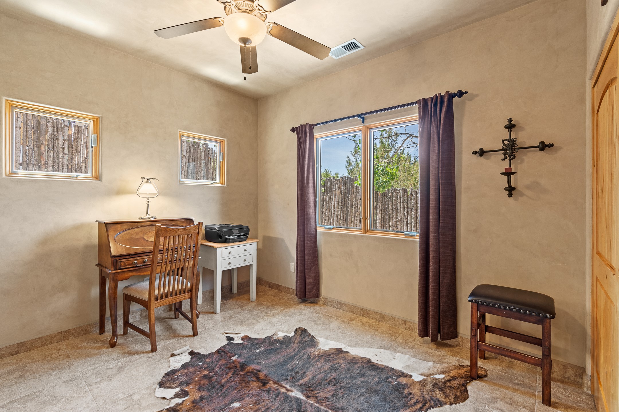 Southwest Elegance at 21 Camino BarrancaDiscover timeless Santa Fe style in this custom-built 3-bedroom, 2-bath 2 car garage, home located in the highly sought-after Aldea de Santa Fe community. Impeccably maintained and offering 2,129 square feet of thoughtfully designed living space, this home seamlessly blends authentic Southwestern charm with modern comfort.Inside, you'll find exposed wood beams, hand-troweled plaster walls, and a mix of rich wood and tile flooring, creating a warm, inviting atmosphere. A traditional kiva fireplace anchors the living room, perfect for cozy evenings, while large windows bathe the home in natural light and frame views of the lush, landscaped surroundings.The open-concept kitchen and living areas are ideal for both everyday living and entertaining. Outdoors, enjoy the tranquility of mature landscaping, raised garden beds, and peaceful patio areas--perfect for al fresco dining or quiet reflection. The yard is completely fenced or walled for your furry friends. New stucco in 2023, water heater replaced in 2018, microwave in 2021. New Gaco roof with 10-yr warranty. There is radiant in floor heat (No Kitec :)forced air and AC. the driveway is finished nicely with pavers. Set in a quiet, well-established neighborhood with access to walking trails and community amenities. Aldea is an active new-urbanist community that offers 13 miles of walking trails, Numerous parks and shared open spaces, basketball, tennis and pickleball courts and a playground and community center for special events.This home offers the best of Santa Fe living--comfort, character, and connection to nature. A truly special home, ready to welcome you.