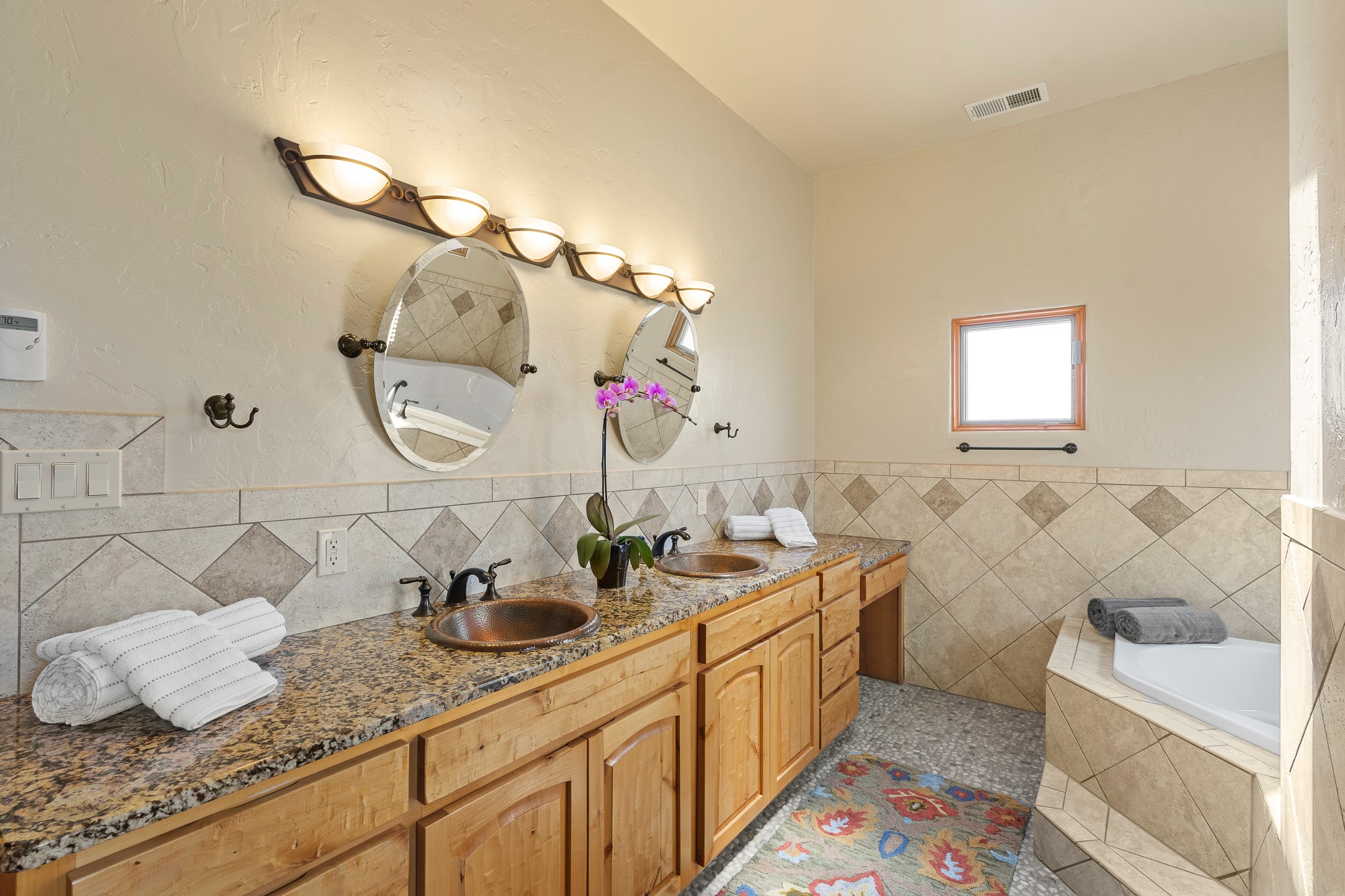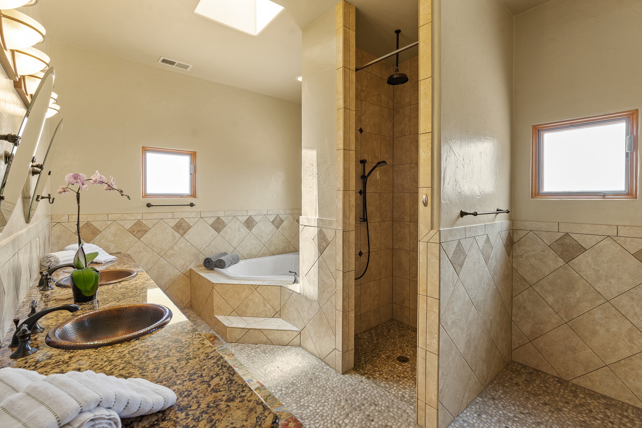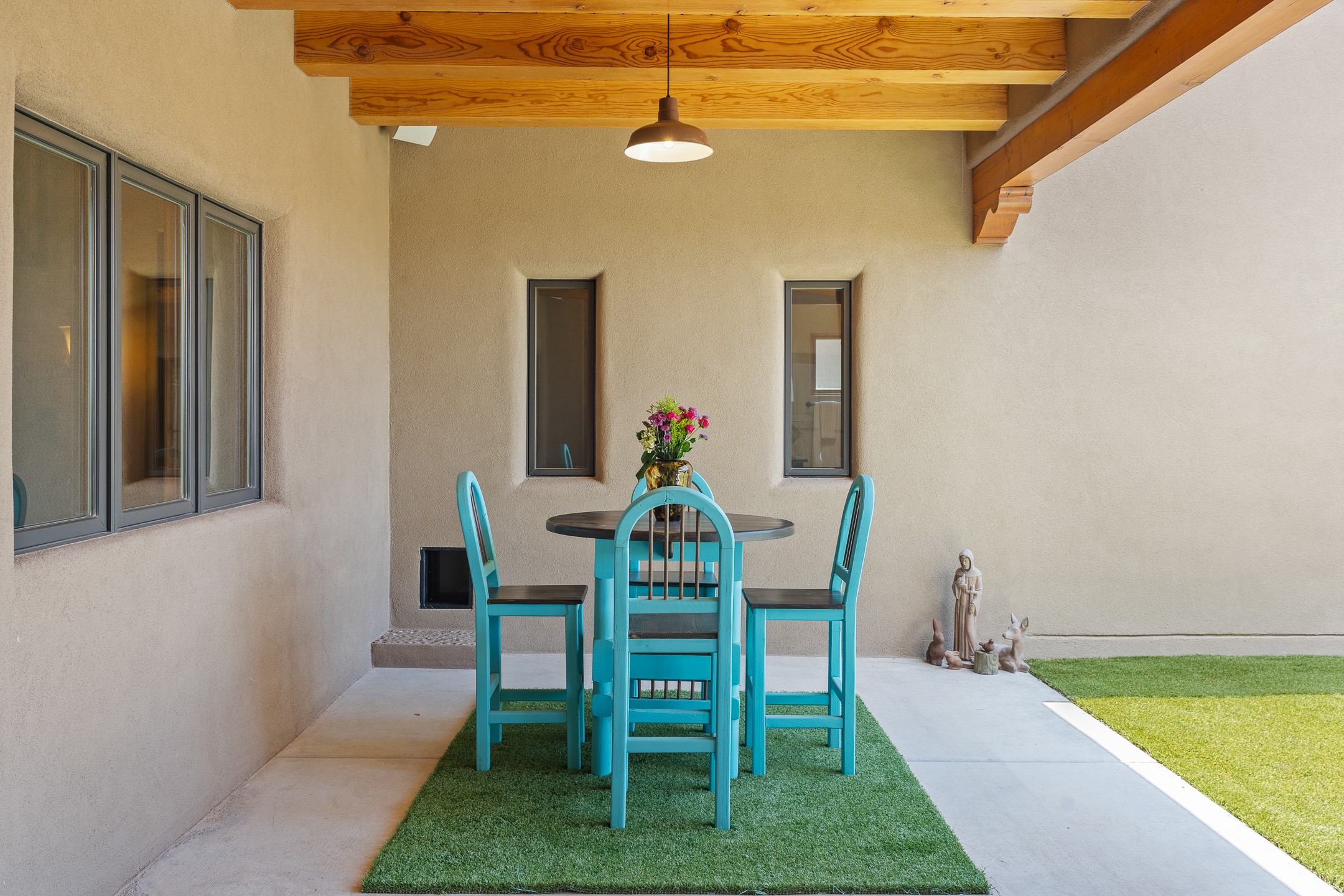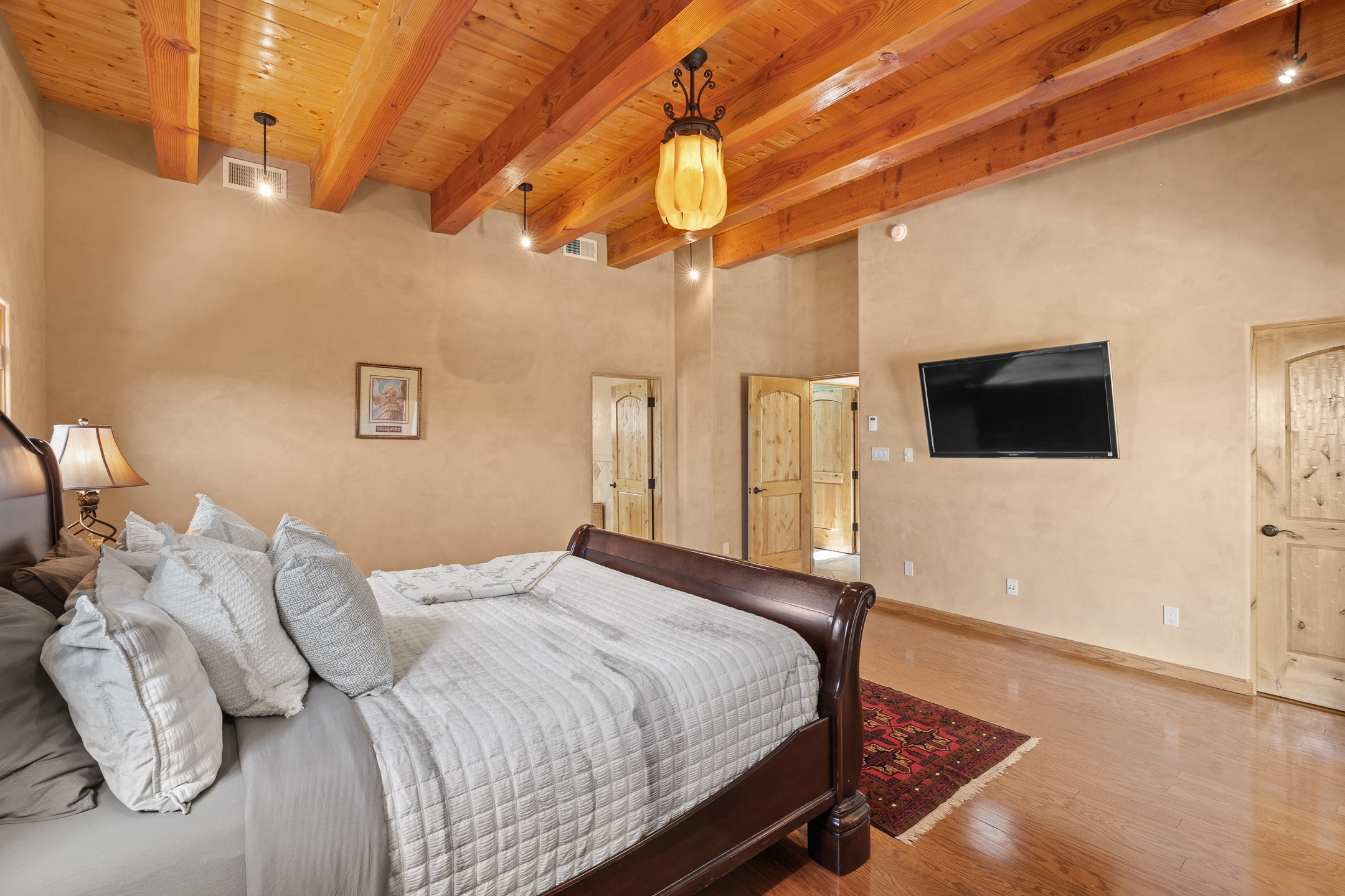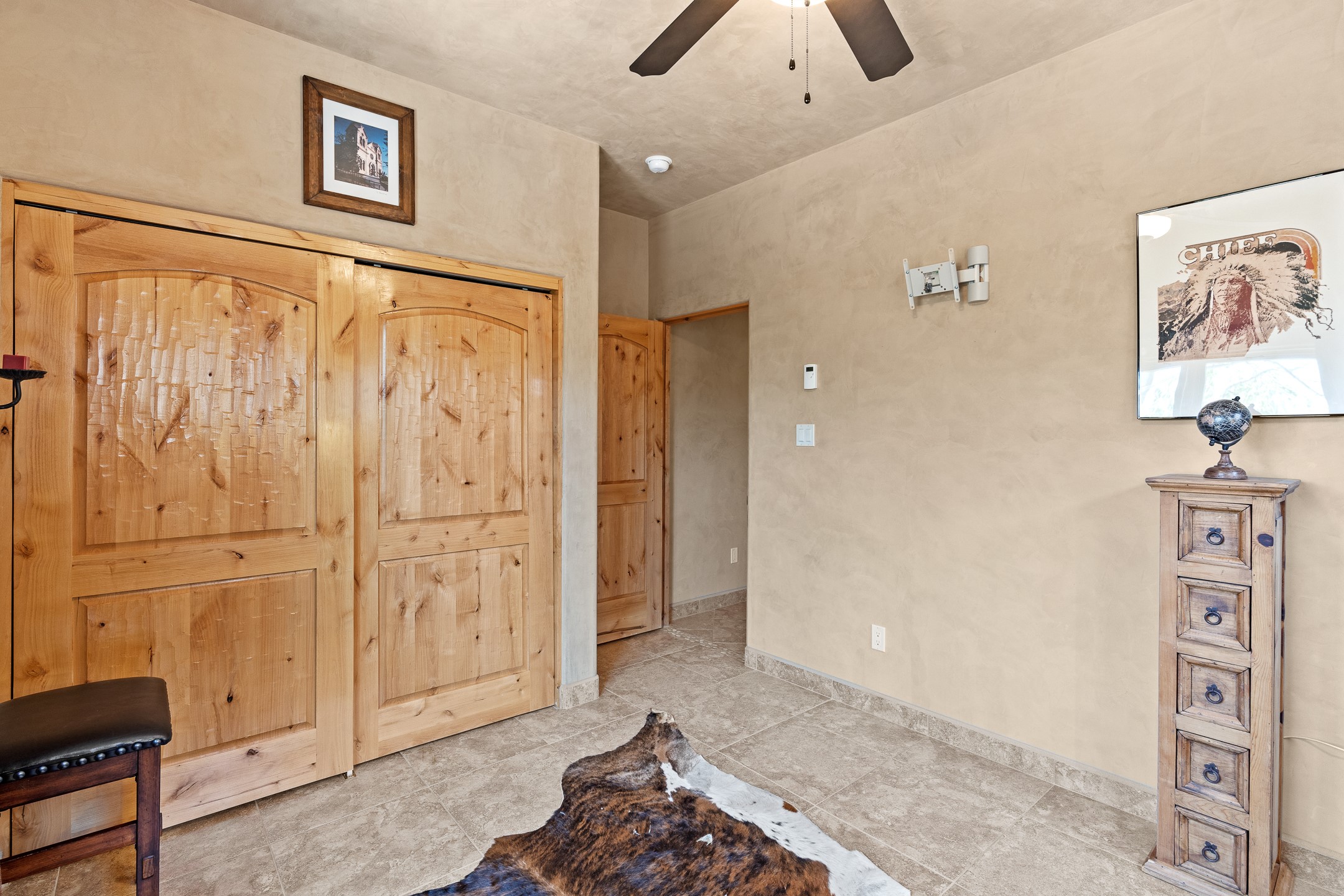 Southwest Elegance at 21 Camino BarrancaDiscover timeless Santa Fe style in this custom-built 3-bedroom, 2-bath 2 car garage, home located in the highly sought-after Aldea de Santa Fe community. Impeccably maintained and offering 2,129 square feet of thoughtfully designed living space, this home seamlessly blends authentic Southwestern charm with modern comfort.Inside, you'll find exposed wood beams, hand-troweled plaster walls, and a mix of rich wood and tile flooring, creating a warm, inviting atmosphere. A traditional kiva fireplace anchors the living room, perfect for cozy evenings, while large windows bathe the home in natural light and frame views of the lush, landscaped surroundings.The open-concept kitchen and living areas are ideal for both everyday living and entertaining. Outdoors, enjoy the tranquility of mature landscaping, raised garden beds, and peaceful patio areas--perfect for al fresco dining or quiet reflection. The yard is completely fenced or walled for your furry friends. New stucco in 2023, water heater replaced in 2018, microwave in 2021. New Gaco roof with 10-yr warranty. There is radiant in floor heat (No Kitec :)forced air and AC. the driveway is finished nicely with pavers. Set in a quiet, well-established neighborhood with access to walking trails and community amenities. Aldea is an active new-urbanist community that offers 13 miles of walking trails, Numerous parks and shared open spaces, basketball, tennis and pickleball courts and a playground and community center for special events.This home offers the best of Santa Fe living--comfort, character, and connection to nature. A truly special home, ready to welcome you.