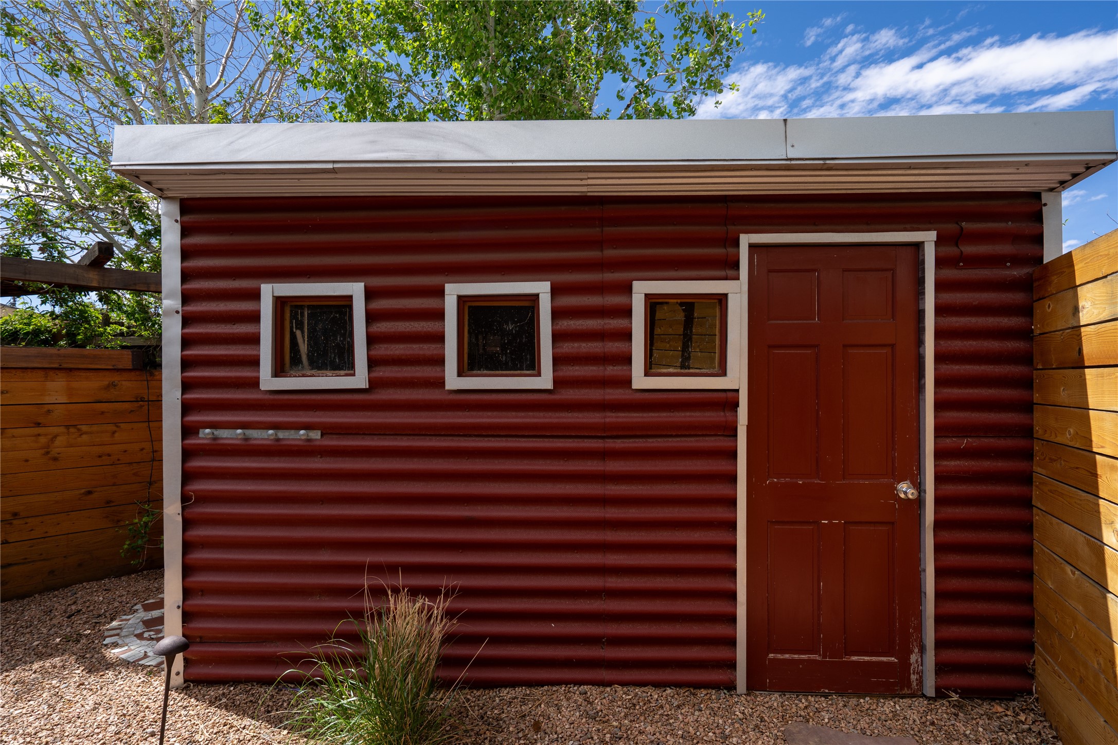 Price Reduced November 4th, and now offering $25,000 in Seller concessions to use toward improvements or apply as needed. Modern Adobe Retreat with Private Casita. Timeless adobe meets modern elegance in this thoughtfully designed 3-bed, 2-bath home. Open and full of light, a full bath, kitchen, open living areas, and two bedrooms are downstairs. The upstairs primary suite offers privacy, views, and a spacious balcony. Inside is serene, with exposed wooden beams, hand troweled clay walls, and in floor radiant heat.A separate 1-bed casita, complete with private entrance, open kitchen-living space, dedicated office, and private yard space will be inviting for your guests, income, or multigenerational living.Outside, mature landscaping frames every view. Dual pet doors offer ease and freedom. A domed adobe storage structure out front and a generous garden shed in the back blend with a pergola-shaded BBQ area to complement the intelligent, inviting layout. A visual palate of earth, wood, metals and light awaits.Private. Flexible. Ready to live in--or to earn.