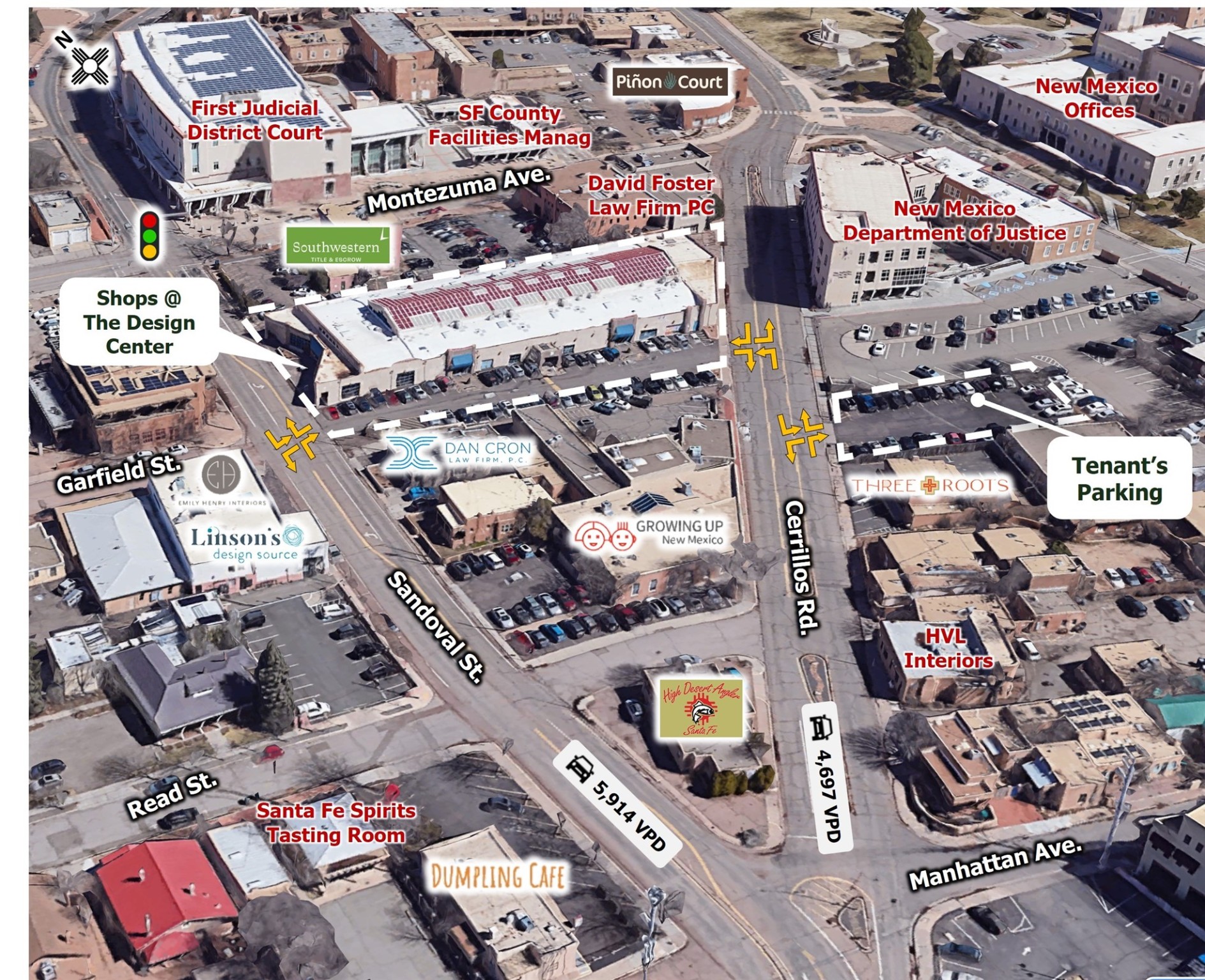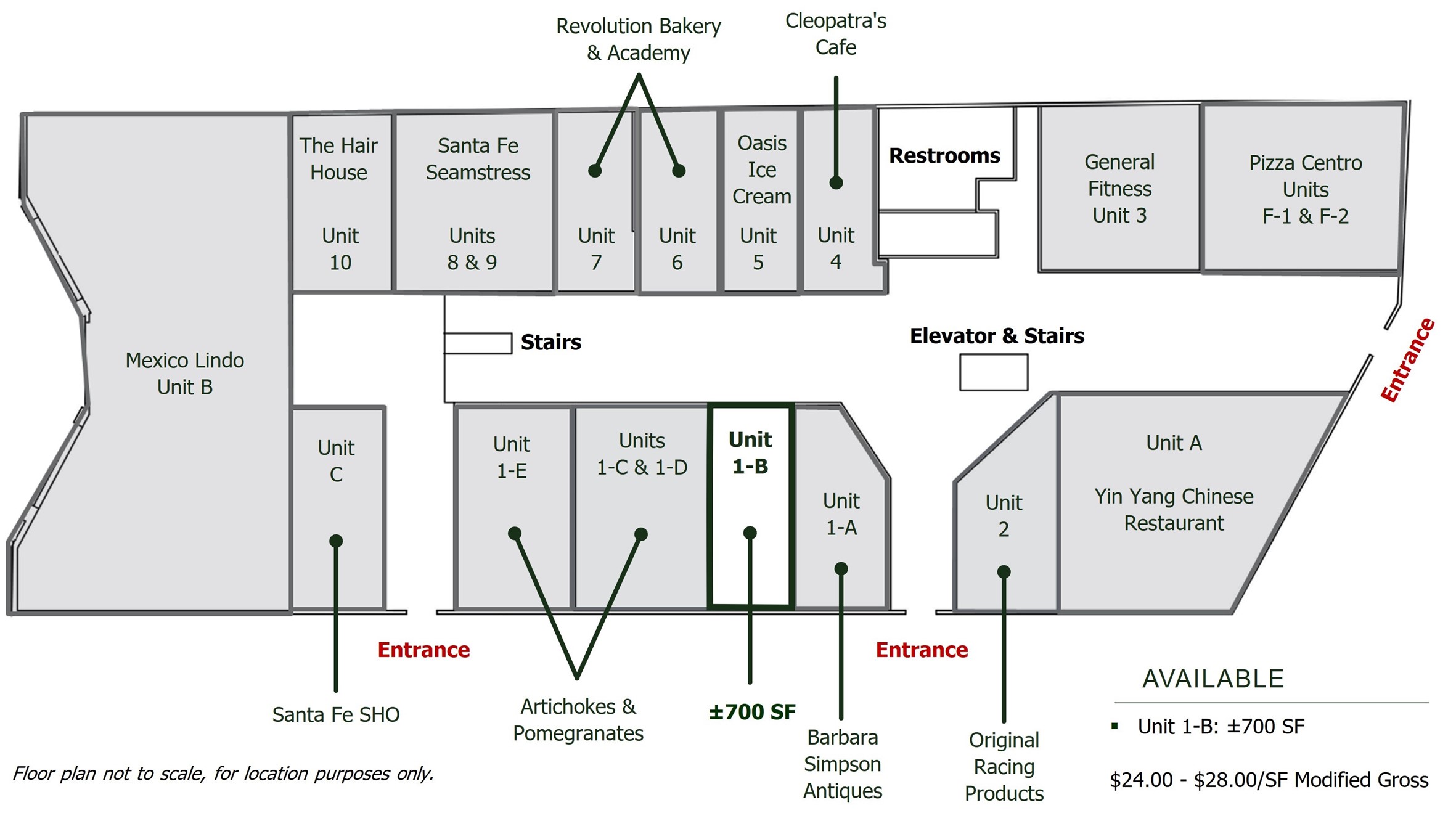 AVAILABLE: Lower Level (Retail): Unit 1-B: 700 SF, Upper Level (office/studio): Unit 22: 480 SF, Unit 25: 451 SF | ZONING: BCD, Business Capital District | HIGHLIGHTS: Open and airy mall design, Just steps away from the District Court House, Close to the Railyard District, Downtown Santa Fe and state buildings, Co tenants include: Mexico Lindo, Pizza Centro, Yin Yang Restaurant, Paleteria Oasis, Revolution Bakery, Antique Shops, Professional Offices