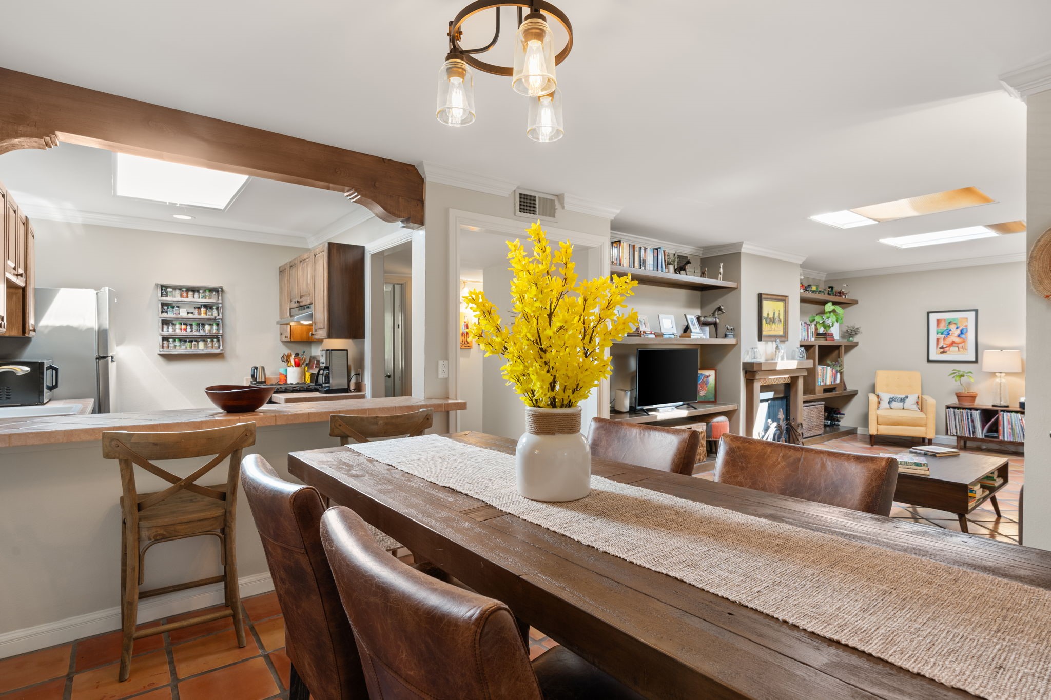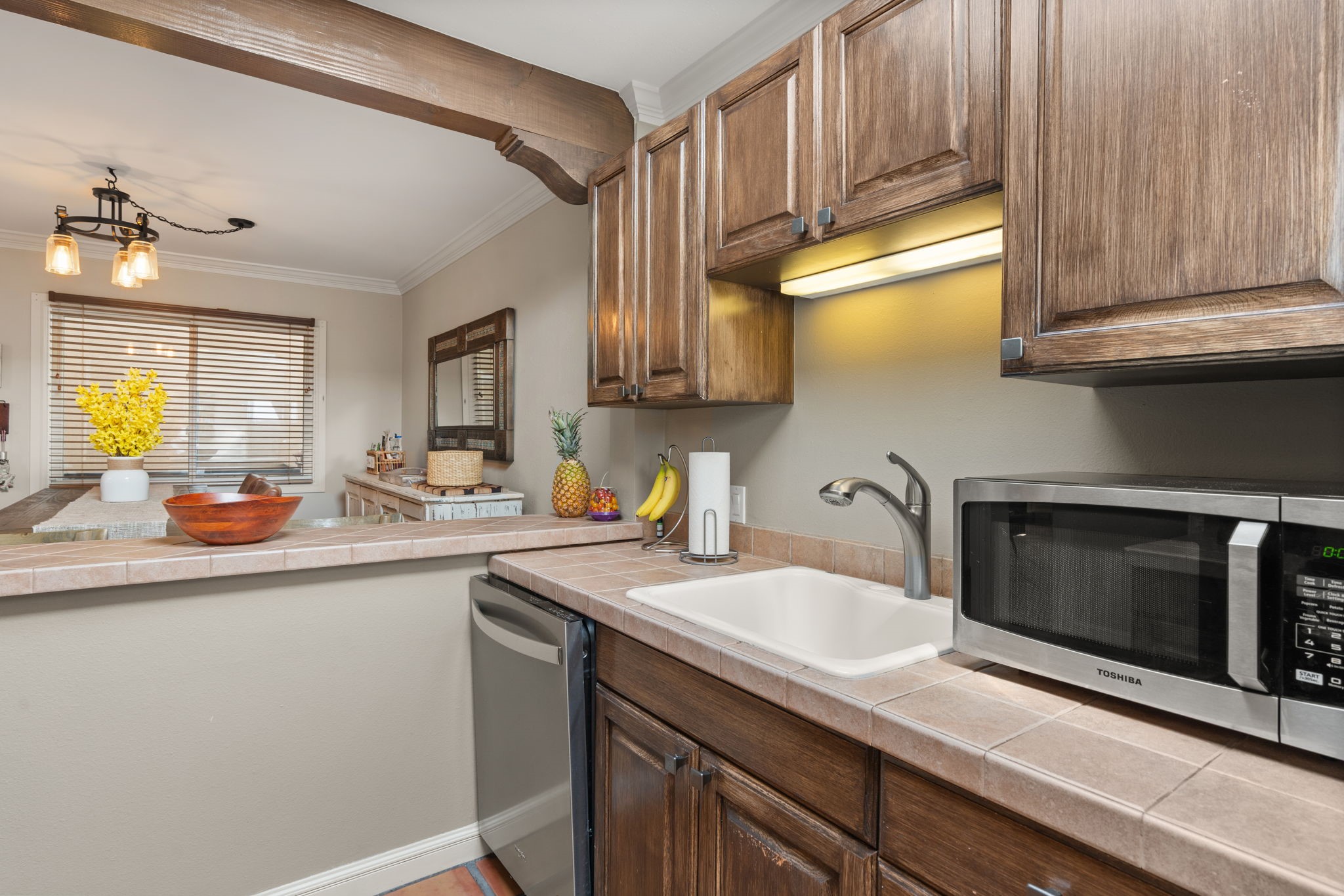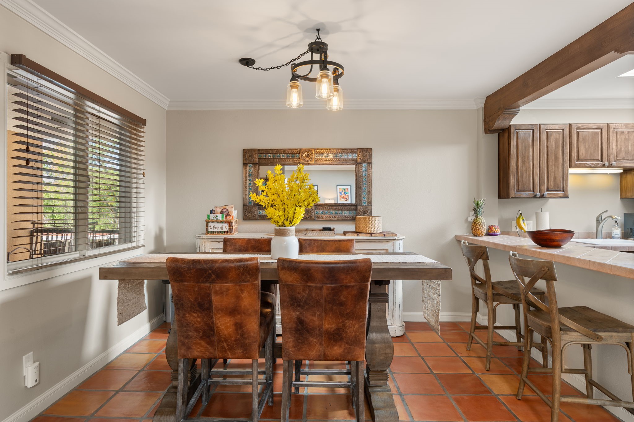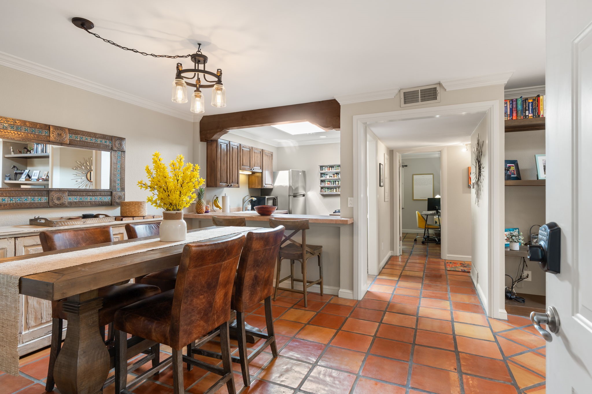 Step into the charm of Santa Fe living just 15 minutes on foot from the Historic Plaza. This beautifully refreshed upstairs condo offers a quiet retreat in a secure gated community, tucked away in a serene northeast corner overlooking the courtyard. Inside, high ceilings, skylights with custom sun blinds, and territorial-style windows bathe the open floor plan in natural light. The 2-bedroom, 1-bath home blends comfort and style with crown molding throughout, earthy two-tone colors, and a touch of New Orleans flair from the primary suite's French doors. Both bedrooms include generous walk-in closets, while the updated kitchen features stainless steel appliances and a newer sink -- ready for your culinary touch. Stay comfortable year-round with refrigerated air, and enjoy the convenience of an in-home stacked washer/dryer. The home is freshly painted, professionally cleaned, and move-in ready -- a blank canvas for your Santa Fe vision. Relax on your private outdoor space, or take advantage of the community's well-appointed amenities. Parking includes one covered, assigned space plus an additional unassigned spot. Whether you're looking for a full-time residence or a lock-and-leave pied--terre, this condo is the perfect balance of privacy, security, and downtown access. Call me Today to schedule your private showing -- discover how this home can fit your lifestyle in the heart of Santa Fe.