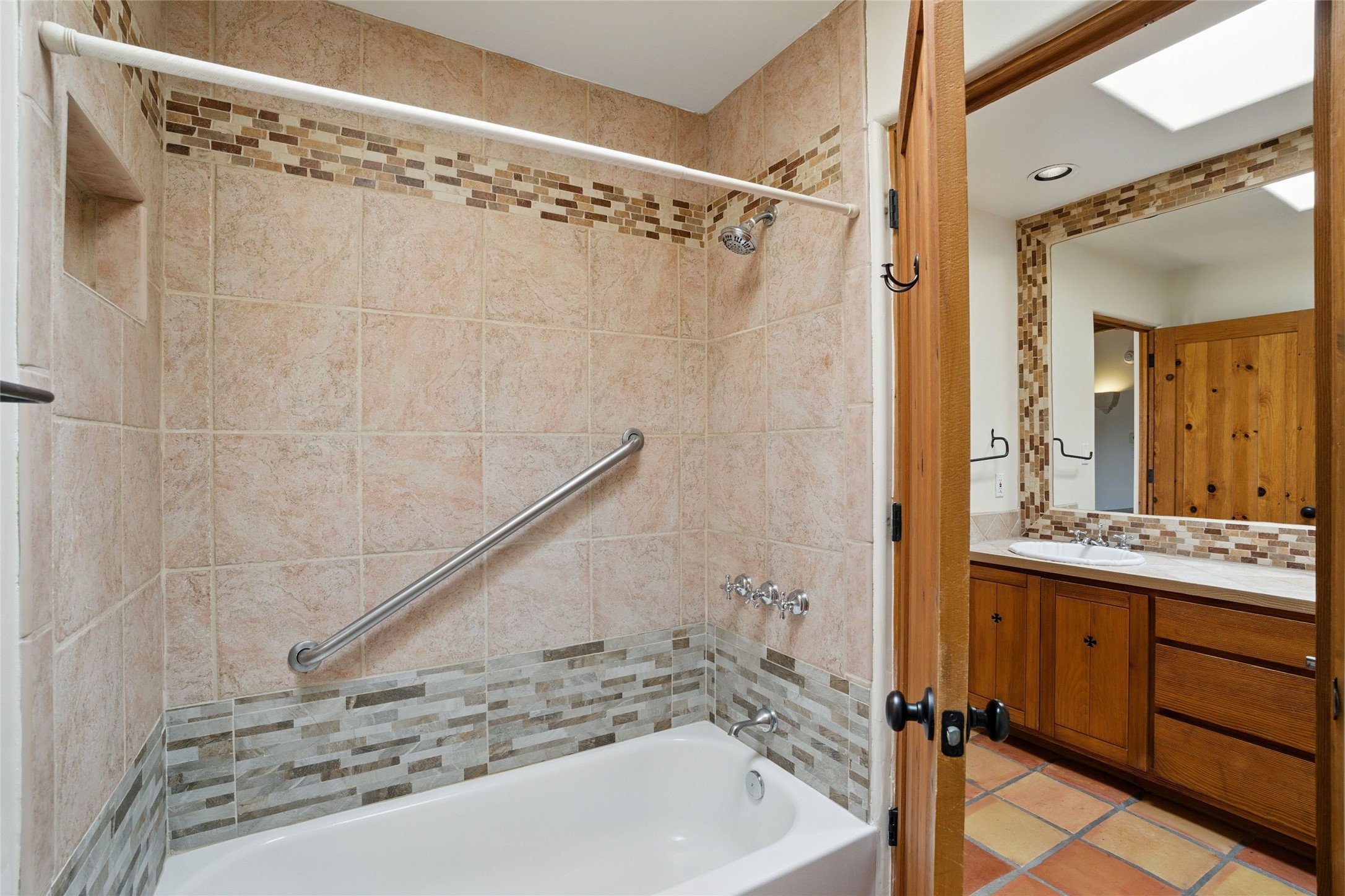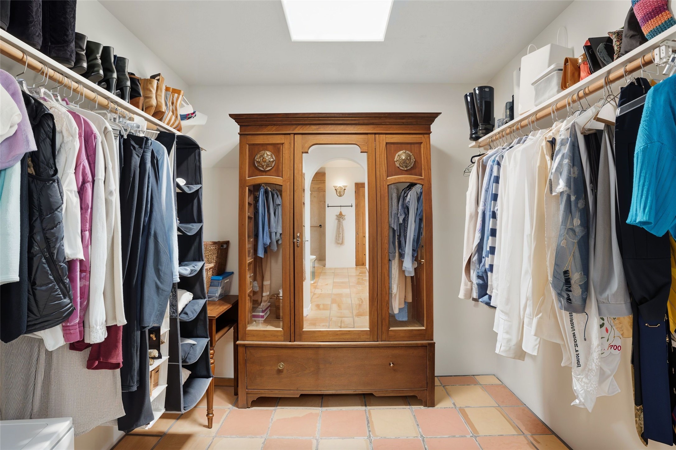 BEAUTIFUL BELICIA ESTATES PROPERTY! NEW HEATING SYSTEM - SPLITS AND FORCED AIR IN PROCESS. Privacy and views! Designed by William Lumpkins and built by Adobeworks, this elegant home has a dramatic great room with 10' ceilings and a spectacular center hallway with an 11' barrel ceiling. This property has been PRE-INSPECTED and most repairs completed. The generous primary suite has a kiva fireplace with banco, viga and latilla ceiling, spacious bath with double sinks and separate shower and walk-in closet. Two guest rooms with Jack and Jill bath. The office has custom iron gates and built-in book shelves. Charming powder room. A gorgeous wrap around portal with viga ceilings and brick floor, goes around three sides of the home. In-floor natural gas radiant heating. Kitchen has stainless steel appliances, breakfast area and a patio. Sunset side has a pull down shade. Located on 2 acres on a paved road with a paved driveway, this property backs up to 2,650 undeveloped acres. The professionally designed landscaping (17K) completes the front approach. Proper laundry room with sink and good storage. Silicone roof in May 2025. Driveway resealed 2025. Water heater 2024. Refrigerator and washer/dryer 2025. Saltillo tile throughout. NO CARPET. NO STEPS. BRAND NEW AIR CONDITIONING. Tiled room off the primary bath was used for a jetted tub - was converted to an exercise room by previous owners - plumbing still in place. Refrigerated air conditioning in bedroom wing only. Security system is ADT and can be transferred to new owners. Three rainbarrels - 60 gallons each. Chimneys have been inspected and minor repairs completed. Pre-inspection report available upon request.