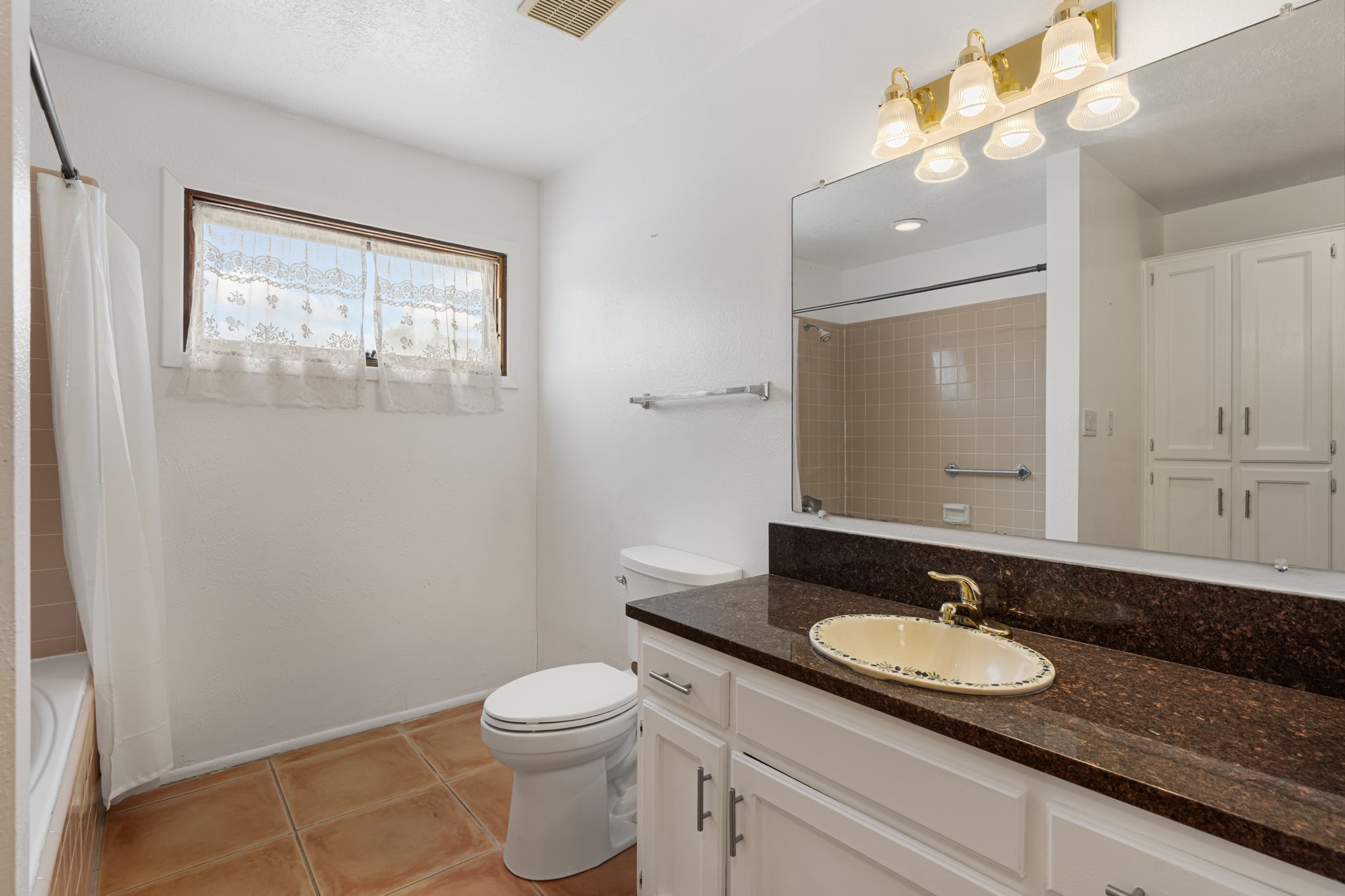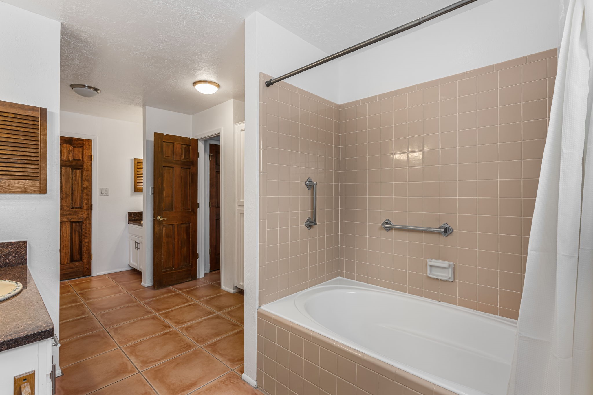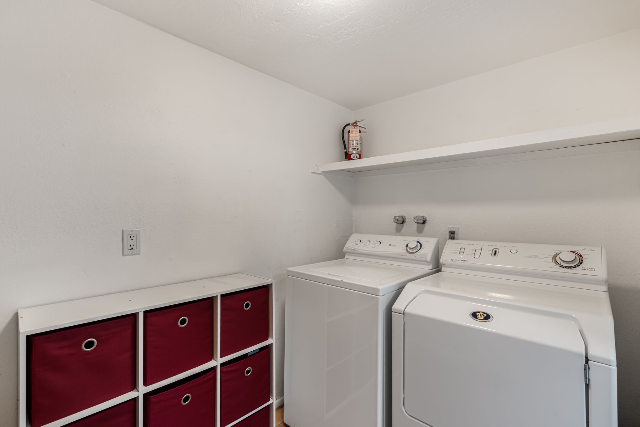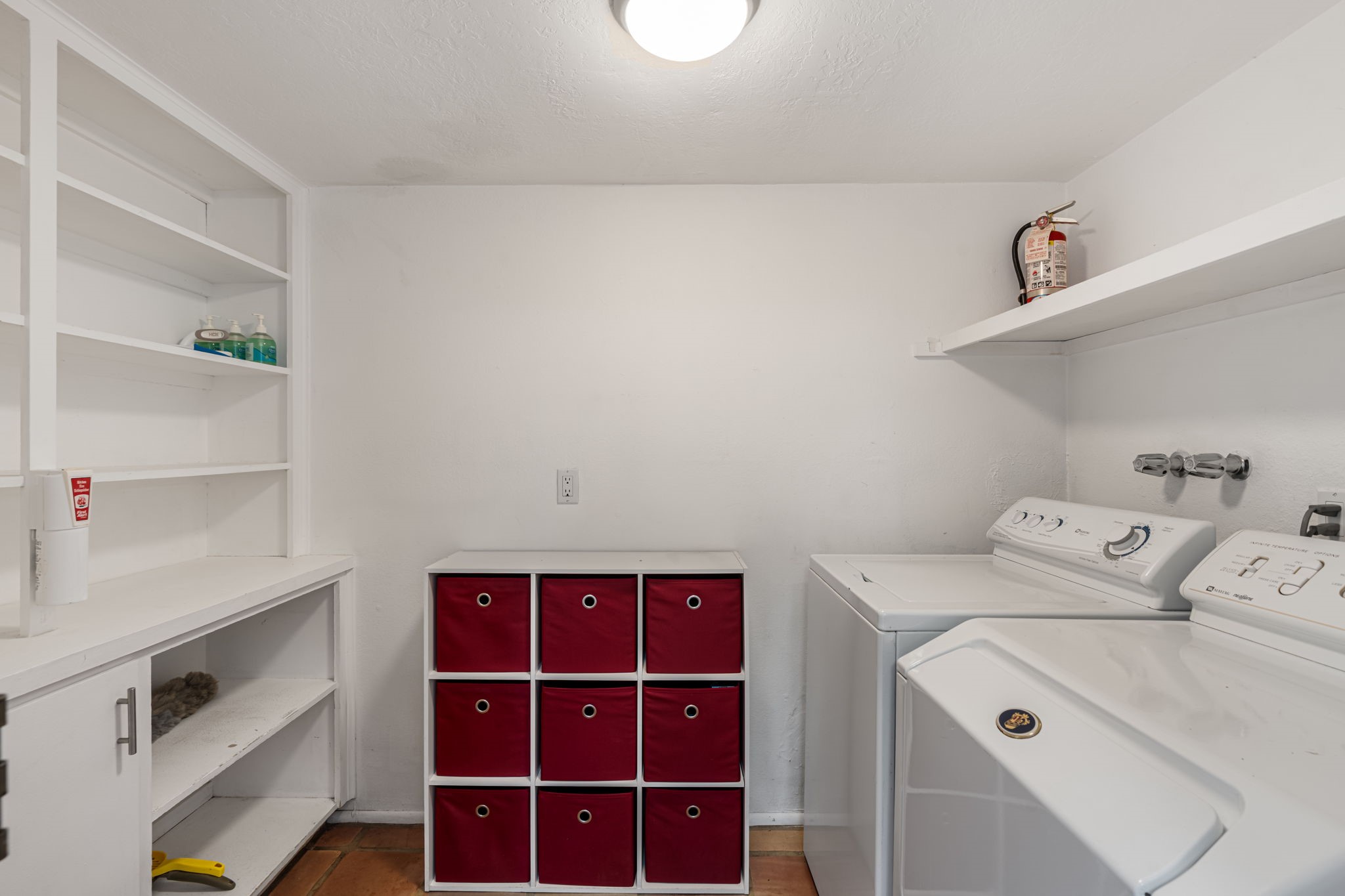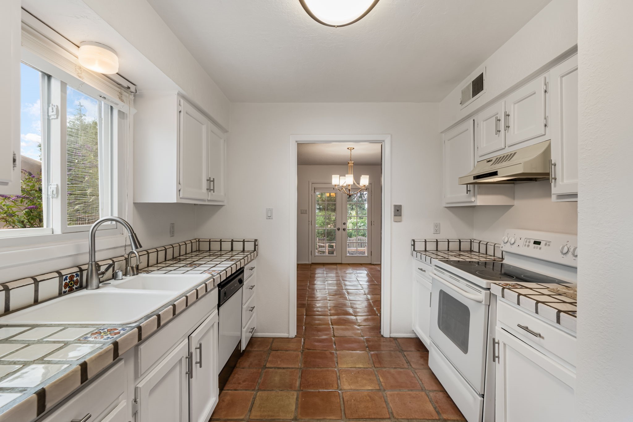 This stylish, freshly painted 3 bed, 2 bath tri-level home in the sought-after Park Plazas community blends Southwestern charm with modern updates.The spacious downstairs level invites you in with a tiled living room featuring striking two-story ceilings, interesting architectural detail and a dramatic Kiva fireplace--the perfect focal point for cozy gatherings. The open-concept dining area flows seamlessly into the well-appointed kitchen and provides direct access to a serene, shaded portal and flagstone patio, nestled beneath a majestic ponderosa pine. It's the ideal spot for al fresco dining or morning coffee, surrounded by the tranquility of a fully fenced backyard.This level also includes a bedroom, laundry area, and a convenient half bath, perfect for guests or multi-generational living.Upstairs, you'll find two generously sized bedrooms and a full bathroom with ample storage. The primary suite is a true retreat, opening to a sunny, recently rebuilt Trex deck--designed for low maintenance and long-lasting durability--where you can unwind while soaking in breathtaking sunset views of the Jemez and Sandia Mountains.With a newer roof (3 years old) and fresh stucco (2 years old), this home is move-in ready and built to last. A two-car garage adds practicality, while community amenities--including miles of walking trails, an off-leash dog park, tennis courts, a community garden, and more--elevate everyday living.Ideally located just minutes from shopping, dining, and all the cultural richness Santa Fe has to offer, this home is a rare find at a fantastic price. Don't miss your chance to own a slice of Southwestern paradise!