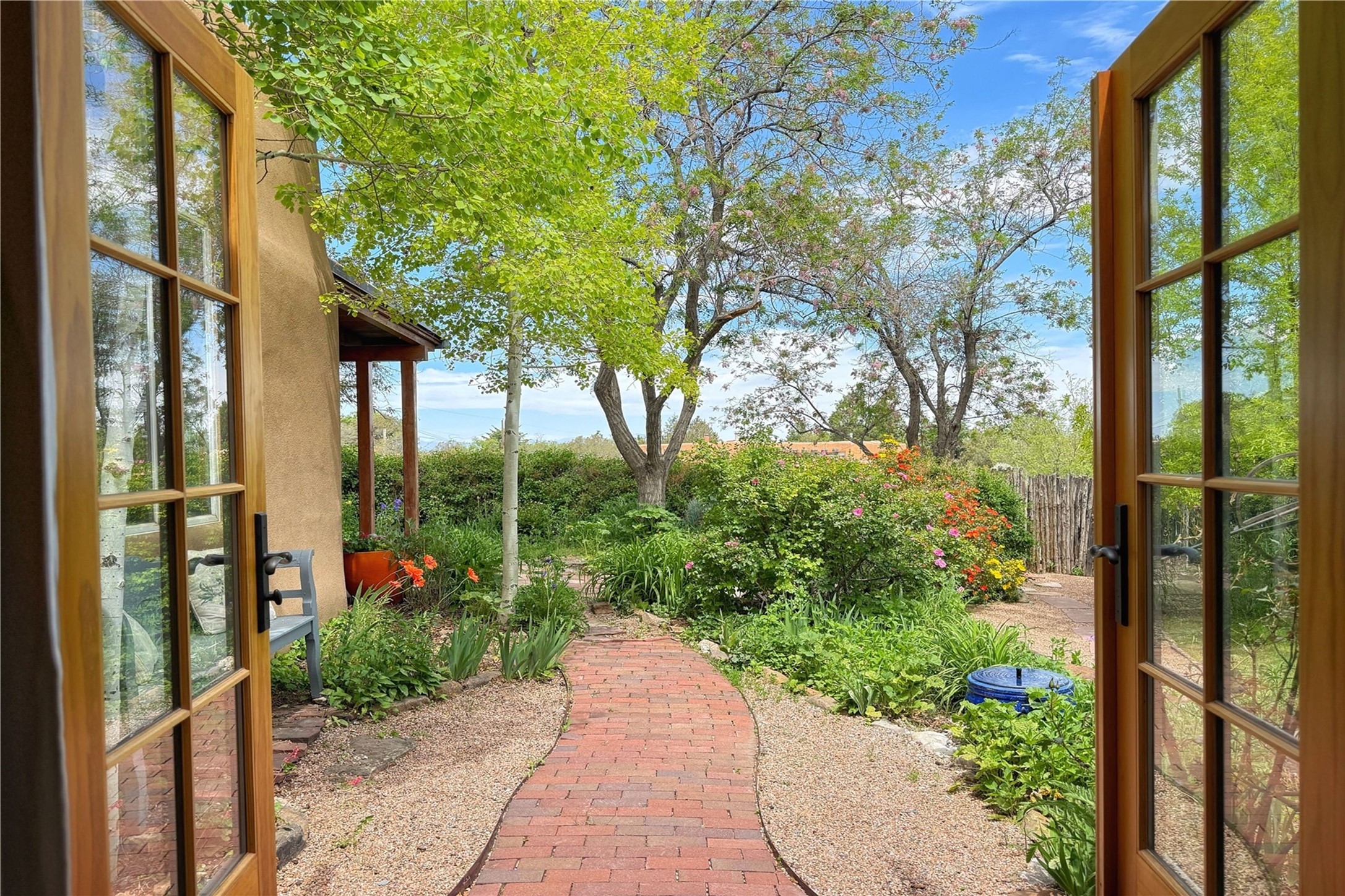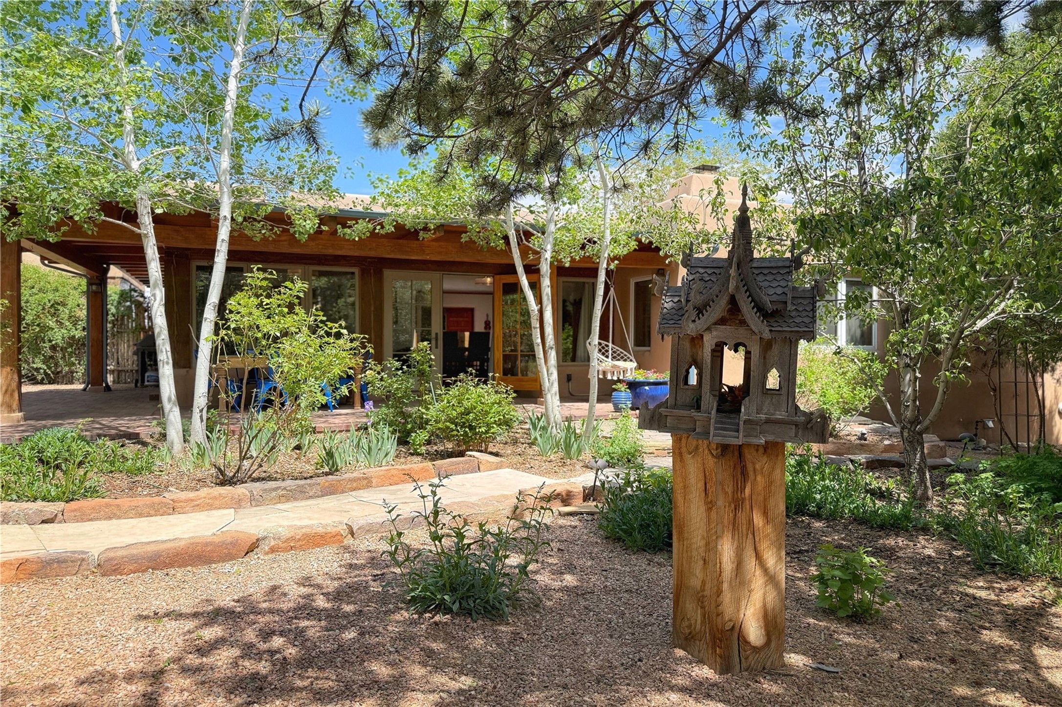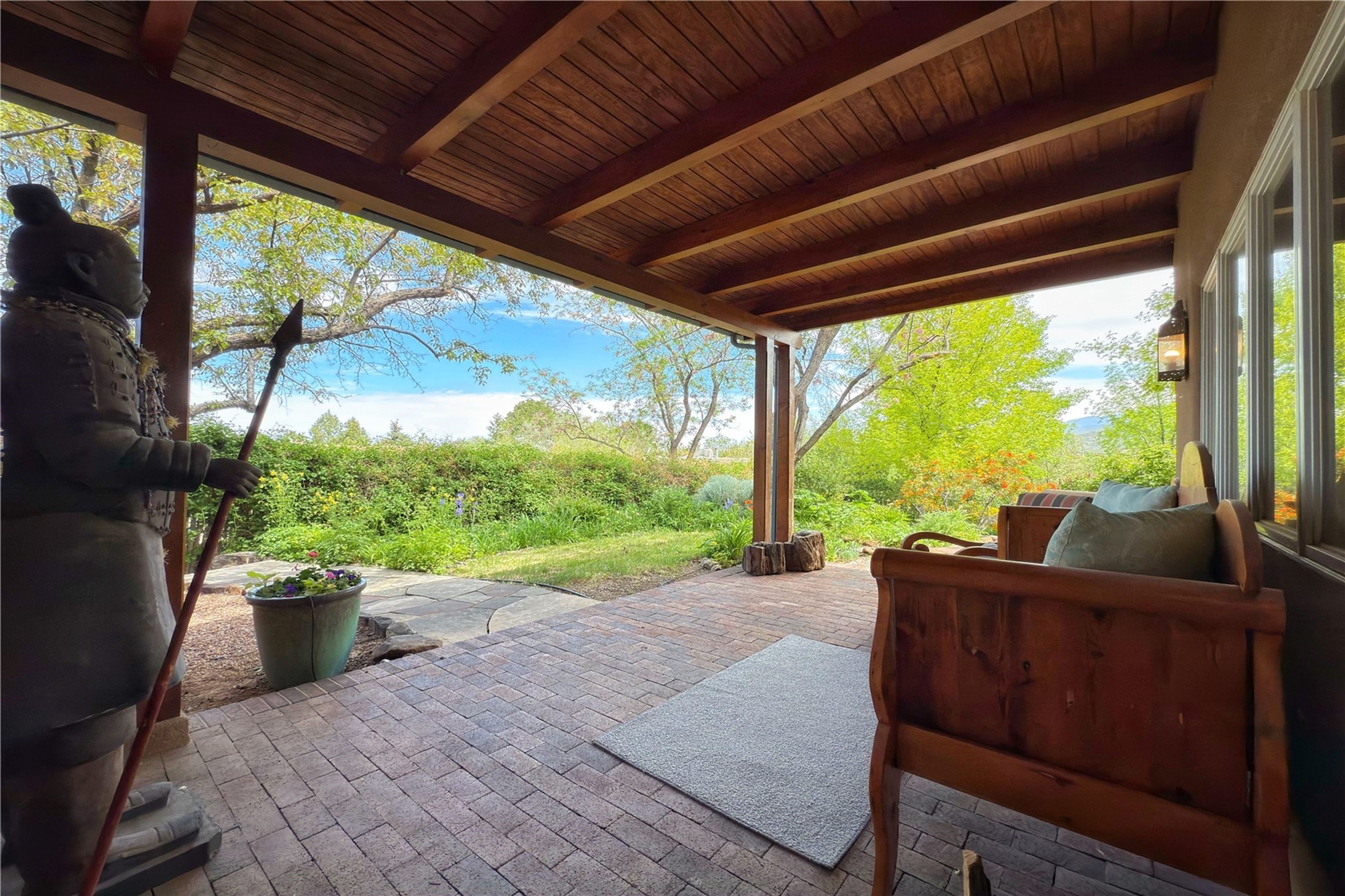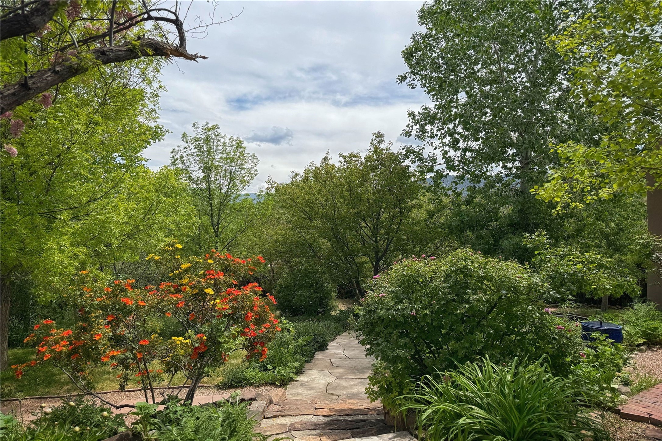 Located in the heart of the Eastside, this refined adobe sanctuary in the historic"Henderson Compound" was designed by architect Louise Walker and is sited on agenerous 0.56-acre lot, providing both privacy and panoramic views of the Sangre deCristo and Jemez Mountains. The artistic, Pueblo Revival style harmoniously blendstraditional character and modern appointments, with primary living, all on a single level.The design features a stunning great room with 10.7" ceiling and a magnificentfireplace; three spacious bedroom suites; an office, den, and sunroom in the 3,738square feet. Interiors feature wood beamed ceilings throughout, restored brick andwood floors, Italian lighting, custom wood cabinets, and large windows with exquisitetreatments that fill the home with light. The gourmet kitchen is appointed with granitecountertops, a new Sub-Zero refrigerator and W/D in the chef's pantry, while all threebathrooms have been fully renovated with marble finishes. The lower level has beencompletely reimagined with luxury finishes, including a den/living area with a bar thatopens to one of the private patios, a bedroom or second study, elegant bathroom,second W/D, and a private entrance that opens to a large patio and the orchard, forguests or personal privacy. The home is encircled by patios and walking paths, lushlandscaping with flowering beds and grasses, magnificent cedars, aspens, peach,apricot, apple and cherry trees, all are serviced by a well and a drip system. Additionalamenities include energy-efficient mini-splits, an in-wall safe, two serene outdoorfountains, outdoor shed and spiral staircase that takes you to the upgraded roof offering360 views of Santa Fe and your glorious estate. A well-lit, two-car carport and extraparking complete the home. Located just minutes from Canyon Road, this homeembodies the appeal of Santa Fe with the comfort and ease of modern living.