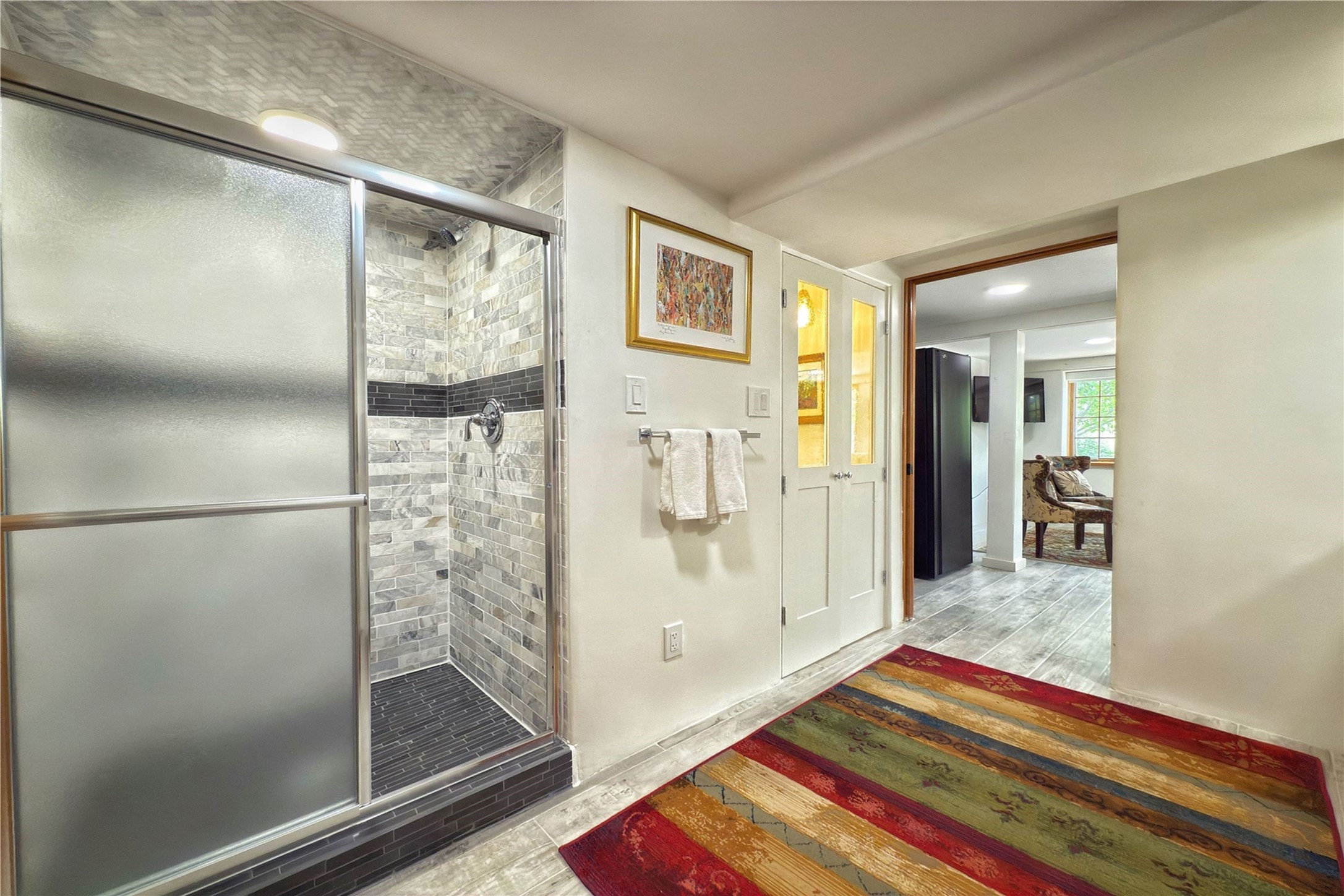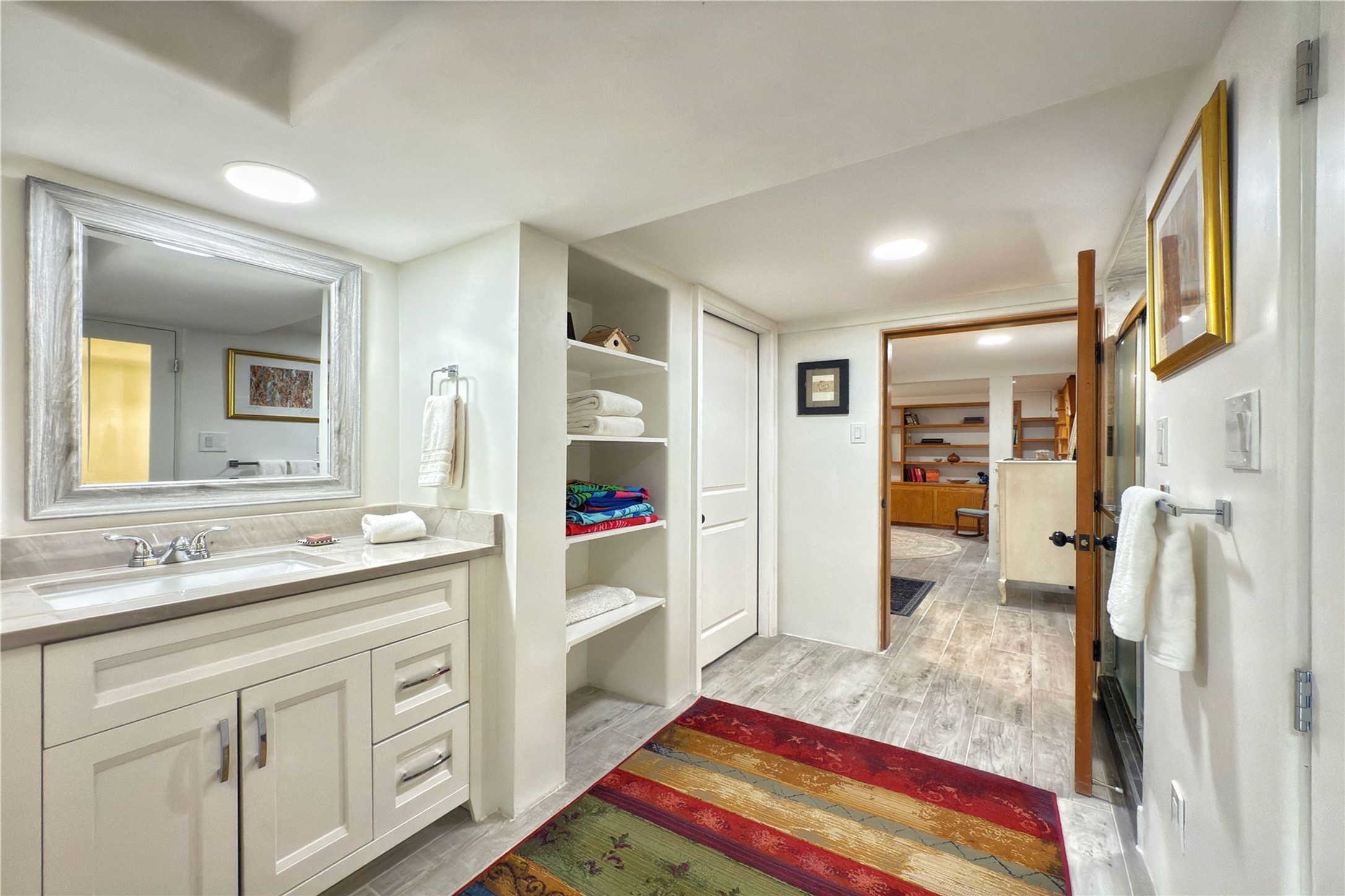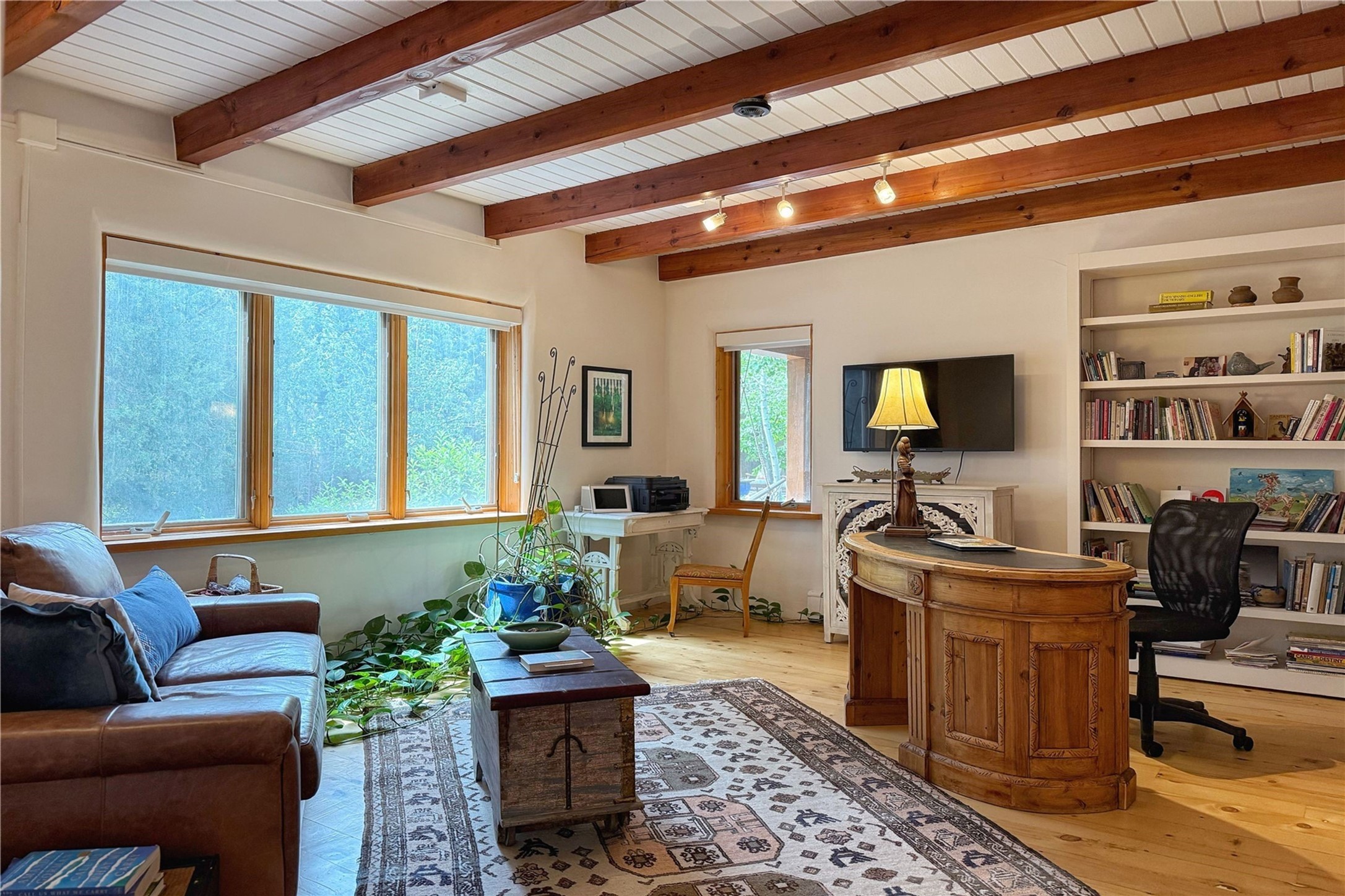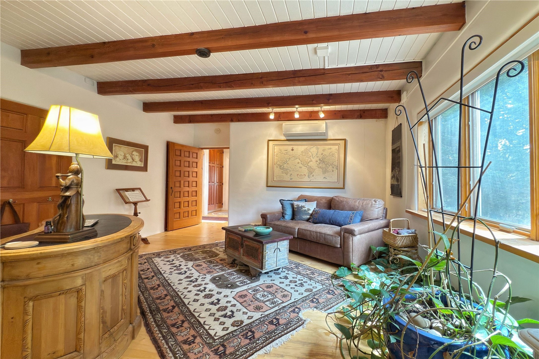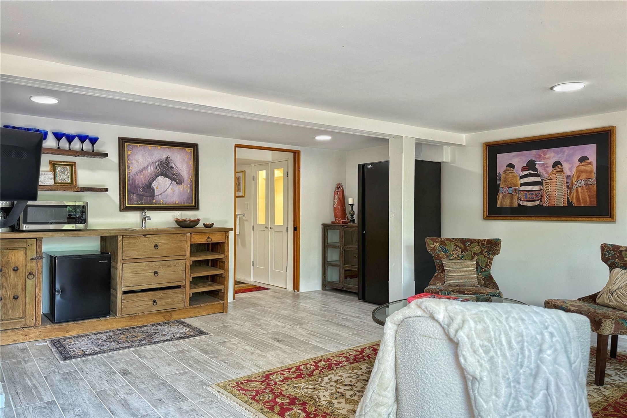 Located in the heart of the Eastside, this refined adobe sanctuary in the historic"Henderson Compound" was designed by architect Louise Walker and is sited on agenerous 0.56-acre lot, providing both privacy and panoramic views of the Sangre deCristo and Jemez Mountains. The artistic, Pueblo Revival style harmoniously blendstraditional character and modern appointments, with primary living, all on a single level.The design features a stunning great room with 10.7" ceiling and a magnificentfireplace; three spacious bedroom suites; an office, den, and sunroom in the 3,738square feet. Interiors feature wood beamed ceilings throughout, restored brick andwood floors, Italian lighting, custom wood cabinets, and large windows with exquisitetreatments that fill the home with light. The gourmet kitchen is appointed with granitecountertops, a new Sub-Zero refrigerator and W/D in the chef's pantry, while all threebathrooms have been fully renovated with marble finishes. The lower level has beencompletely reimagined with luxury finishes, including a den/living area with a bar thatopens to one of the private patios, a bedroom or second study, elegant bathroom,second W/D, and a private entrance that opens to a large patio and the orchard, forguests or personal privacy. The home is encircled by patios and walking paths, lushlandscaping with flowering beds and grasses, magnificent cedars, aspens, peach,apricot, apple and cherry trees, all are serviced by a well and a drip system. Additionalamenities include energy-efficient mini-splits, an in-wall safe, two serene outdoorfountains, outdoor shed and spiral staircase that takes you to the upgraded roof offering360 views of Santa Fe and your glorious estate. A well-lit, two-car carport and extraparking complete the home. Located just minutes from Canyon Road, this homeembodies the appeal of Santa Fe with the comfort and ease of modern living.