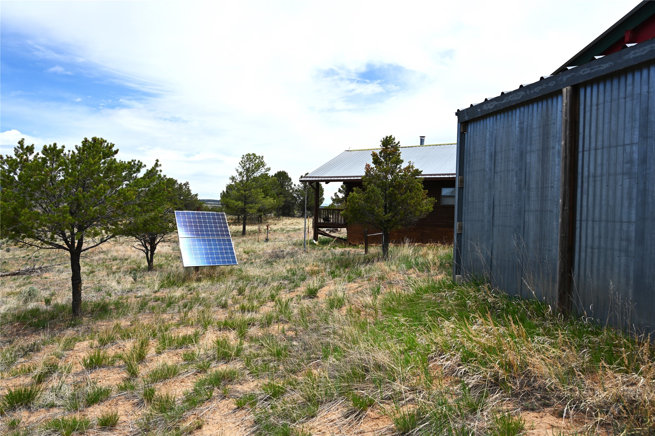 Off grid "D" Log cabin located south of Chama NM. This home is in the private gated Rancho Del Vado s/d. 870 sq ft of rustic home with an addition 144 sq foot bunk house / office hobby room. One bedroom with a loft for more sleeping area. Private 365 foot deep well with a filtration system. Home also has a 1800 gallon rain catchment system. Solar with back up generator.Wood stove heat along with a propane wall heater for those cold winter nights. 250 gallon propane tank. $100.00 a year road and gate maint fee. Great views from the front porch. Across the highway from El Vado State Park and the Chama wild game management area. Approx 30 minutes from Chama and a couple of hours from Santa Fe. Would make a great full time, weekend home , summer home or just a get a way. Located near some great hunting units for you hunters and for those of you that like to fish plenty of places to catch those delicious Trout.