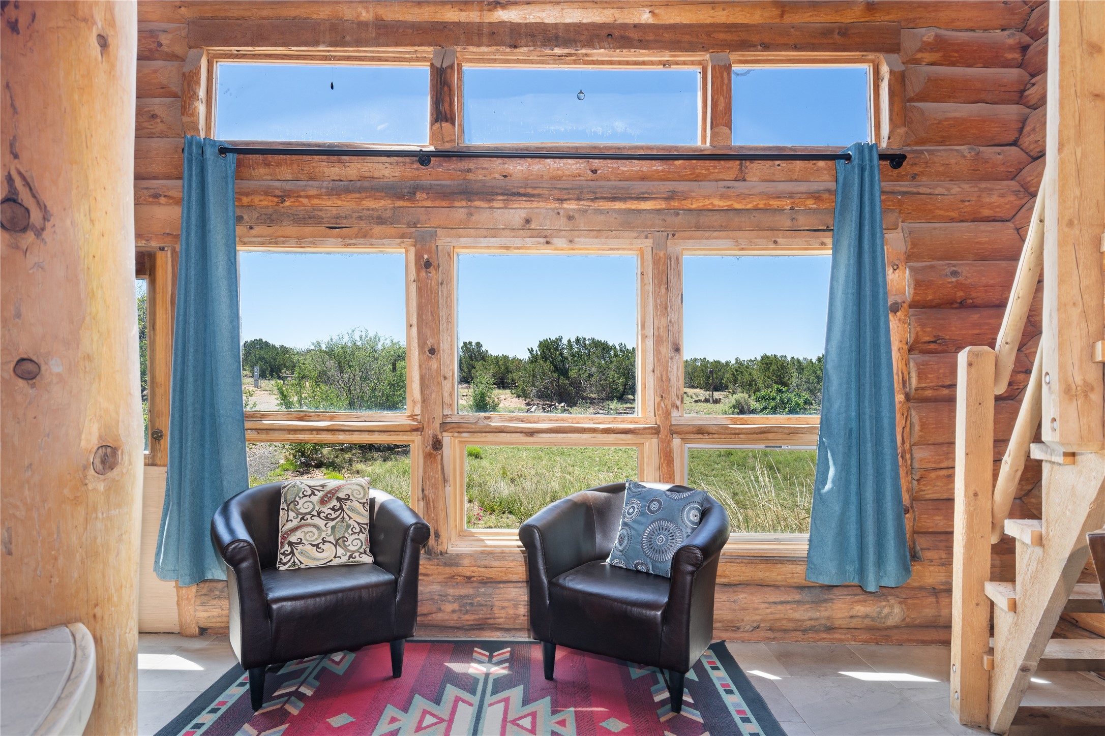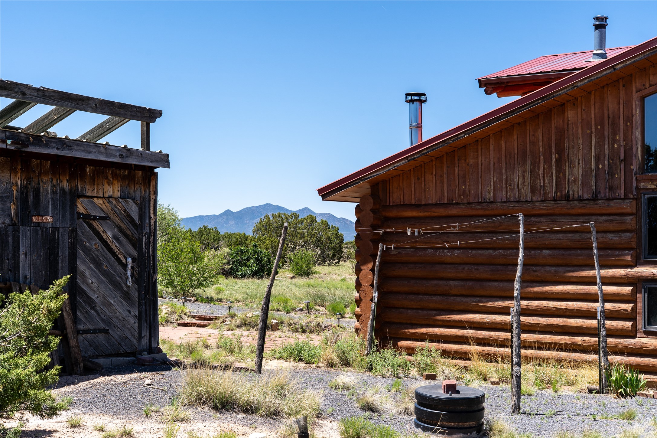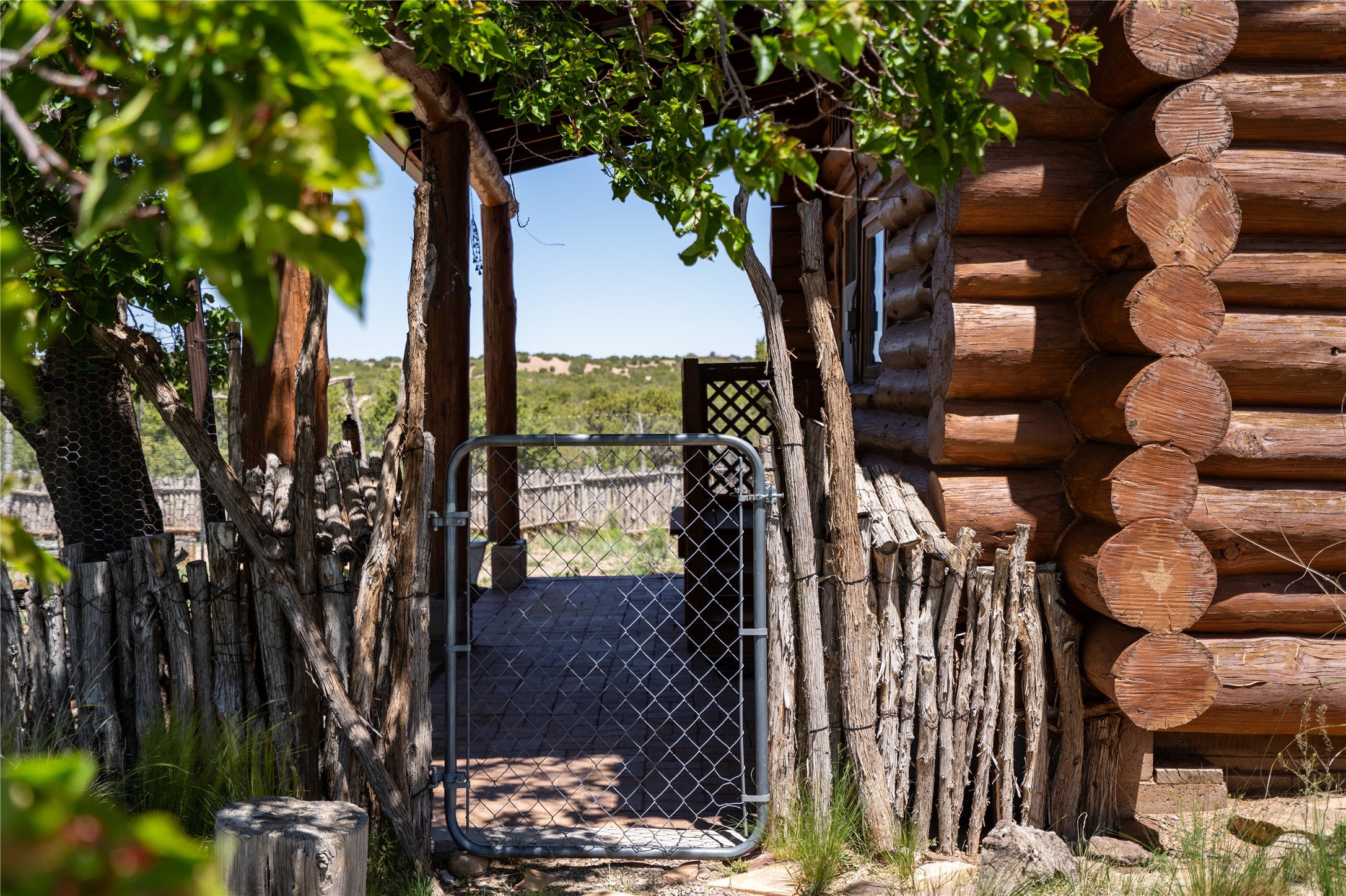 Escape to your private slice of the Wild West with this stunning 2-story, 2-bedroom, 2-bathroom true log cabin. Nestled on over 10 sprawling acres with an enviable address on the historic Camino Los Abuelos, this home is surrounded by wide open skies and rolling desert terrain, and enjoys paved road the whole way to the driveway.Step inside and enjoy the warmth of handcrafted log walls, soaring ceilings, and a cozy wood-burning stove. Downstairs, a well-appointed kitchen flows into 2 living spaces, the primary suite, and an unfinished sunroom. Upstairs, a spacious loft-style bedroom with its own 3/4 bath is perched, awaiting your southwestern accents.Whether you're sipping coffee on the porch, stargazing in the clear New Mexico skies, or exploring your very own high desert acreage, this home is a true retreat. Ideal for artists, adventurers, homesteaders, or anyone craving solitude and inspiration. Located within minutes of the San Marcos Feed Store and Beer Creek Brewery, and close enough to Santa Fe's rich culture, galleries, and cuisine--but far enough to enjoy peace, privacy, and panoramic views.